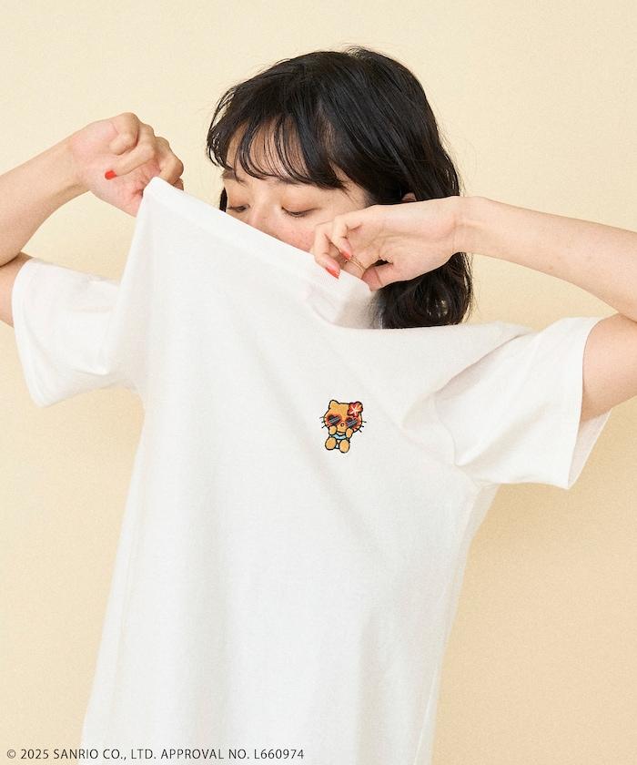 背面是 "HELLO KITTY "衝浪的插圖,正面是 "HELLO KITTY "戴著太陽鏡的可愛刺繡。