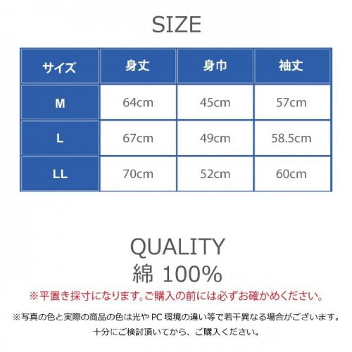 L 碼:長 67 厘米,寬 49 厘米,袖長 58.5 厘米。