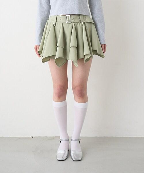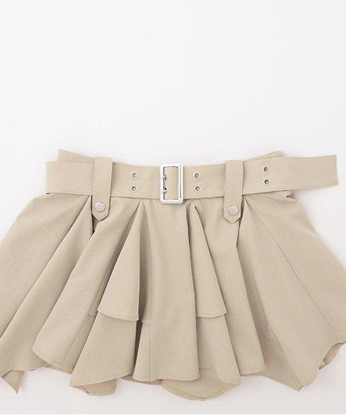 前部的大腰帶環和與裙襬相同面料的鴿尾腰帶起到了點睛之筆的作用。