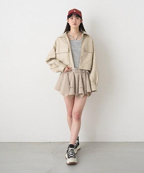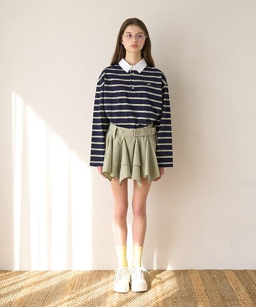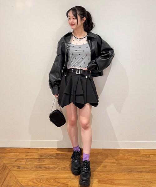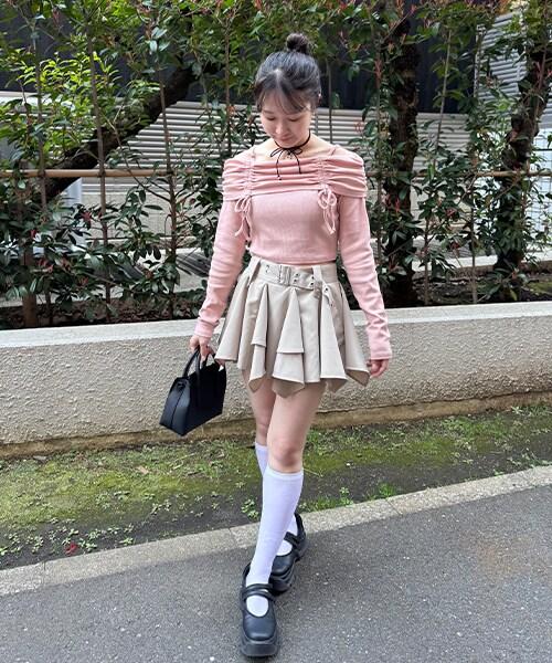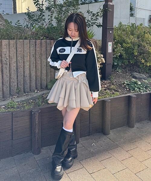 搭配大針織衫或運動衫,從下襬處露出裙襬部分,也很可愛。
