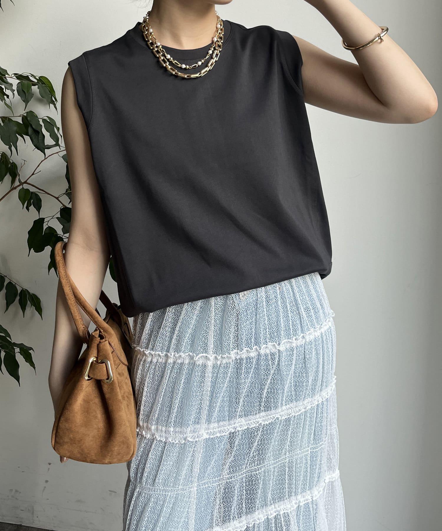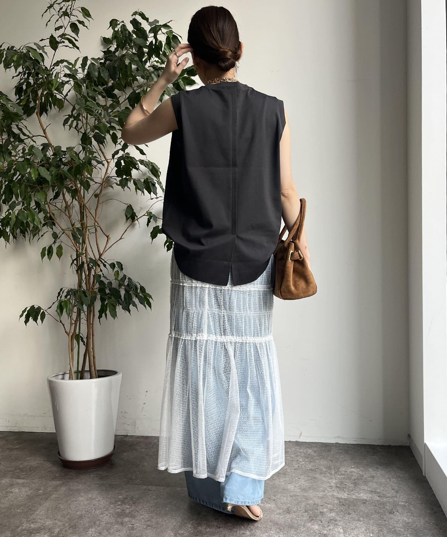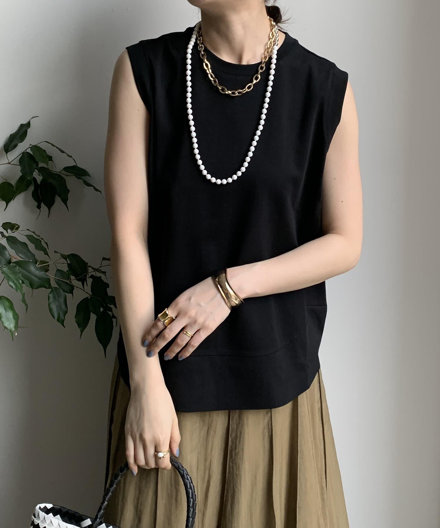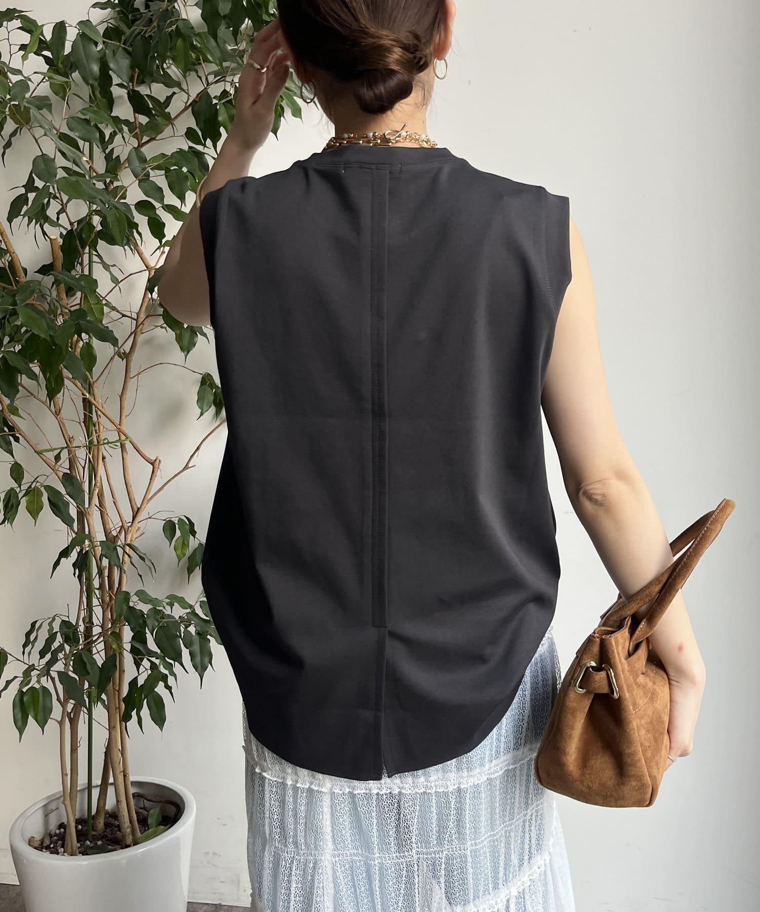 背心套頭衫,袖子略微垂在肩上,下襬有開關。