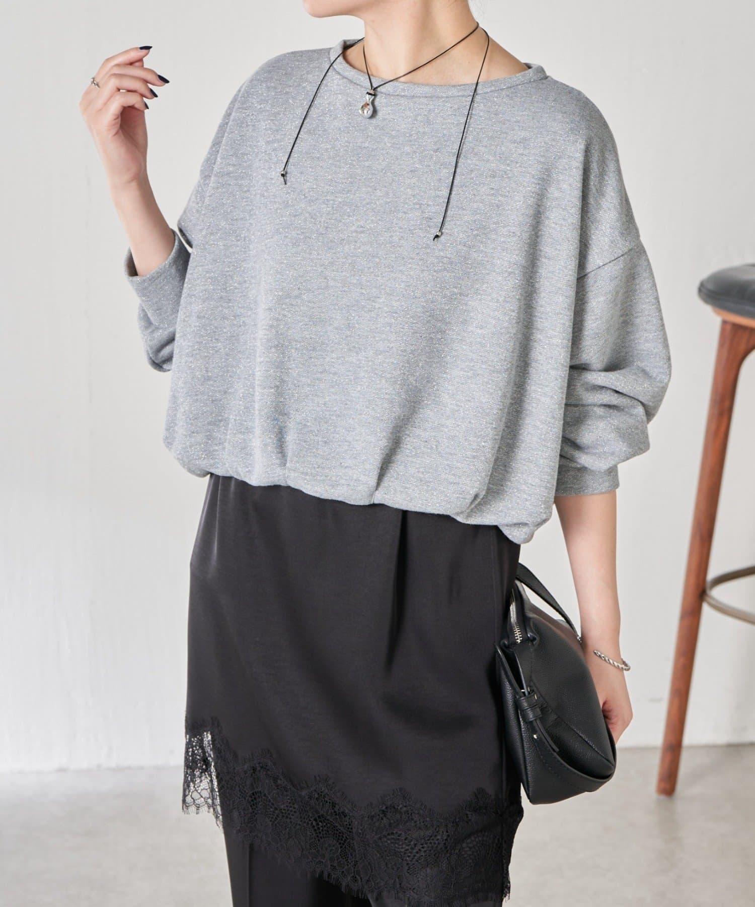 預約商品下襬氣球袖亮絲衛衣