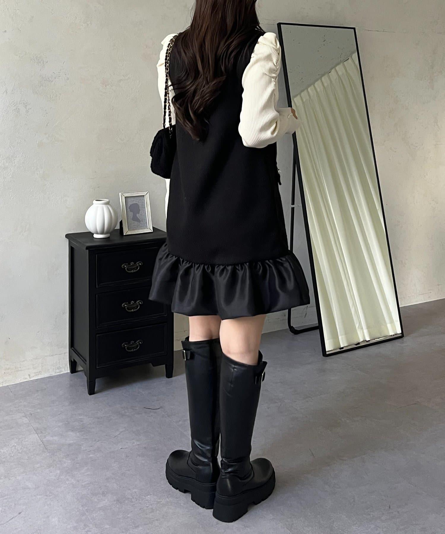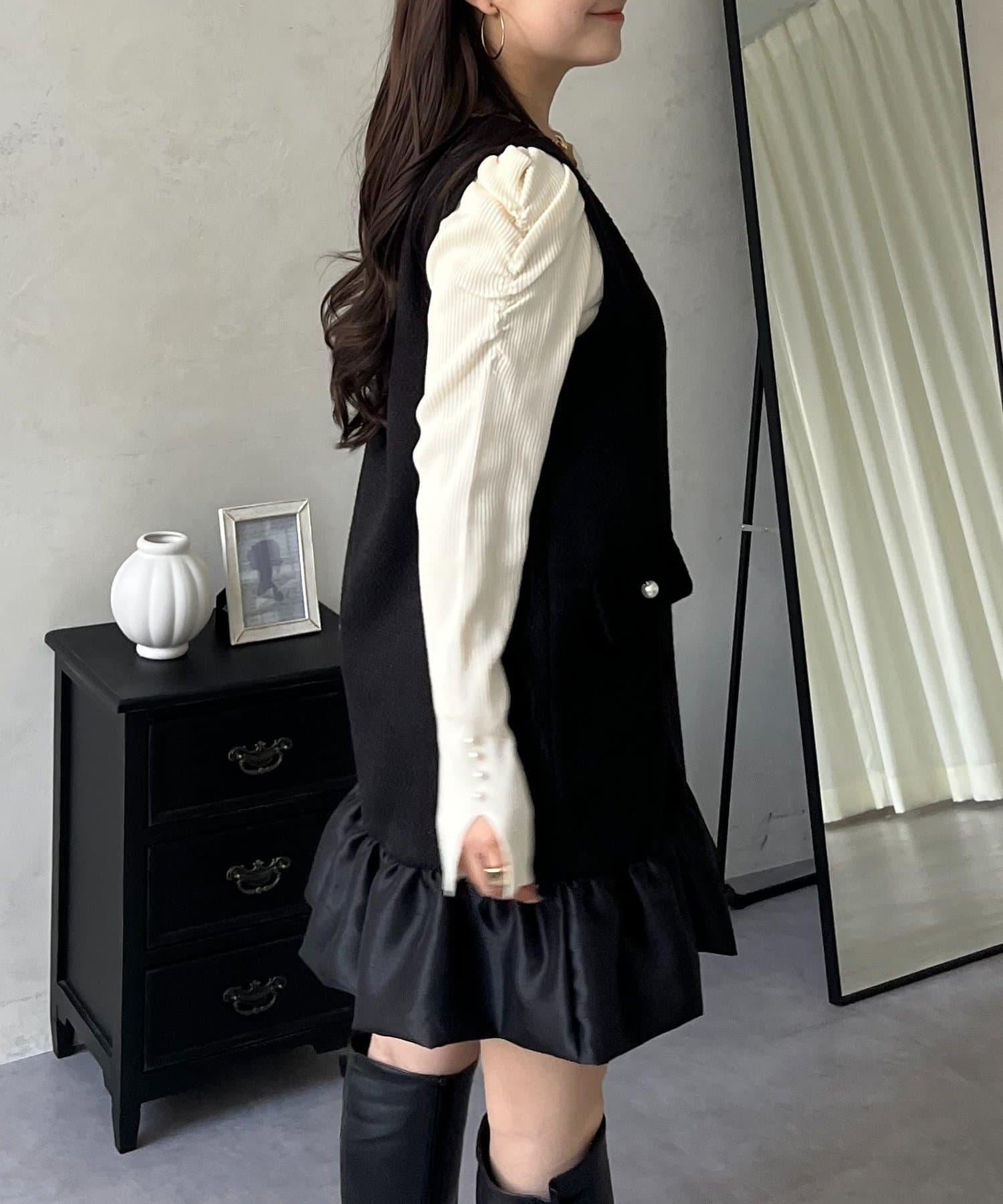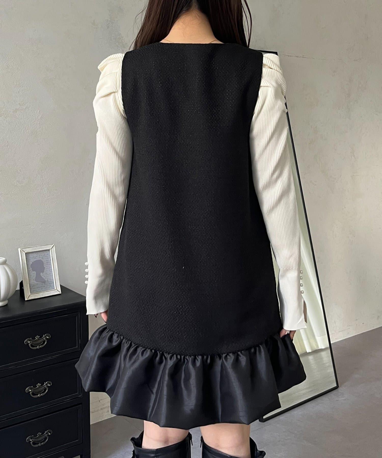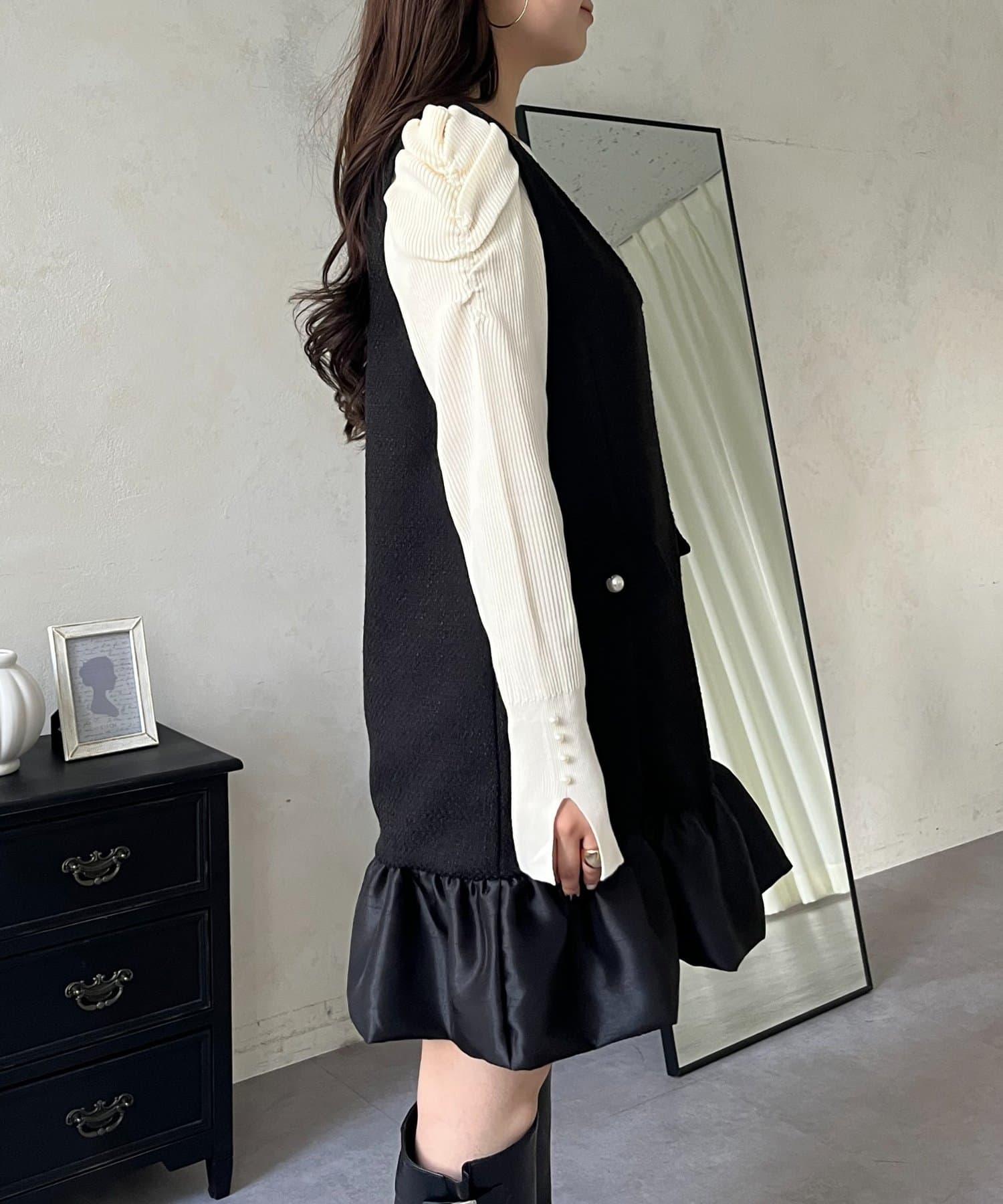 下襬氣球袖呢料連衣裙