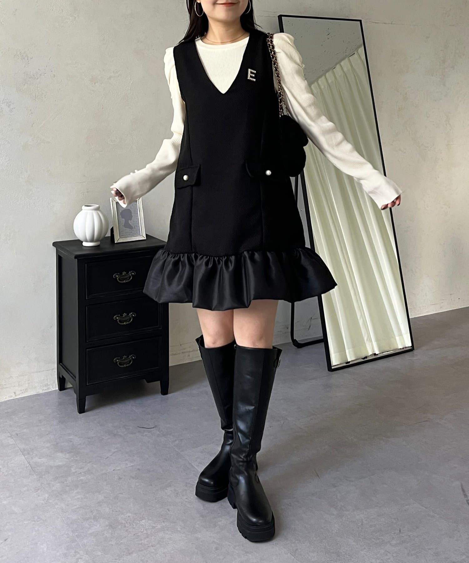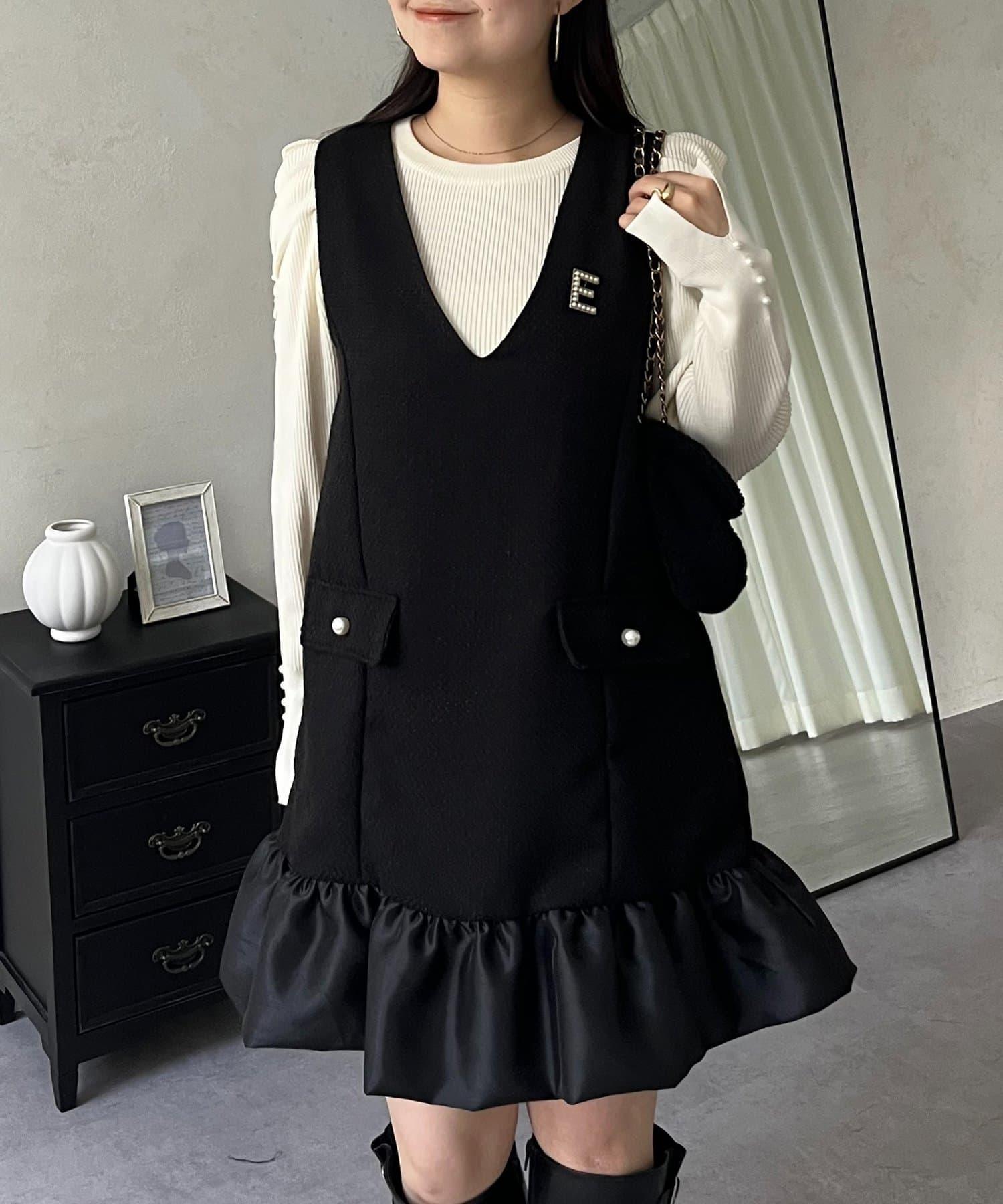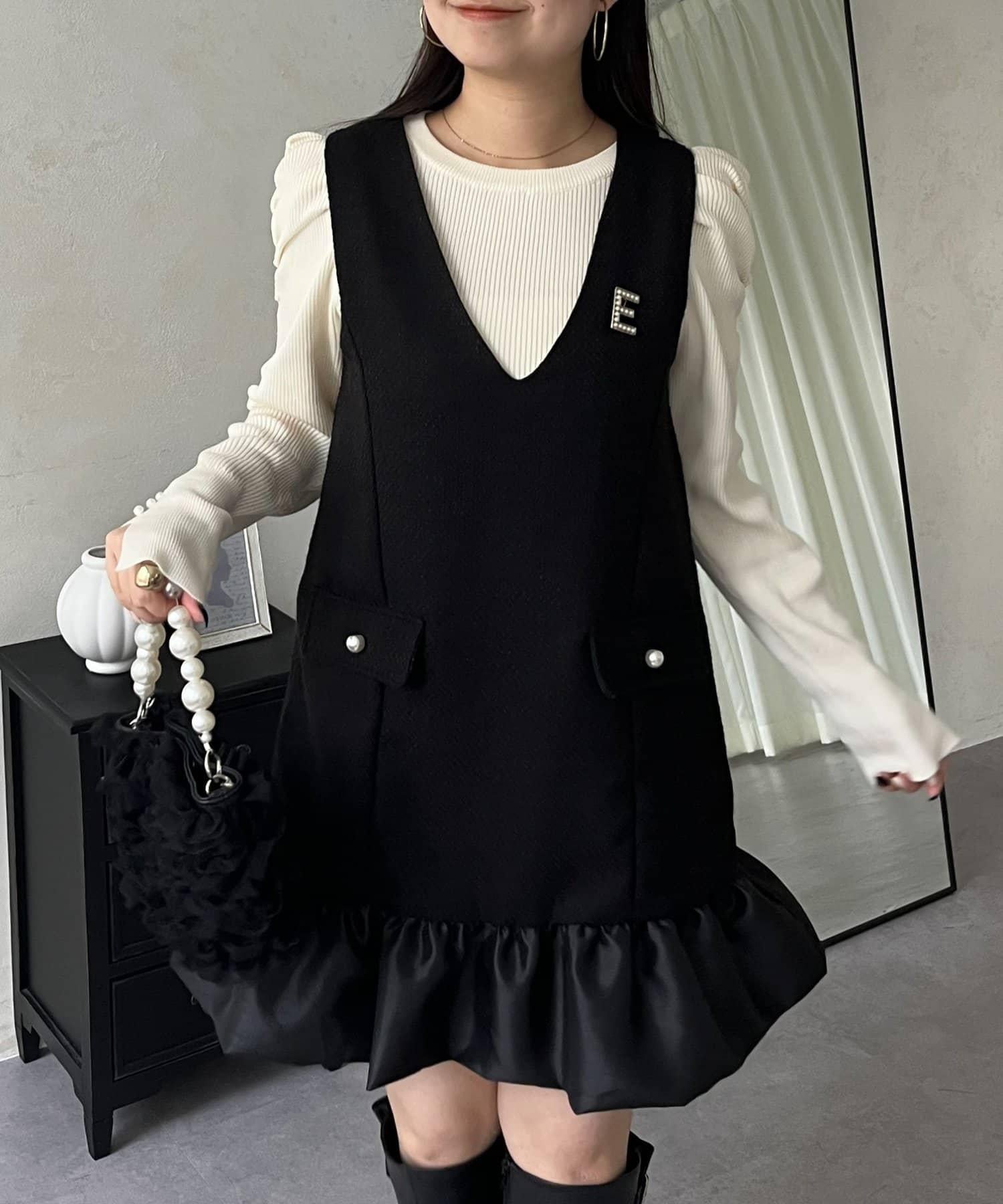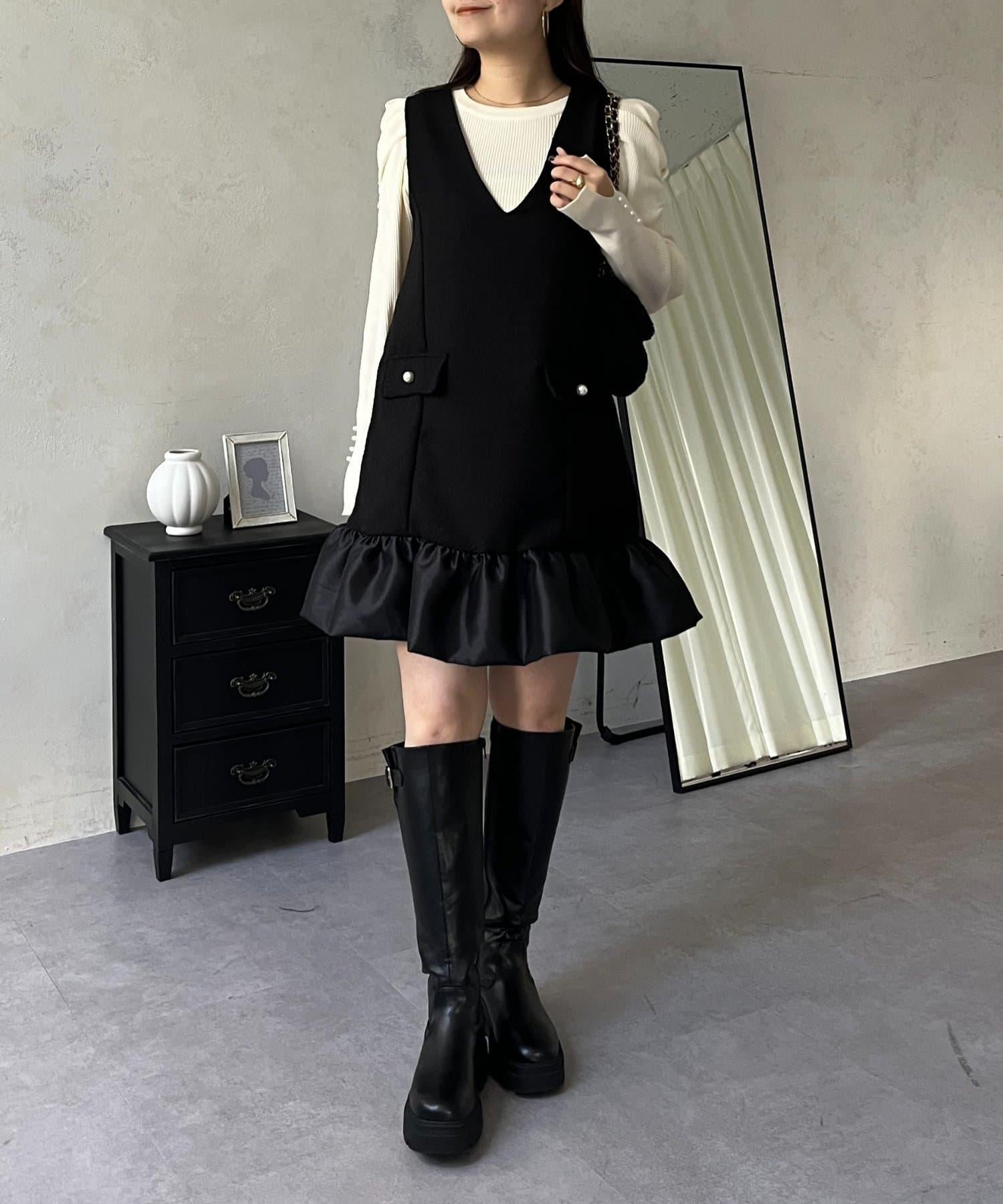 下襬氣球袖呢料連衣裙
