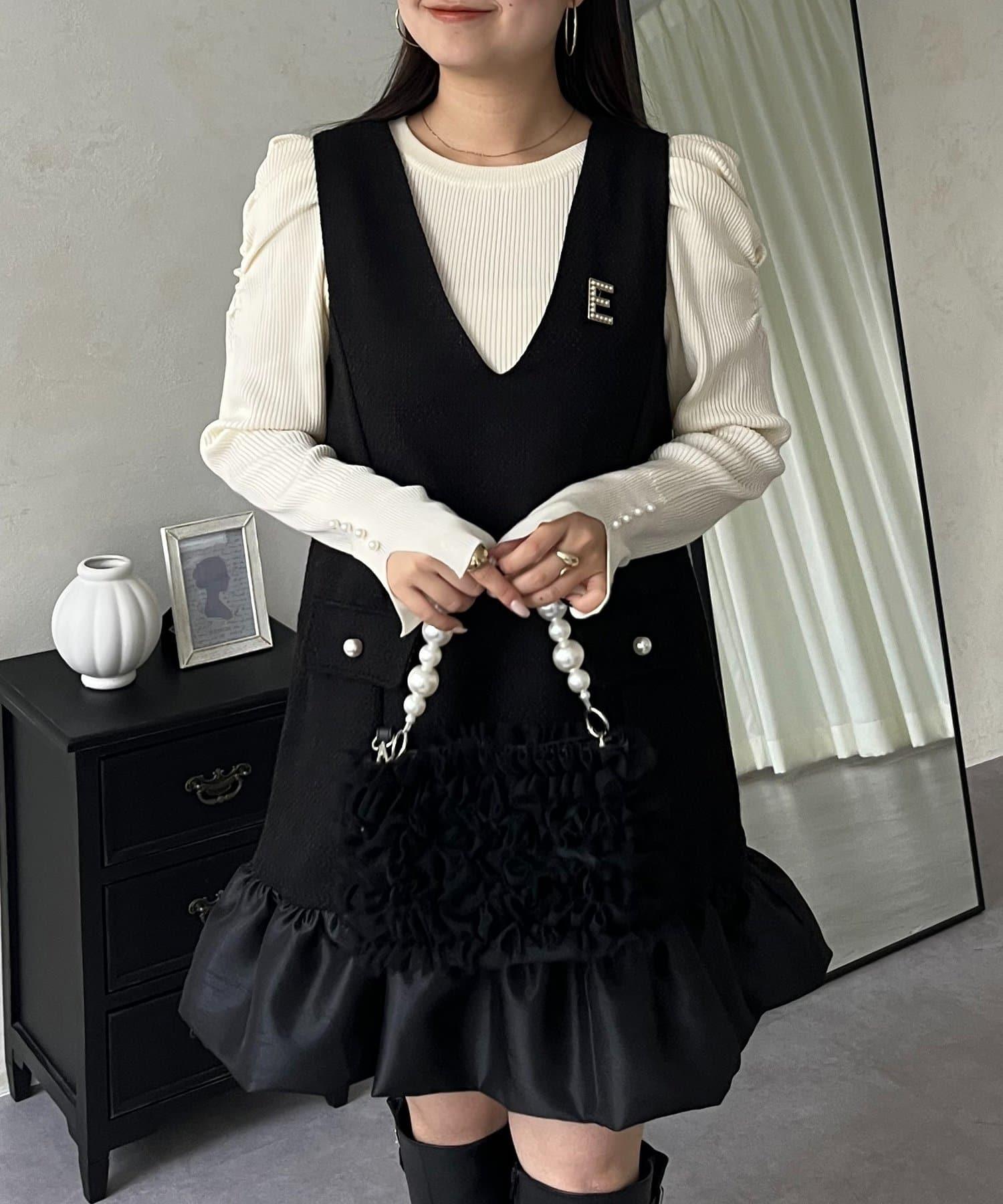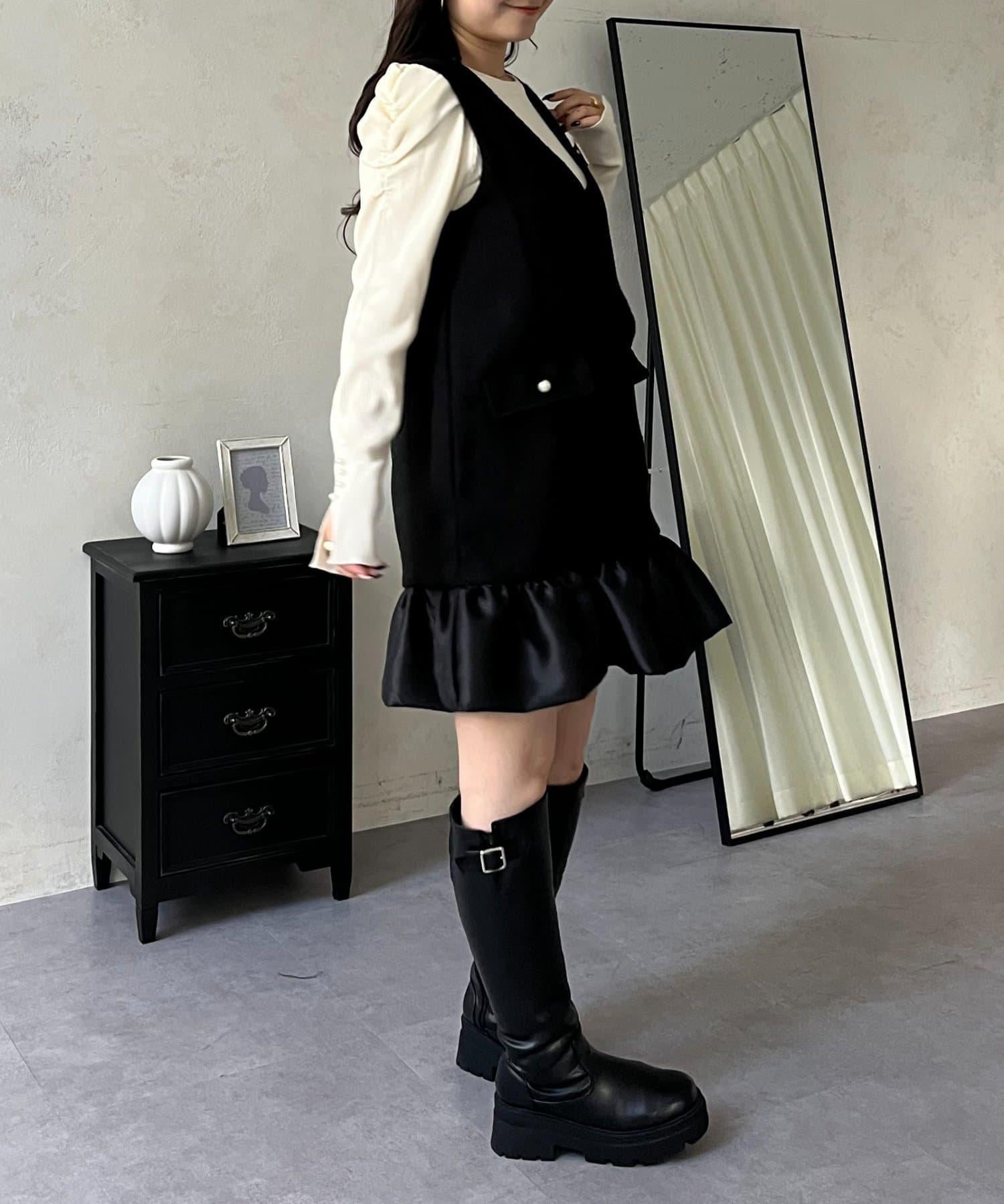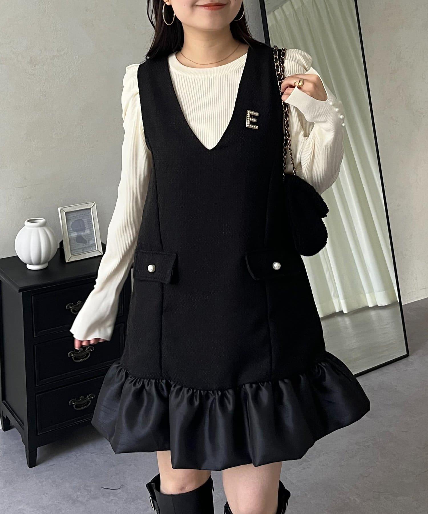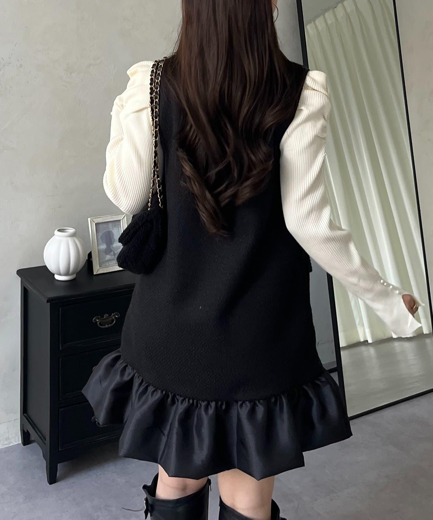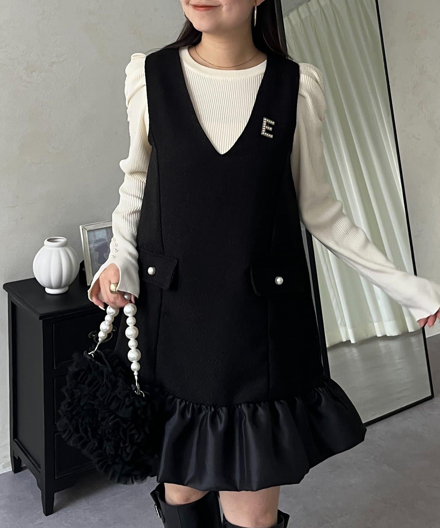 下襬氣球袖呢料連衣裙