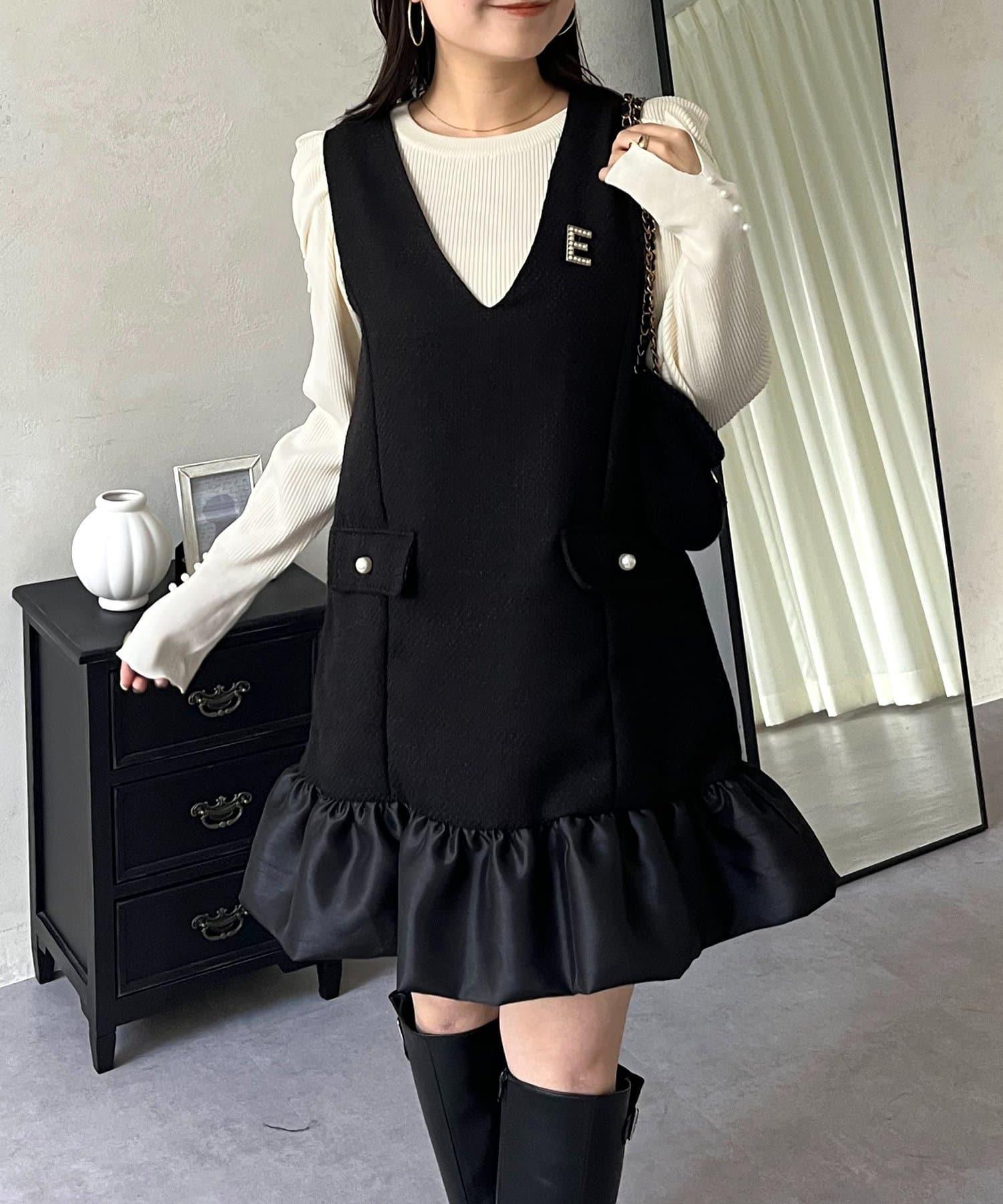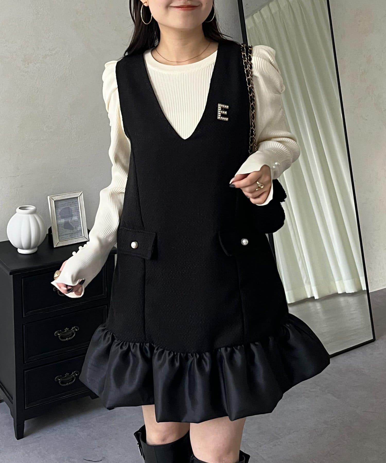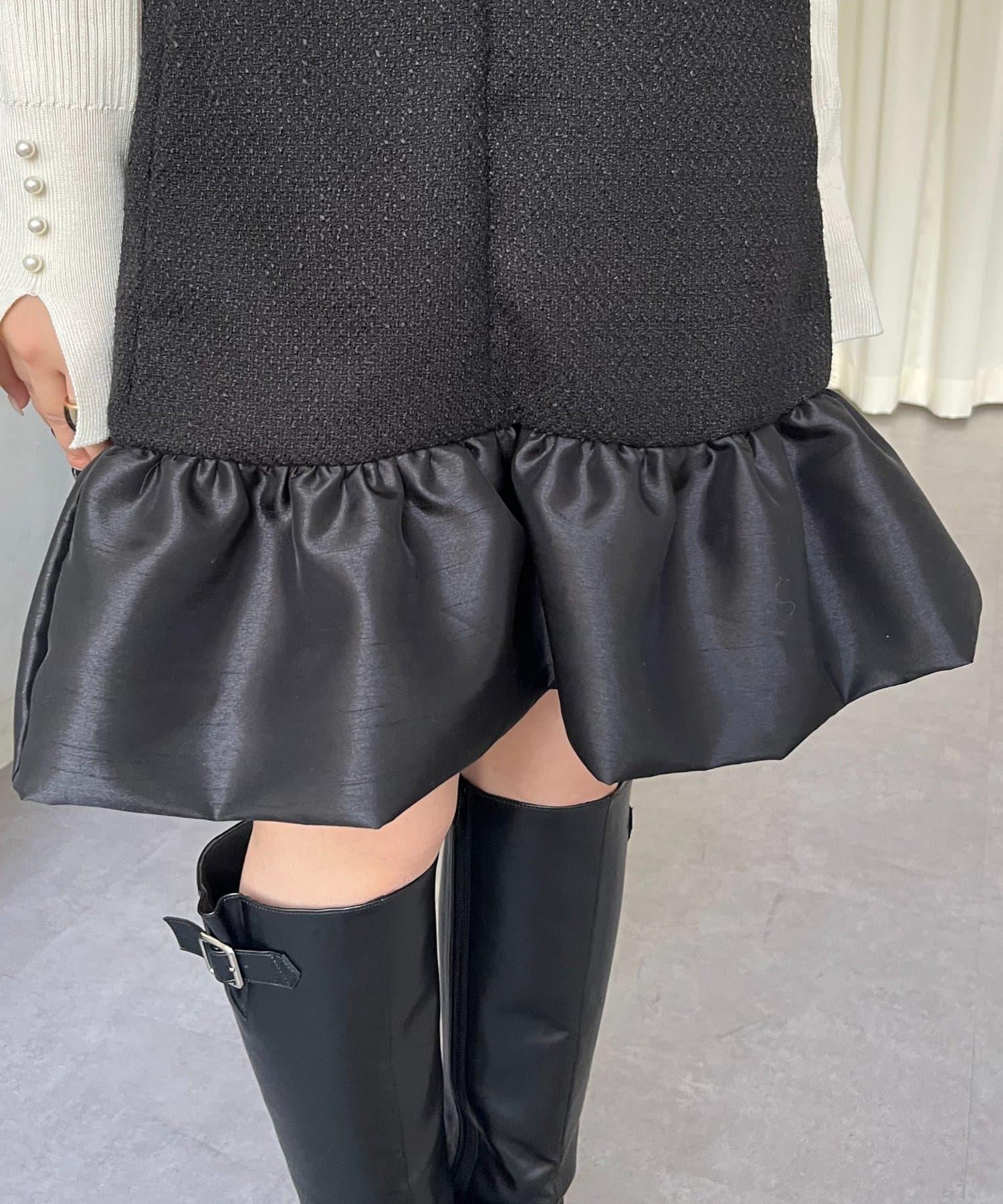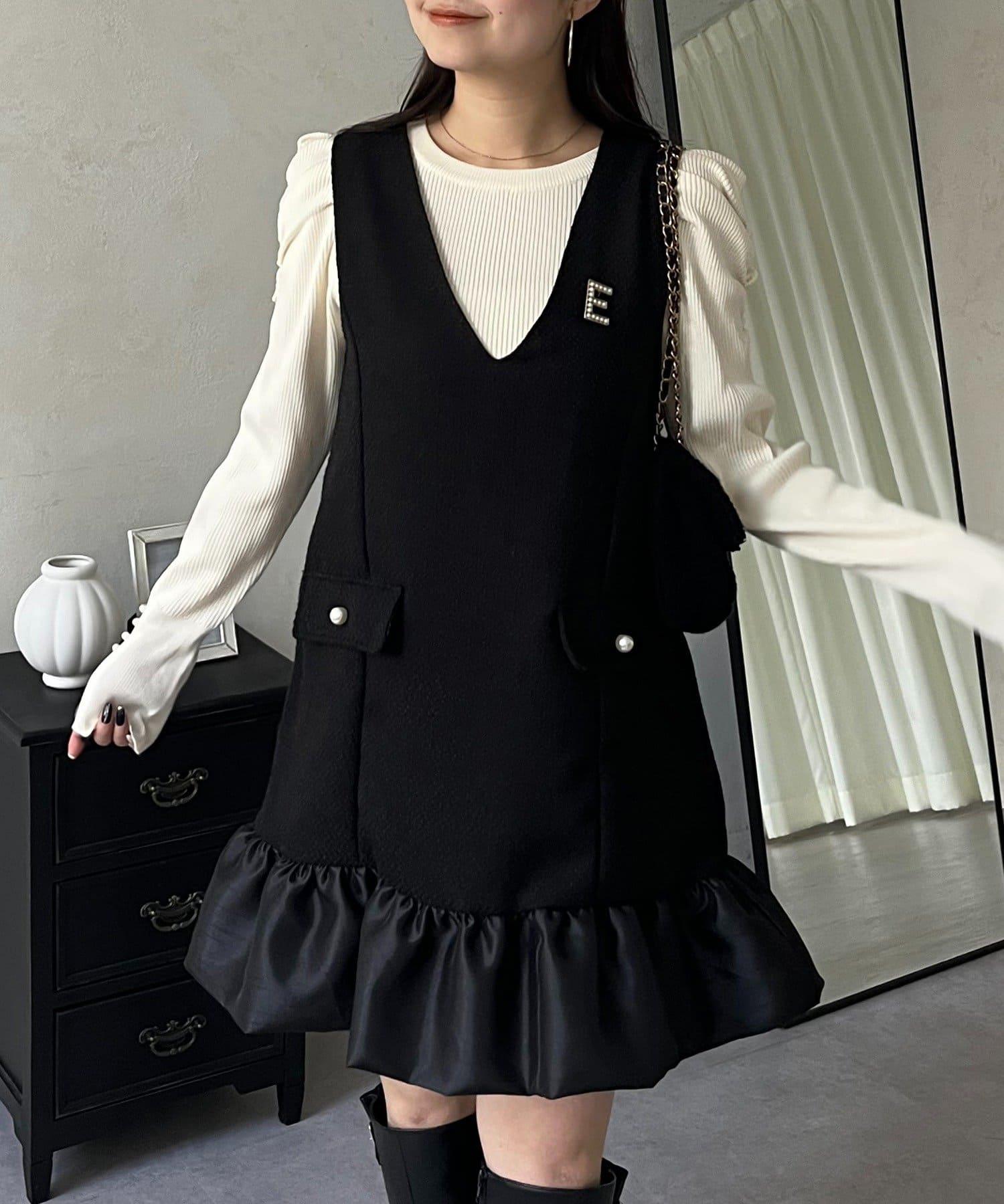 下襬氣球袖呢料連衣裙