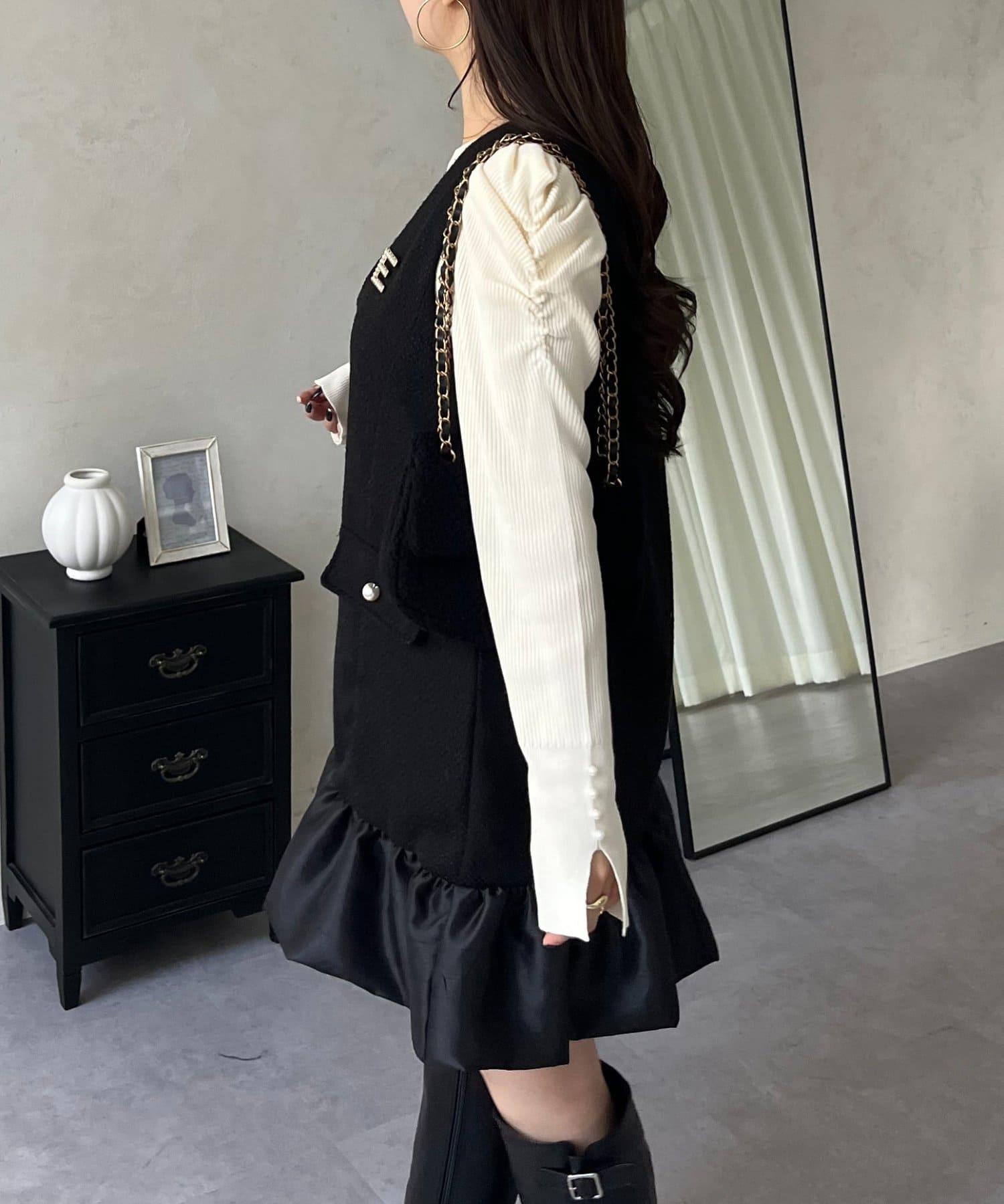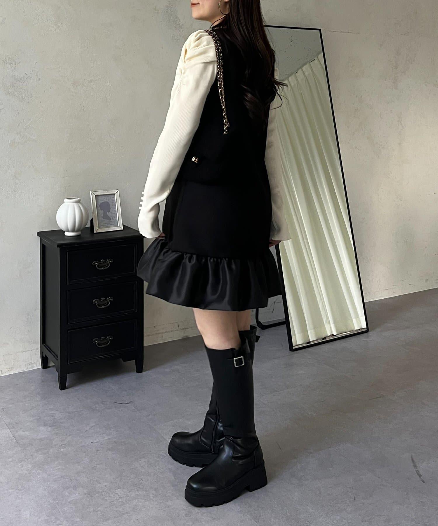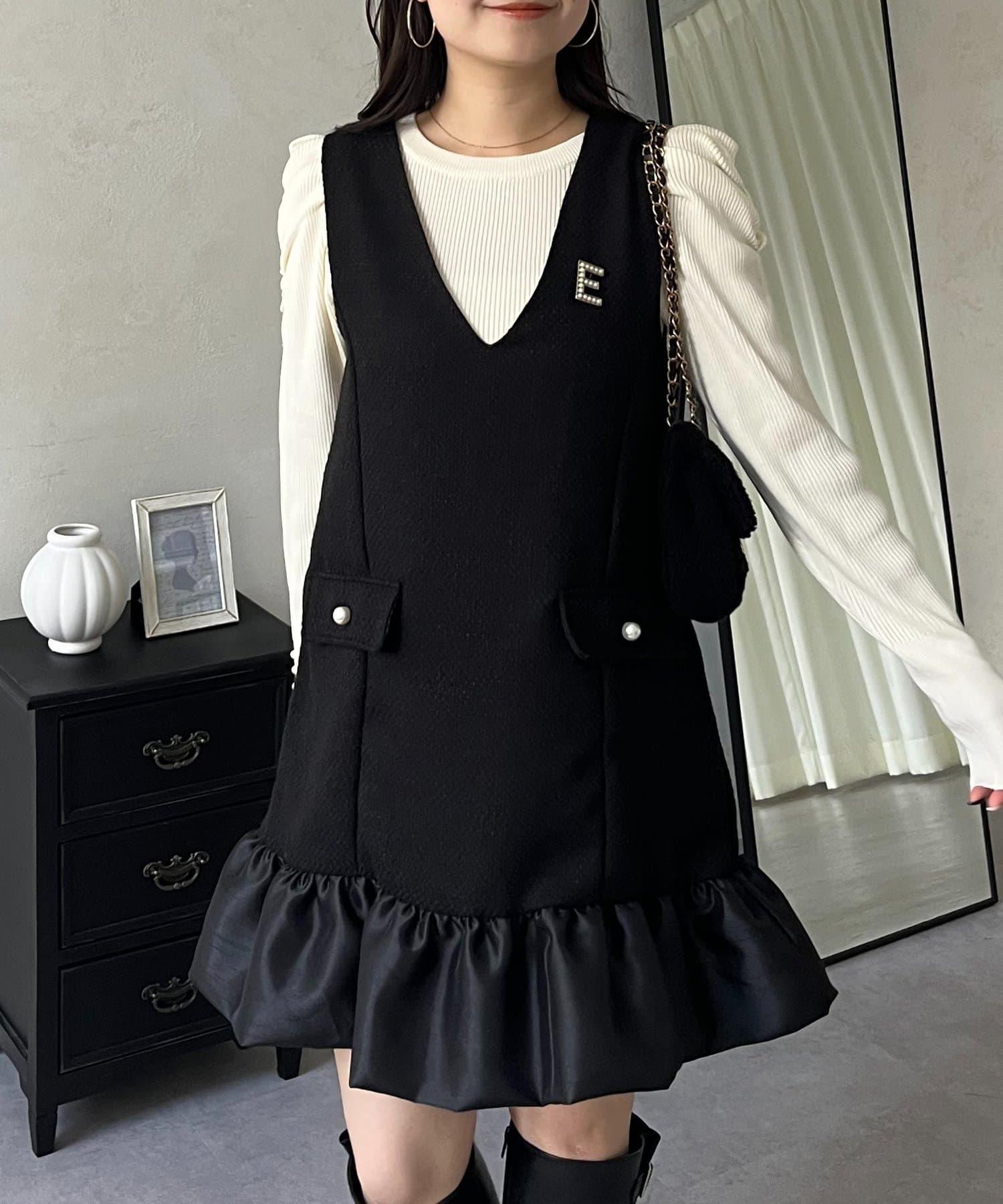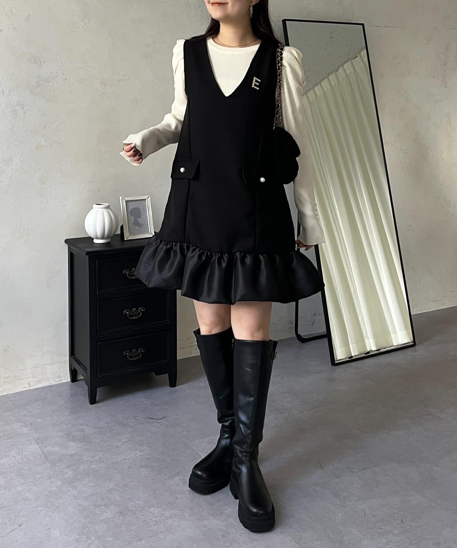 下襬氣球袖呢料連衣裙