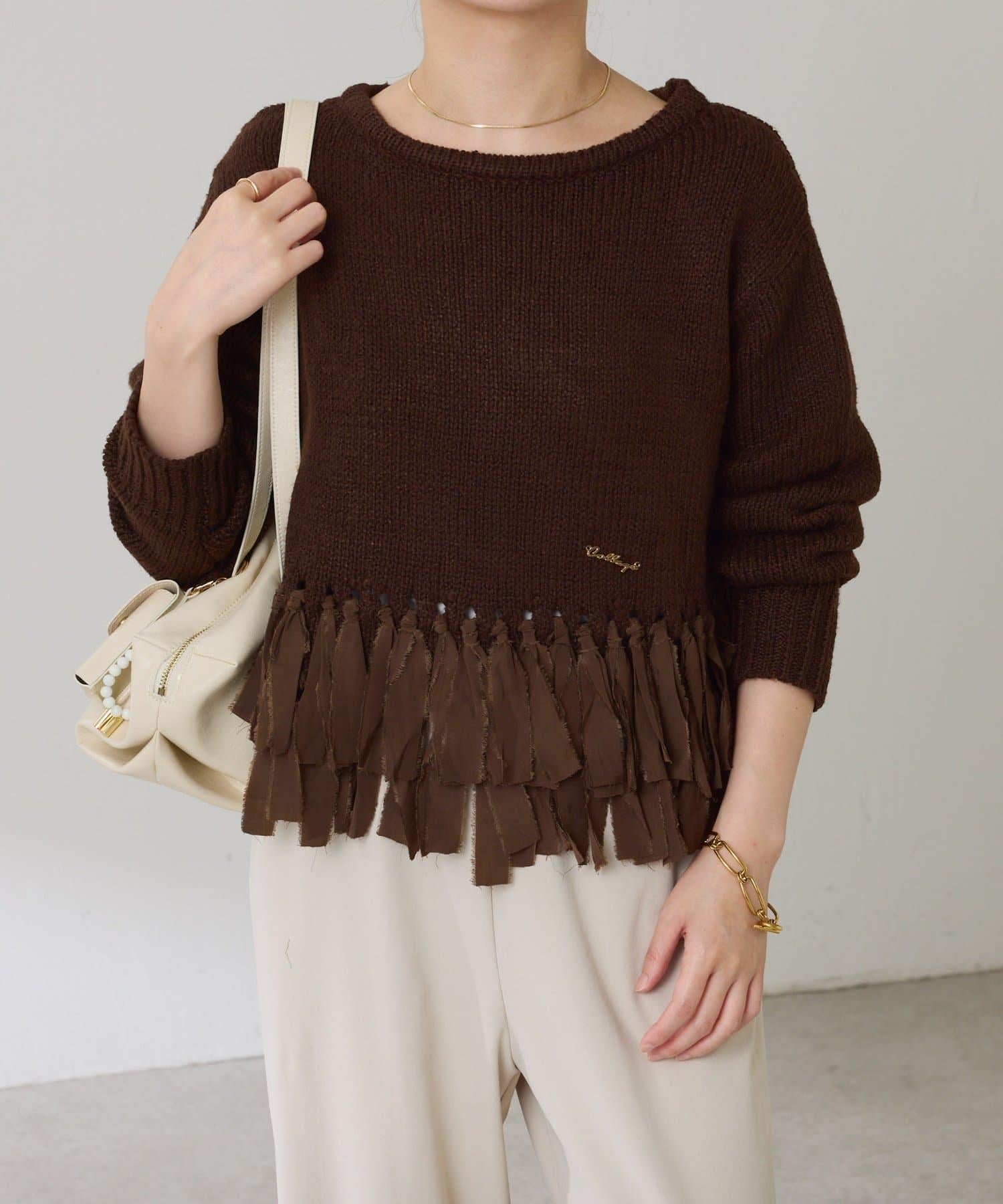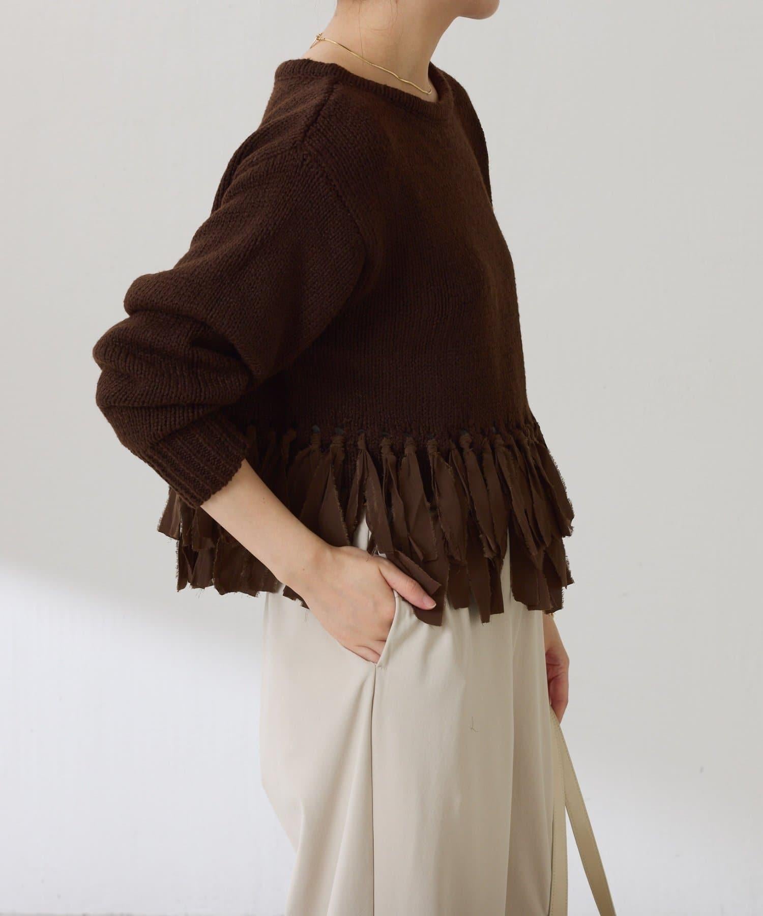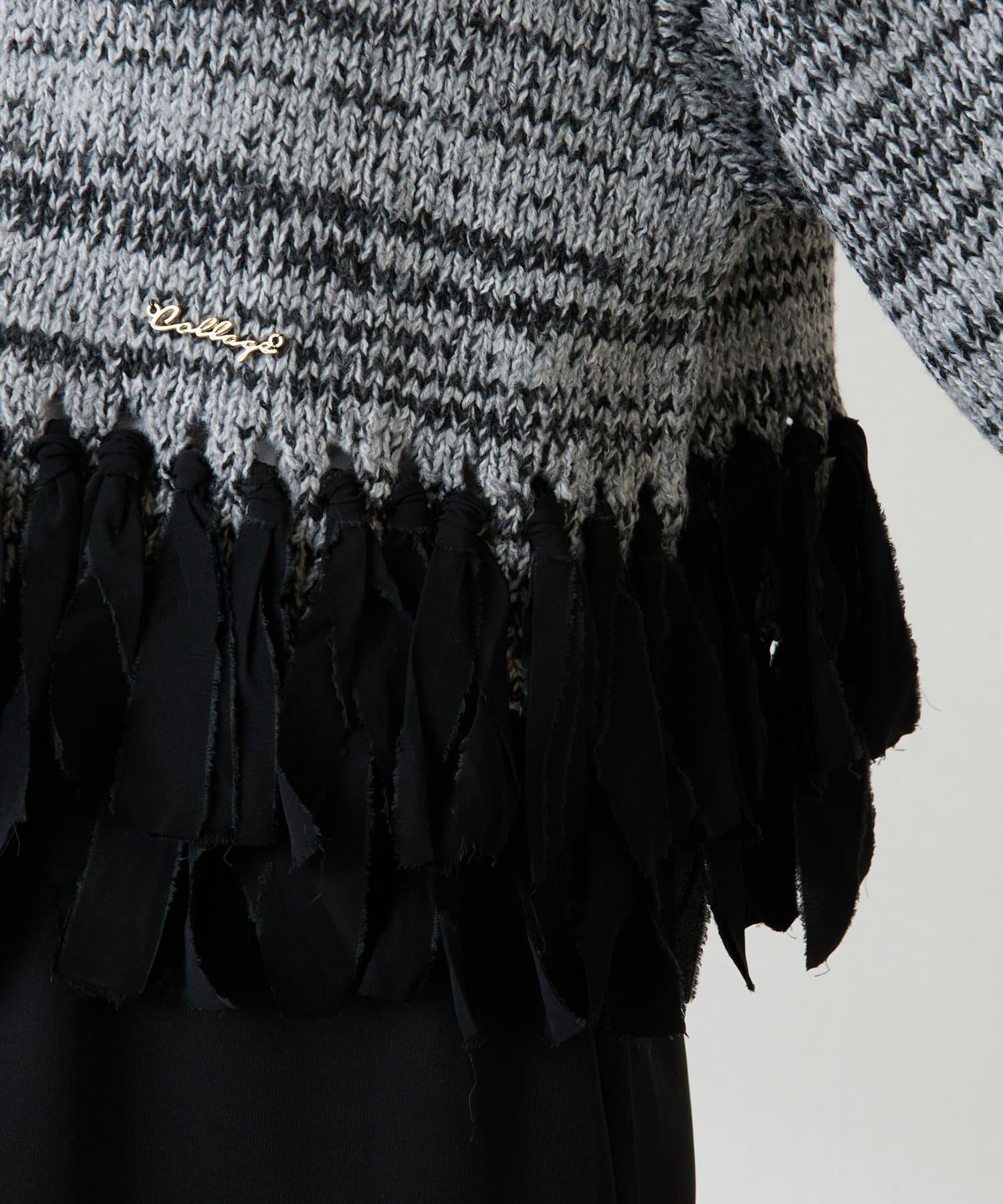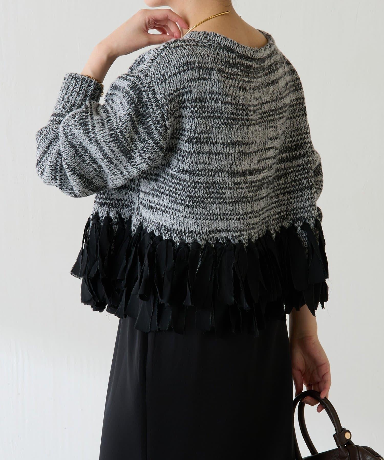 這款針織衫的下襬繫有絲帶,並有不同材質的流蘇。