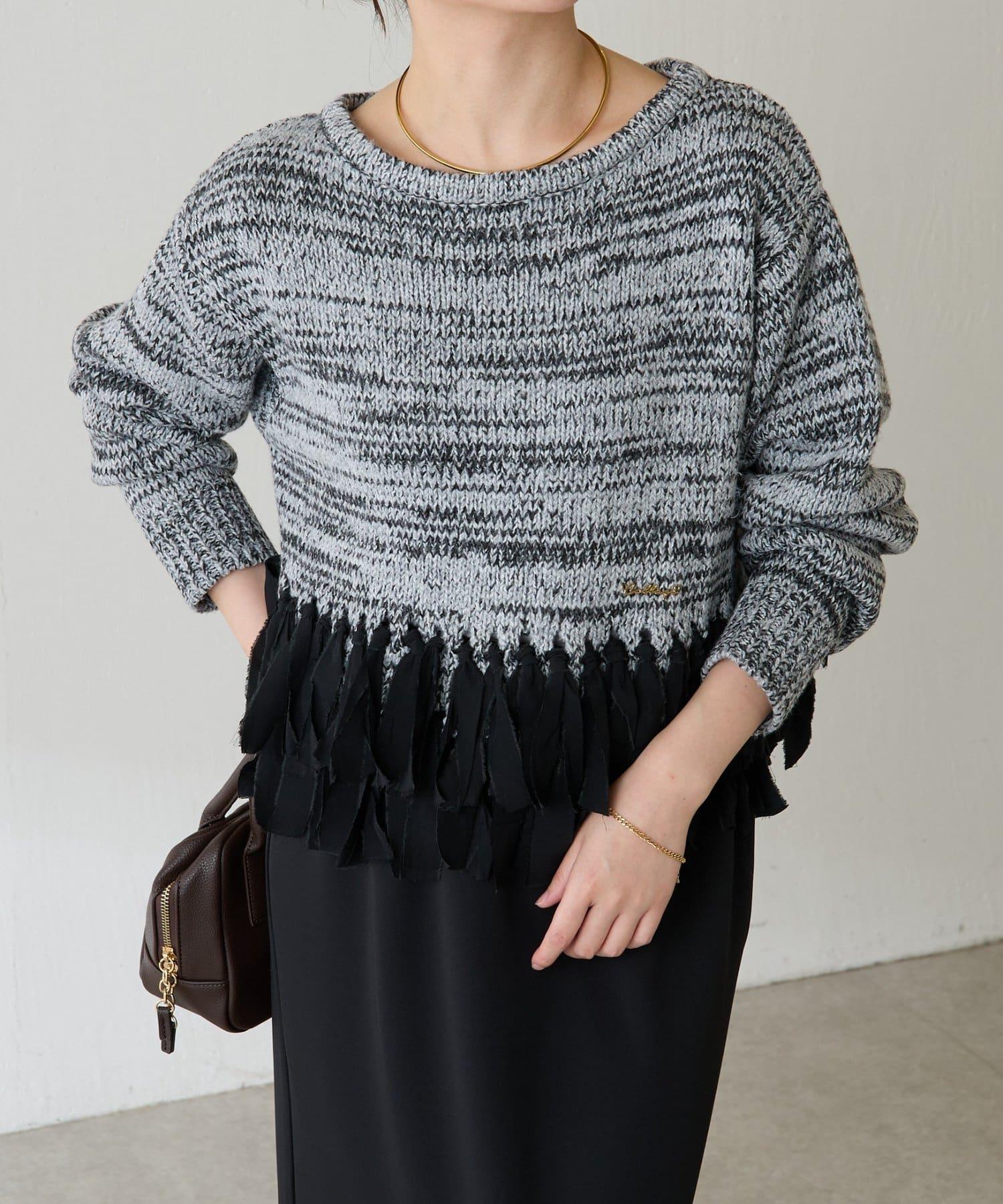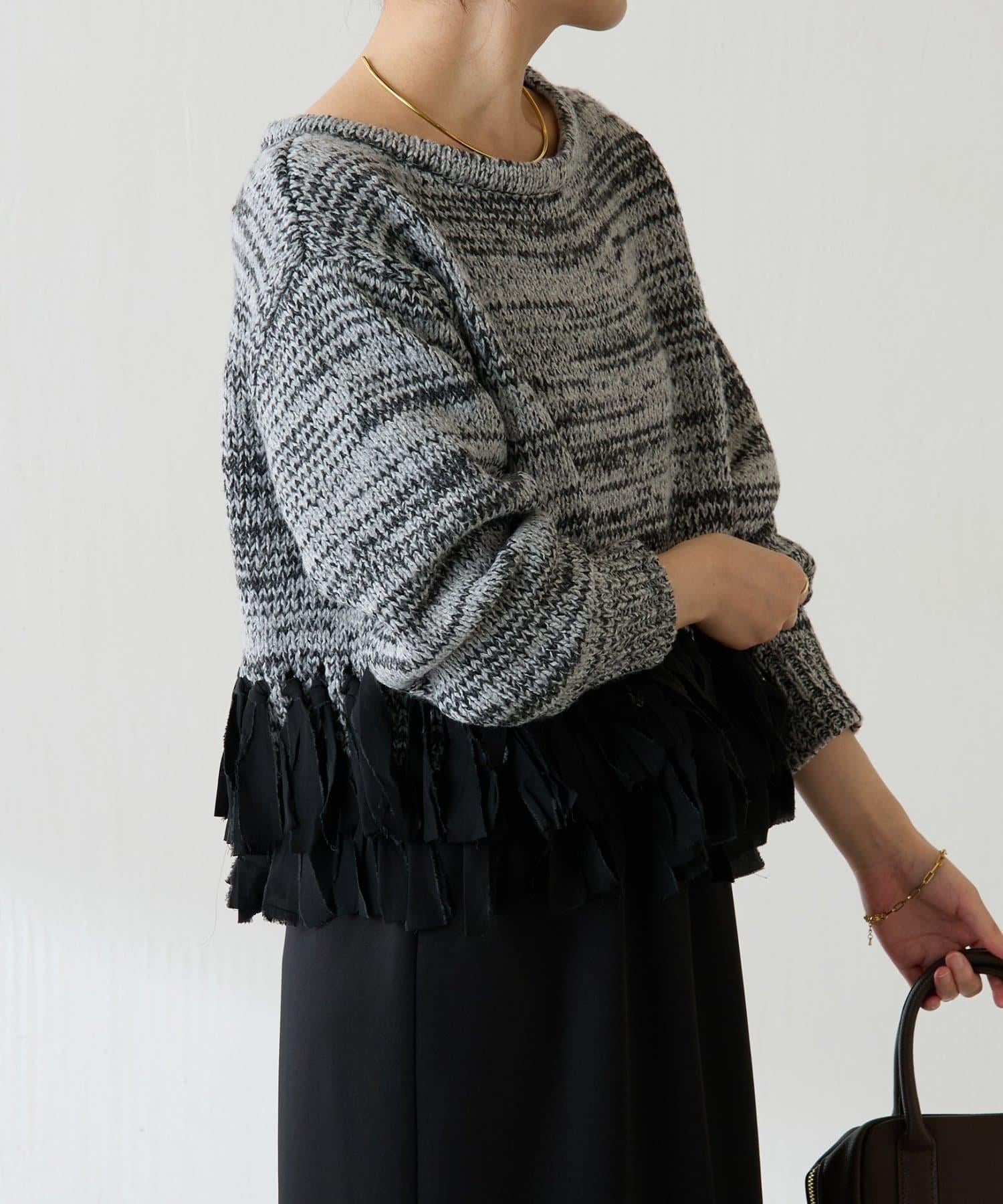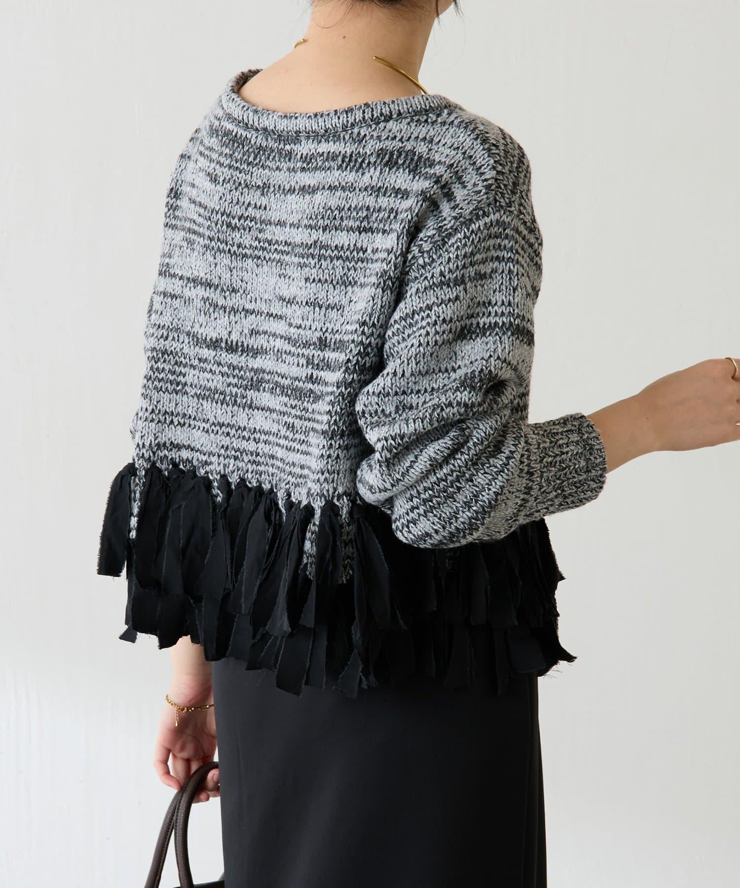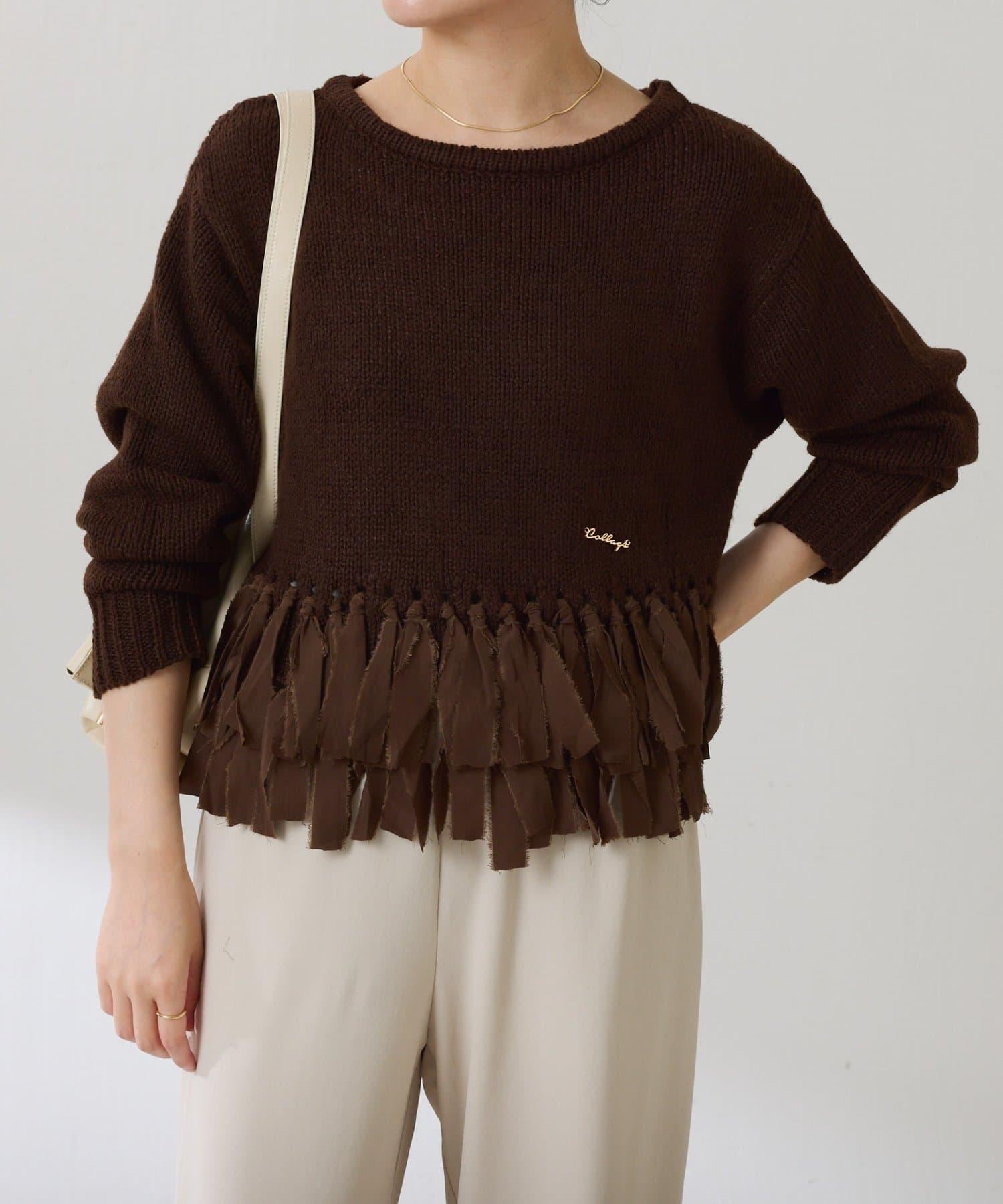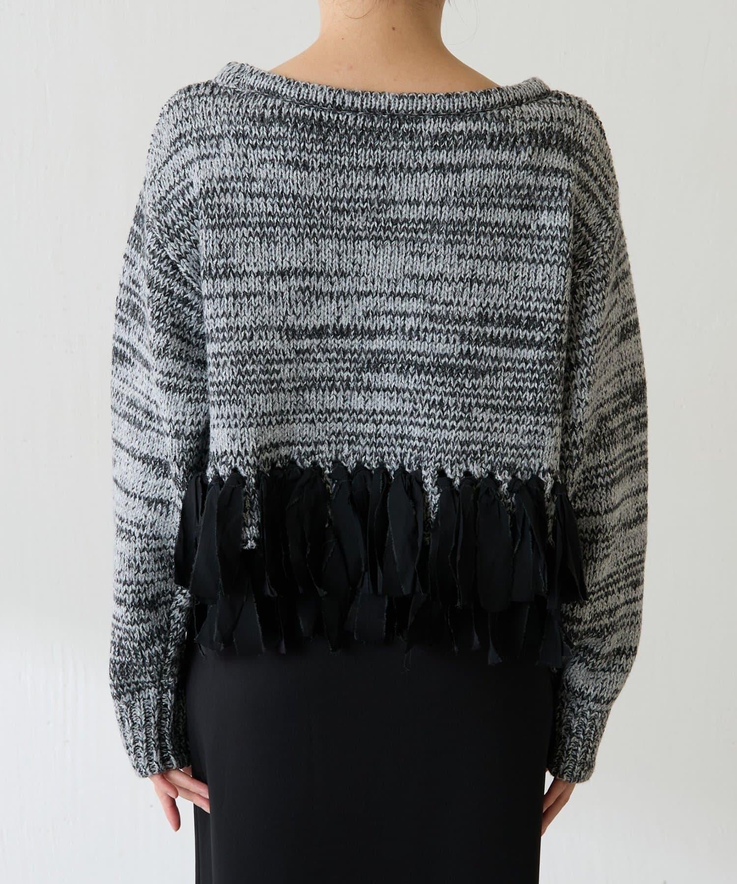 這款針織衫的下襬繫有絲帶,並有不同材質的流蘇。