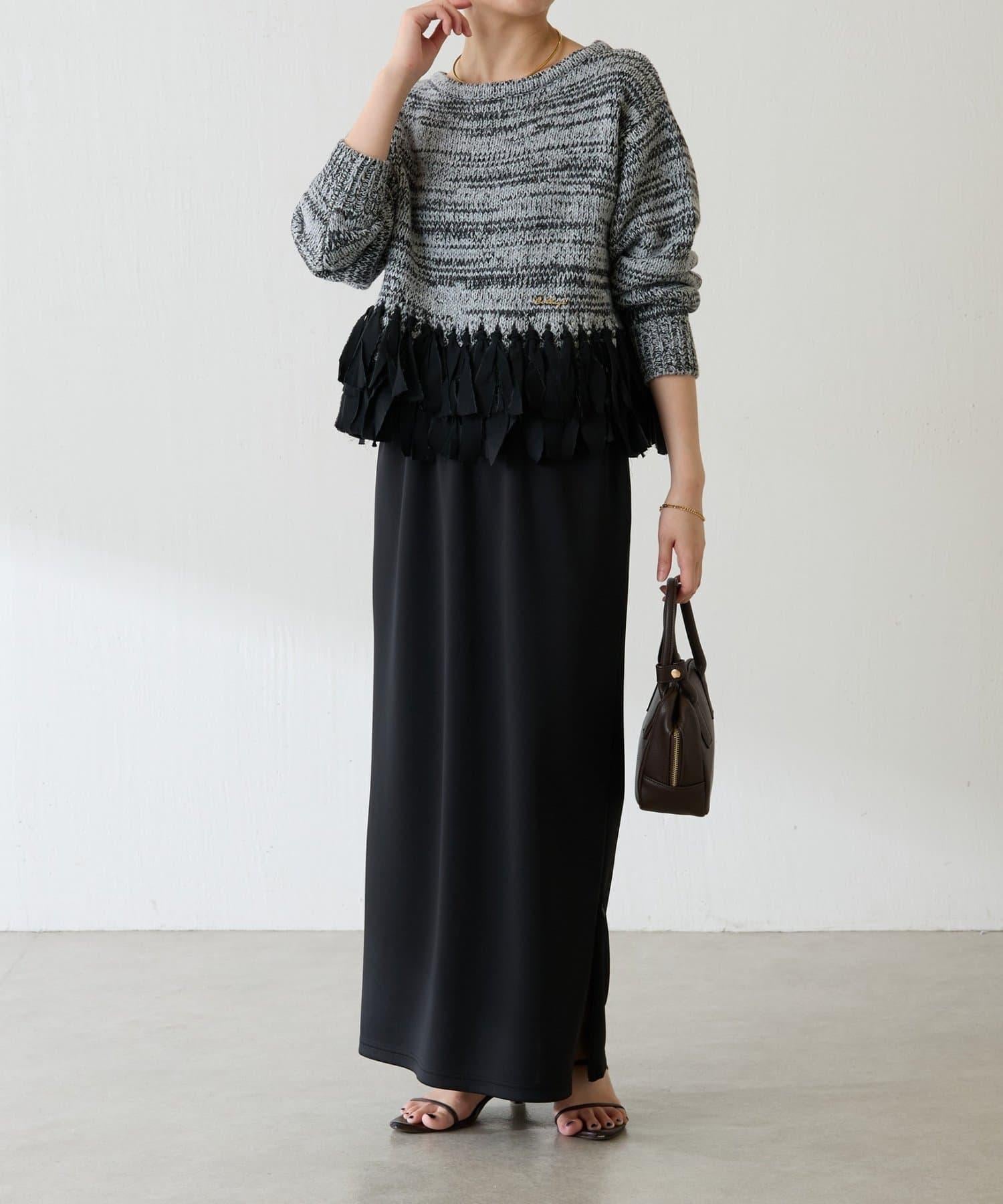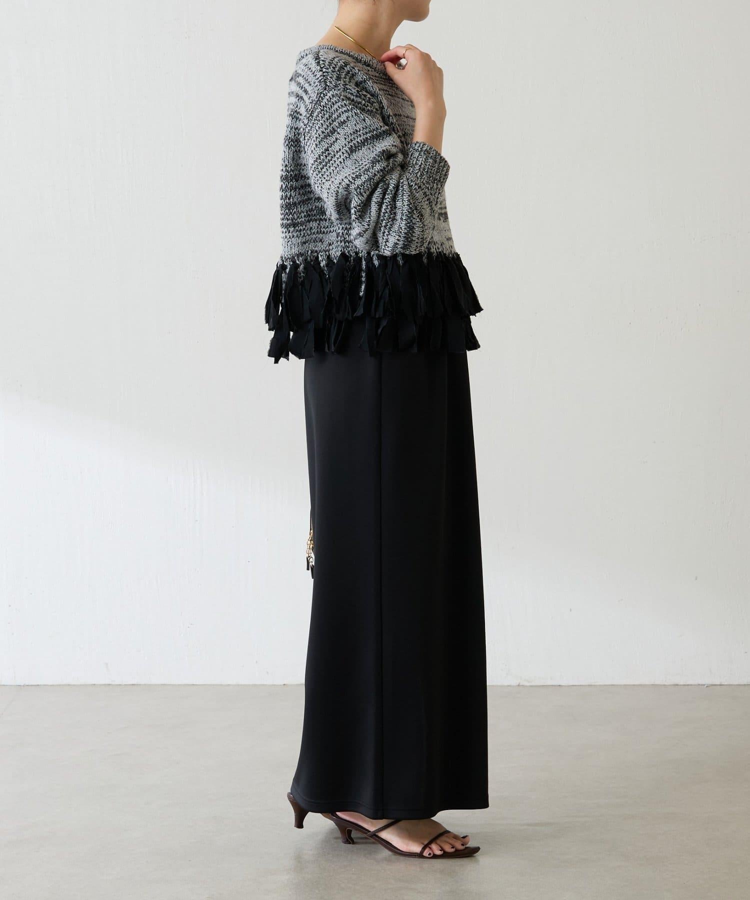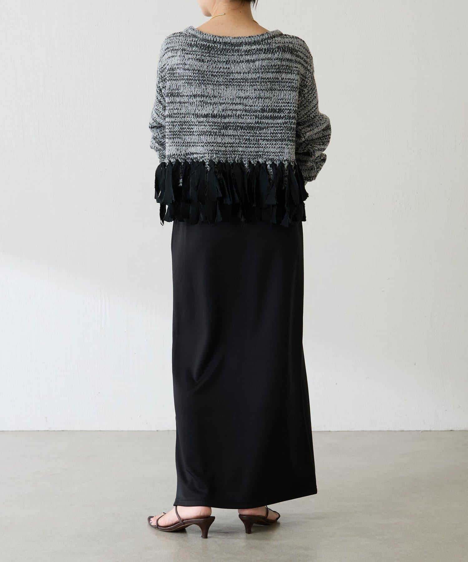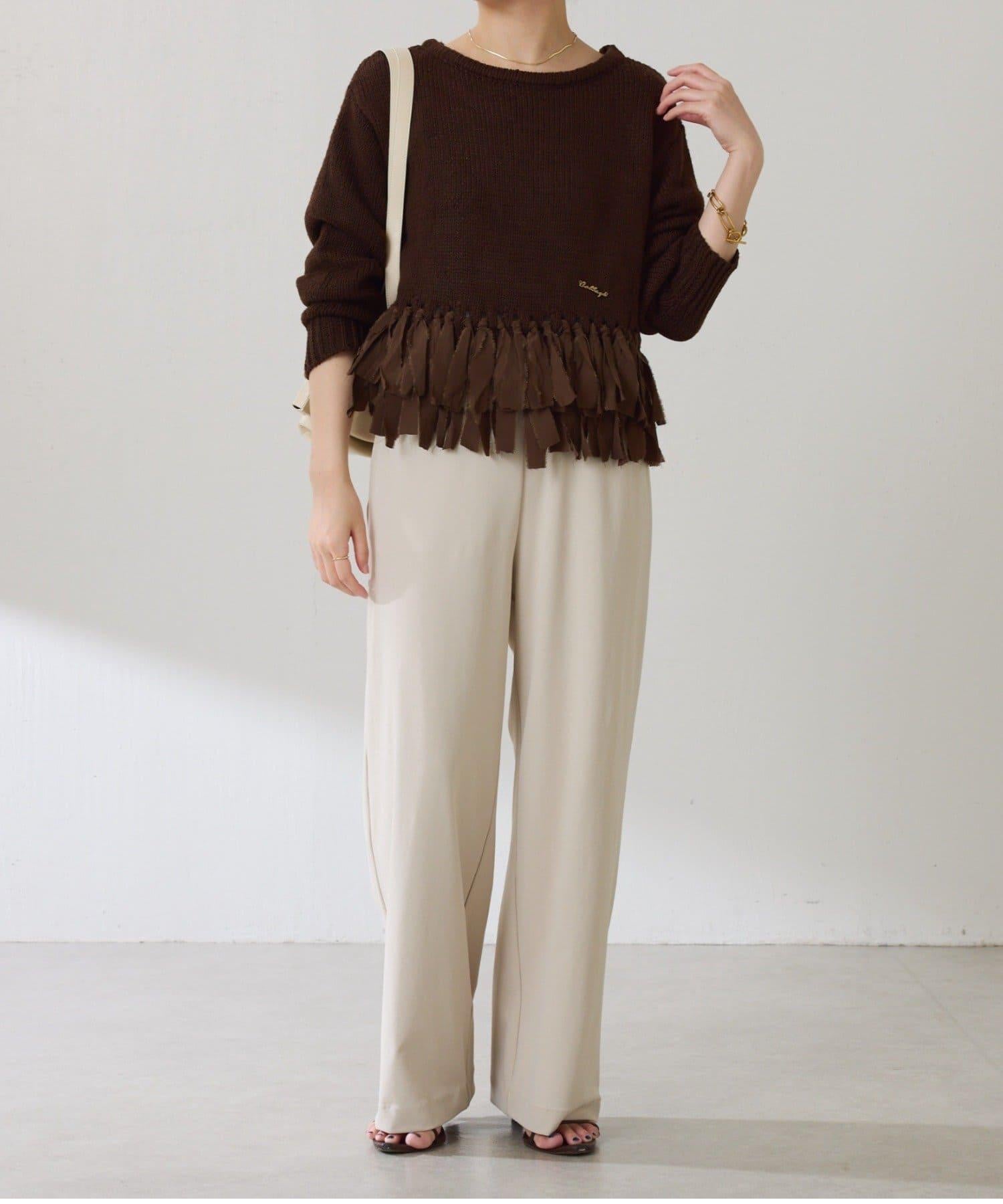 這款針織衫的下襬繫有絲帶,並有不同材質的流蘇。