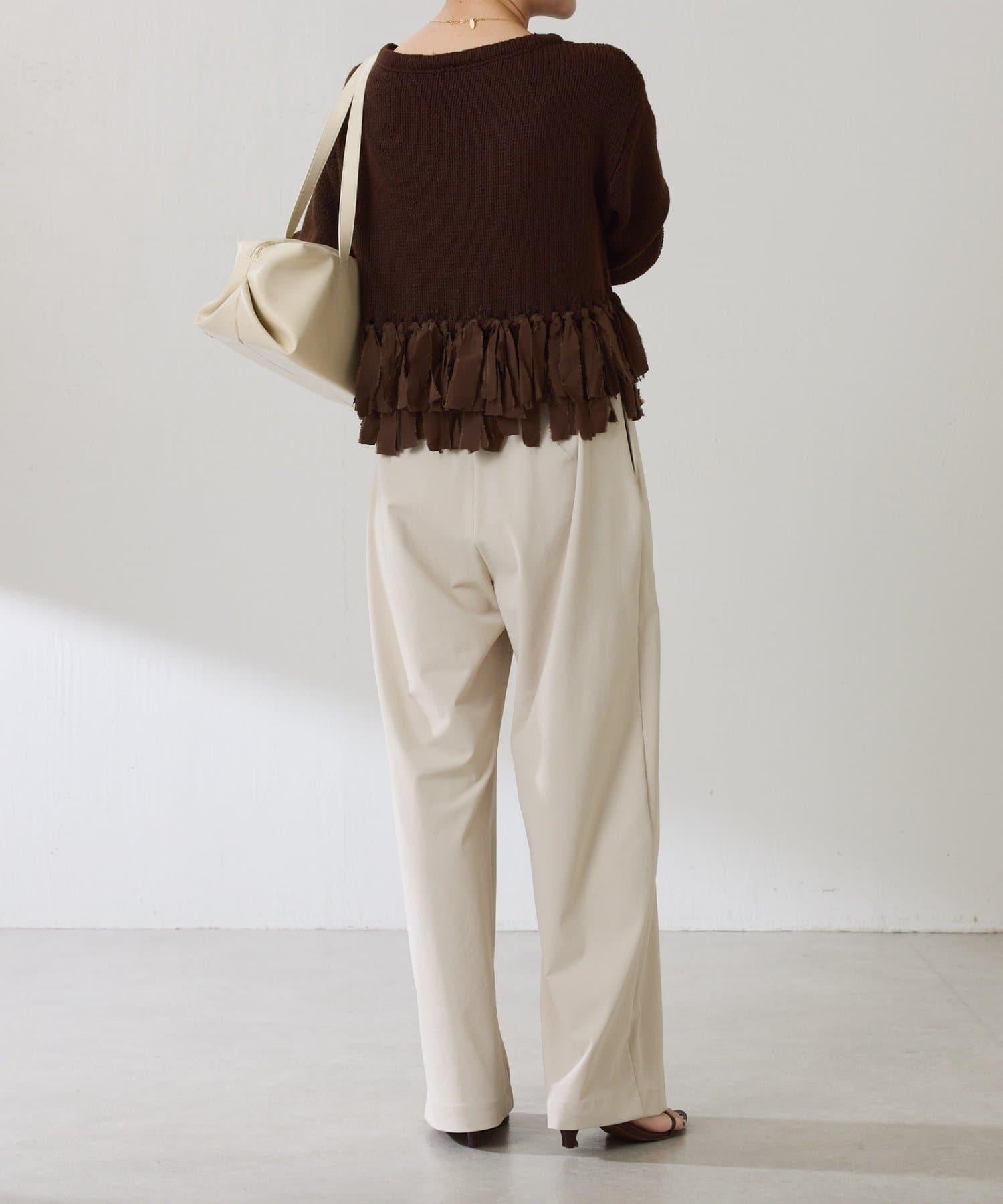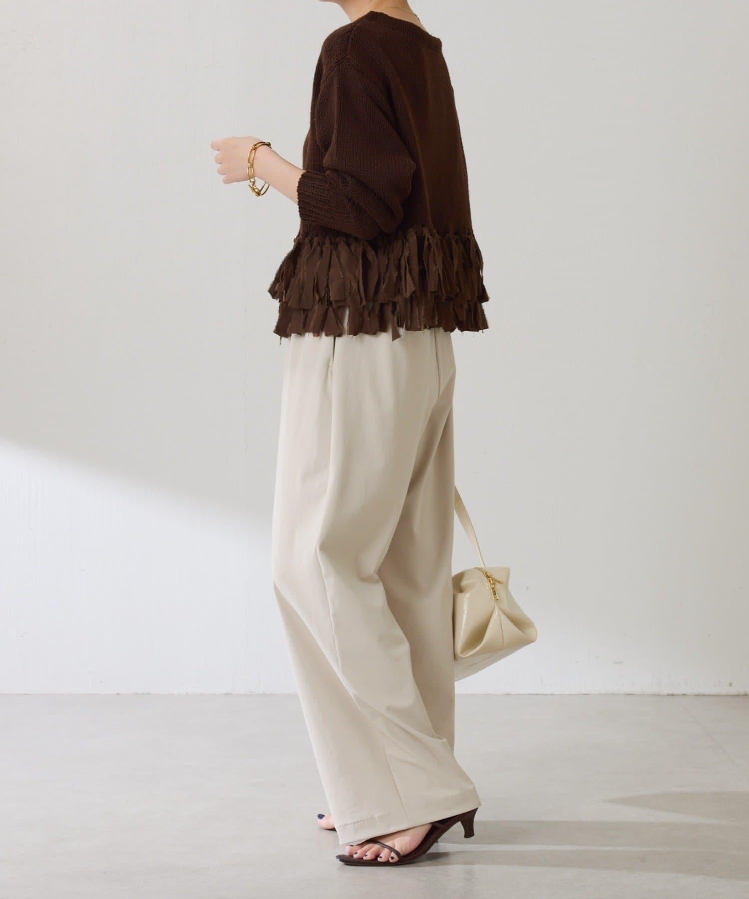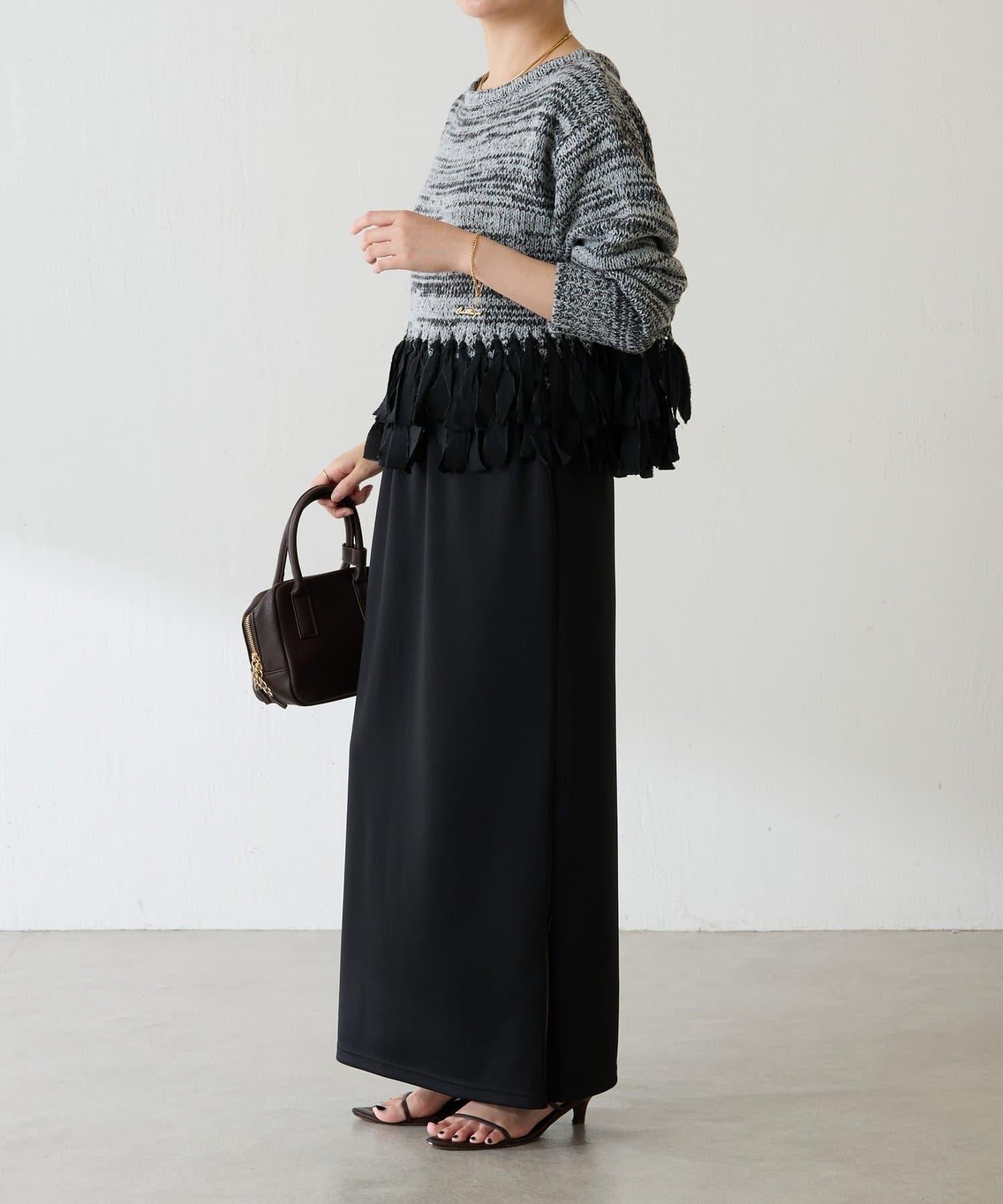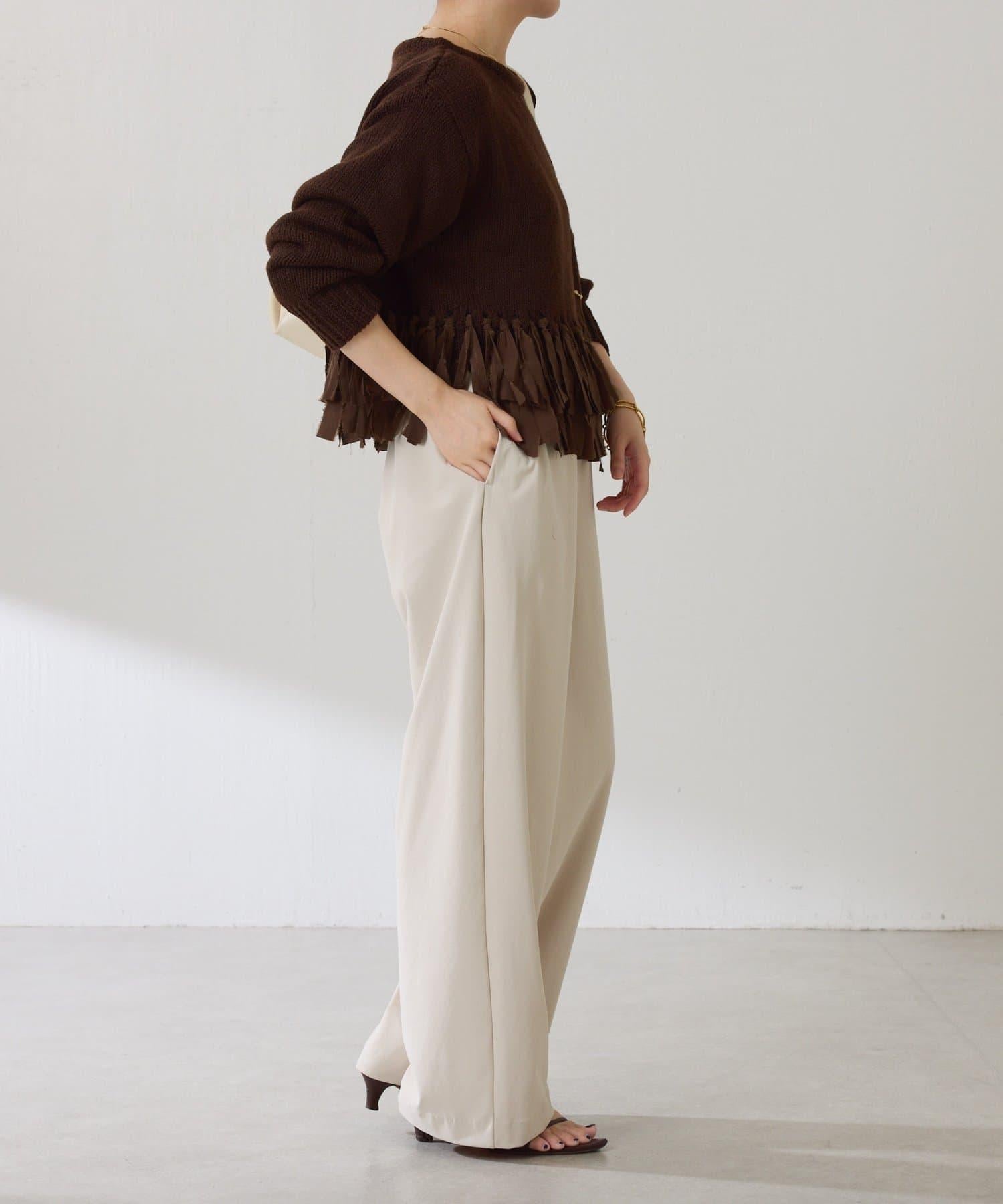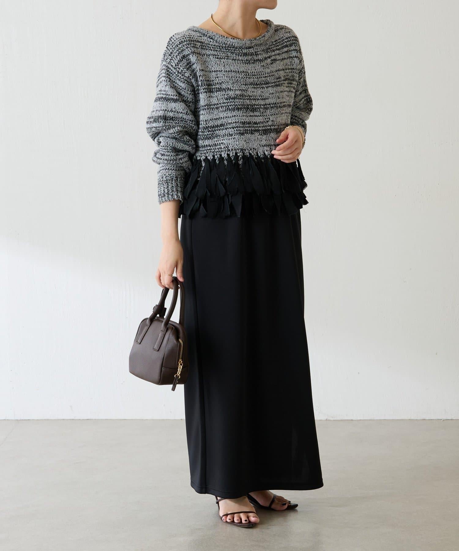 這款針織衫的下襬繫有絲帶,並有不同材質的流蘇。