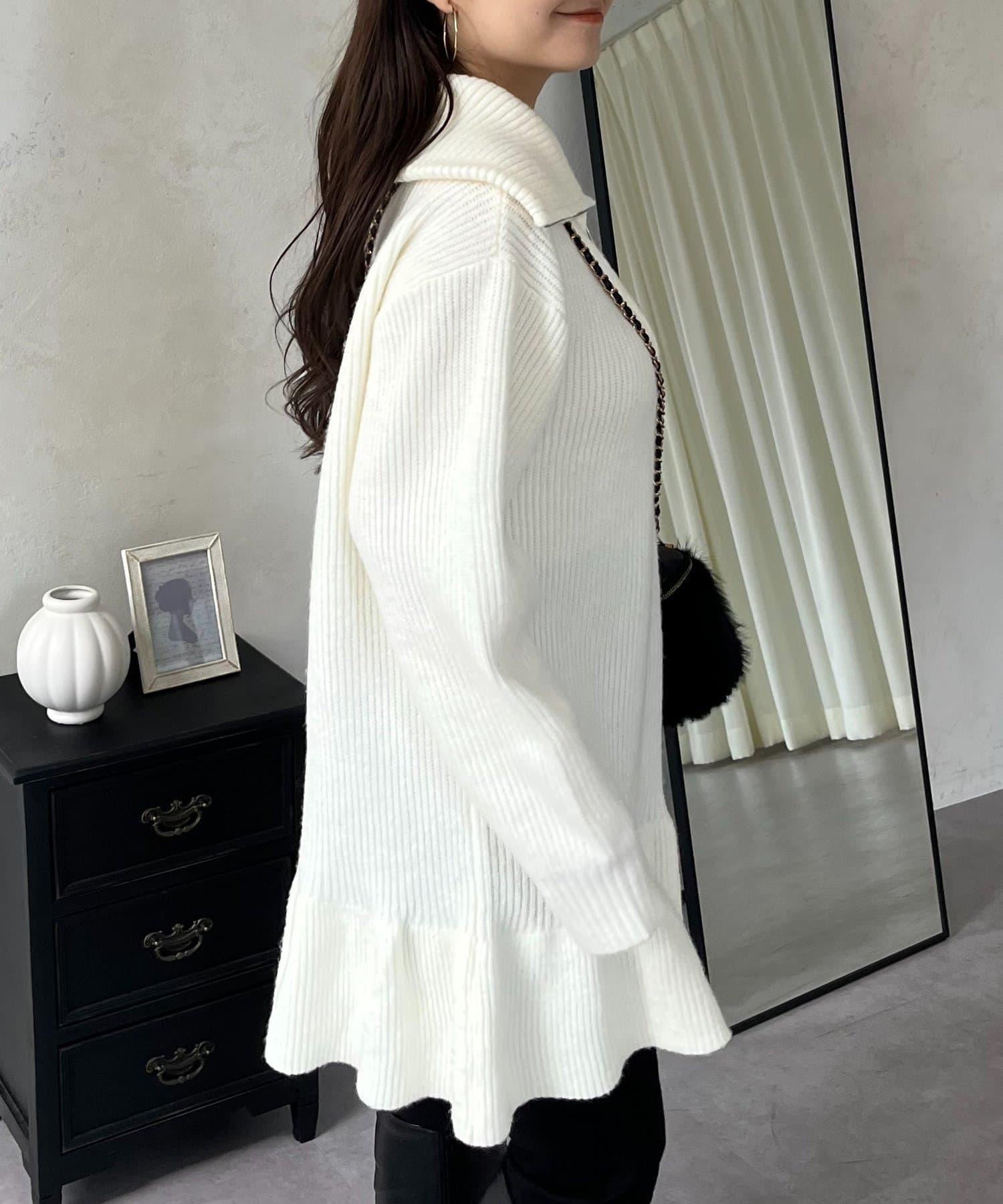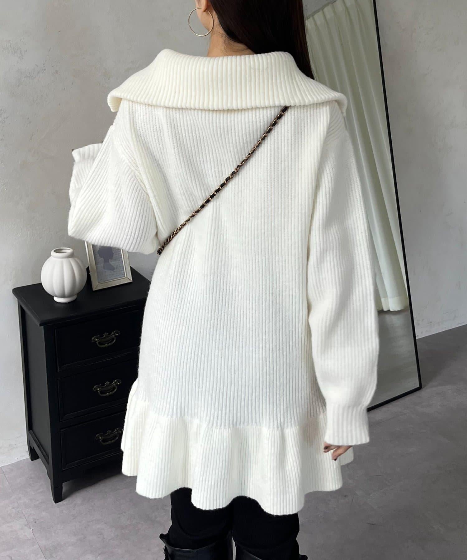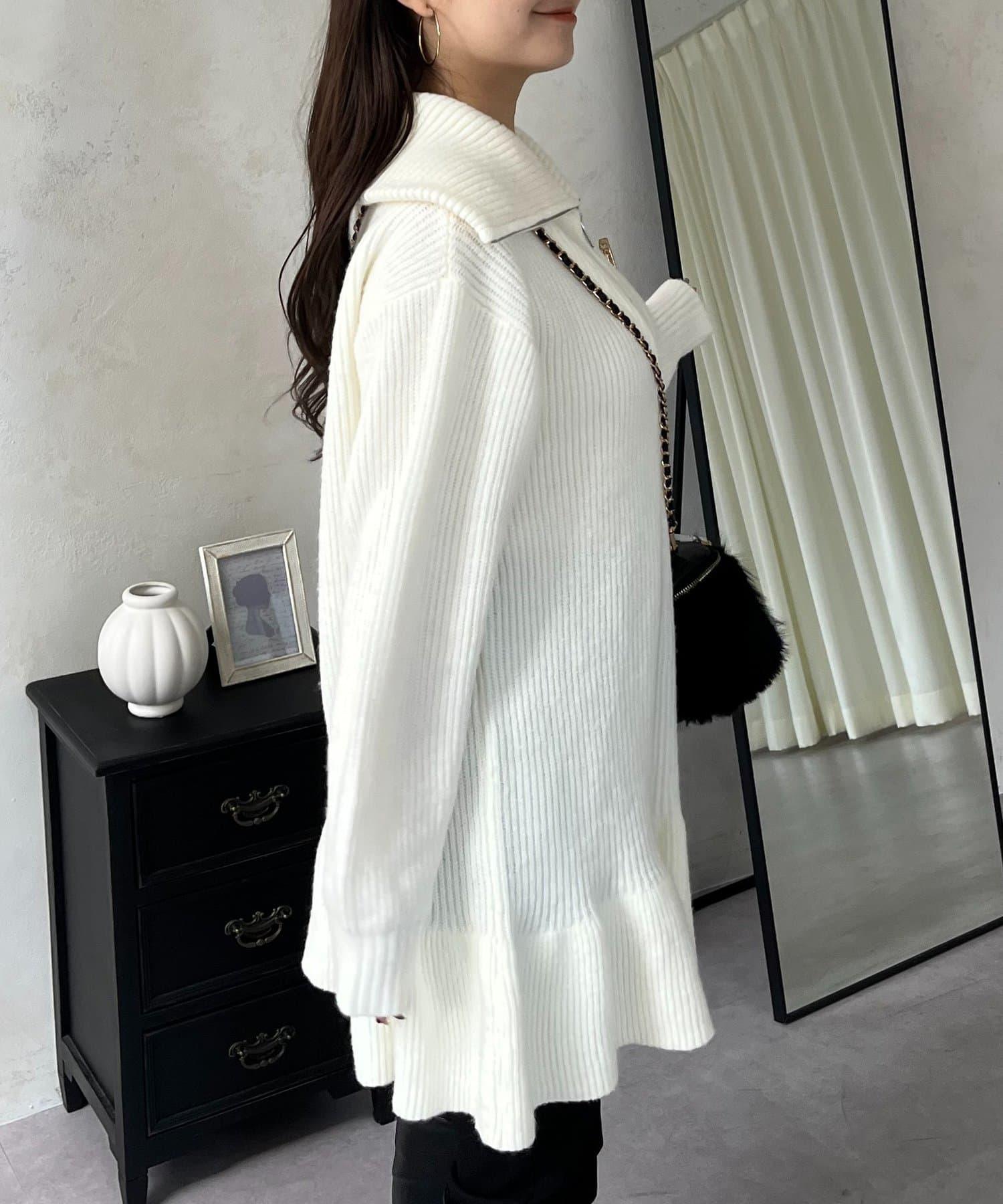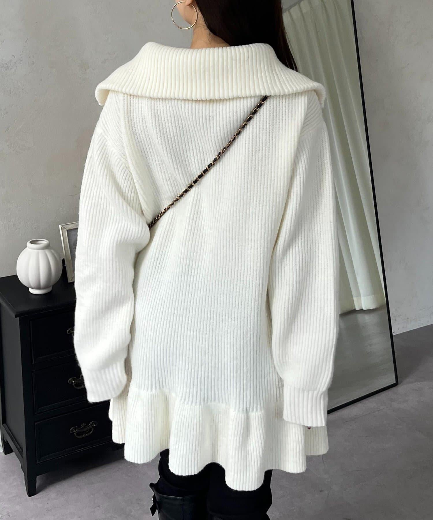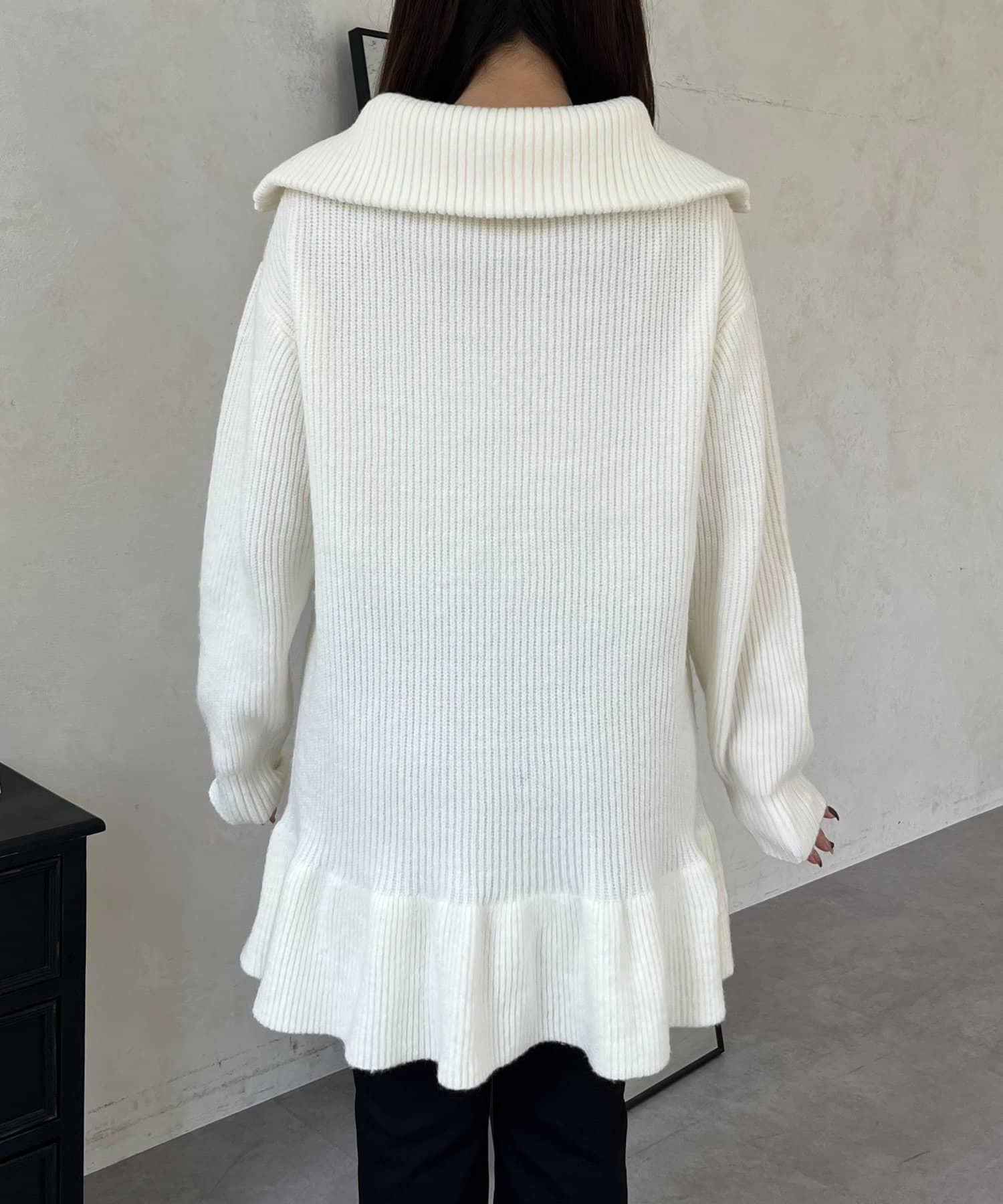 預約商品下襬荷葉邊半拉鍊A字針織衫