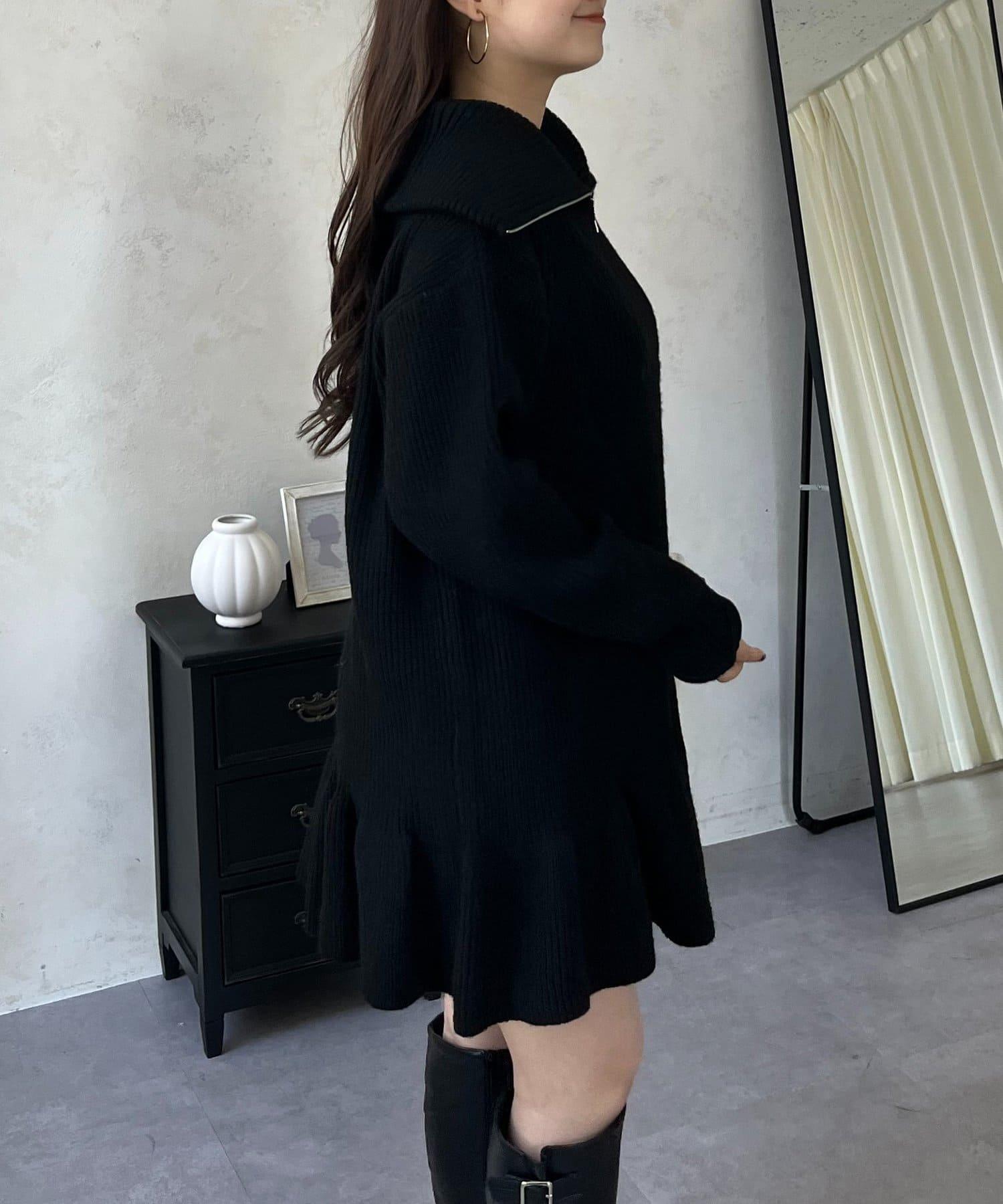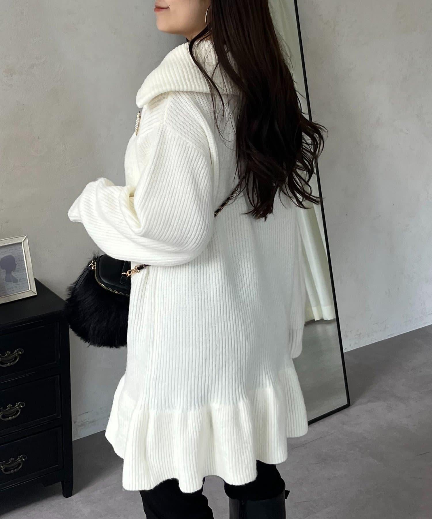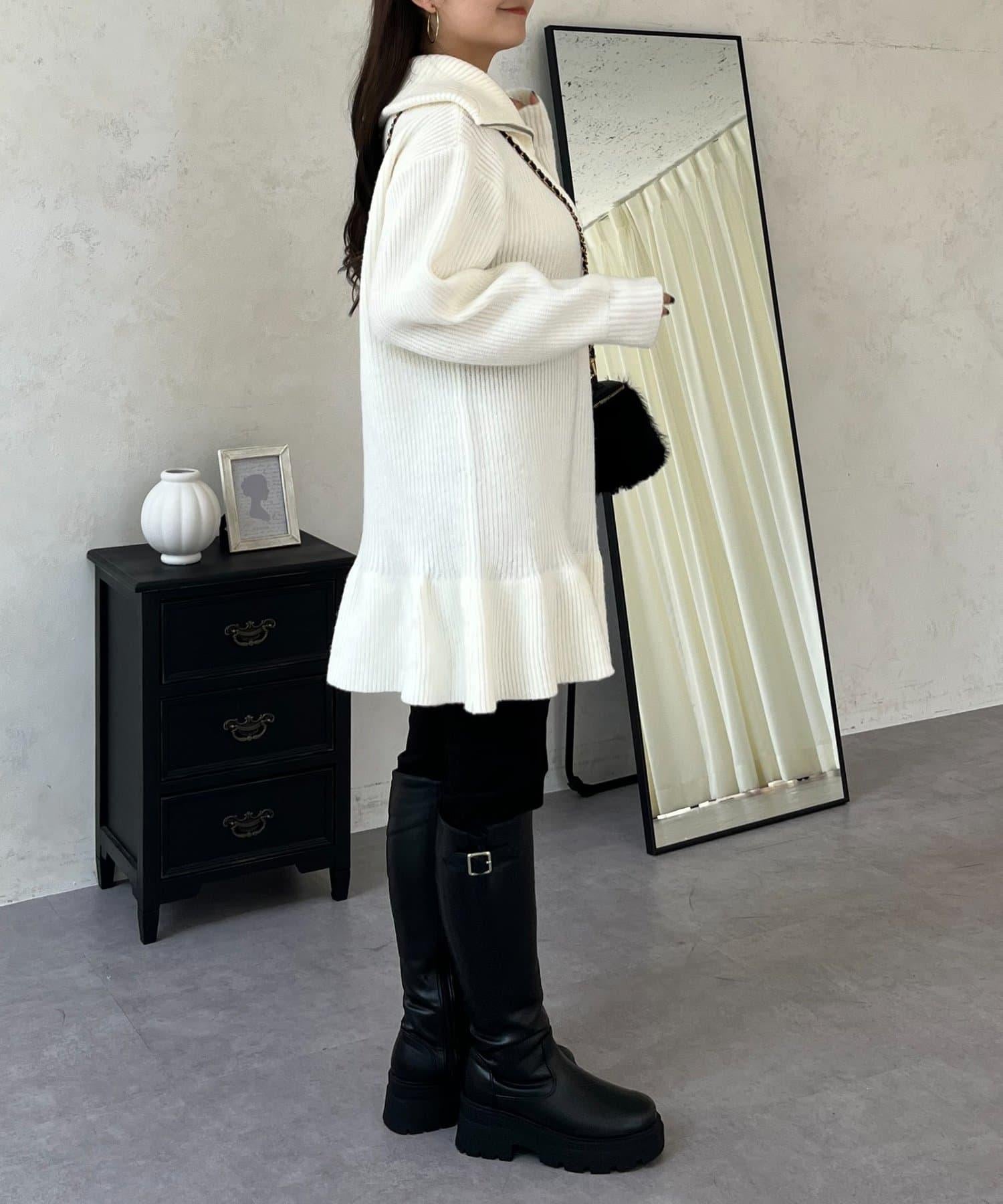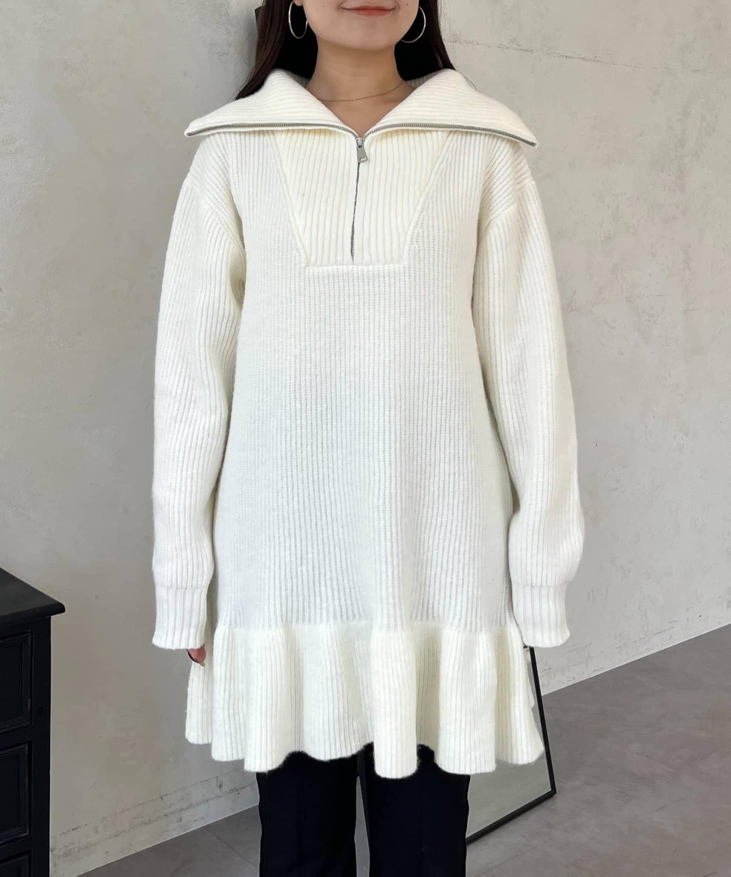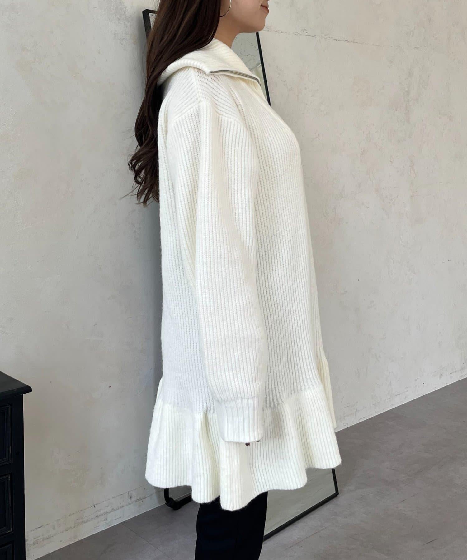 預約商品下襬荷葉邊半拉鍊A字針織衫