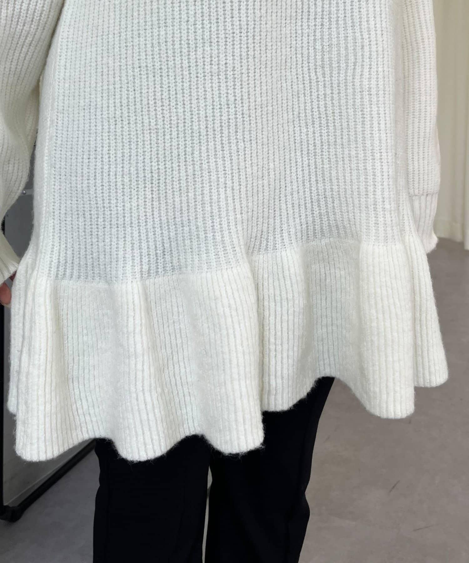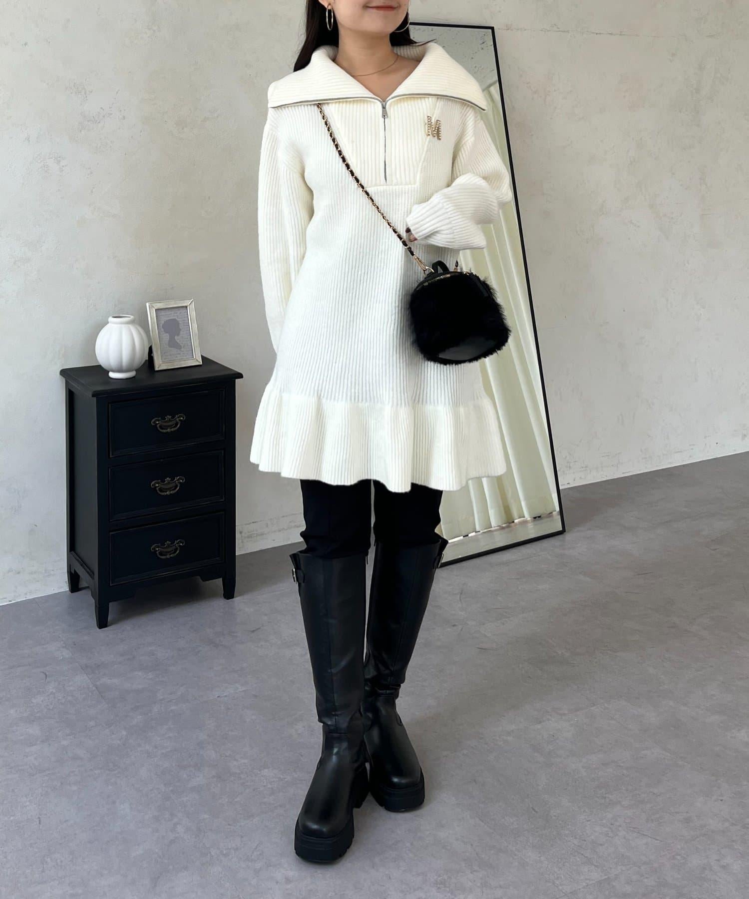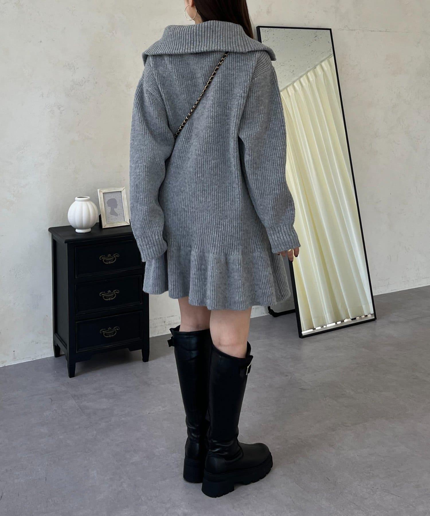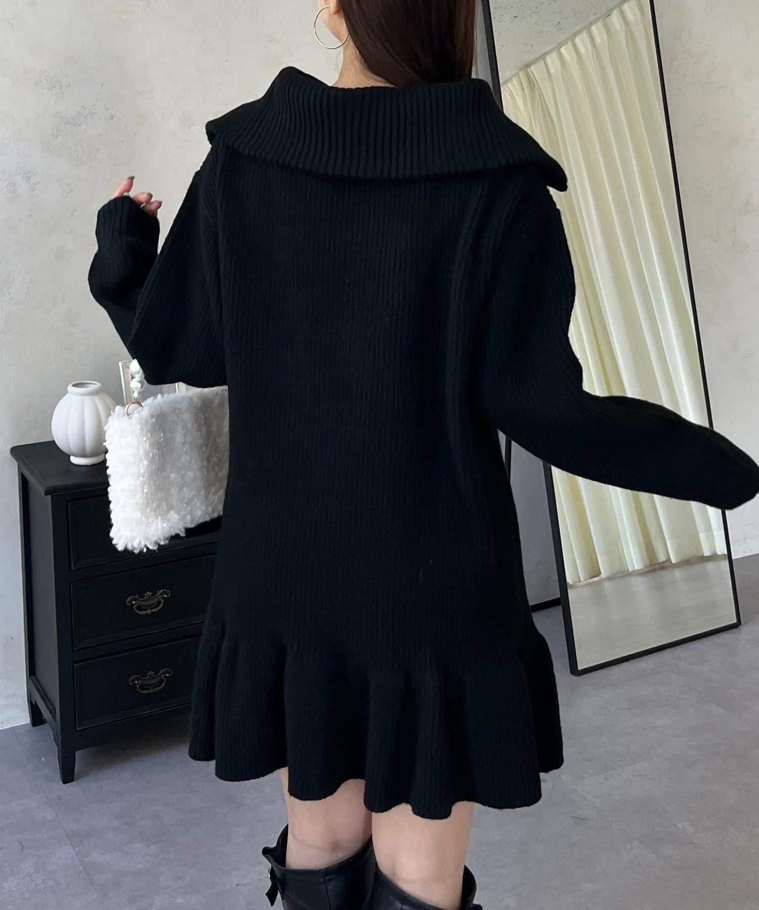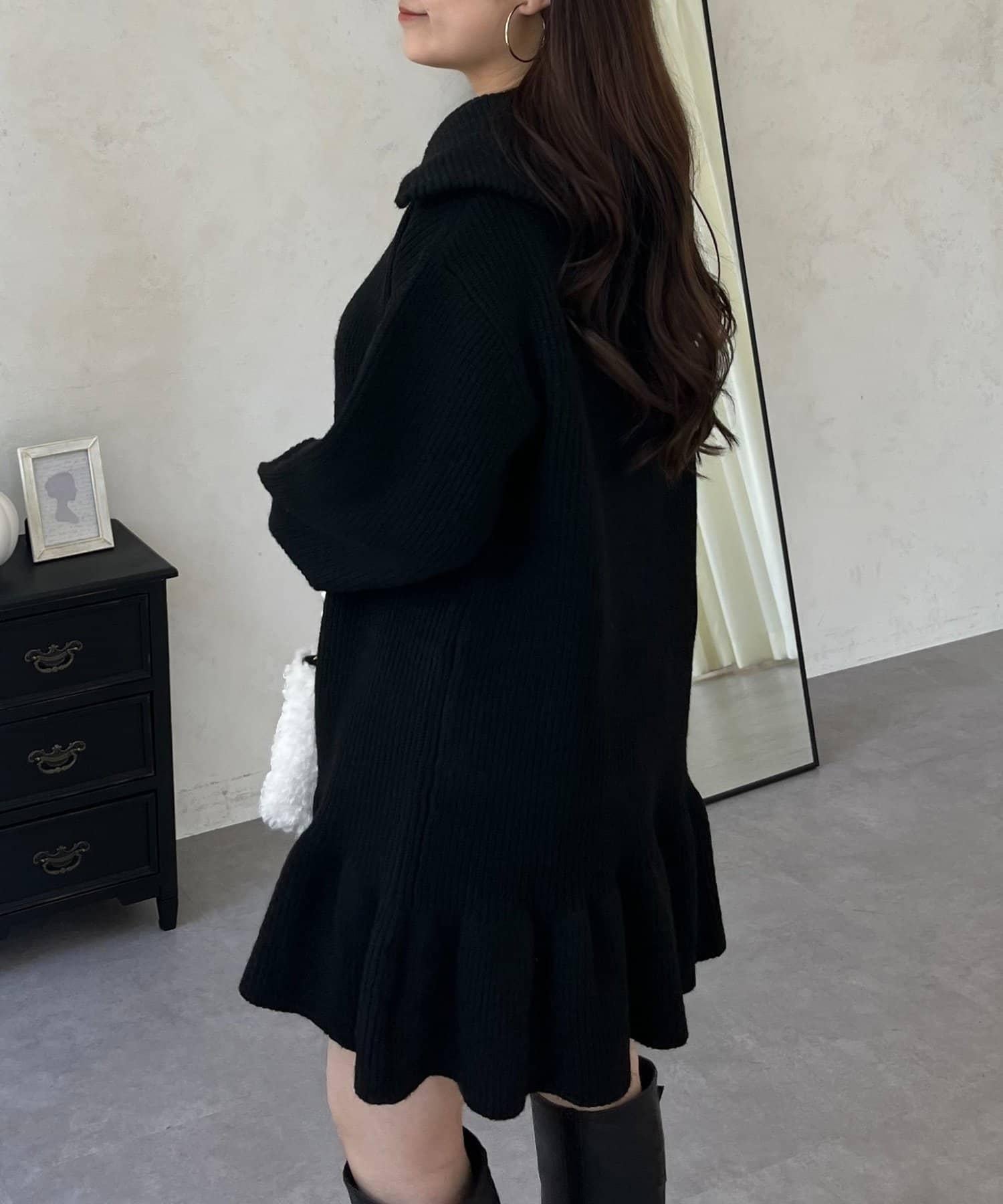 預約商品下襬荷葉邊半拉鍊A字針織衫