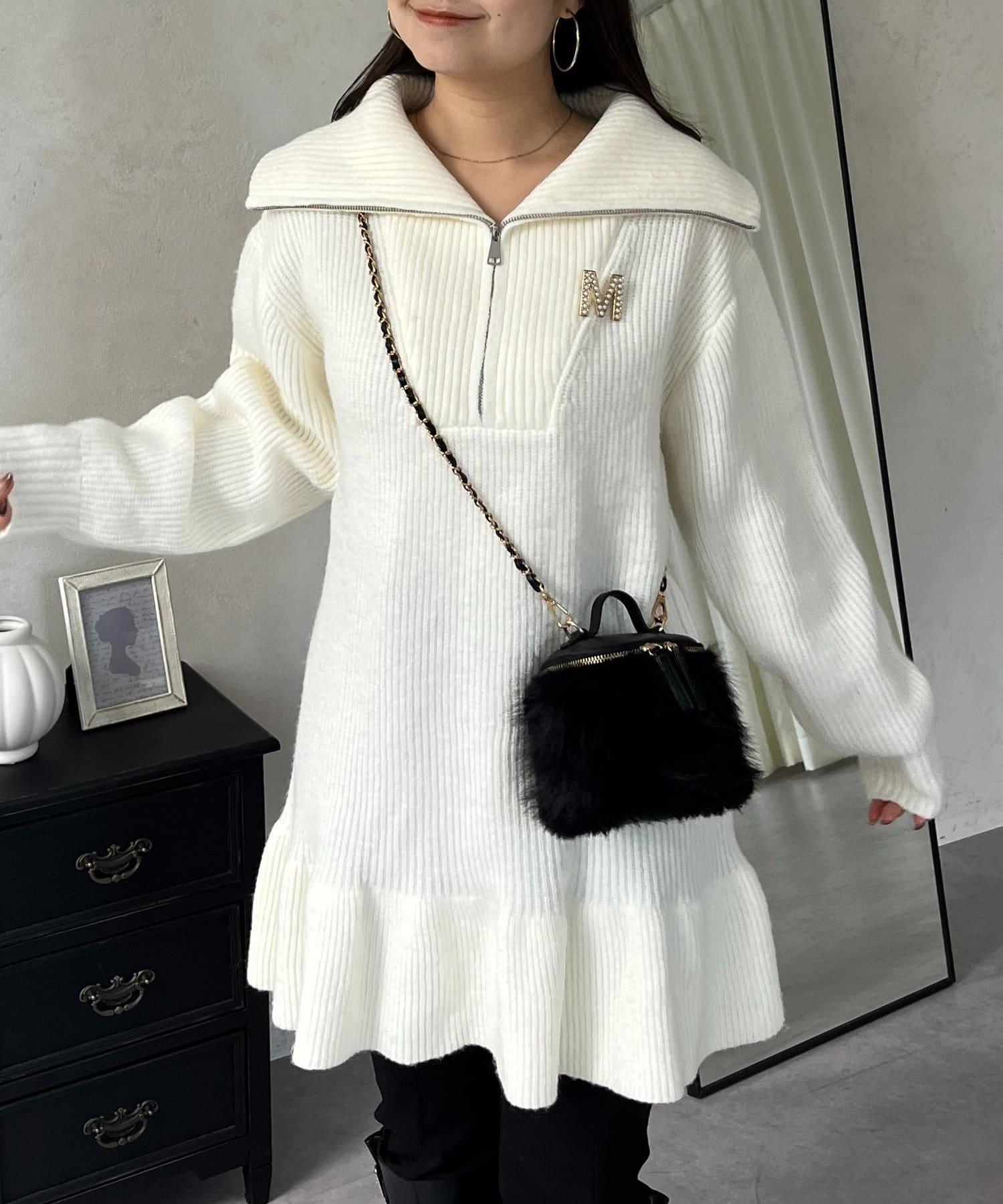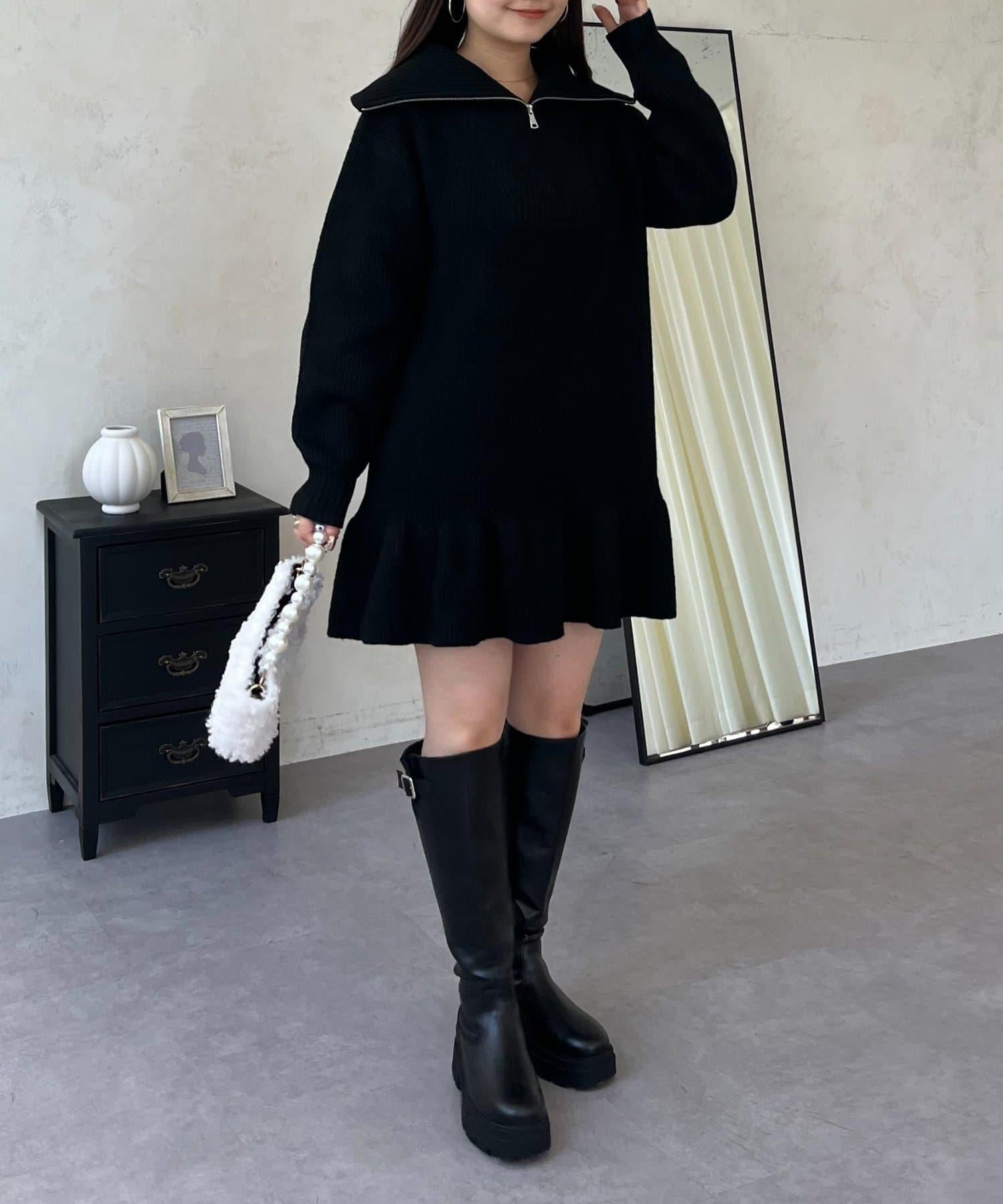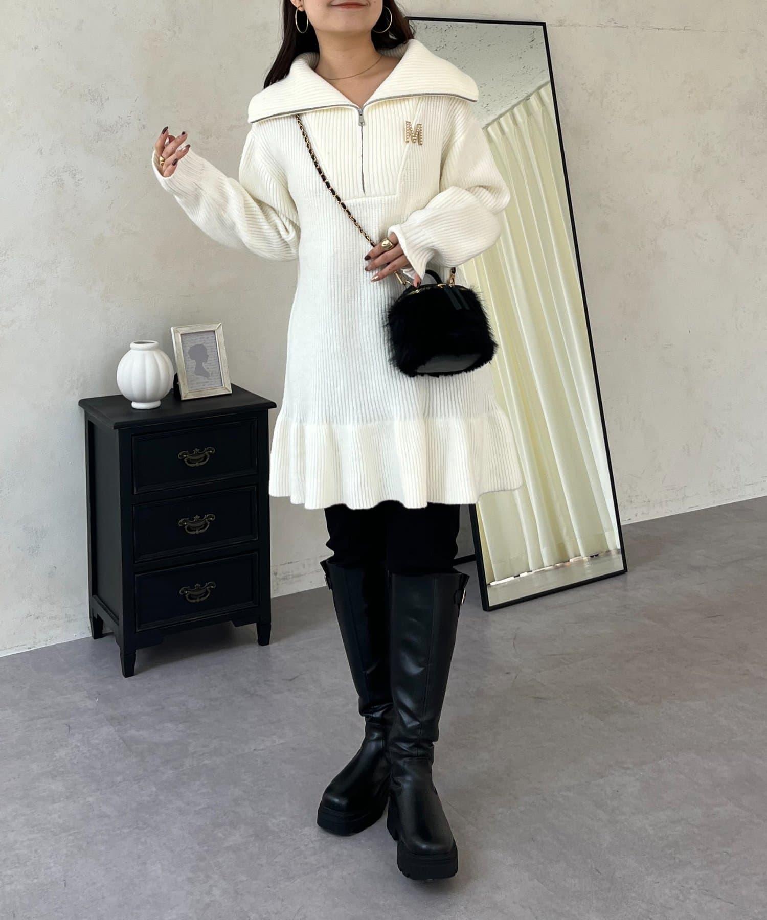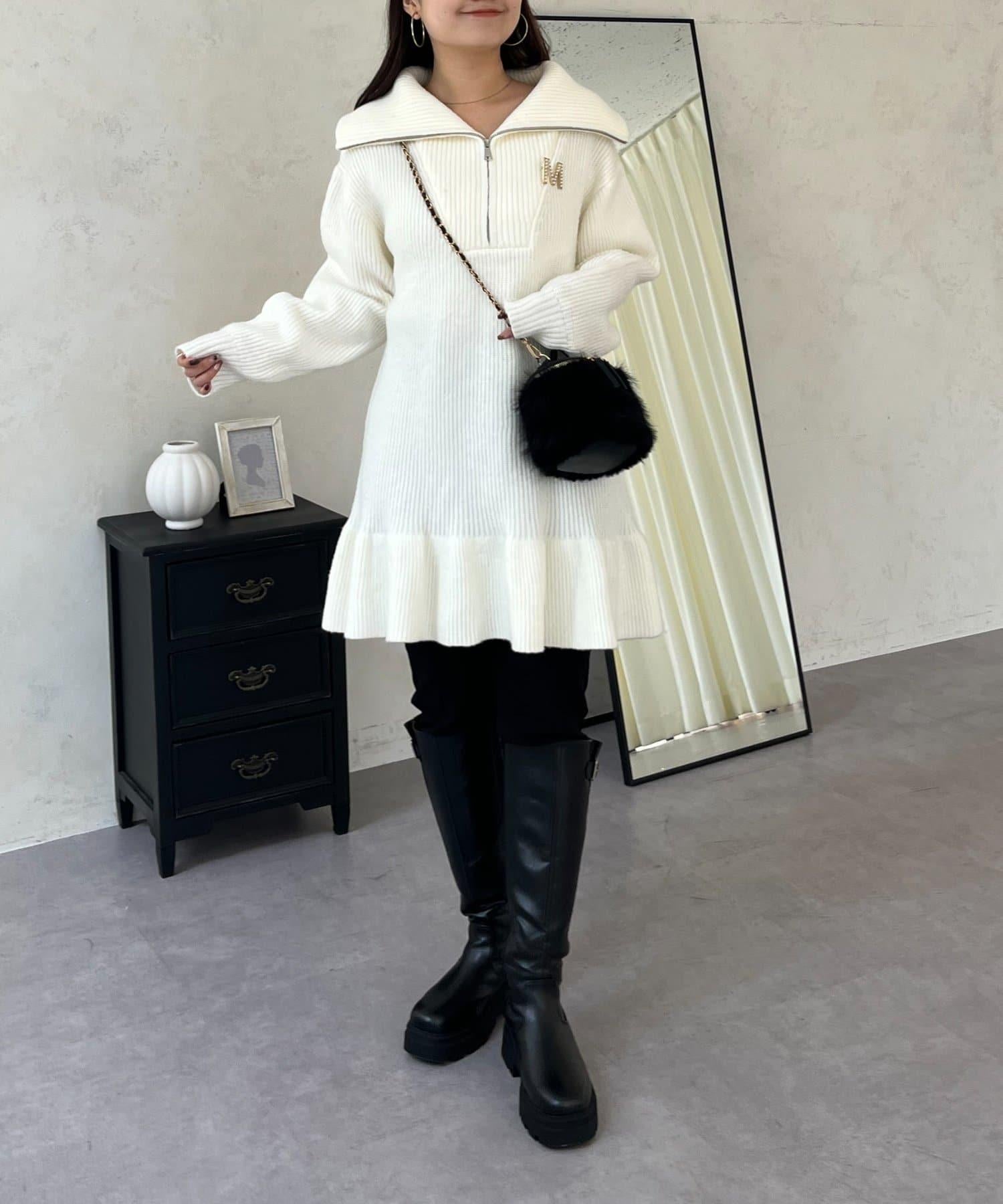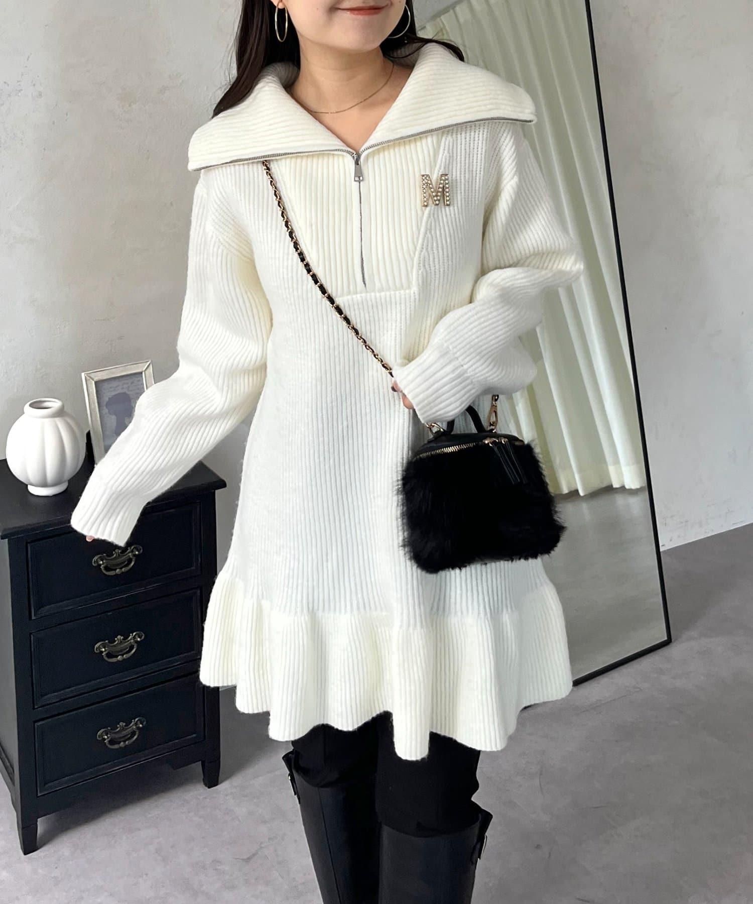 預約商品下襬荷葉邊半拉鍊A字針織衫