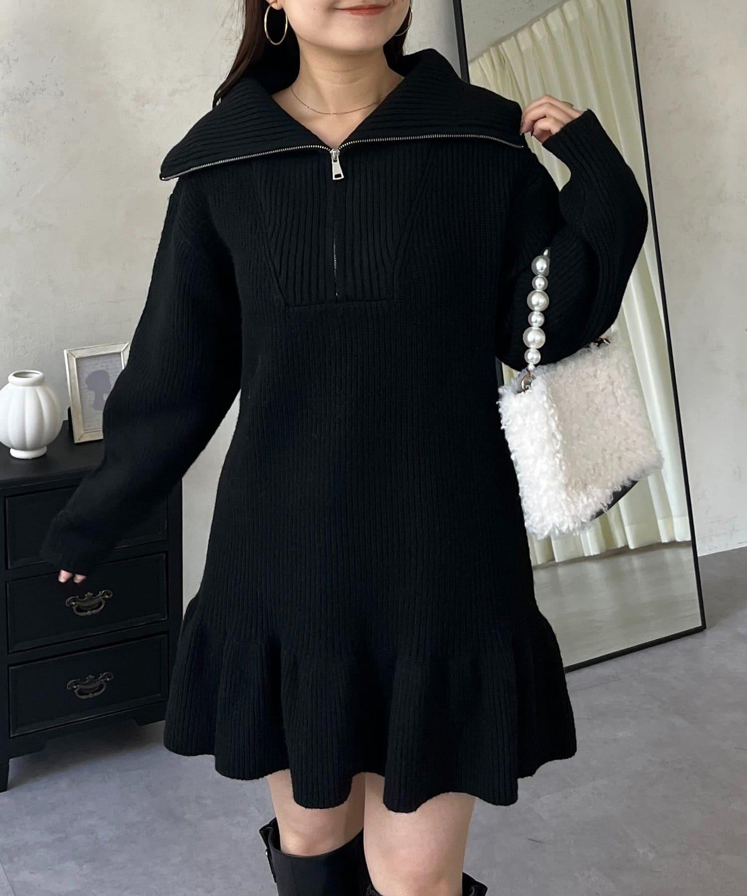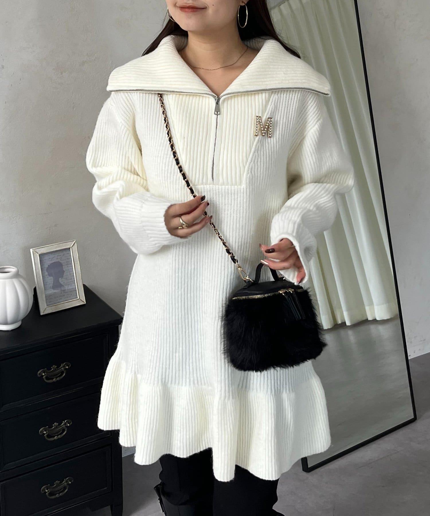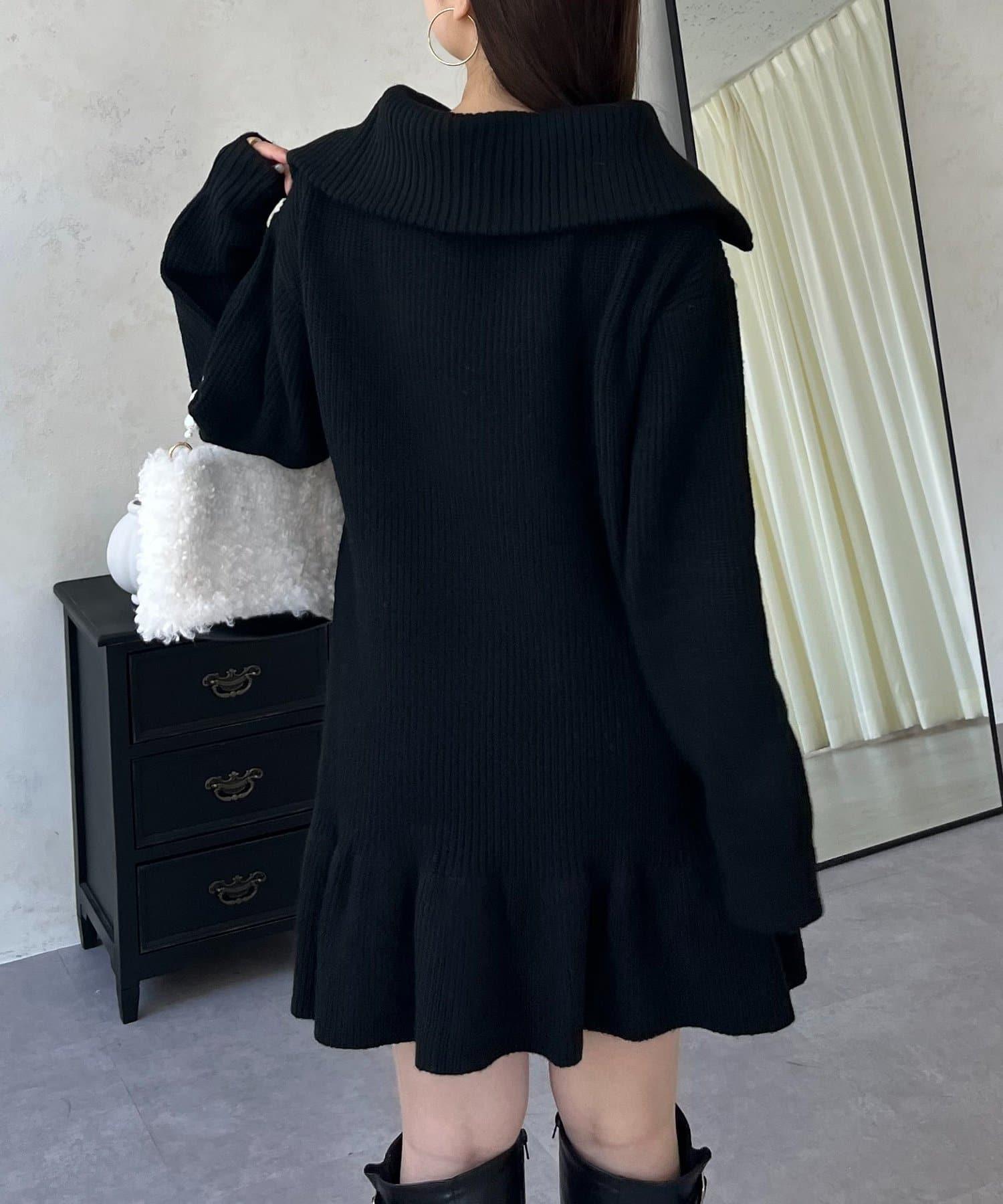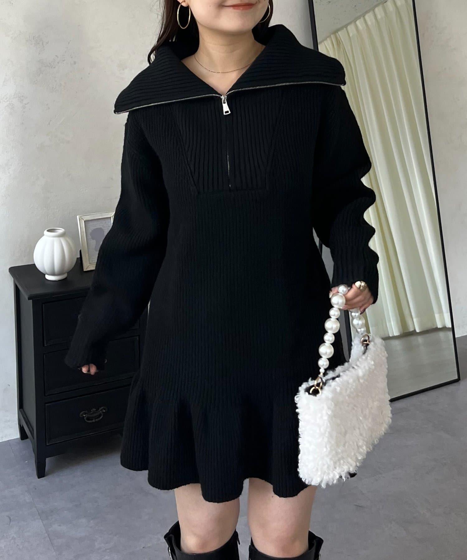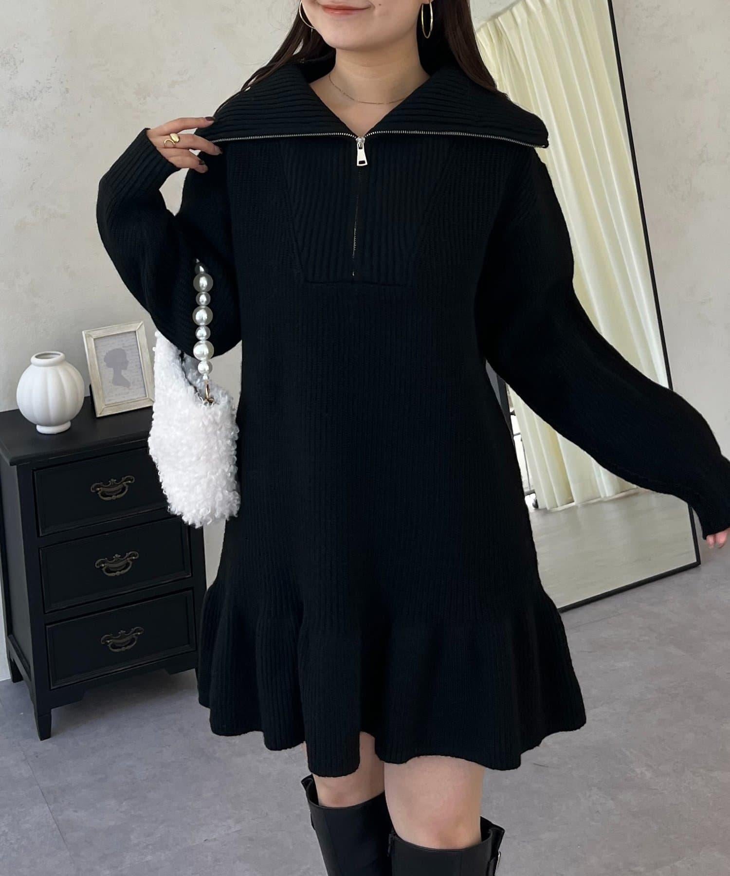 預約商品下襬荷葉邊半拉鍊A字針織衫