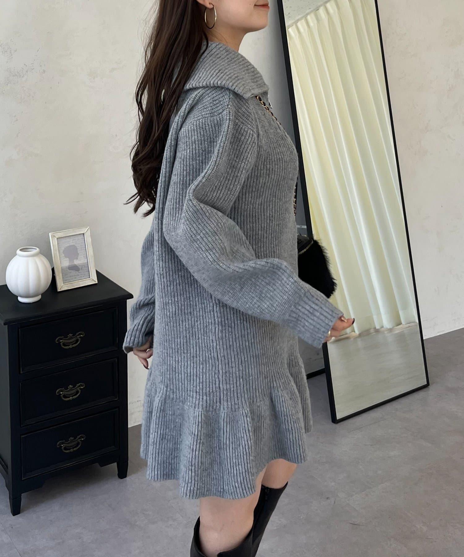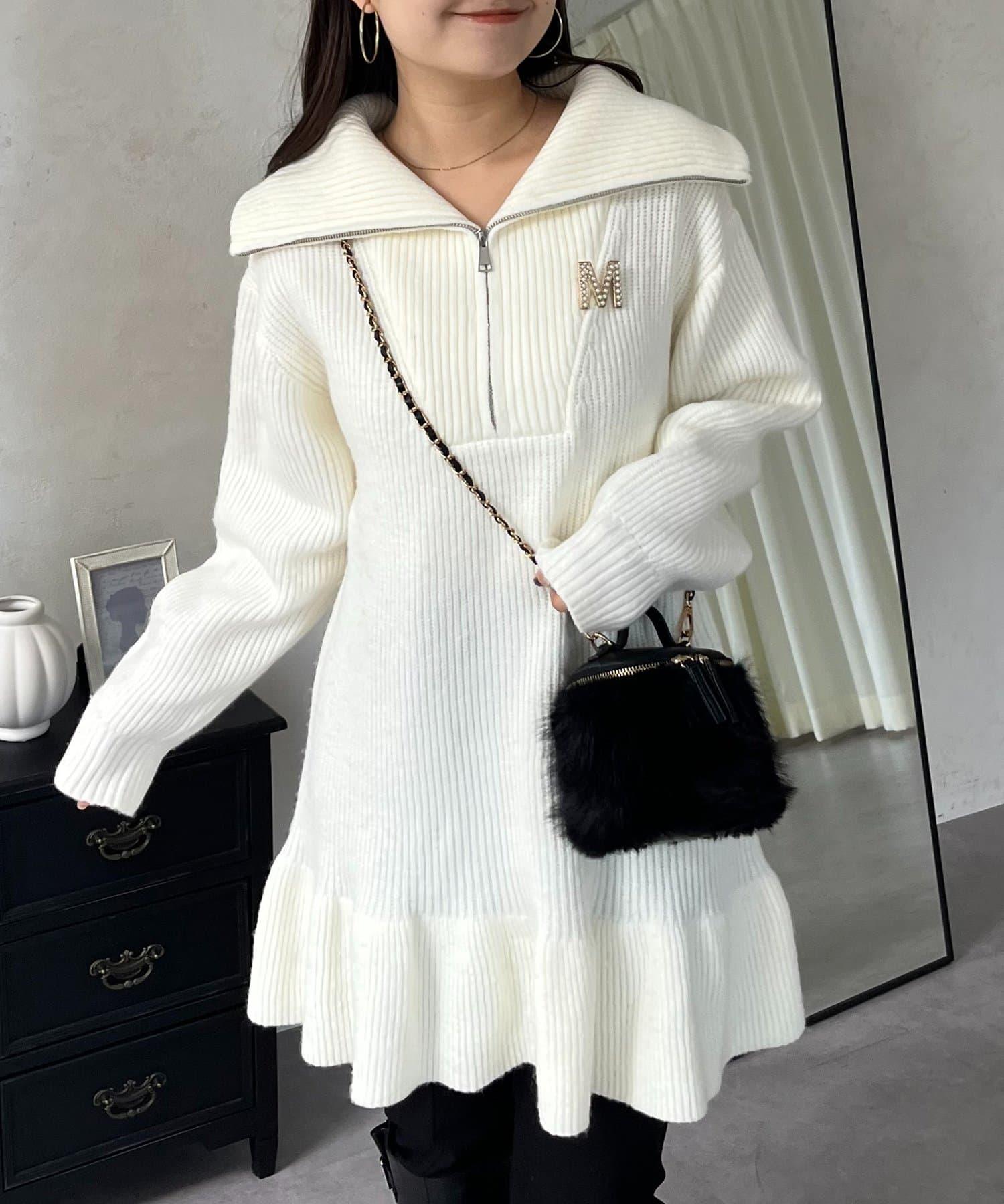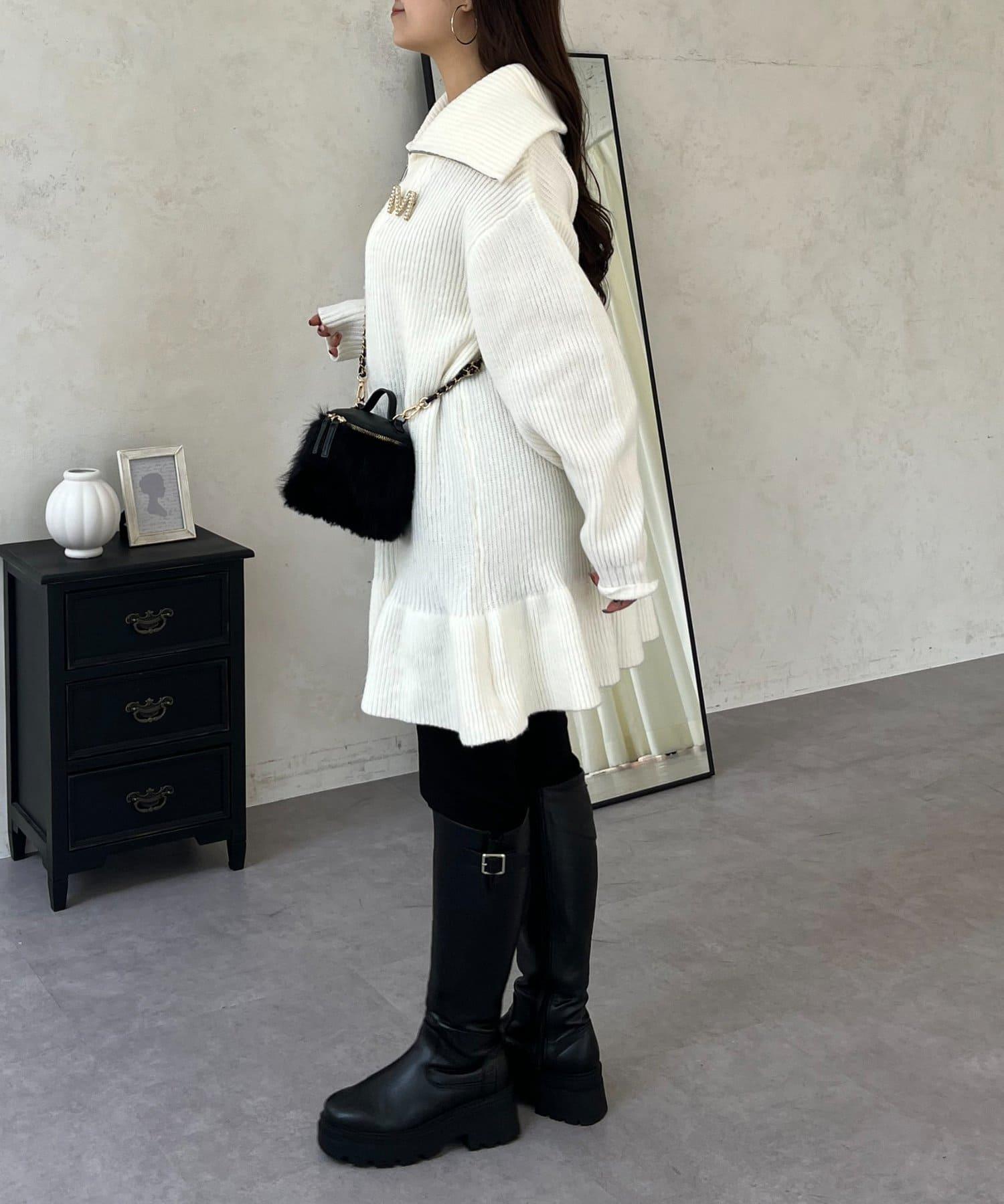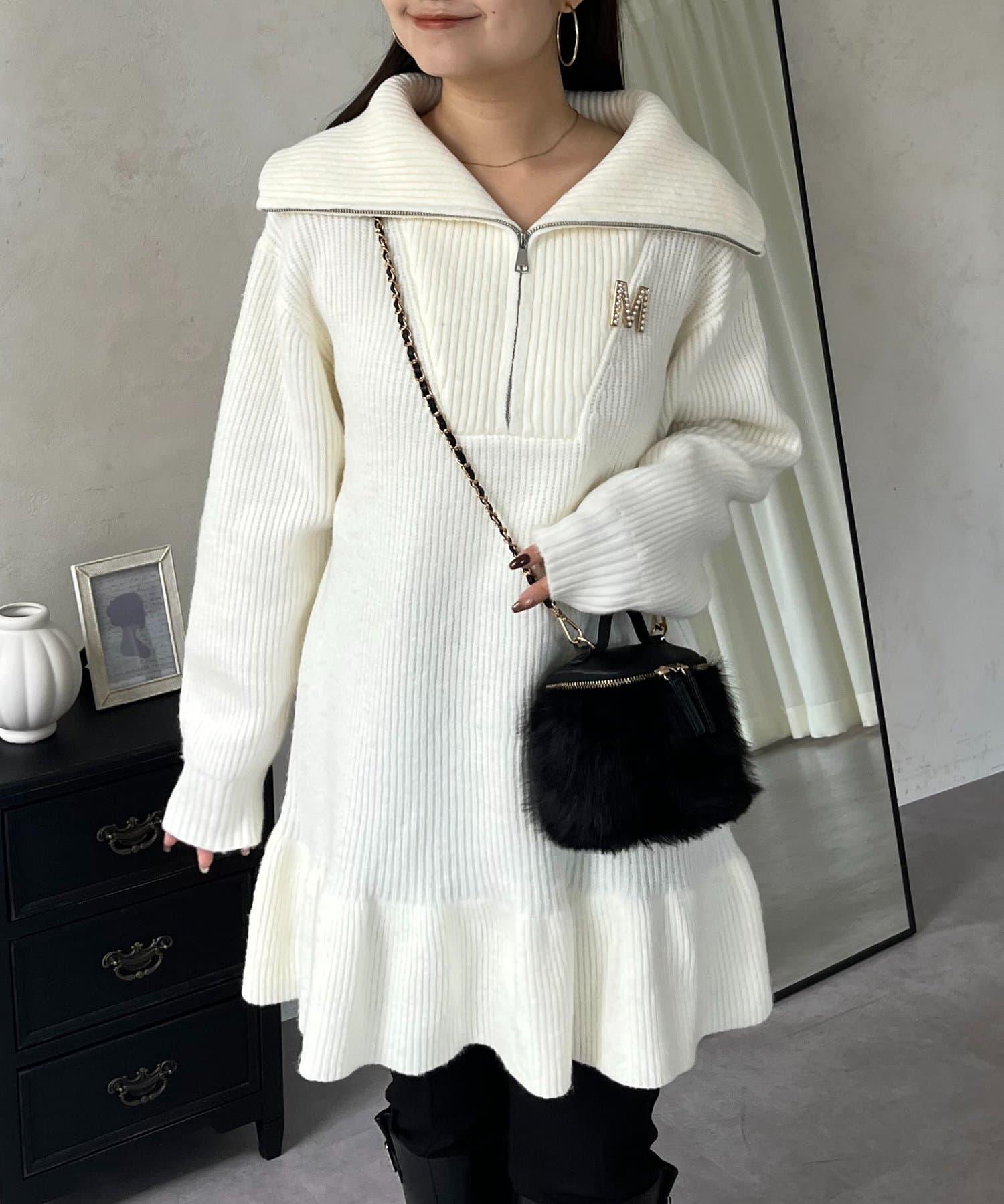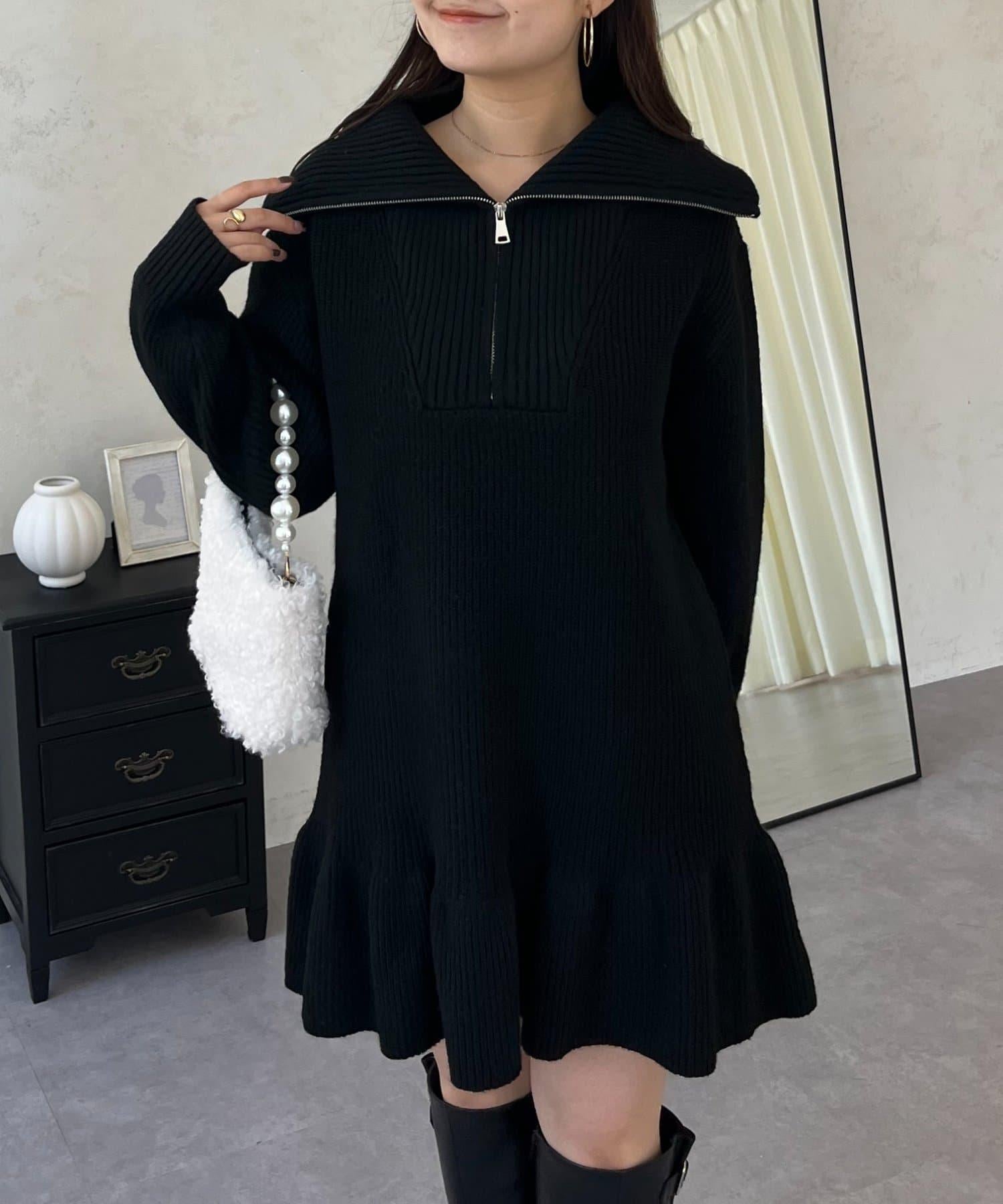 預約商品下襬荷葉邊半拉鍊A字針織衫