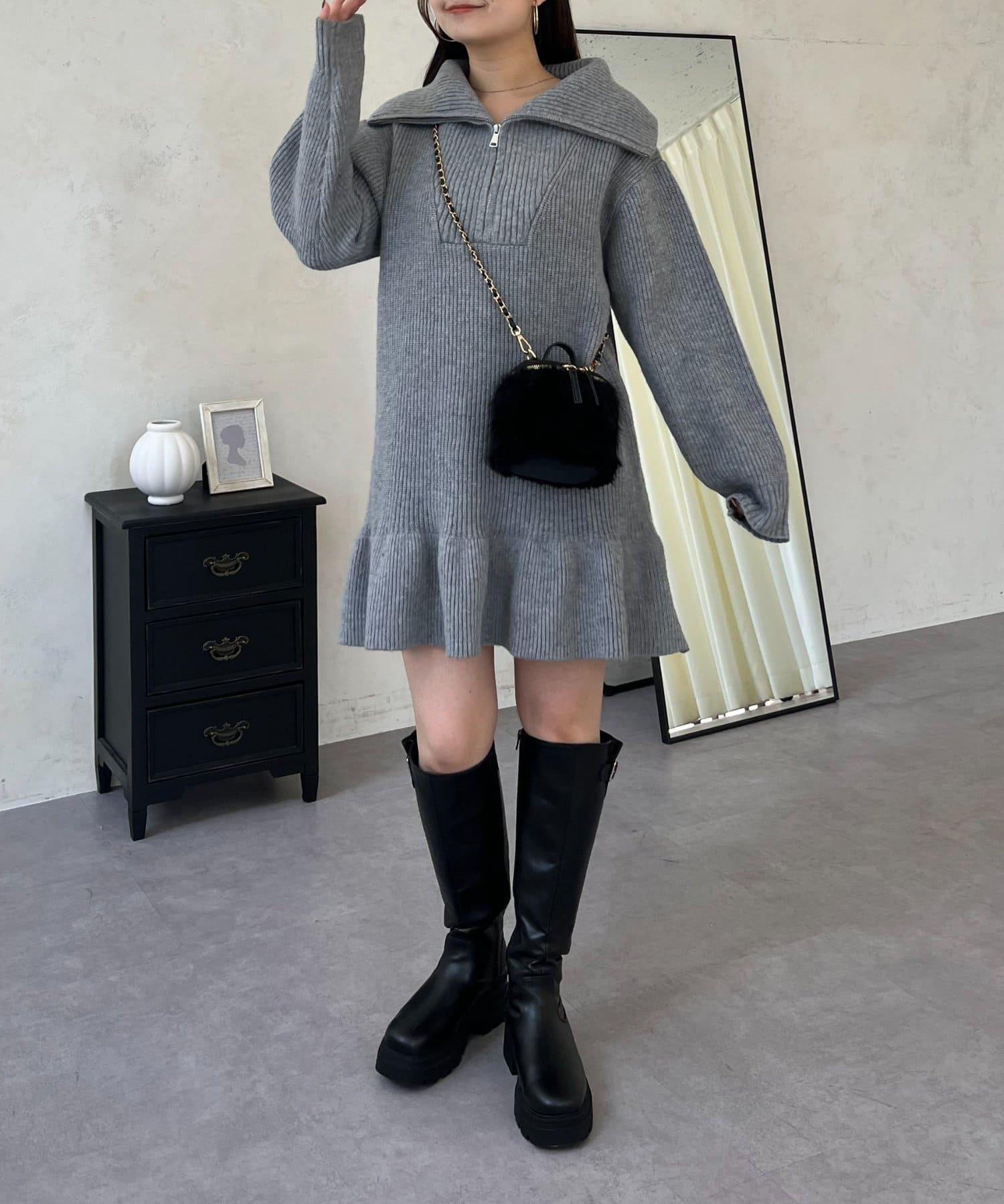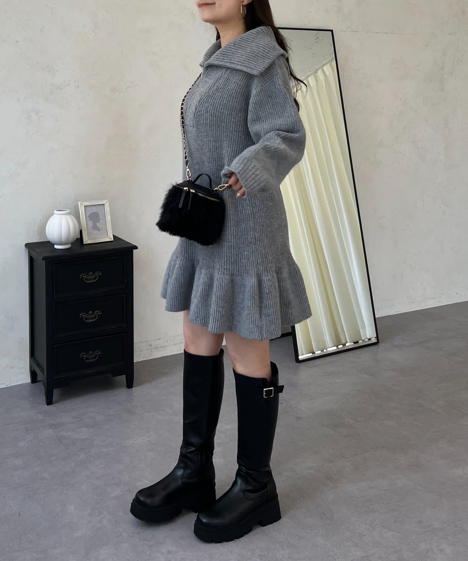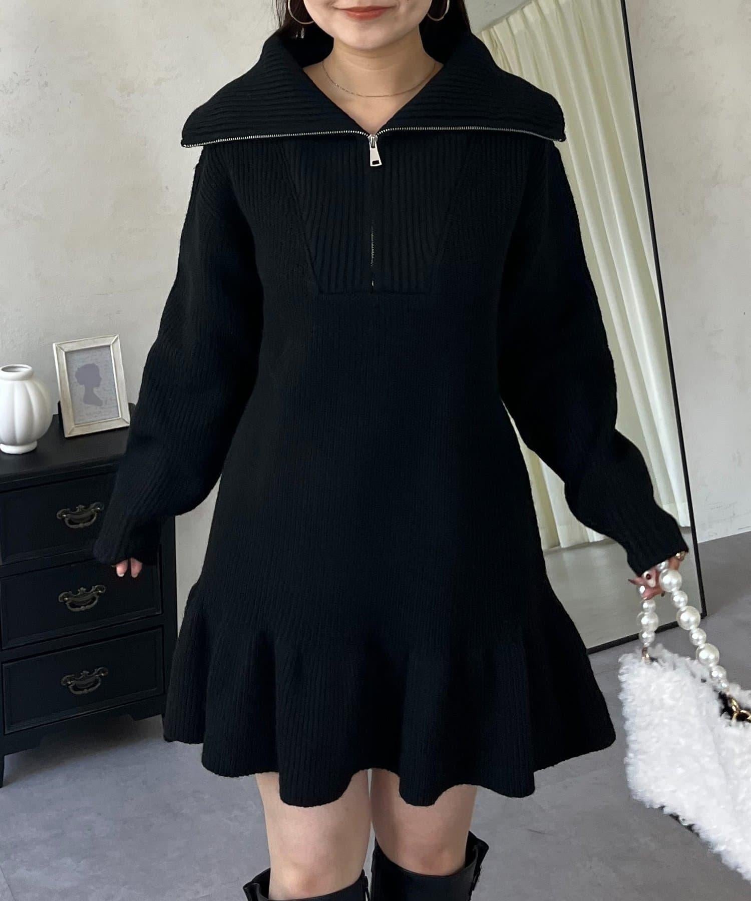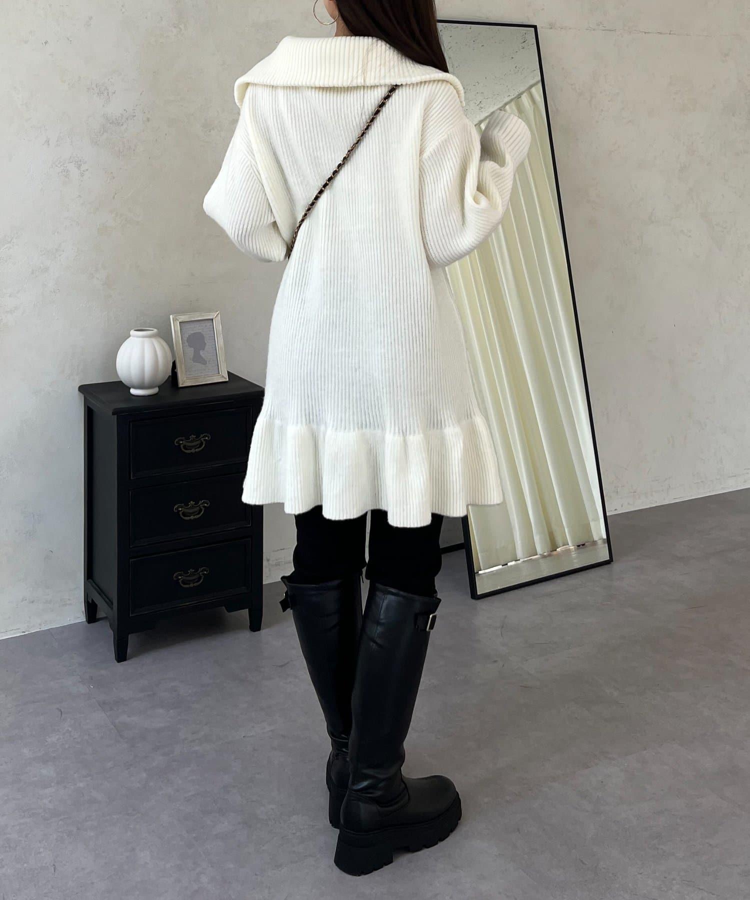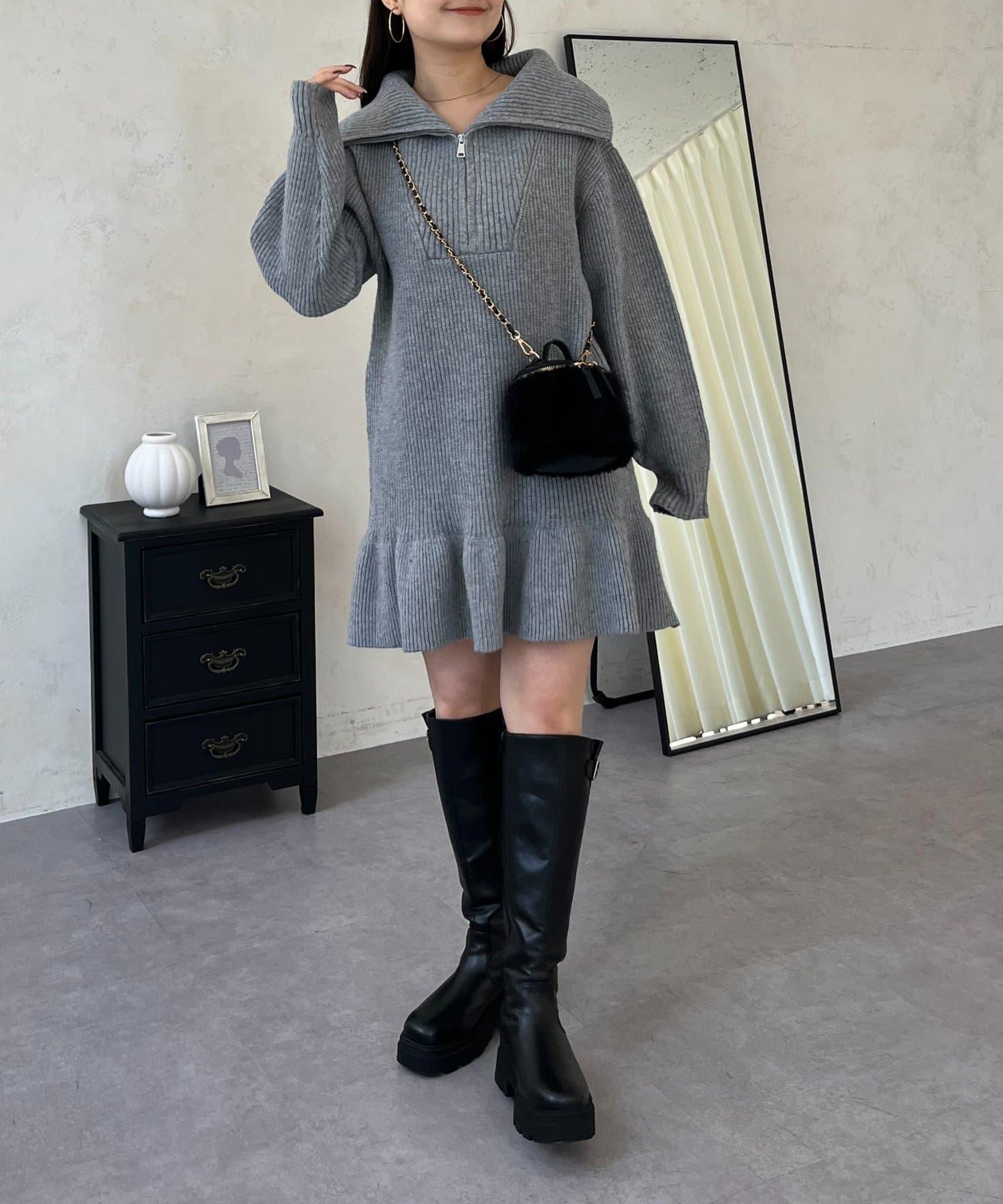 預約商品下襬荷葉邊半拉鍊A字針織衫