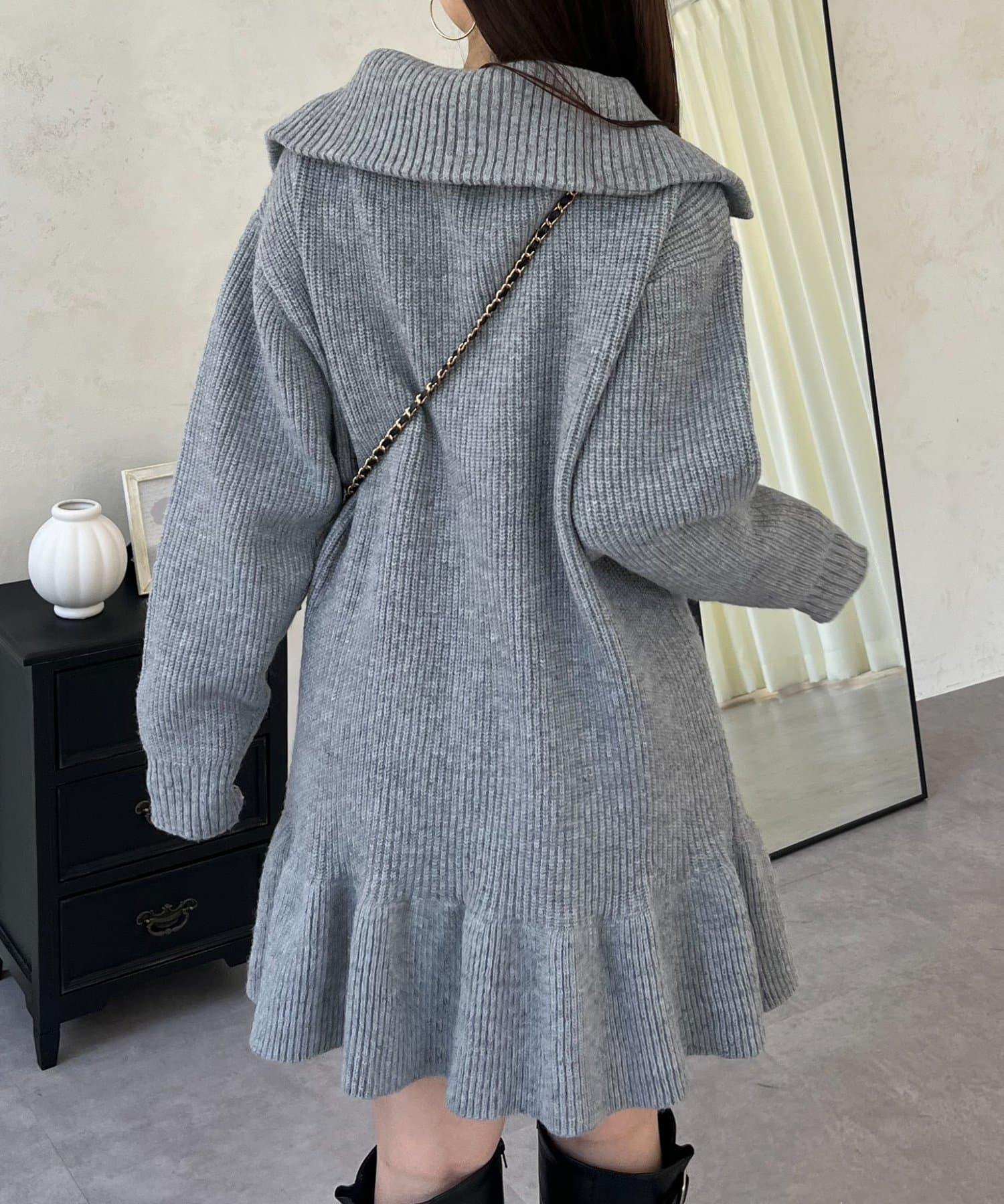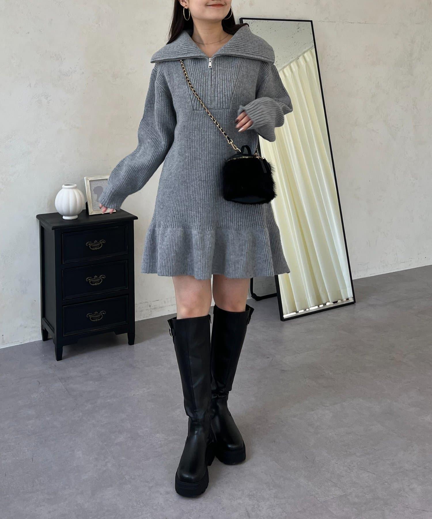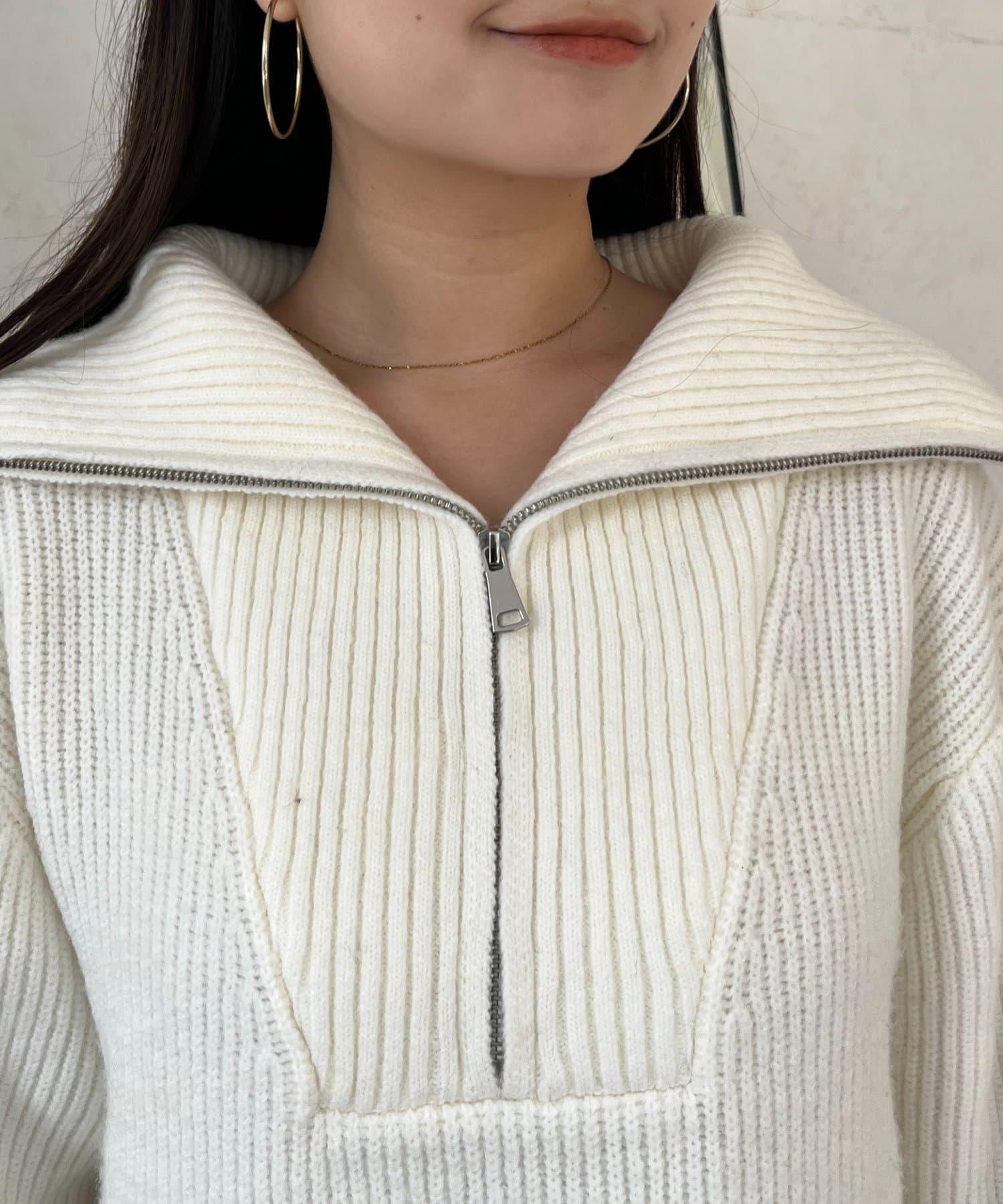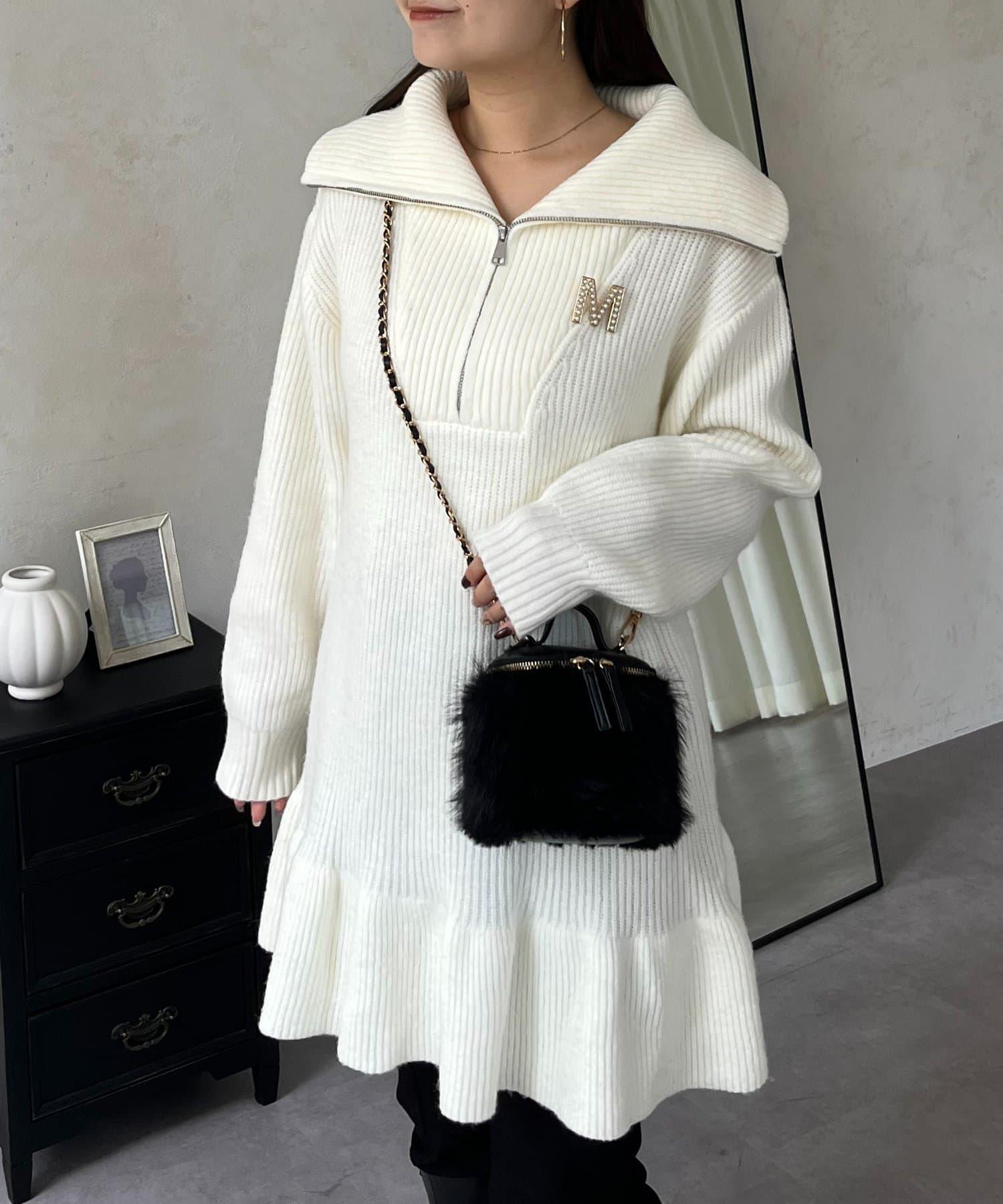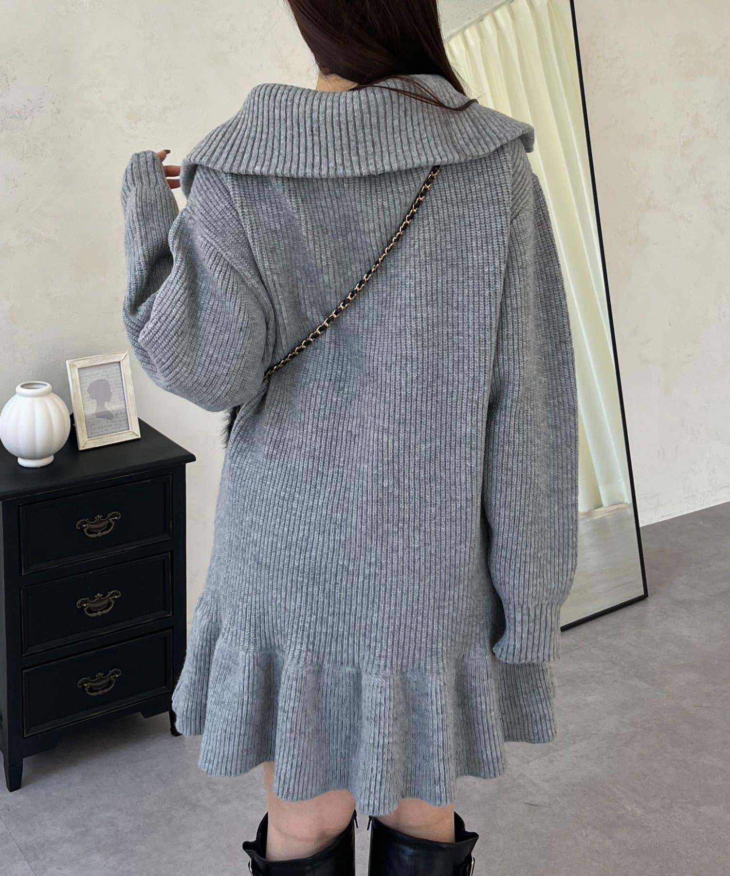 預約商品下襬荷葉邊半拉鍊A字針織衫