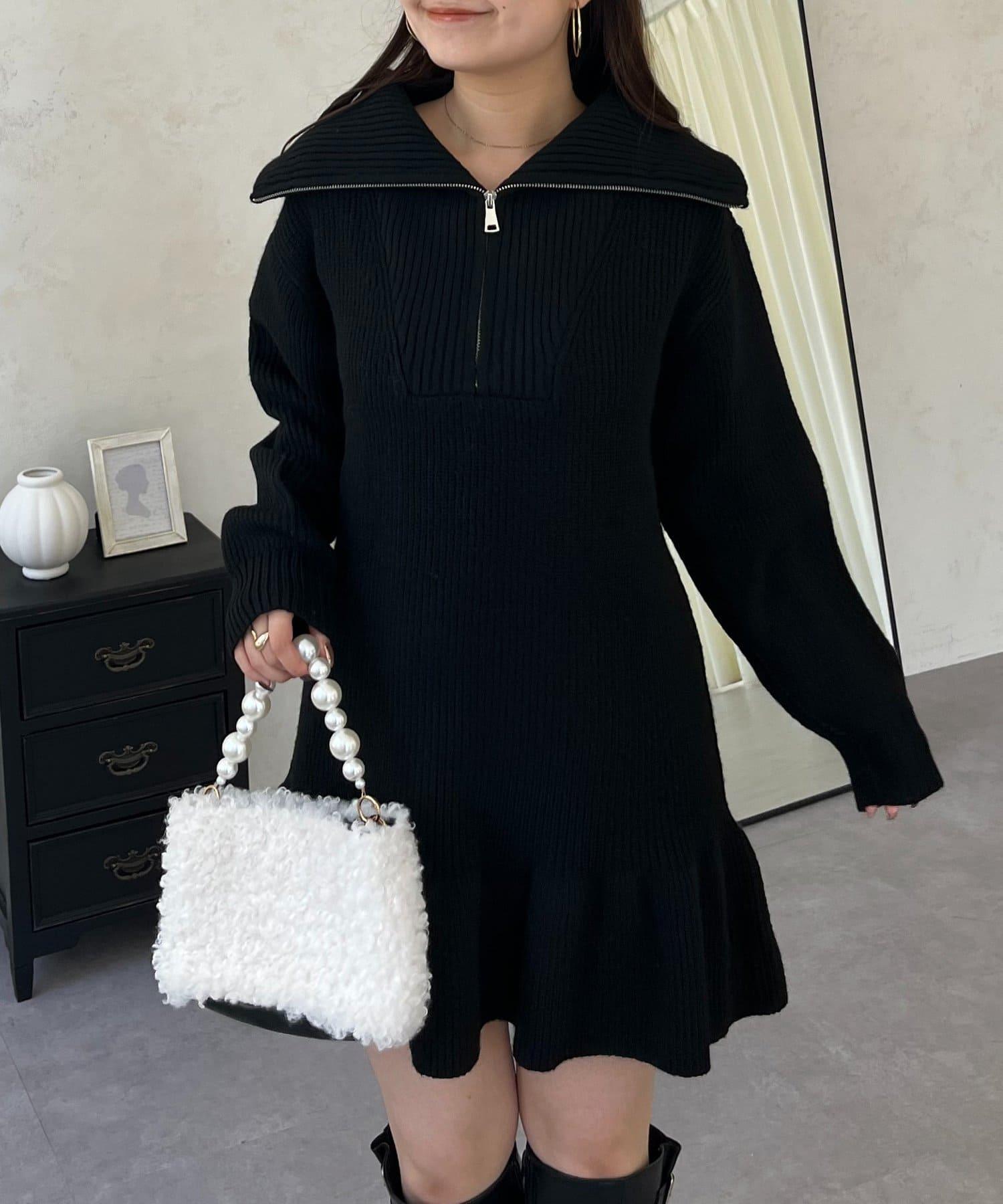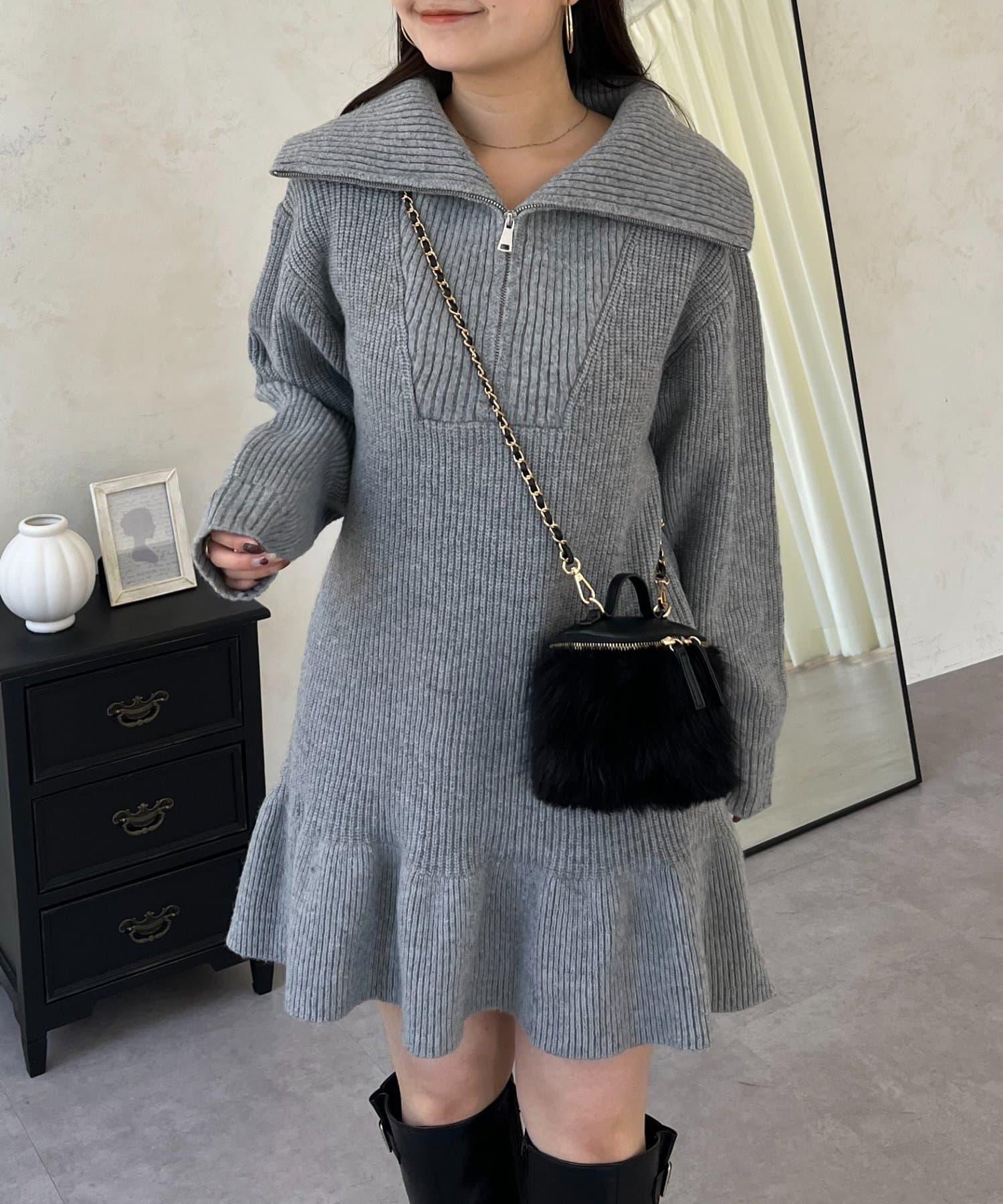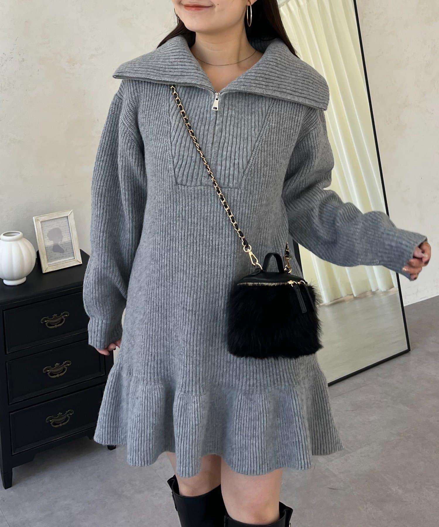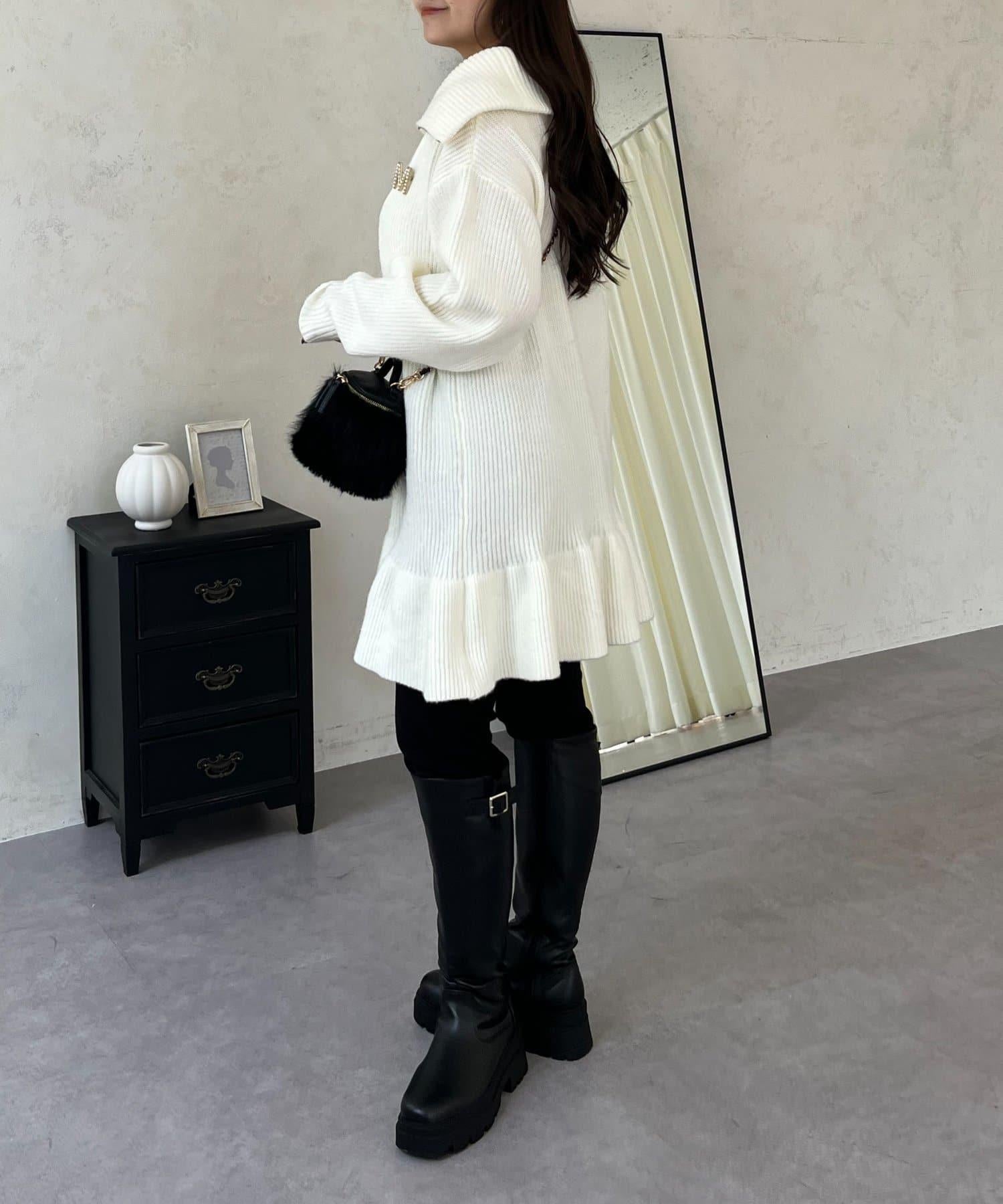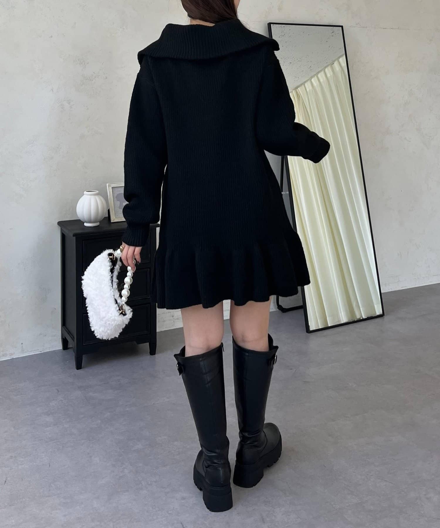 預約商品下襬荷葉邊半拉鍊A字針織衫