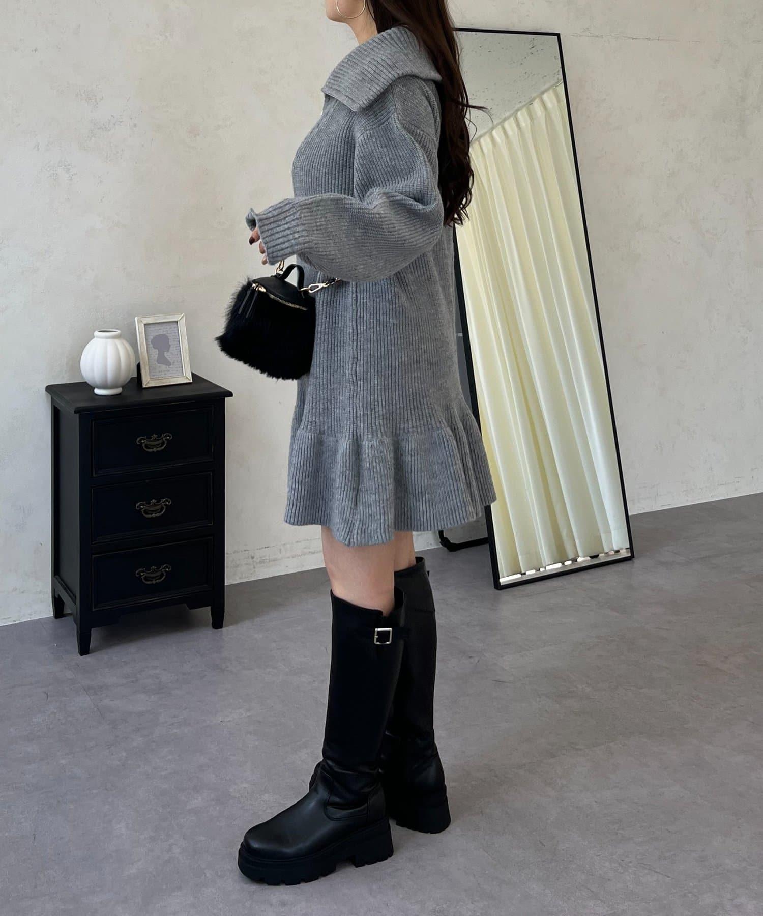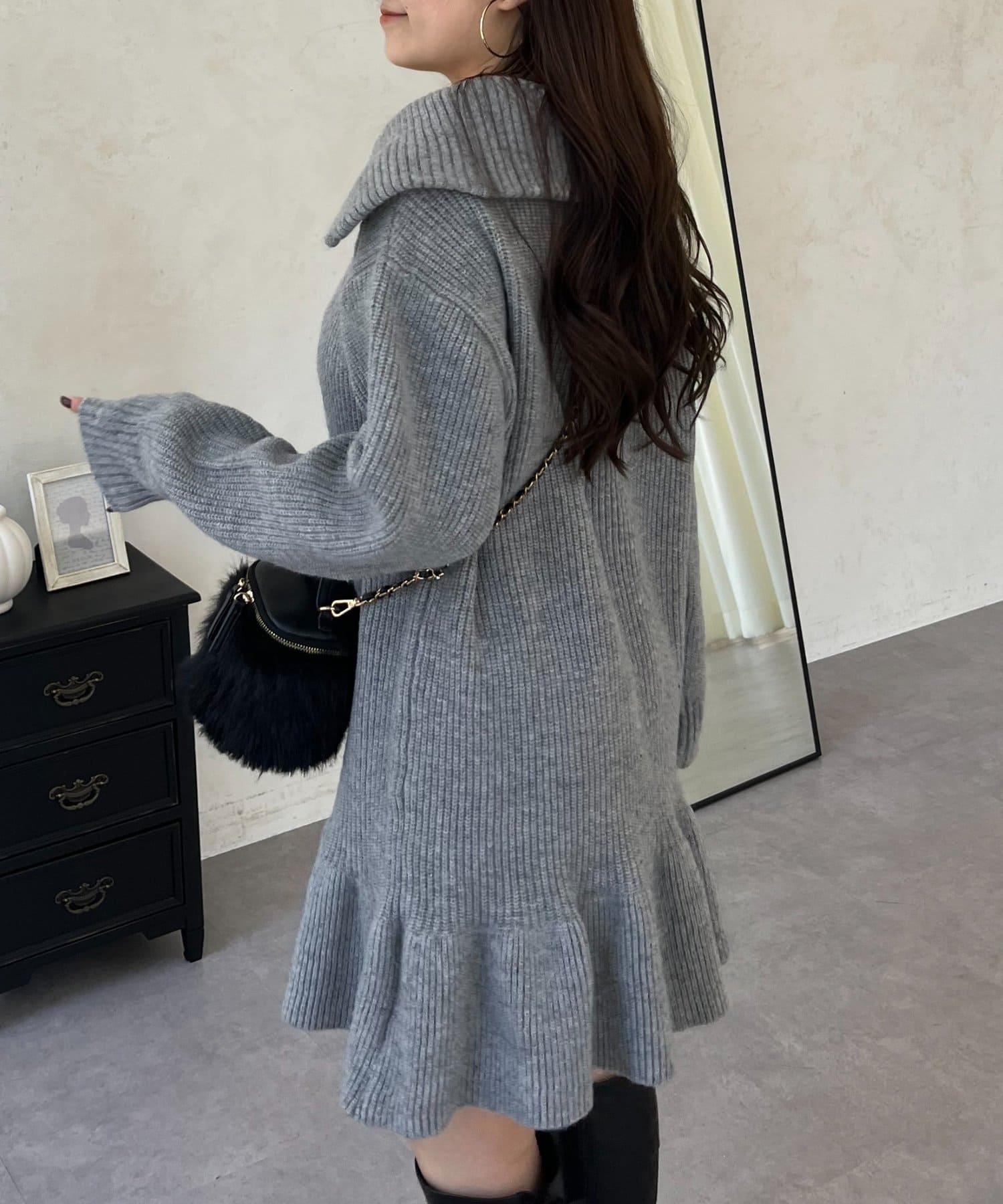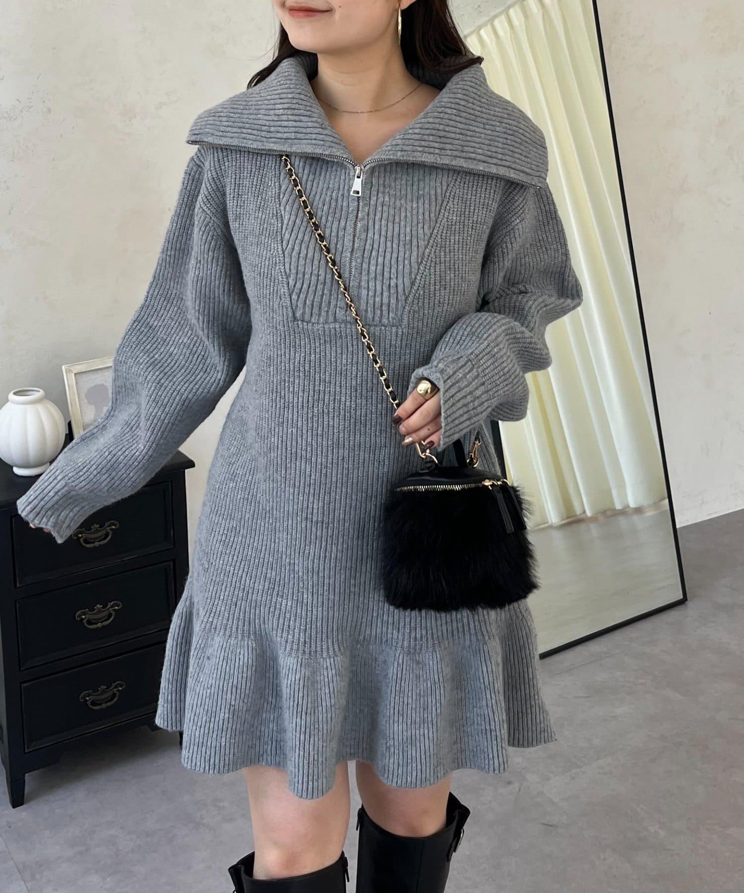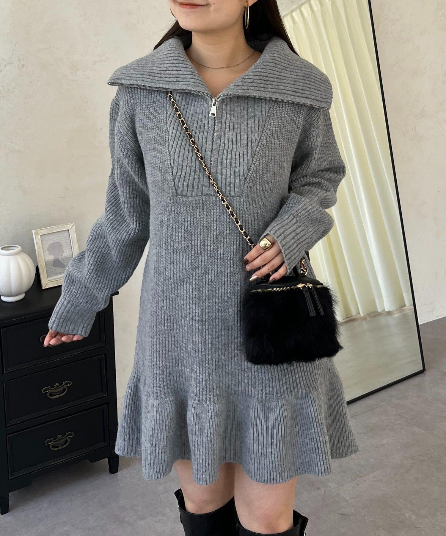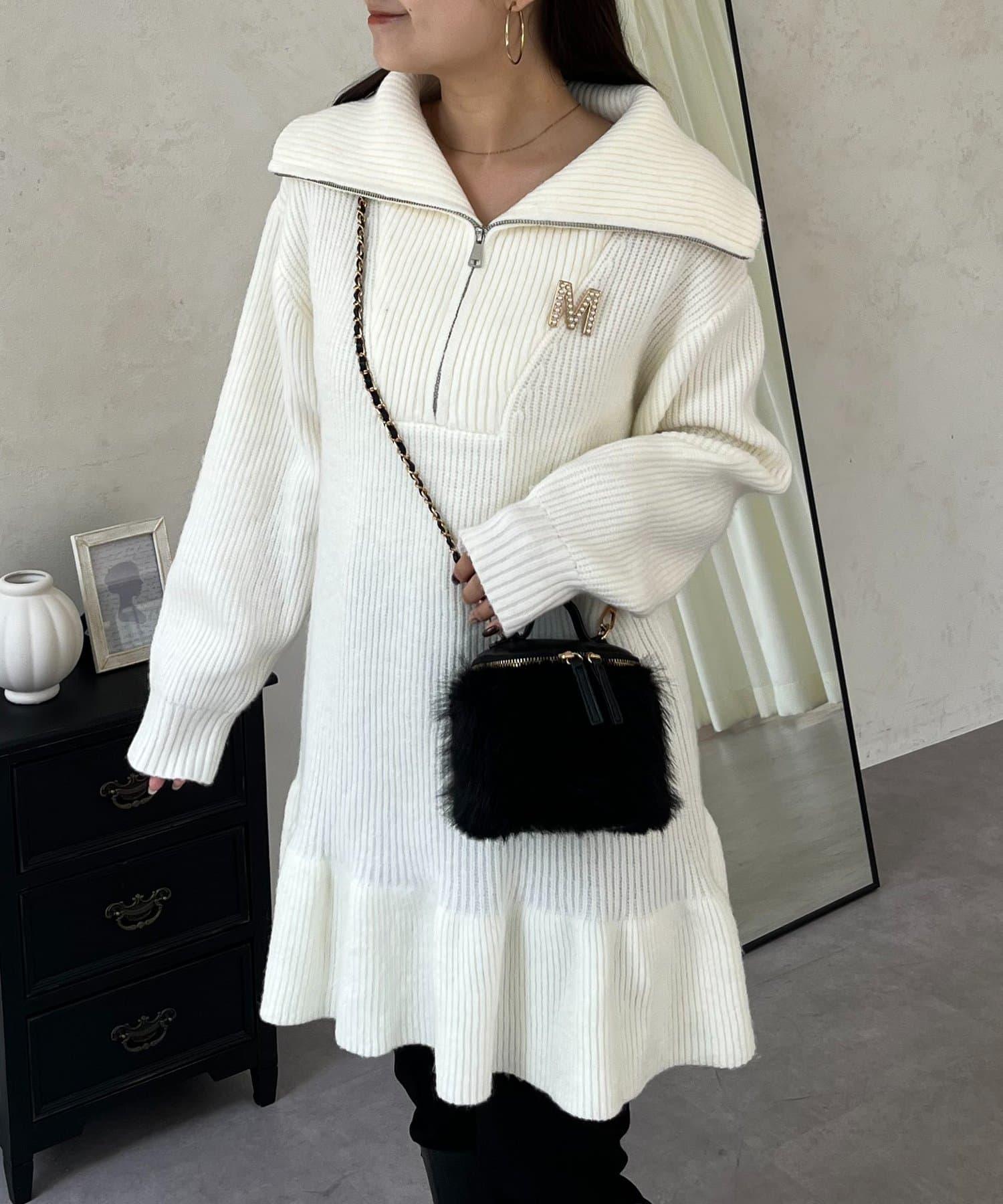 預約商品下襬荷葉邊半拉鍊A字針織衫