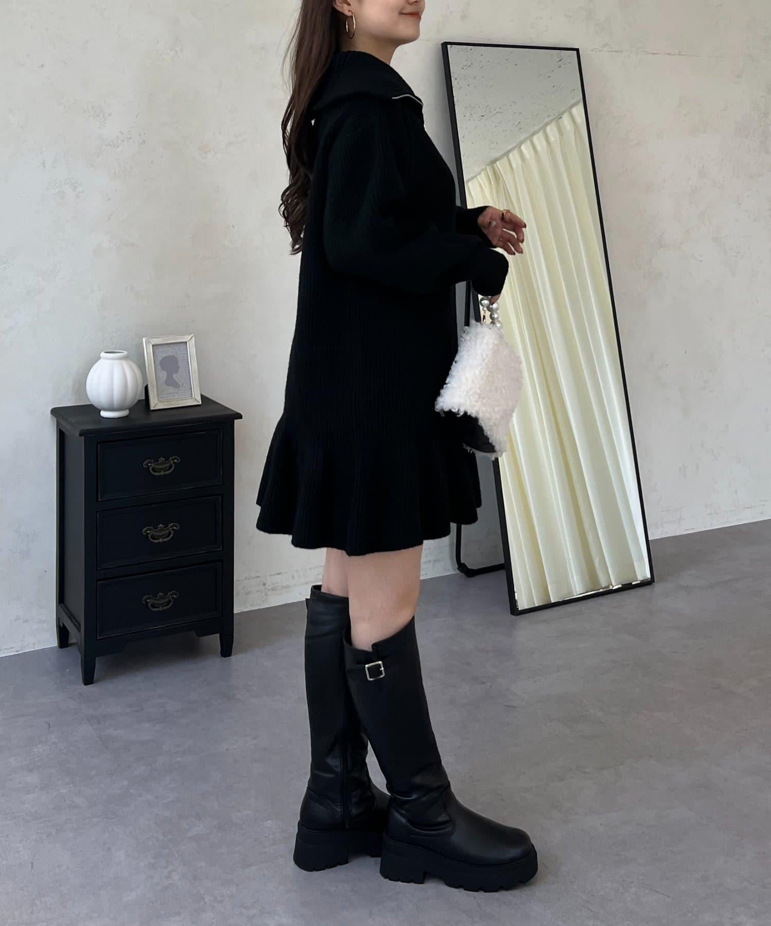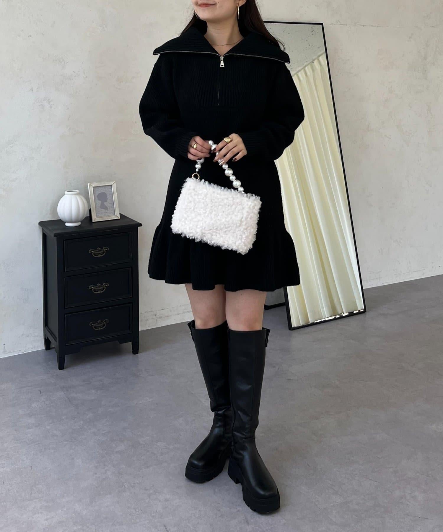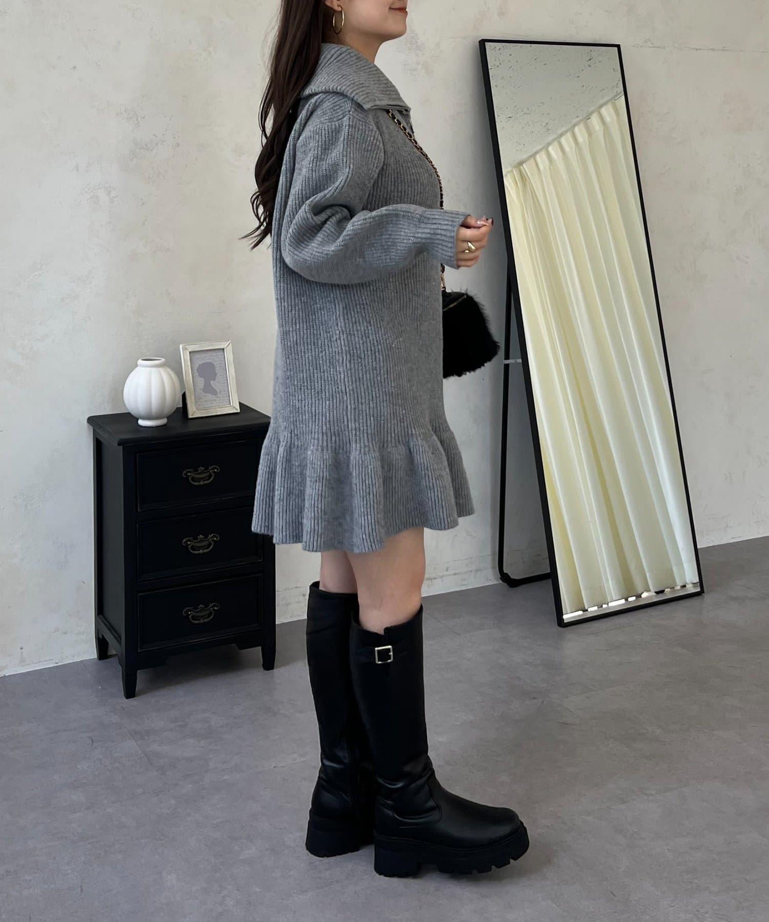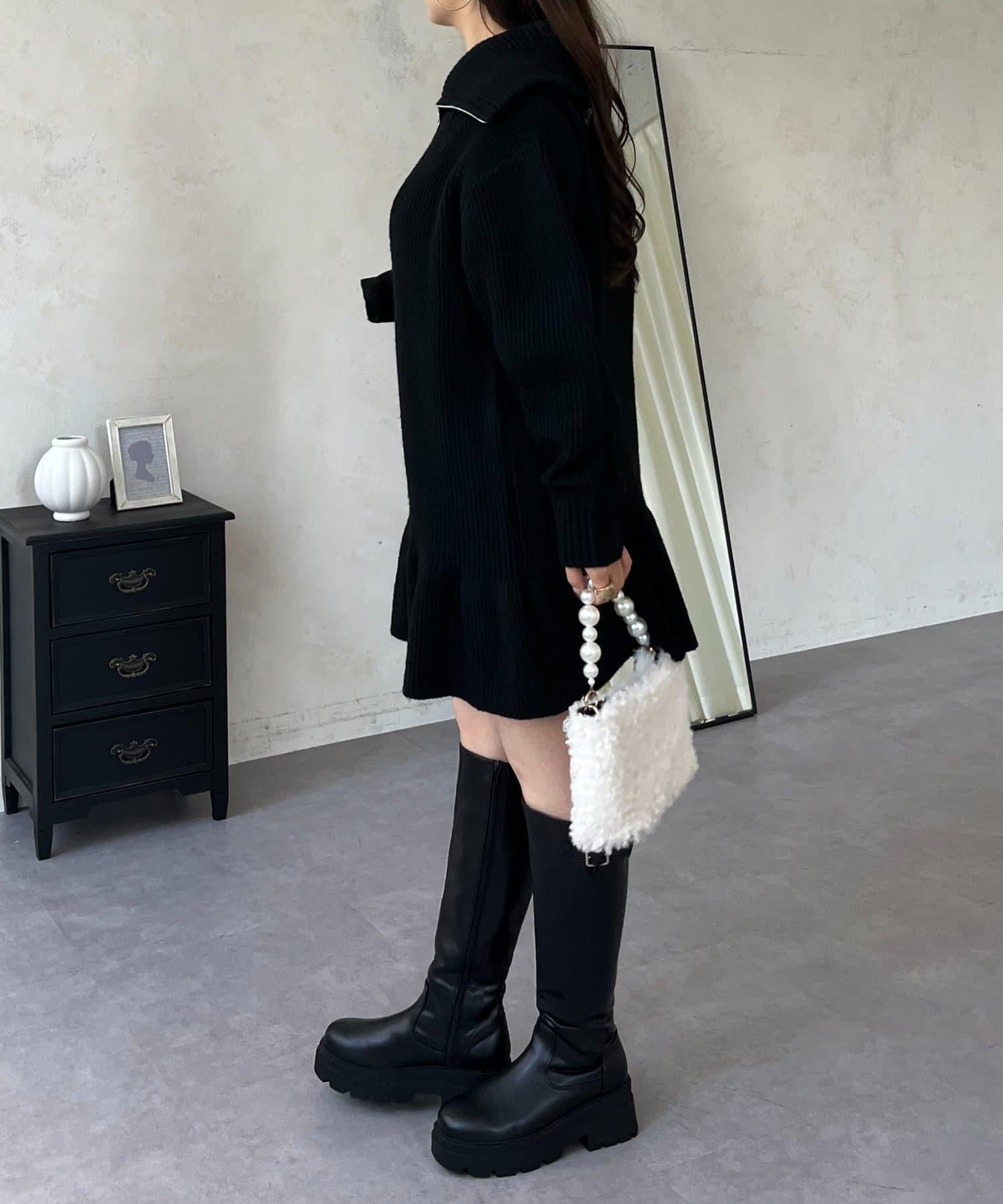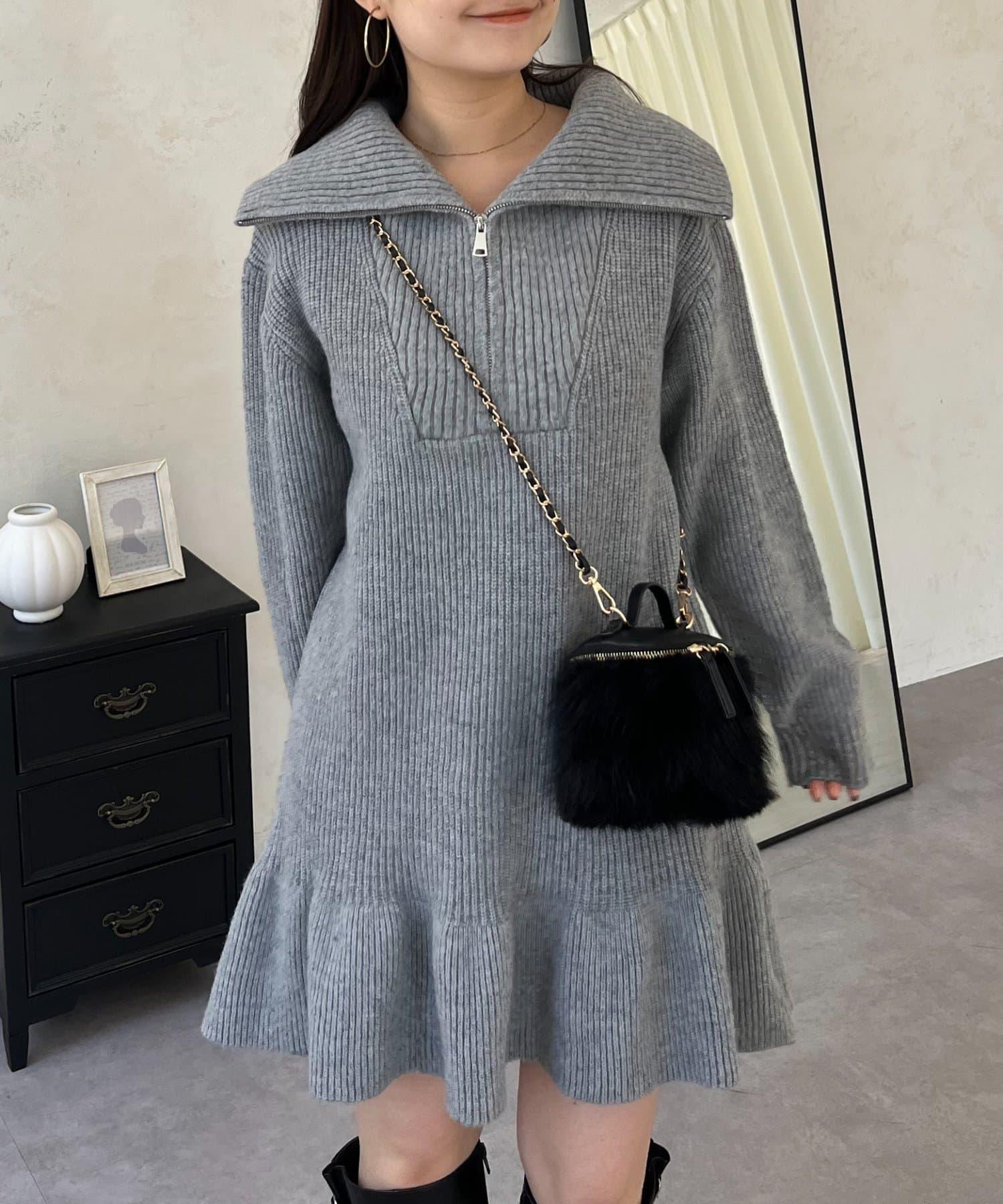 預約商品下襬荷葉邊半拉鍊A字針織衫
