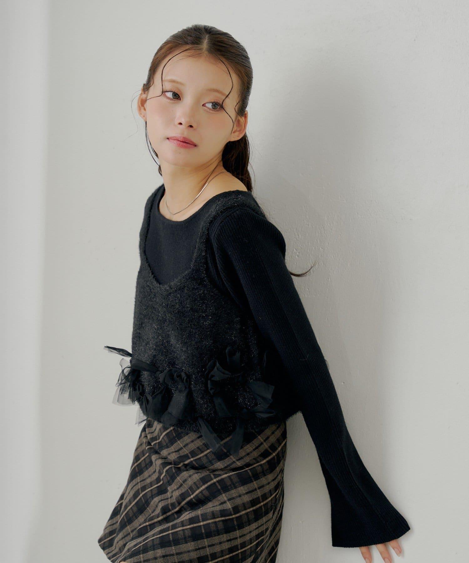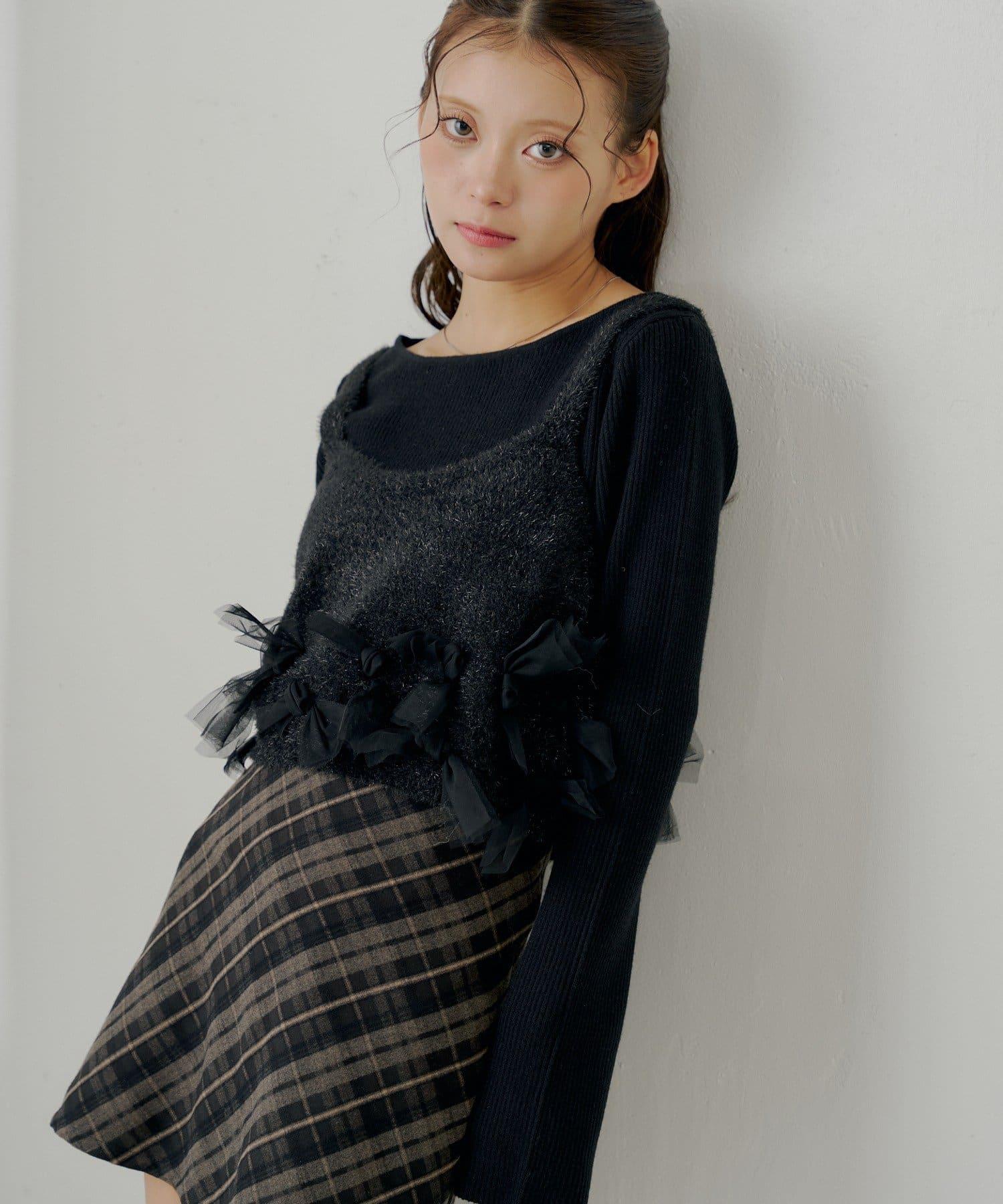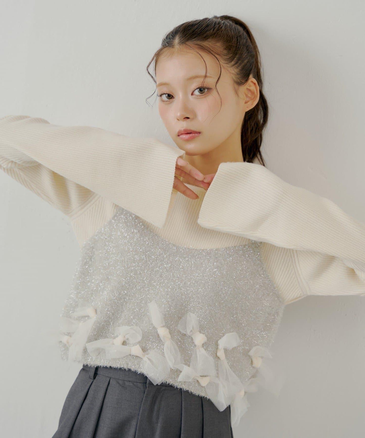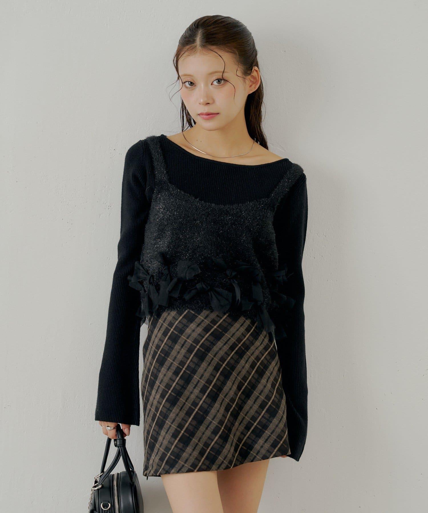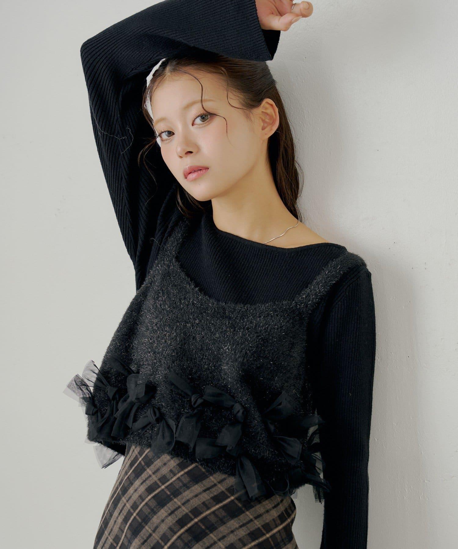 流蘇下襬吊帶衫+羅紋針織套裝,甜美優雅!