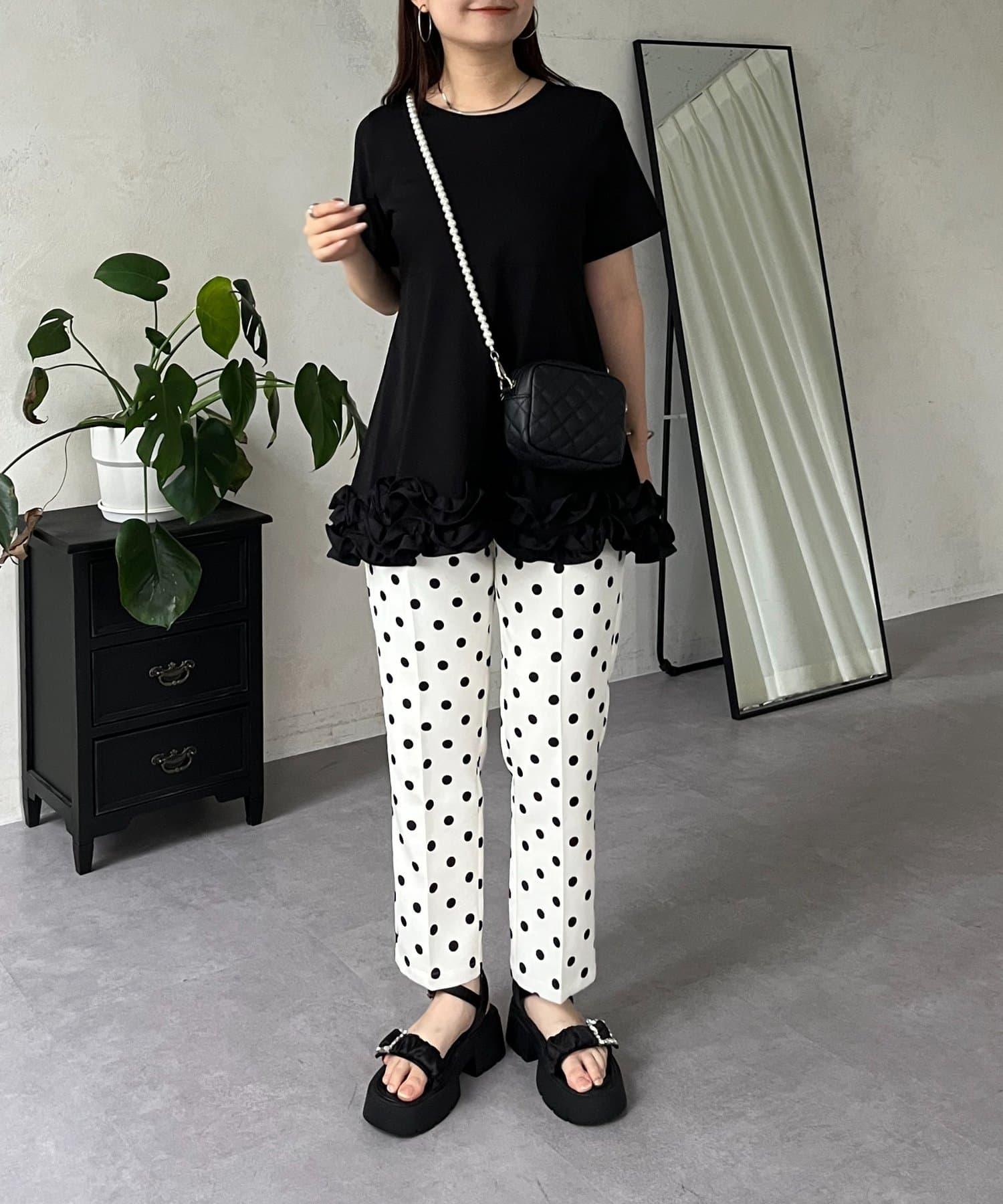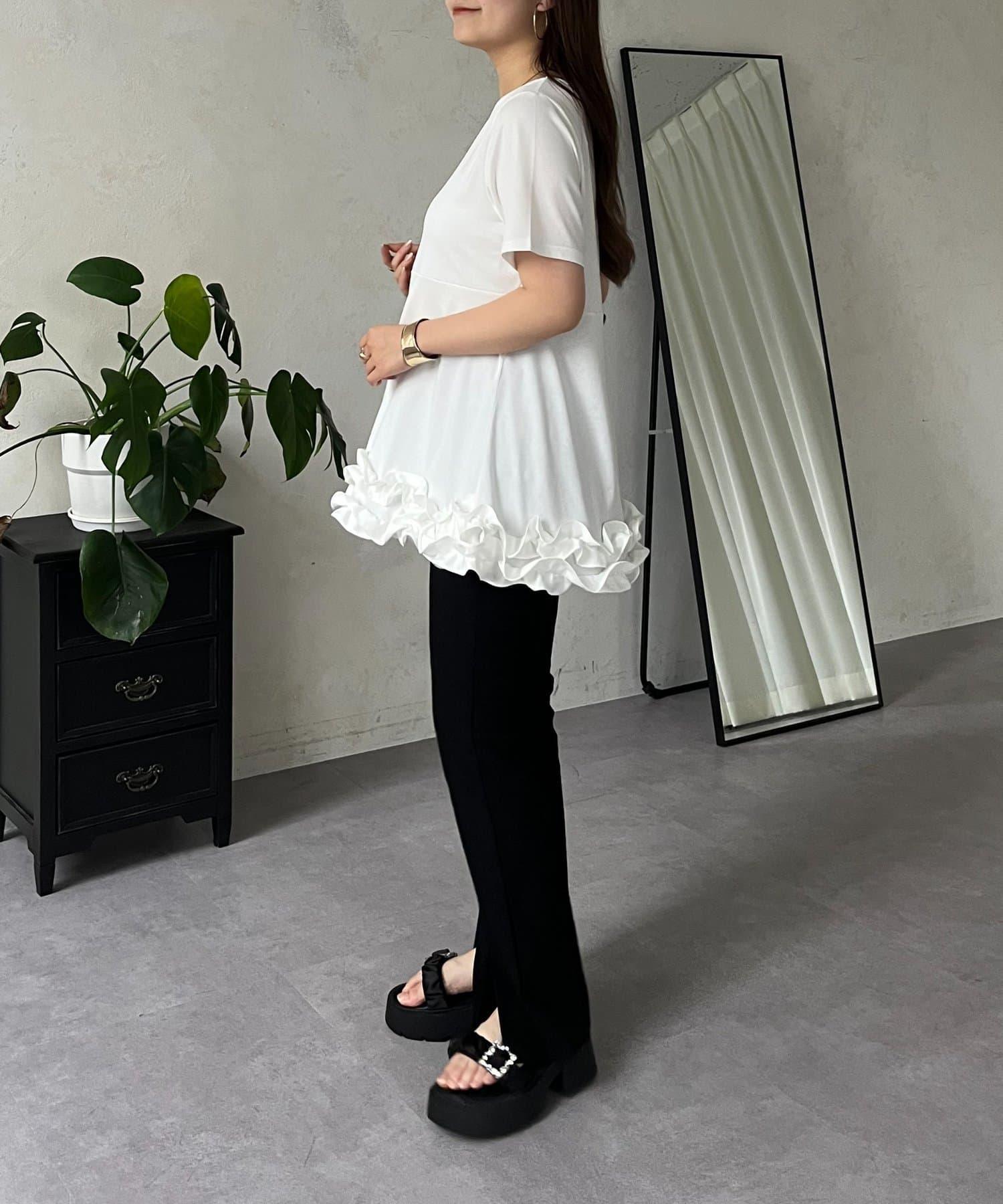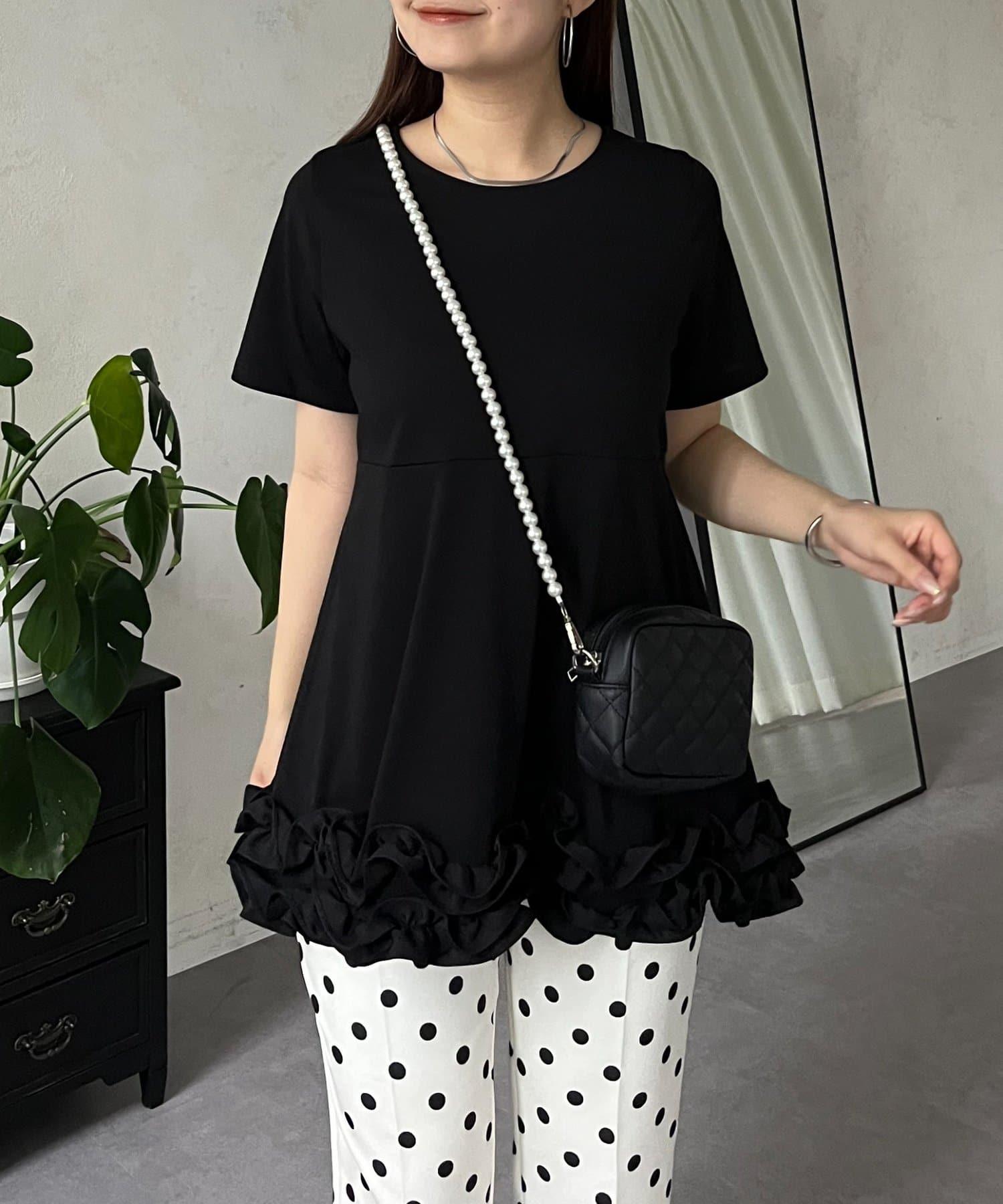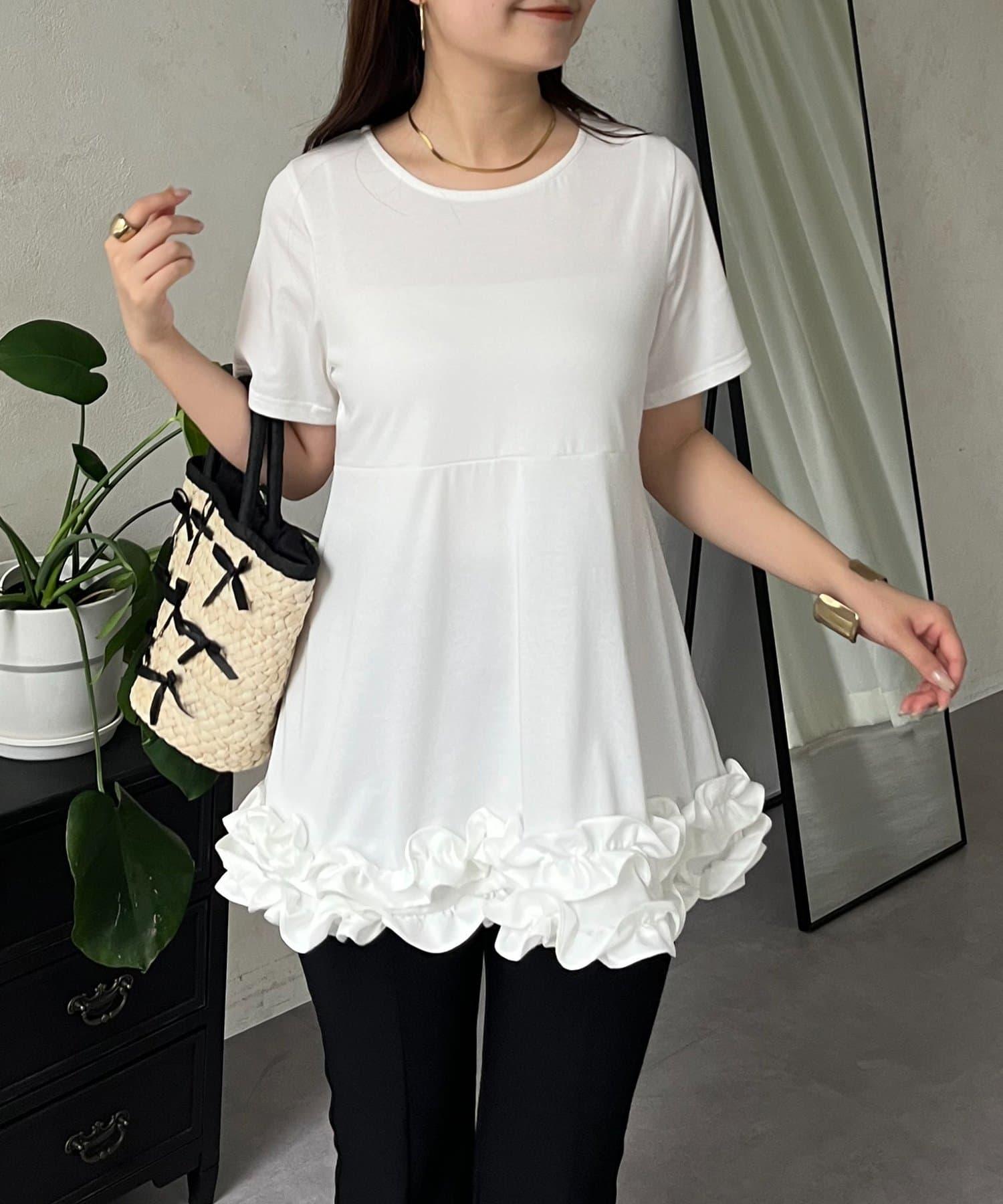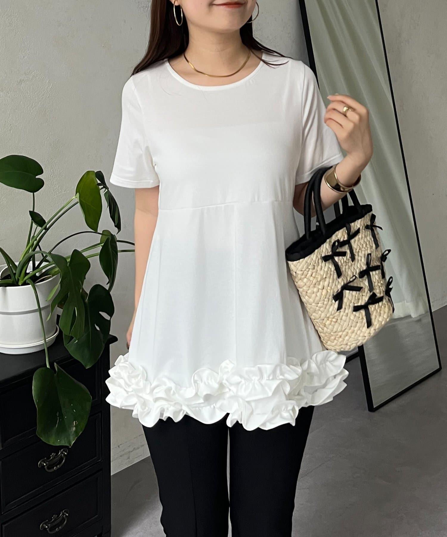 荷葉邊/遮蓋身材/T恤/蓬蓬裙/簡約