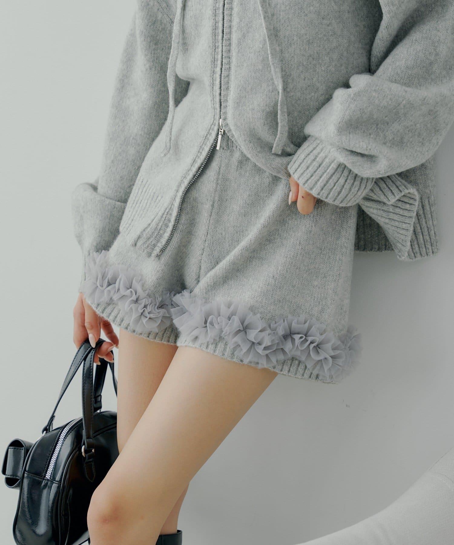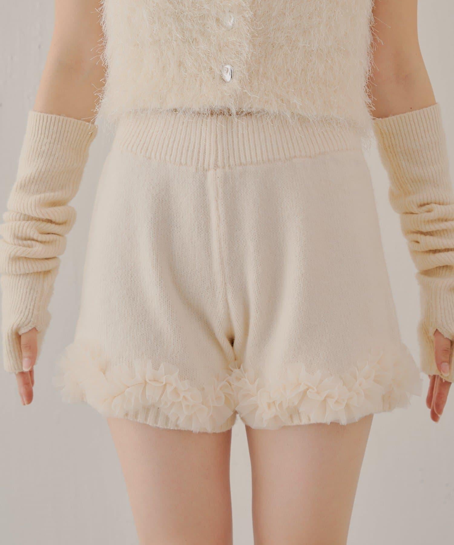 預約商品下襬荷葉邊針織短褲