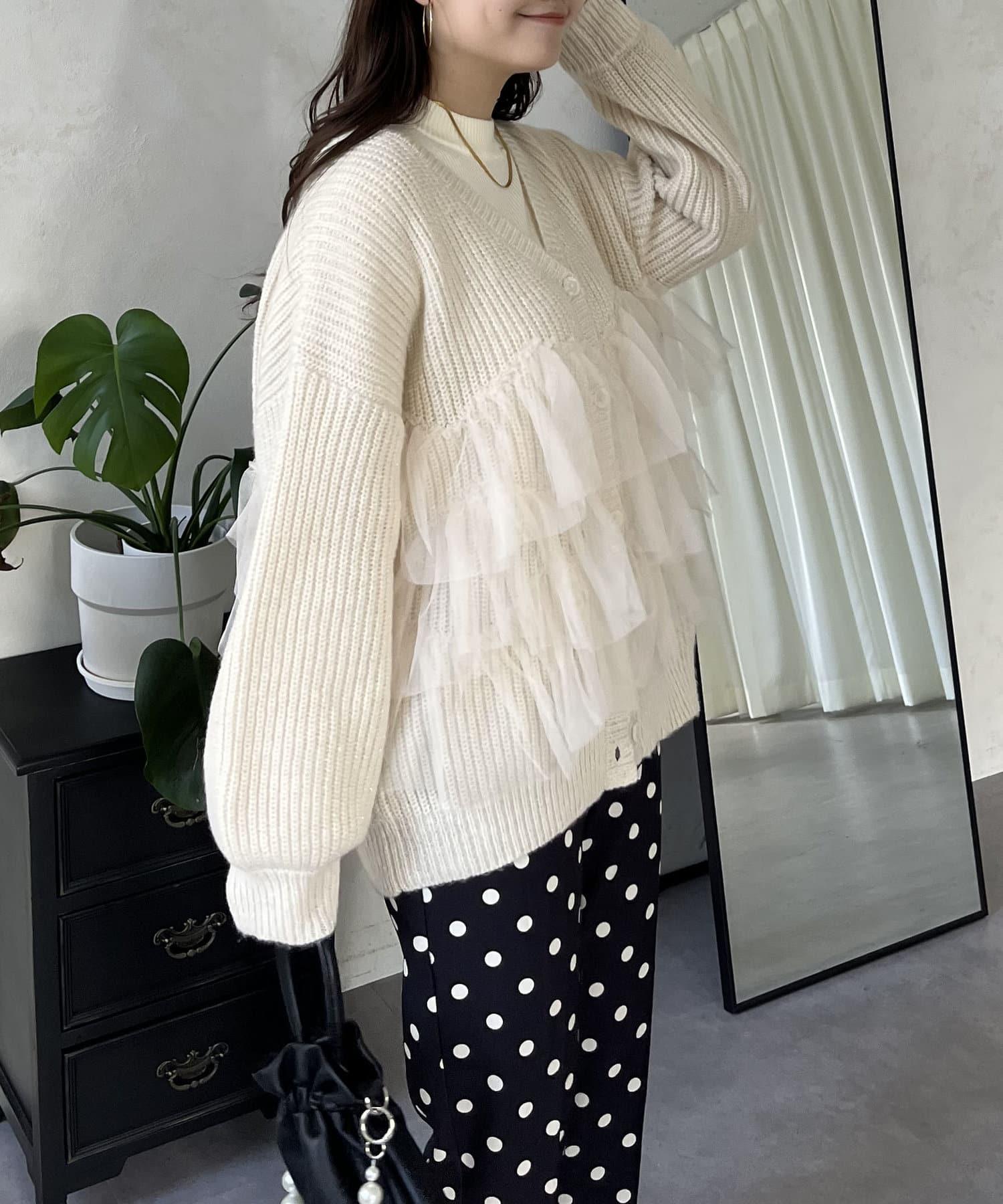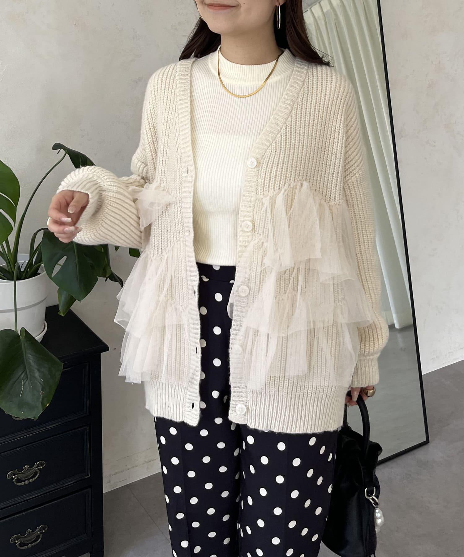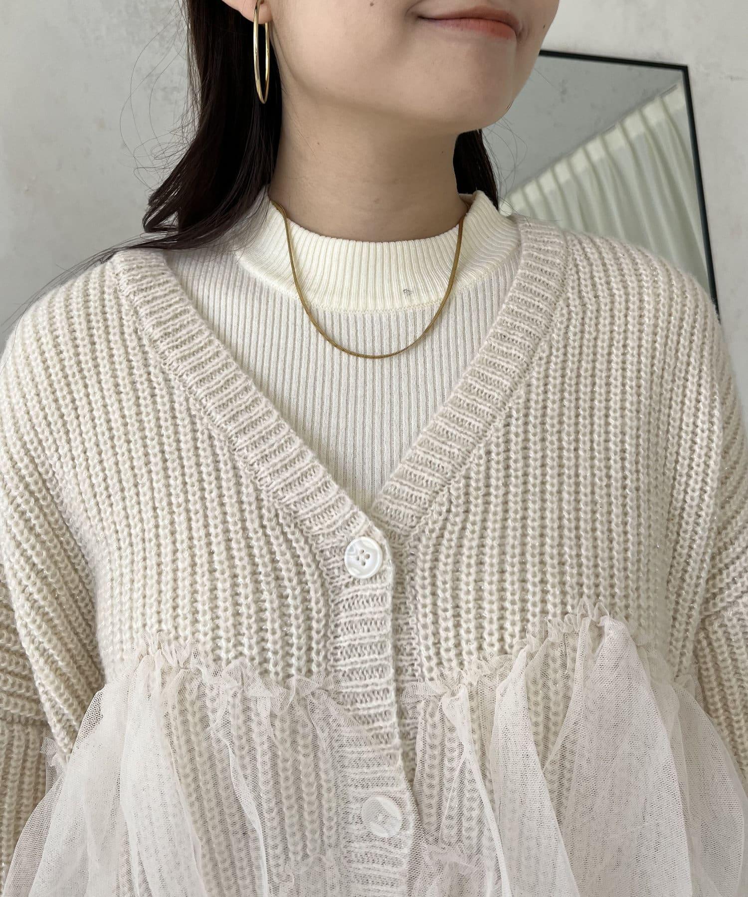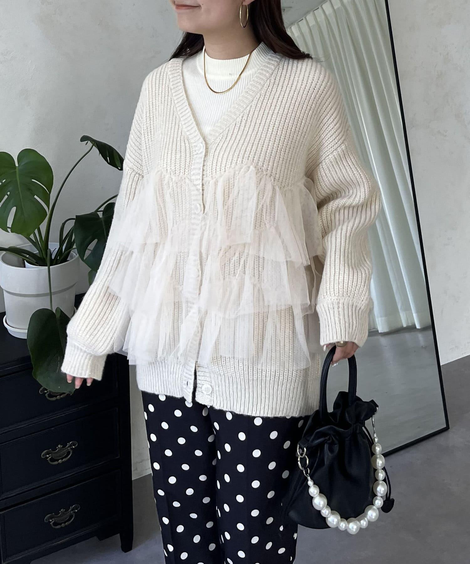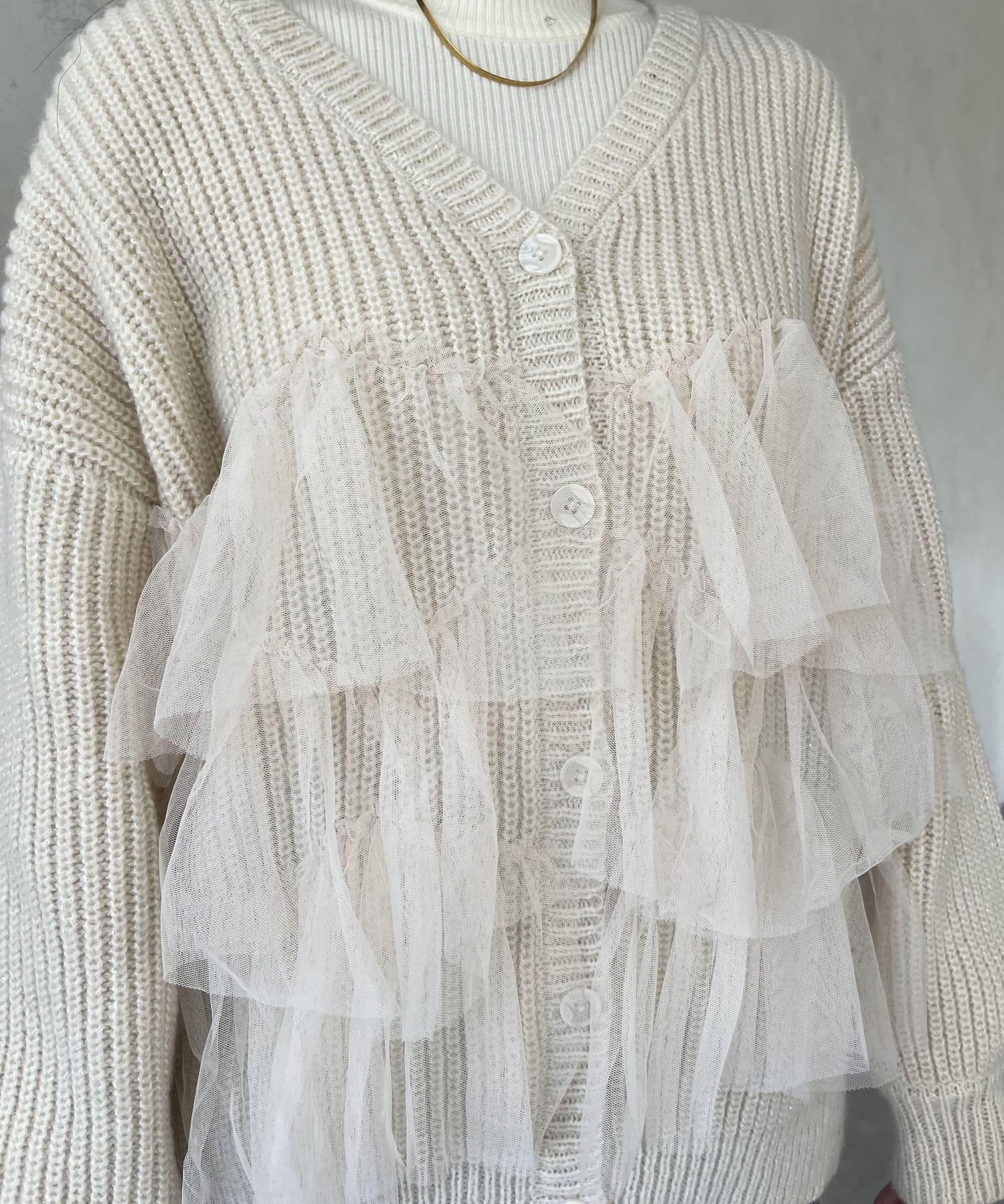 下襬蕾絲針織開衫