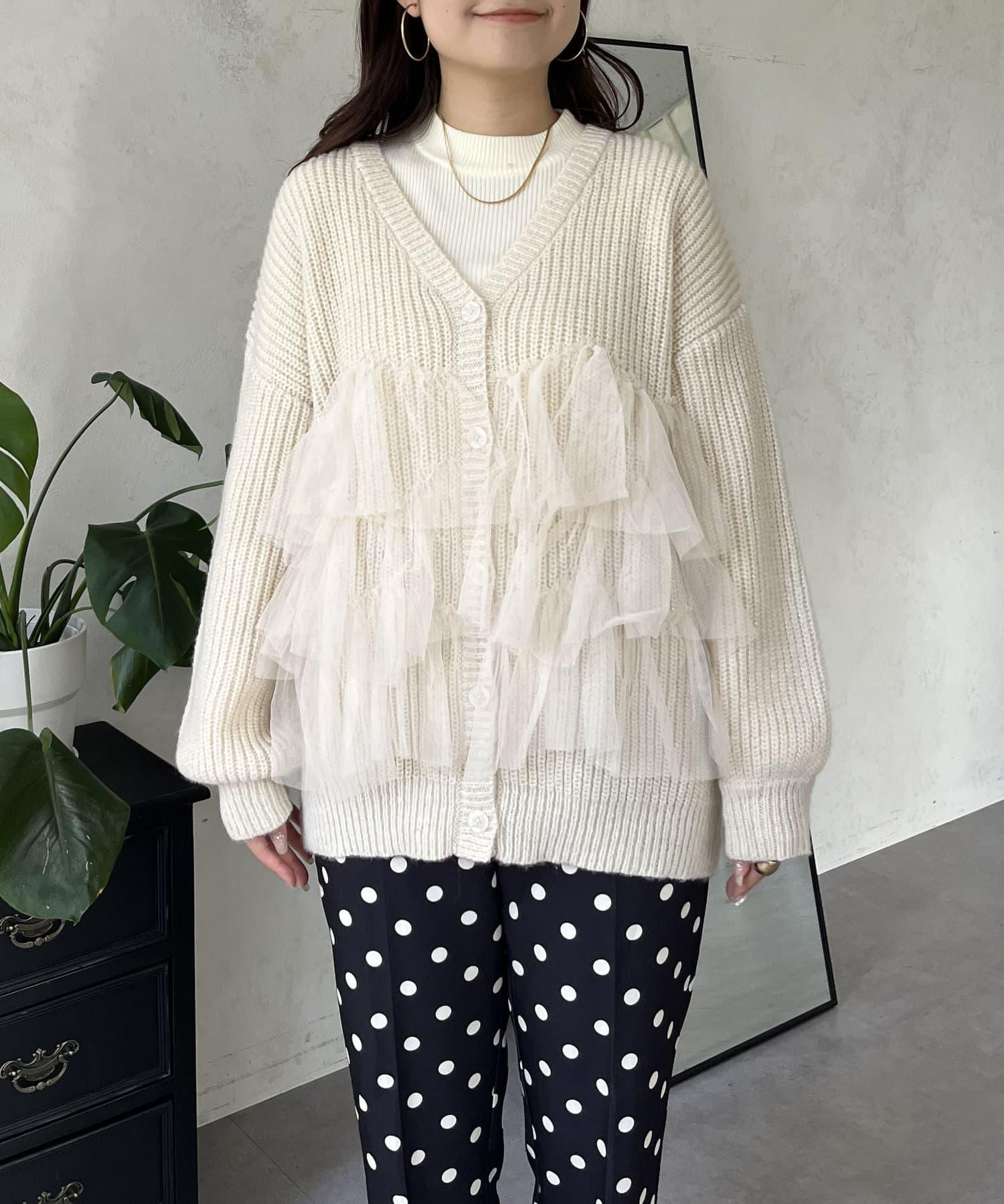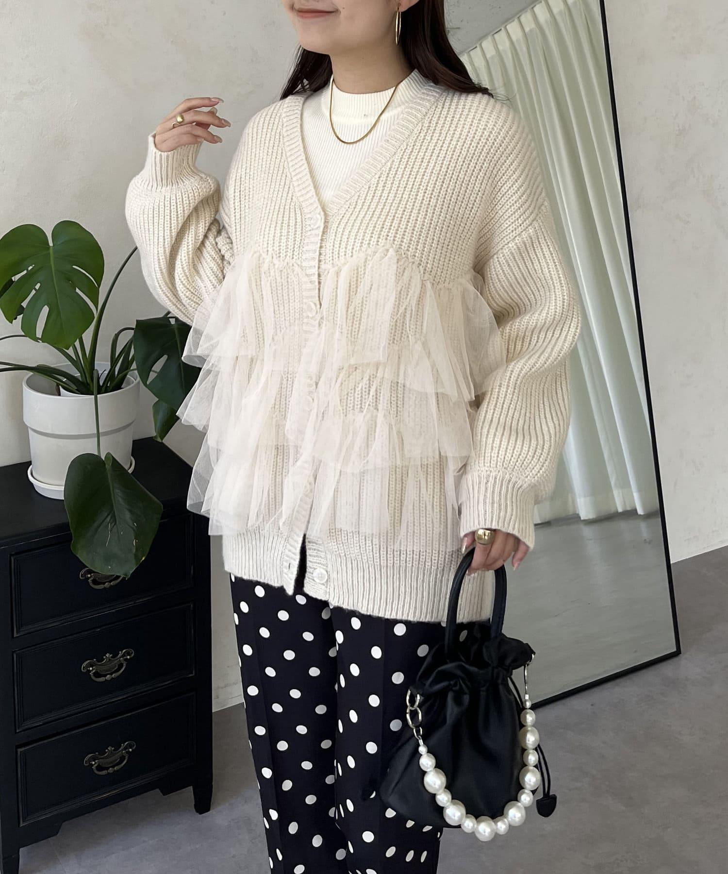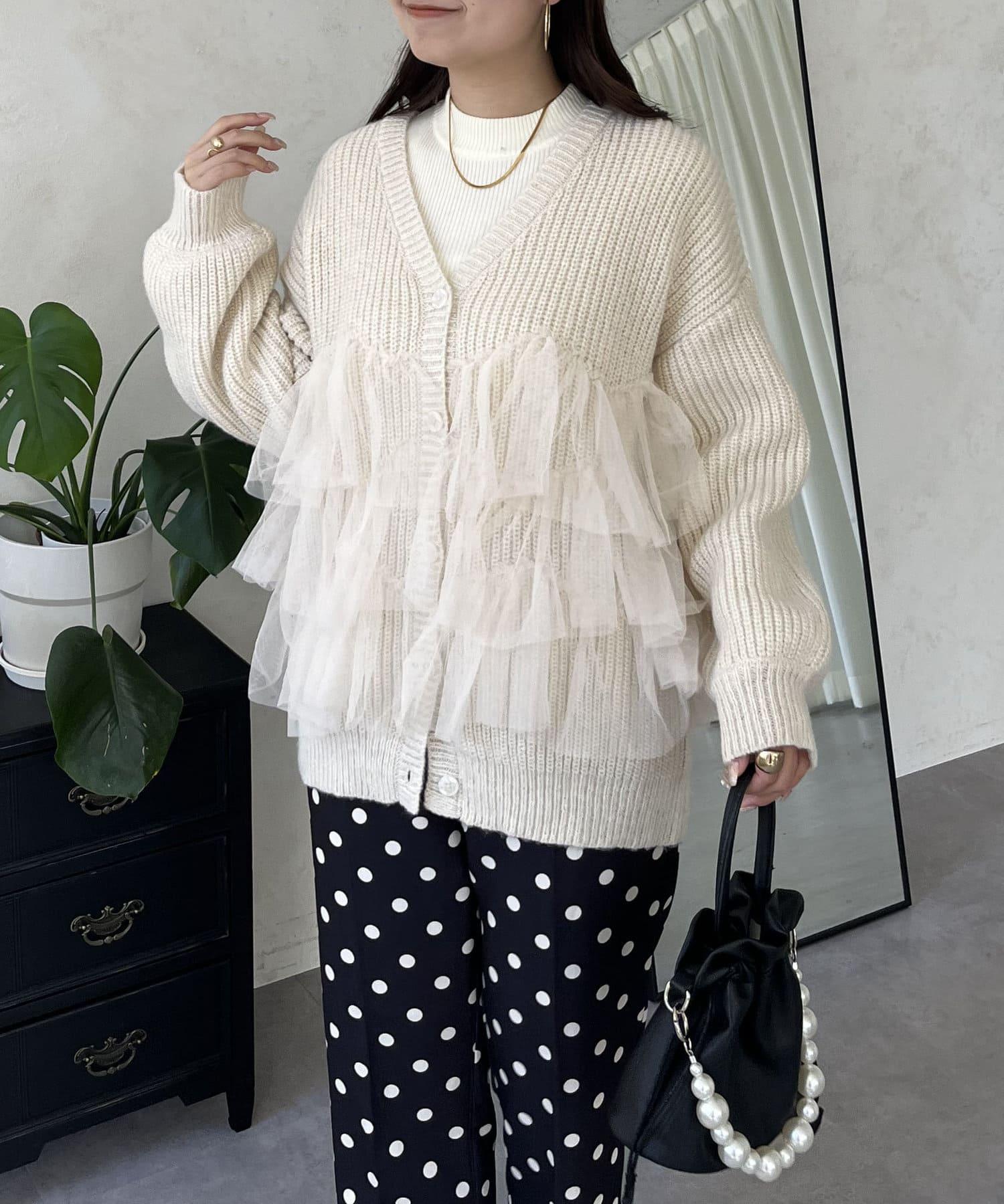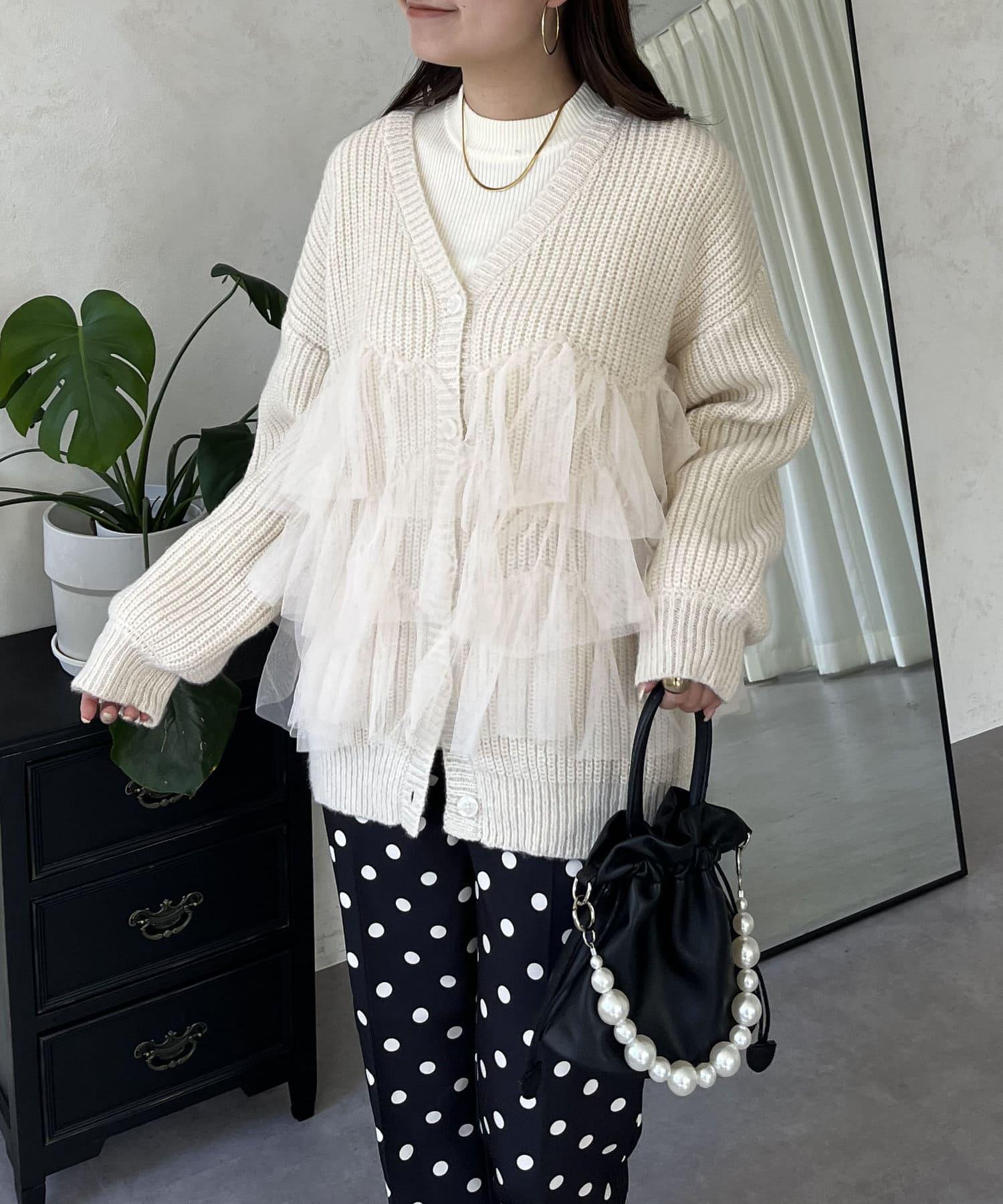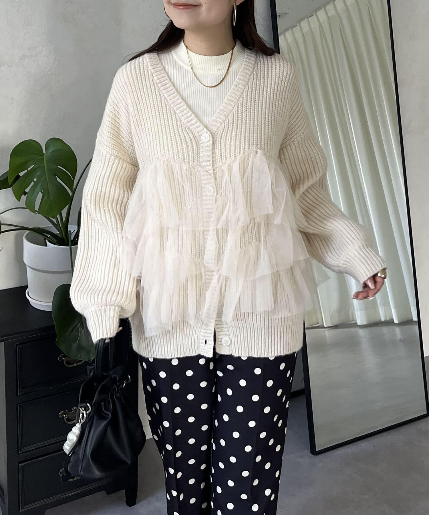 下襬蕾絲針織開衫