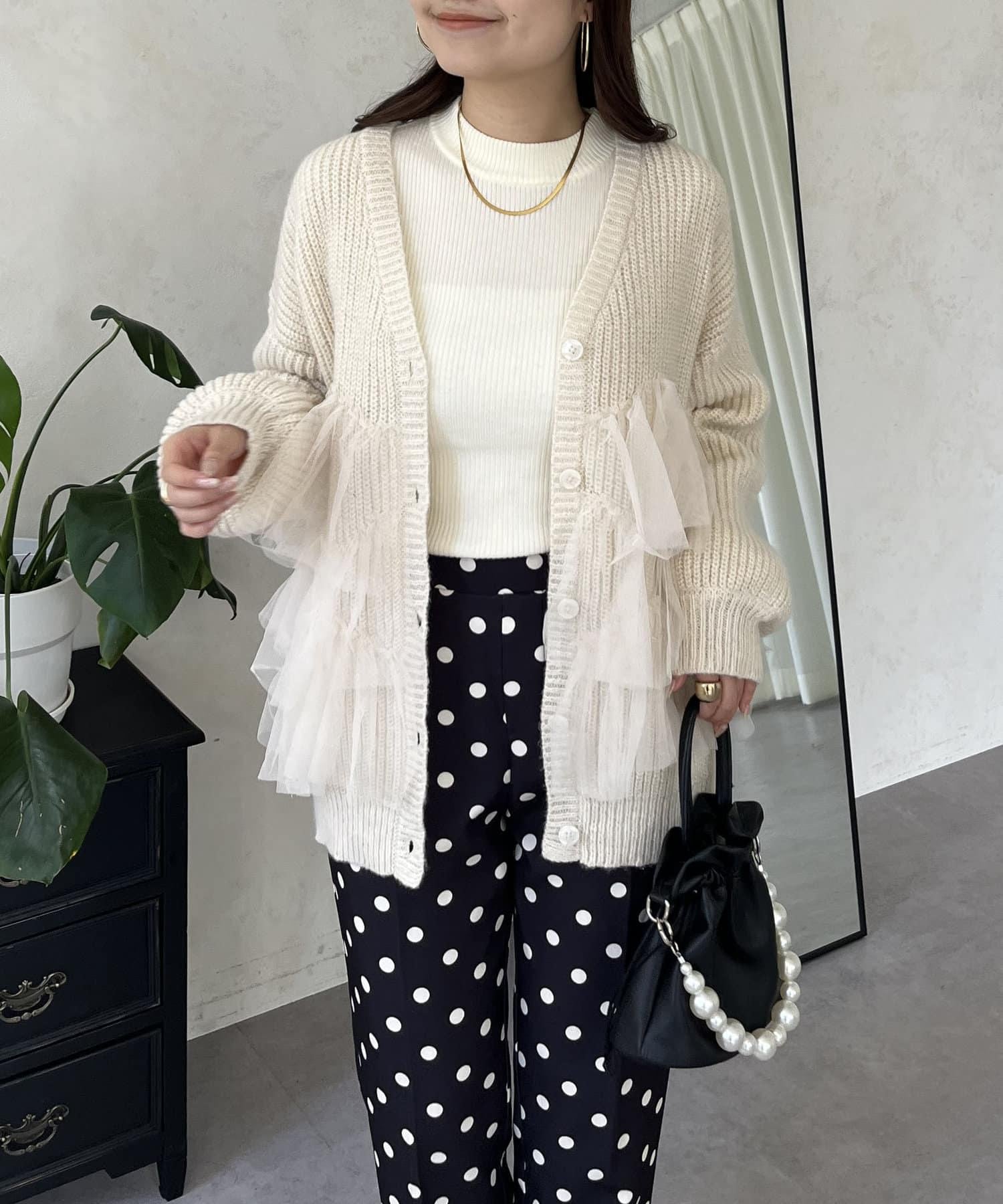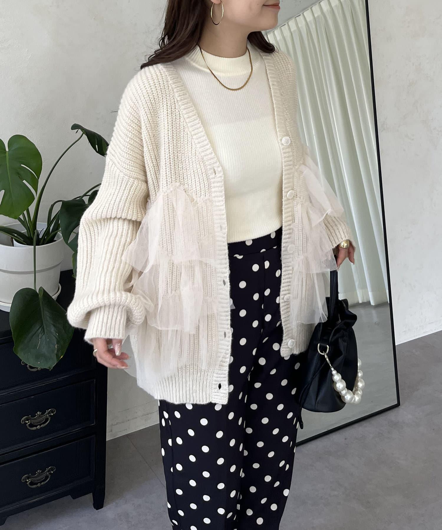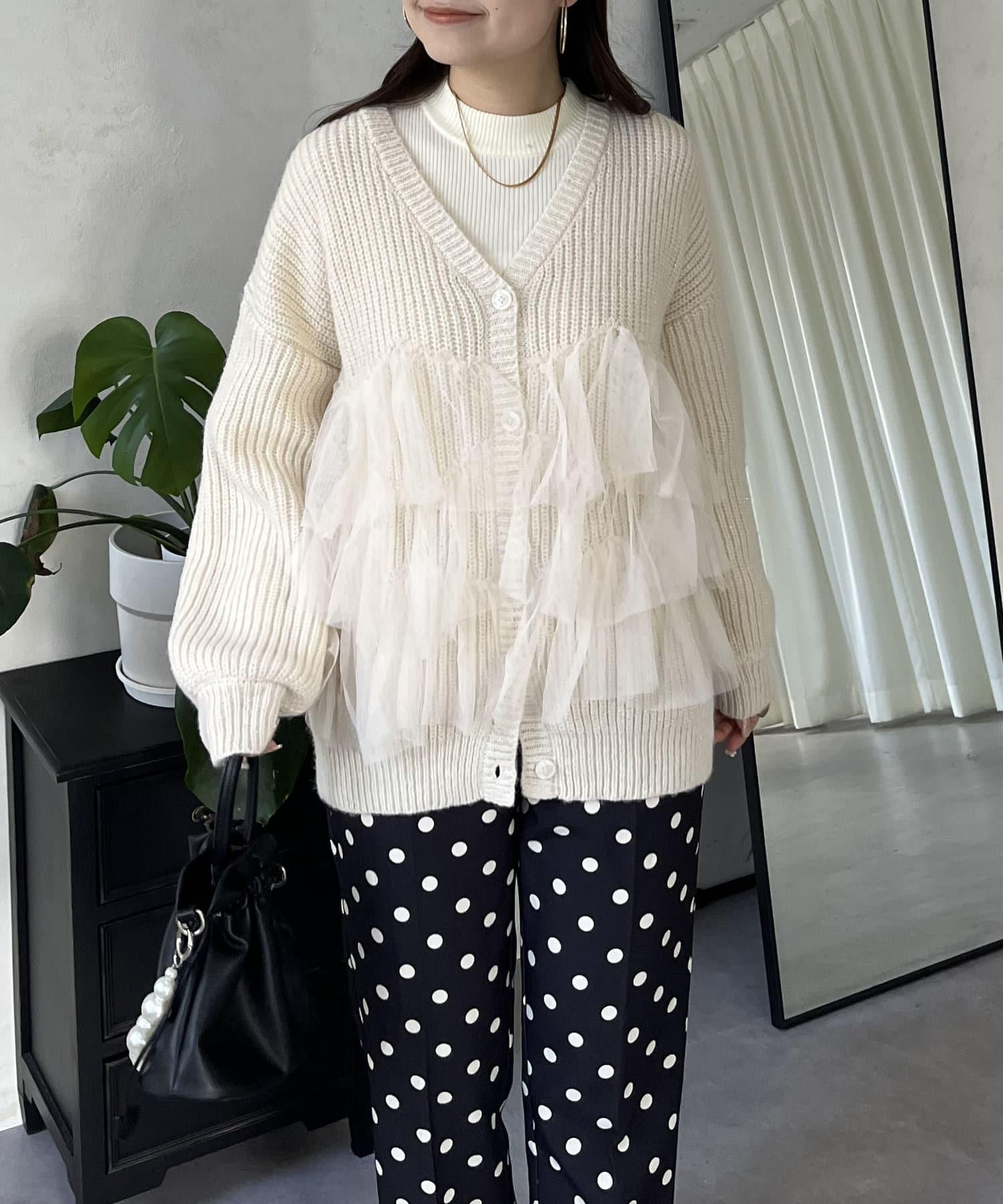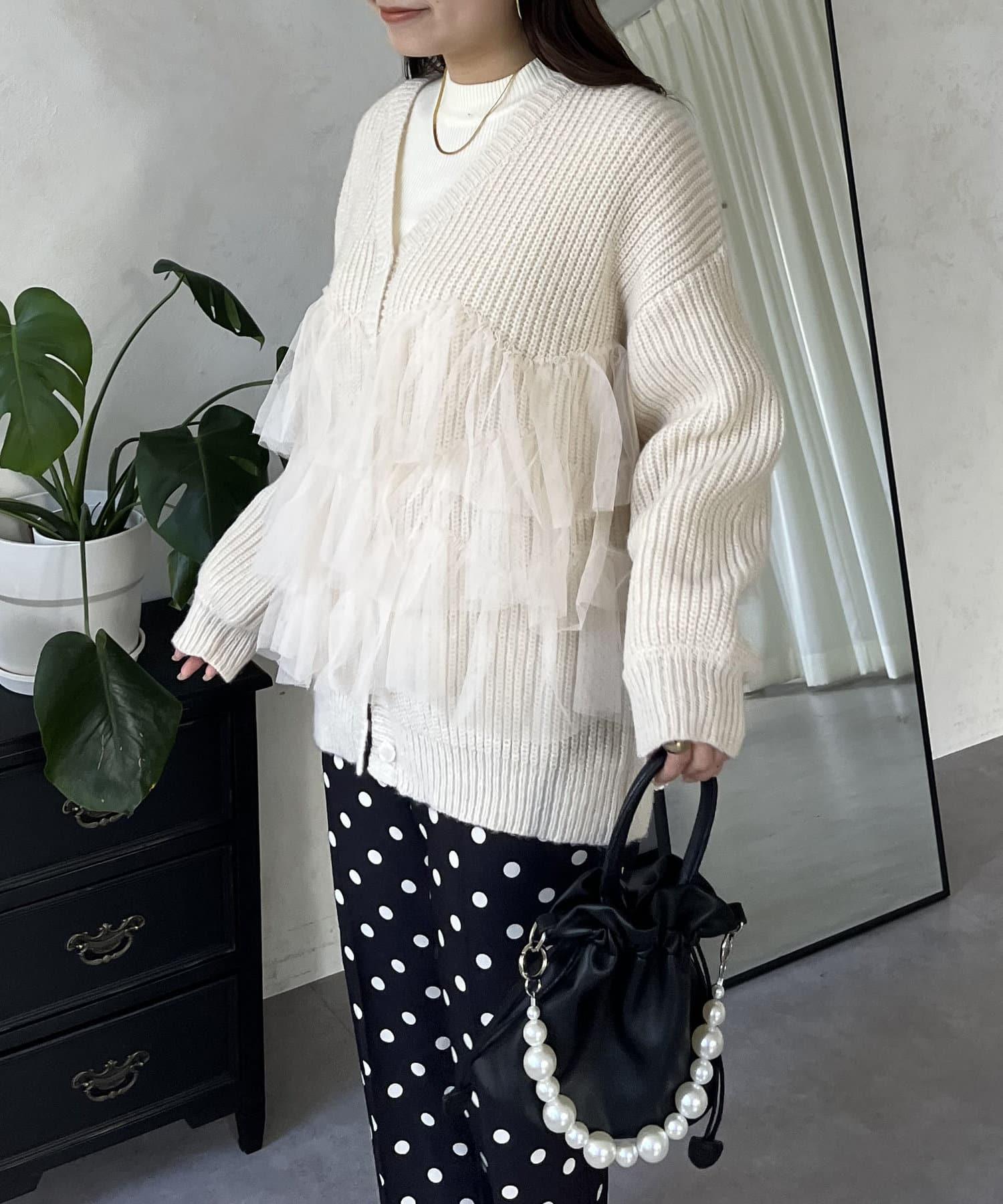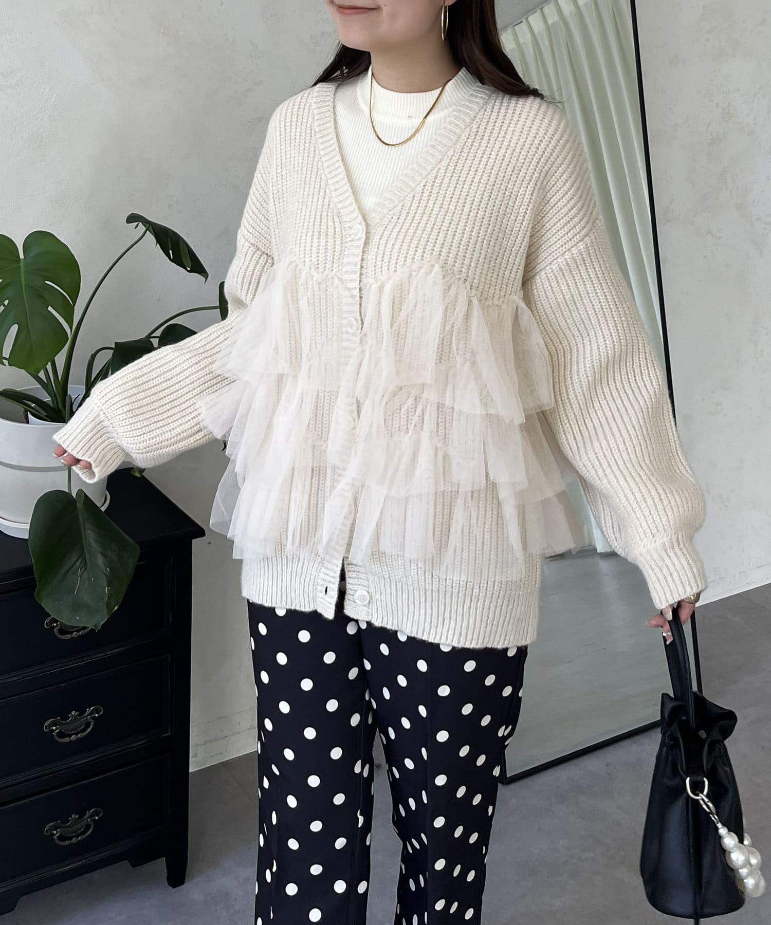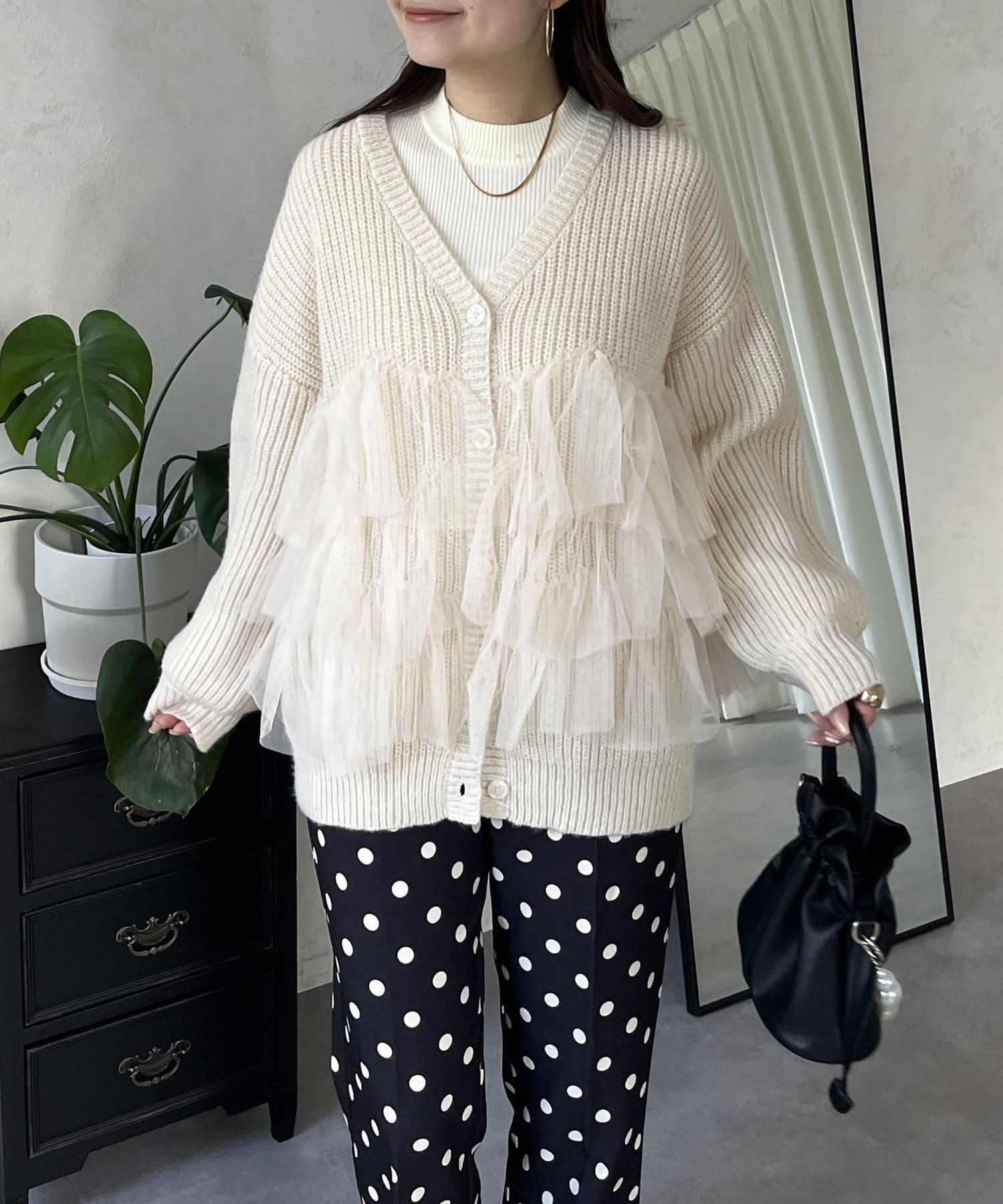 下襬蕾絲針織開衫