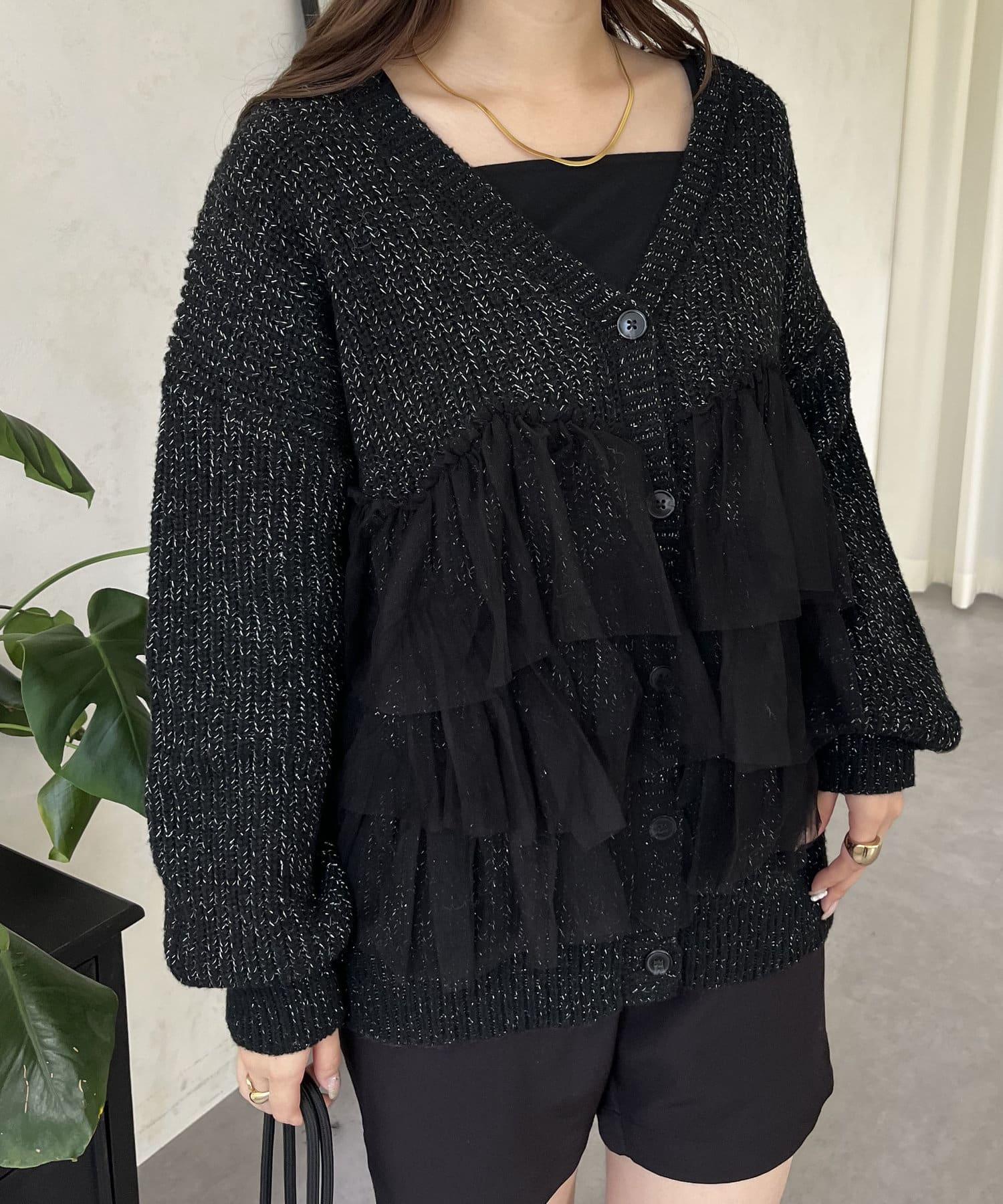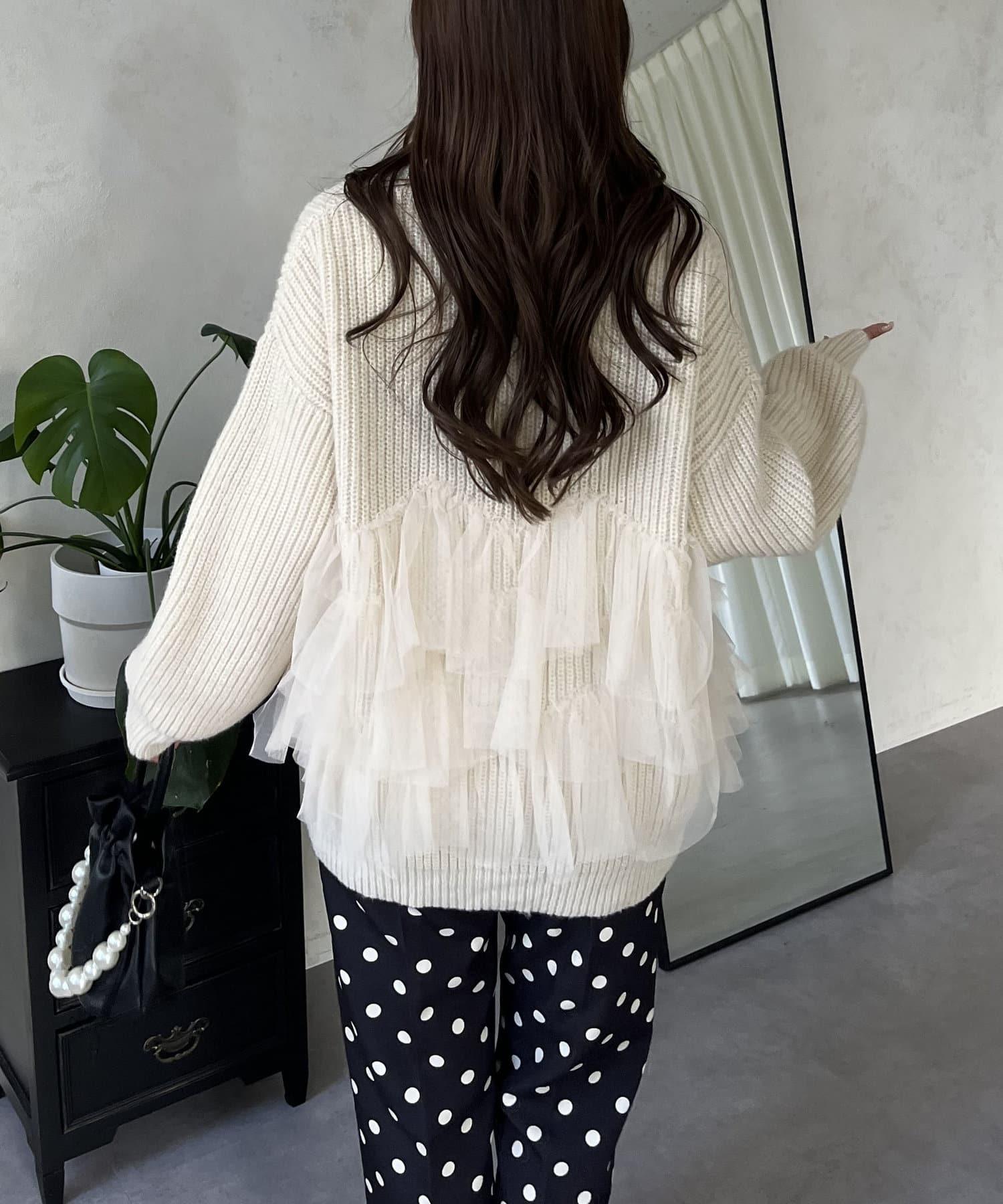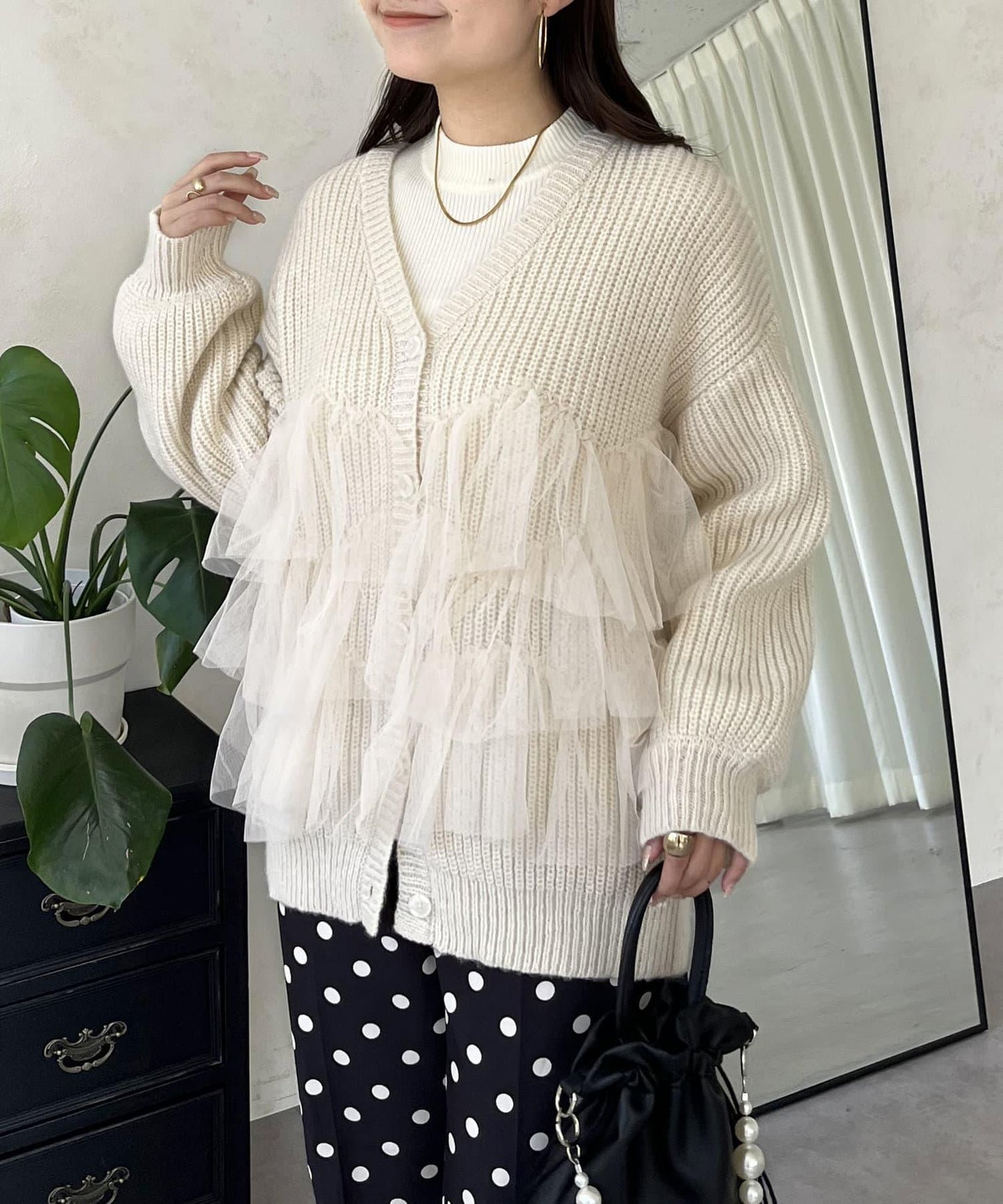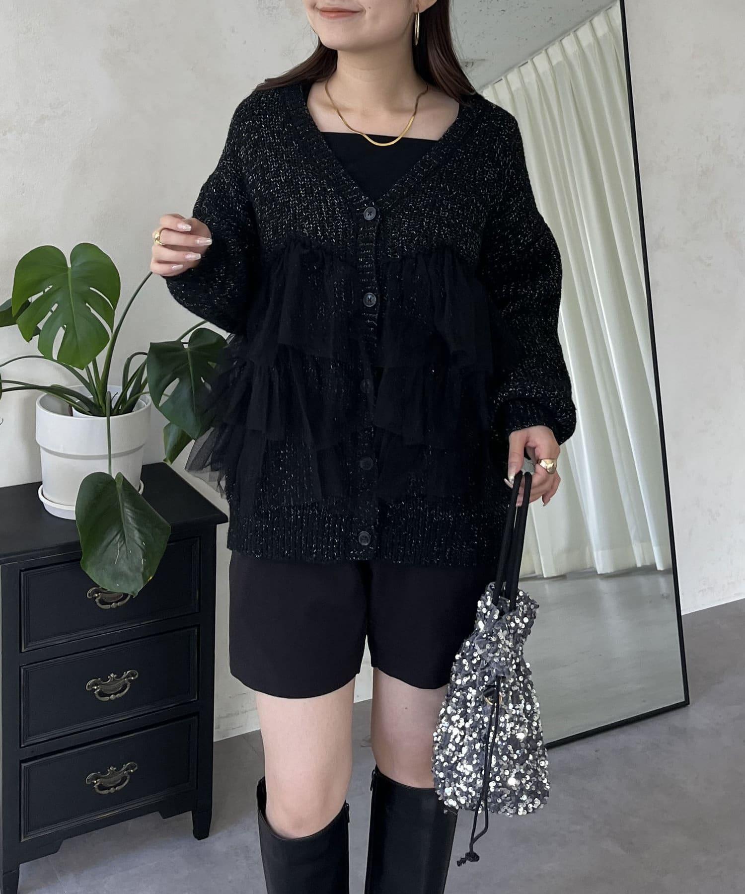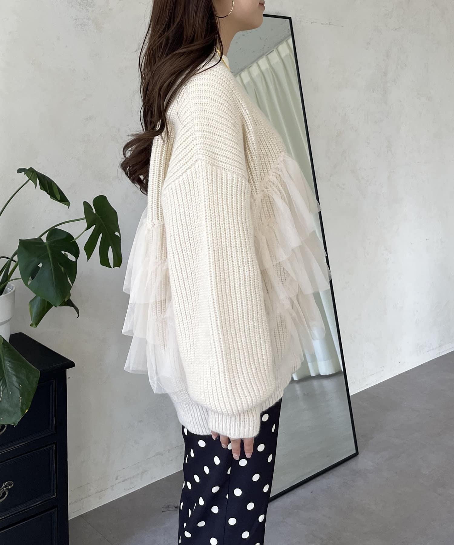 下襬蕾絲針織開衫
