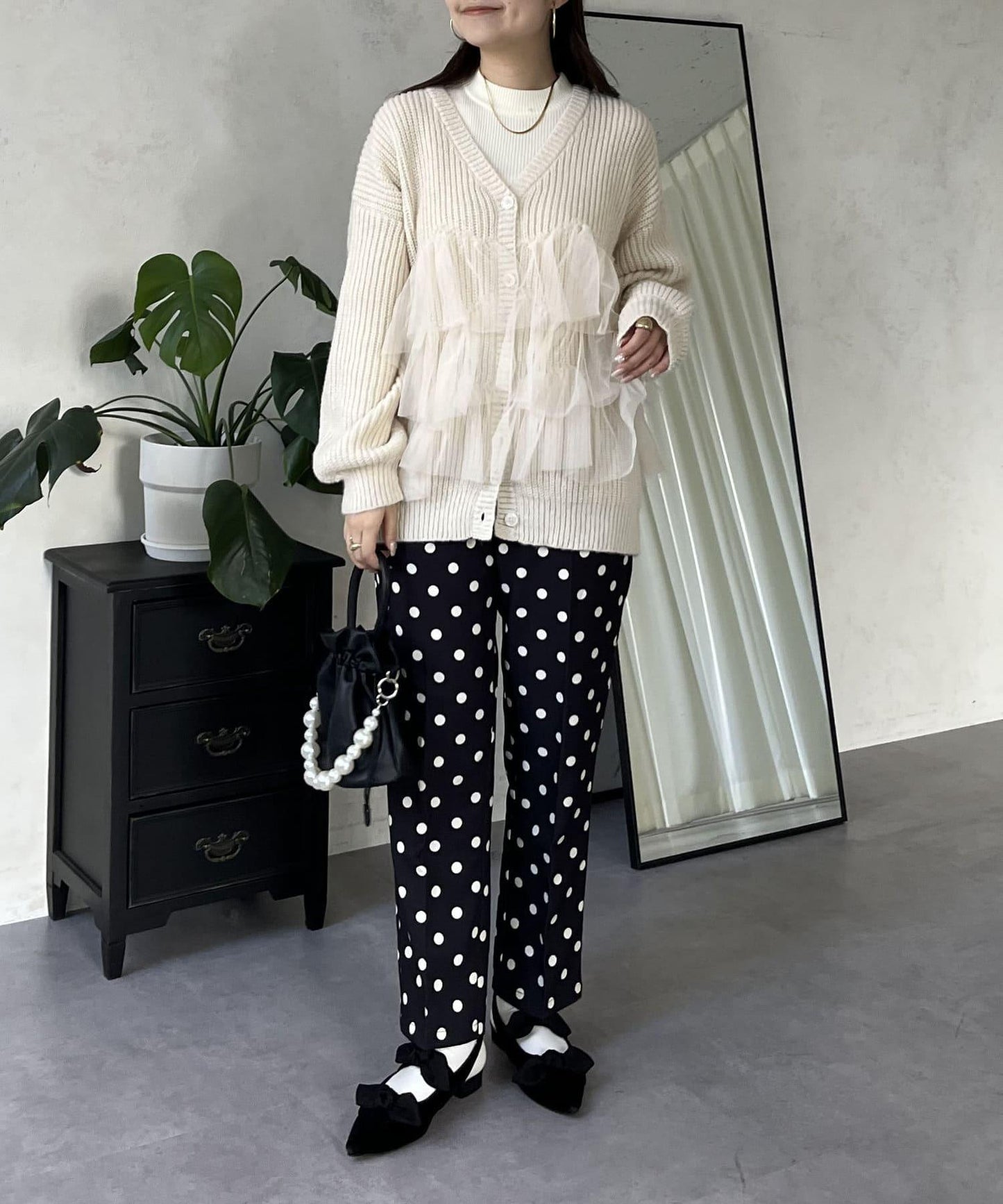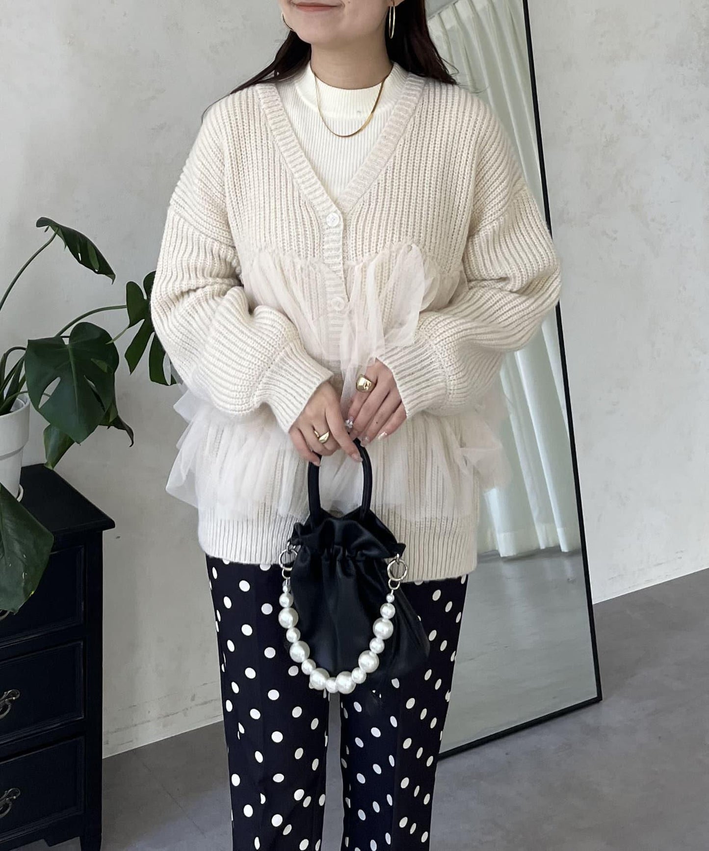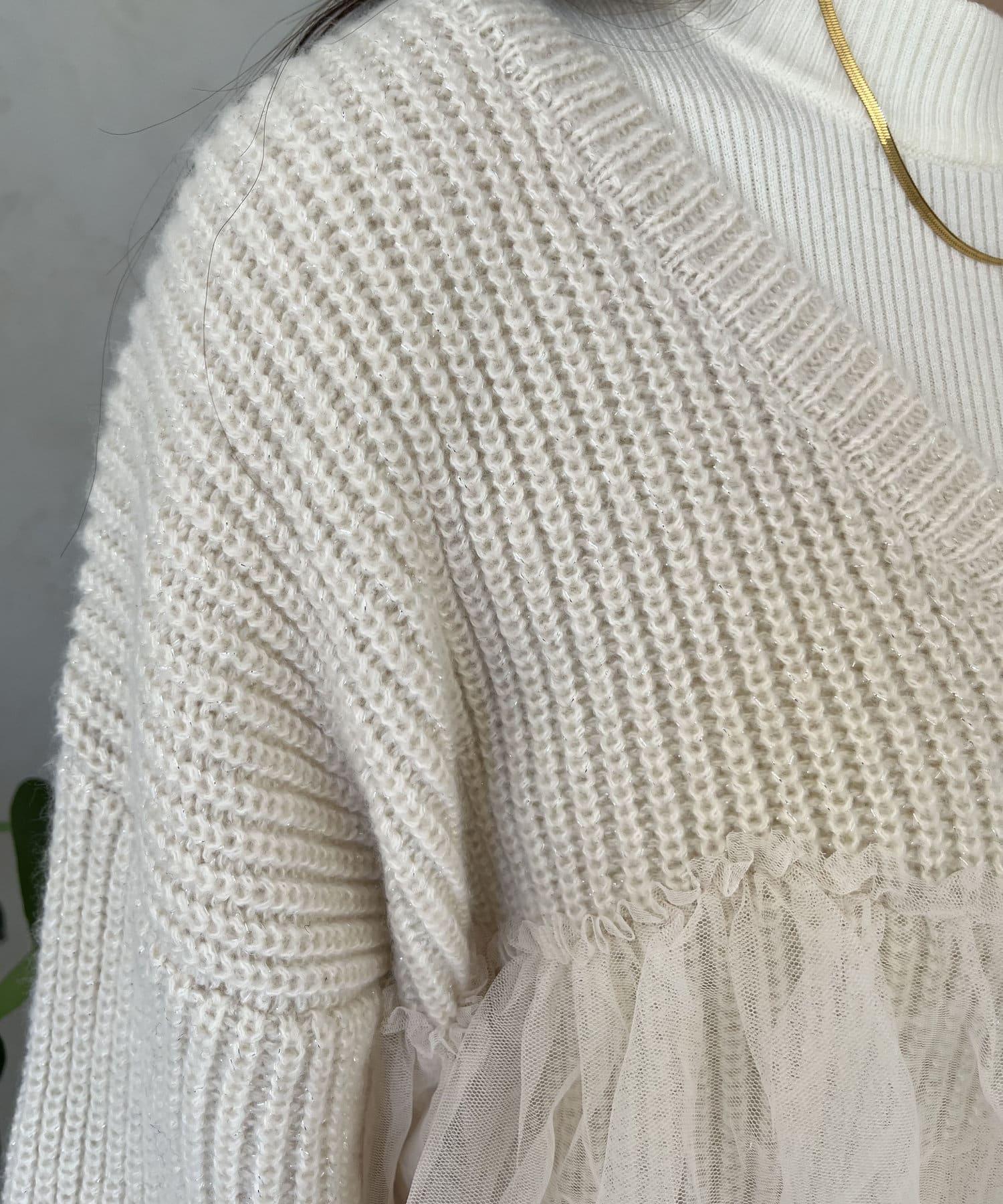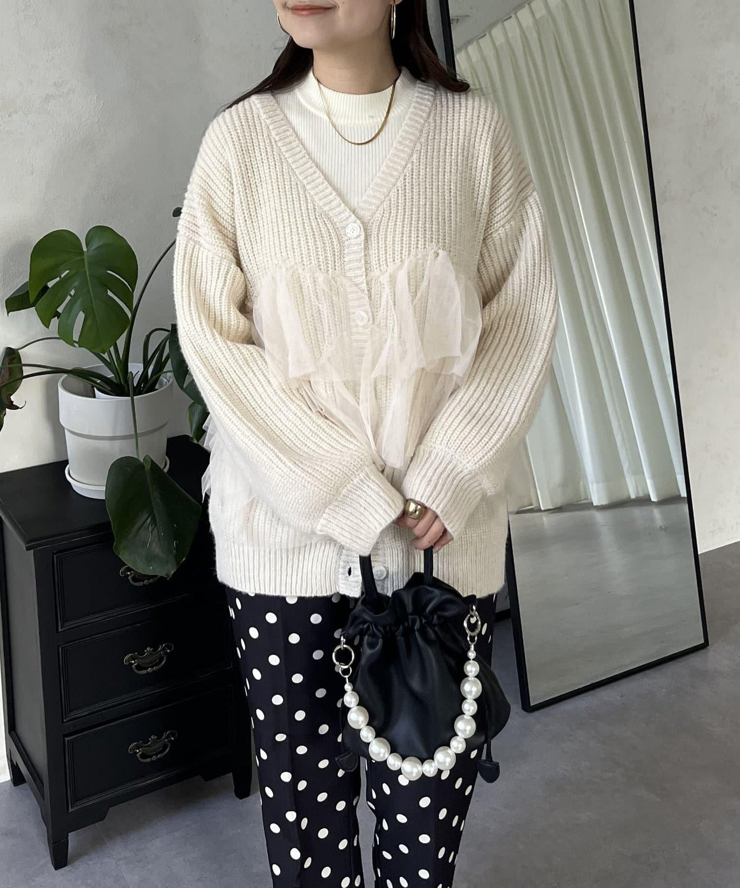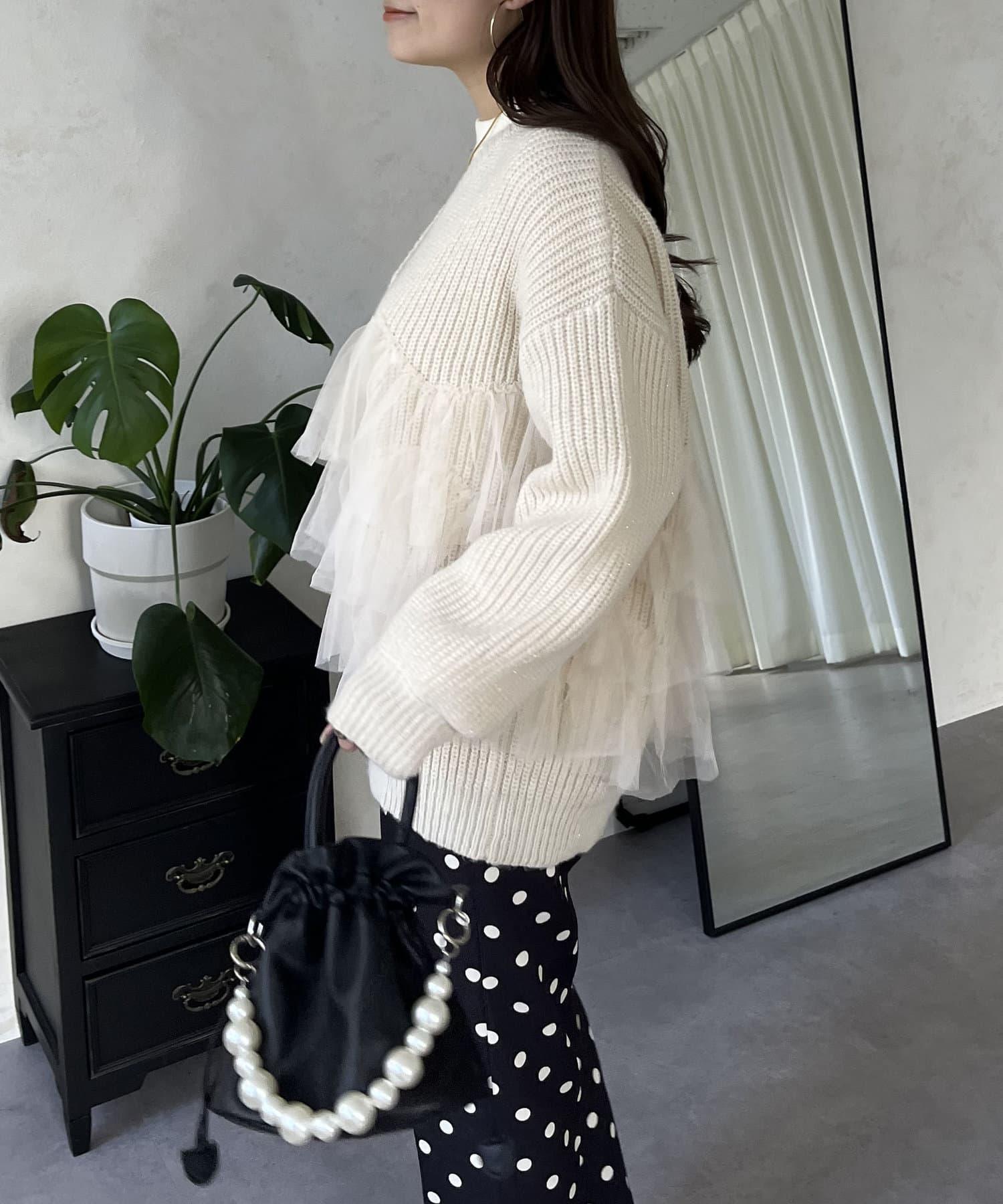 下襬蕾絲針織開衫