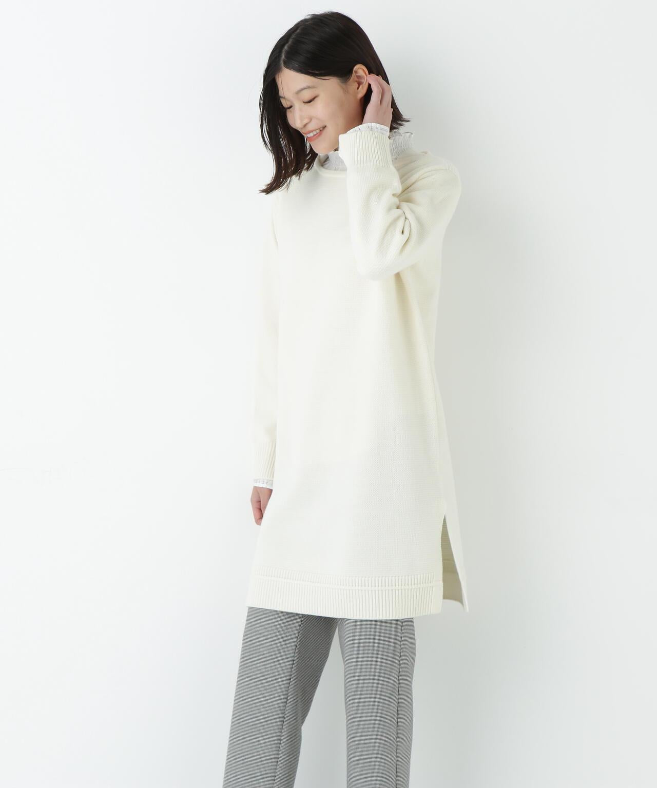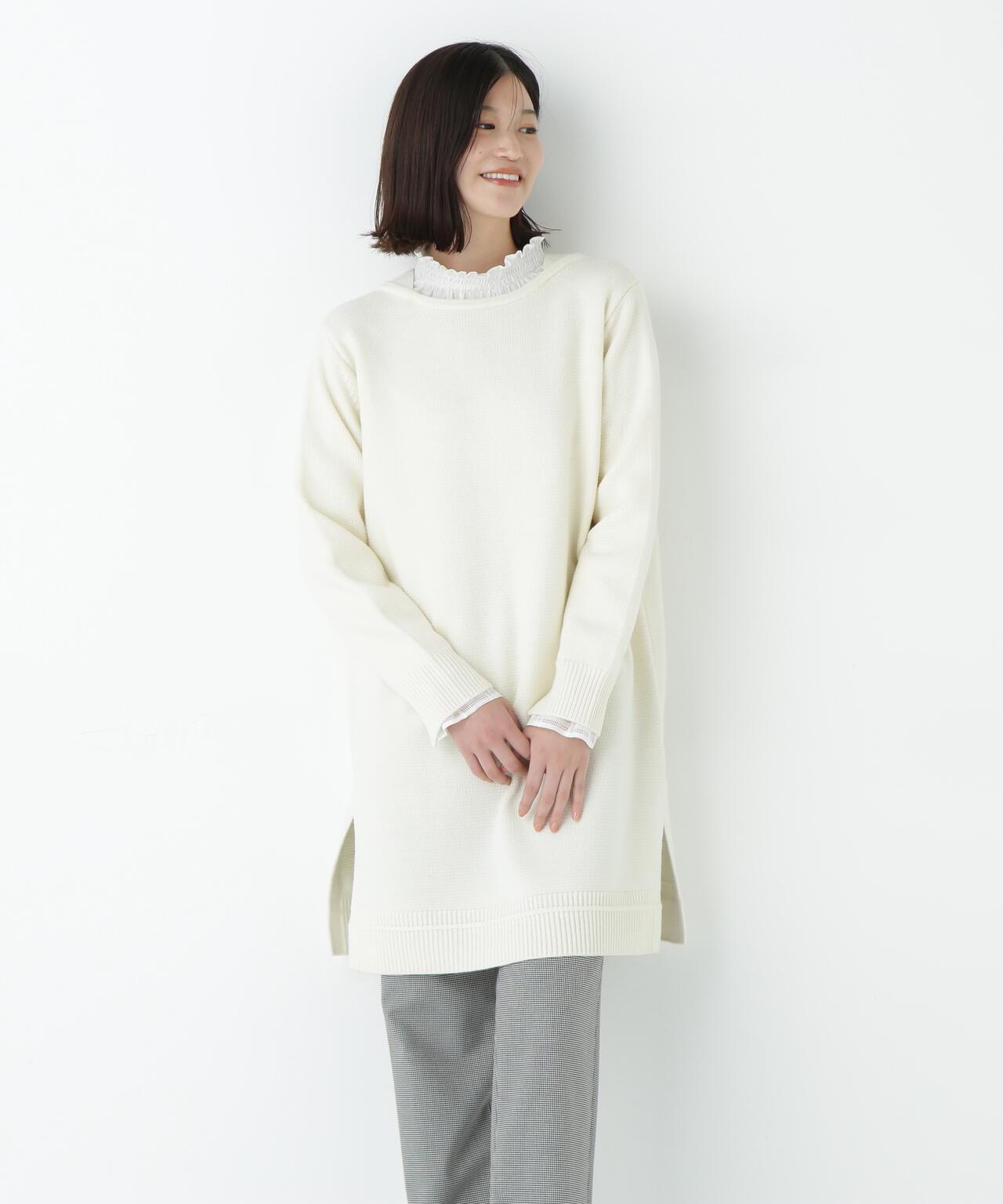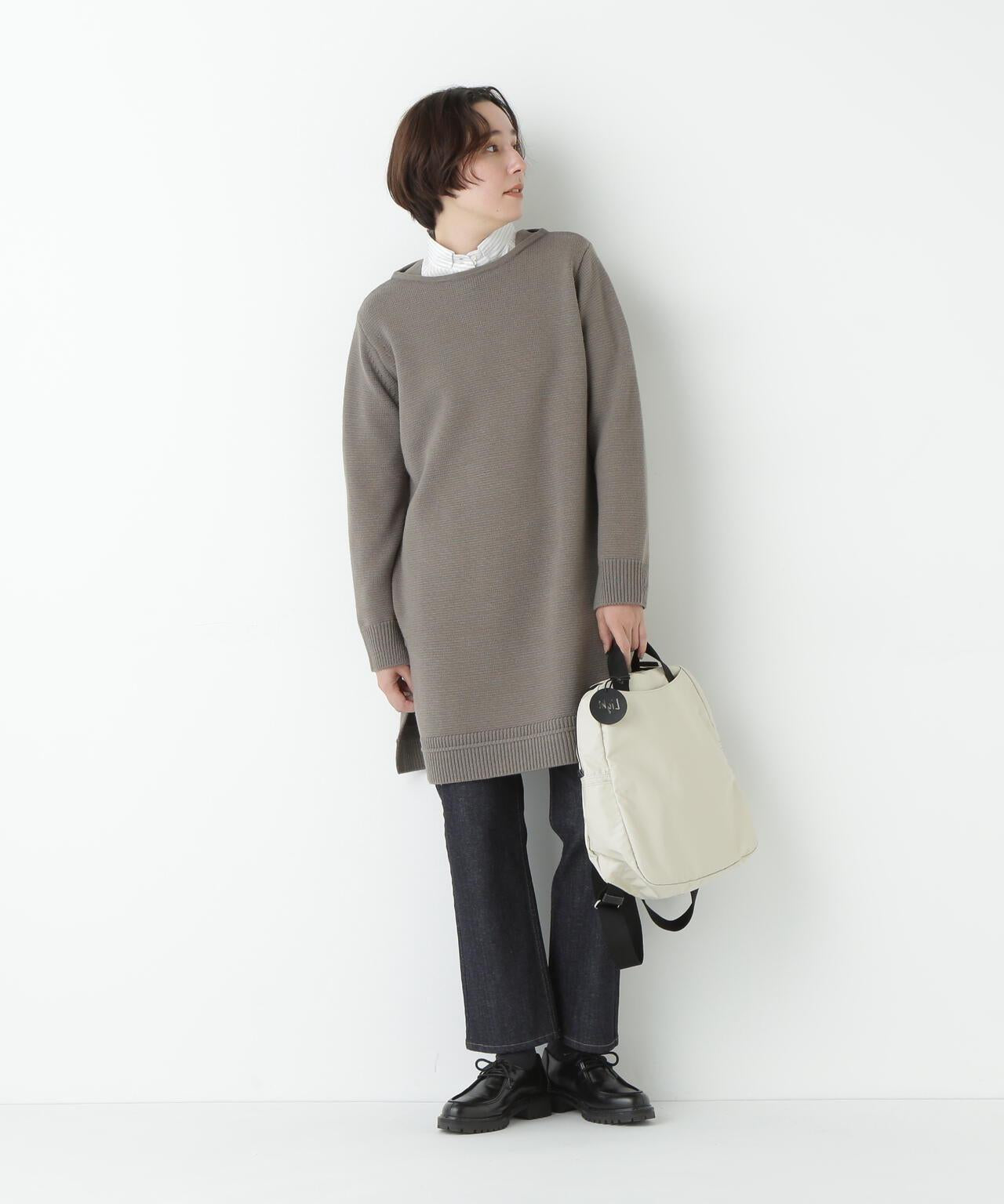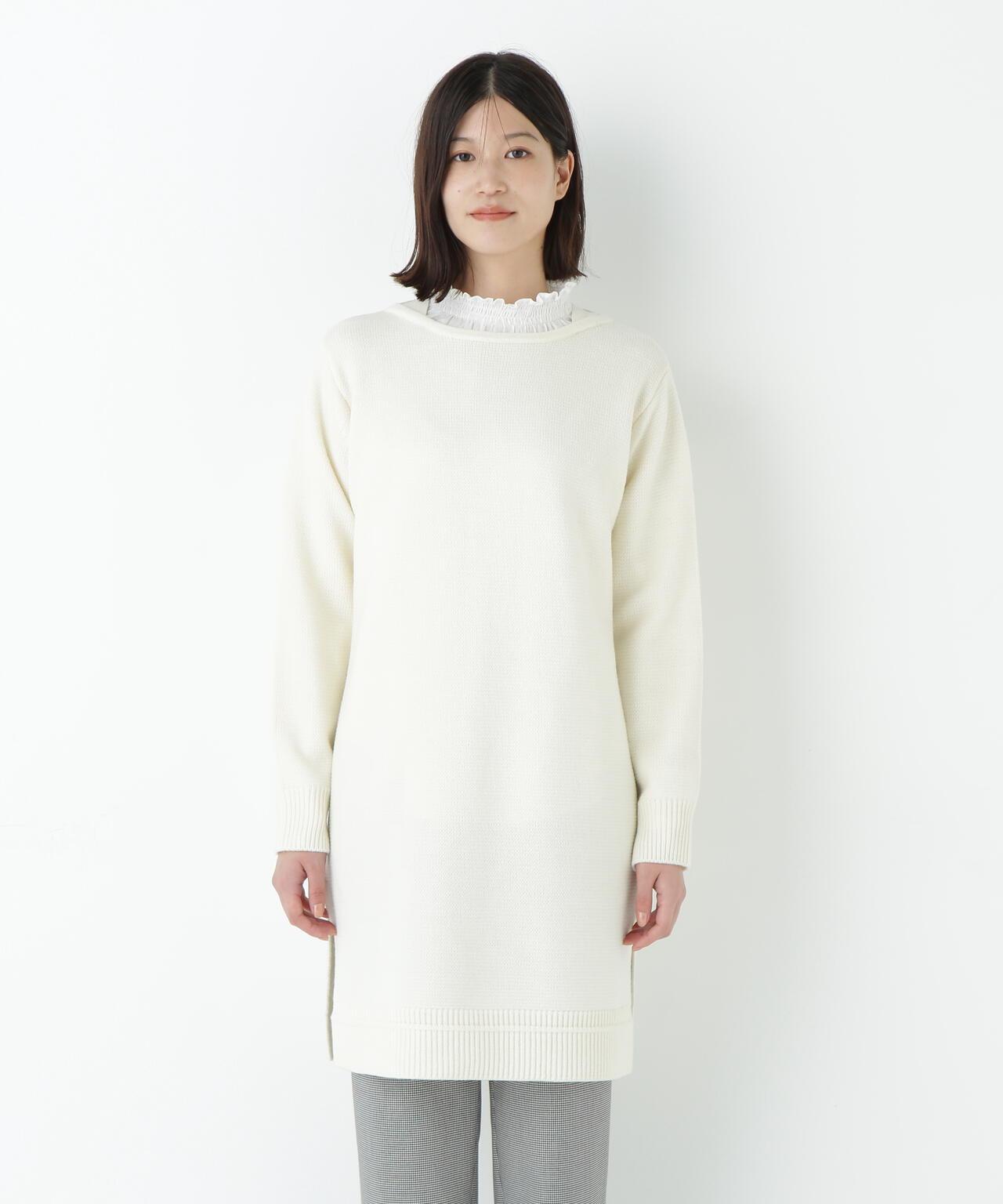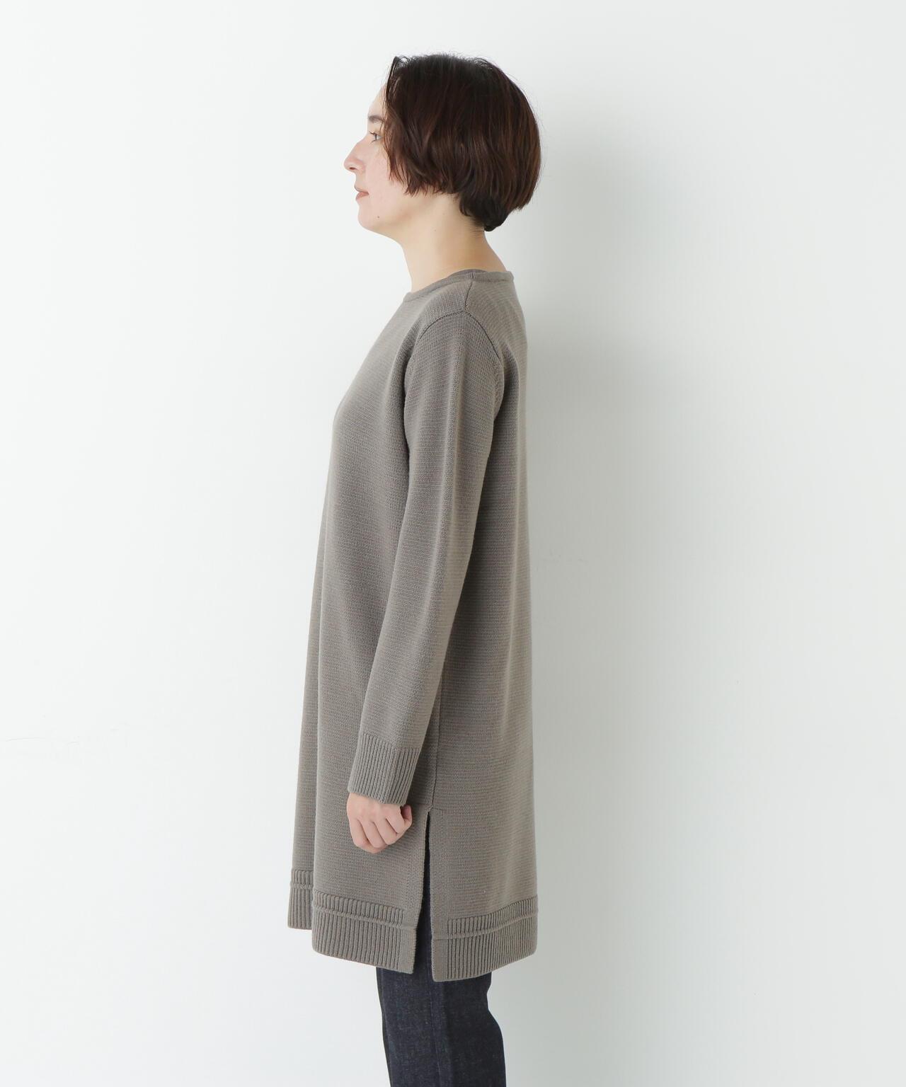 成人休閒風針織迷你連衣裙 [設計特色] 這款迷你連衣裙可搭配長褲。領口的船領設計與今年的設計一樣,是一款成人休閒裝。連衣裙的寬度適中,不會顯得臃腫。紗線由羊毛腈綸製成,具有豐滿度和輕盈感。通過改變針織物的針腳大小,使針織物表面看起來凹凸不平。建議搭配:與輪廓簡潔的褲子搭配。該款針織衫與同色系的單色搭配,也能呈現出更加細緻優雅的效果。