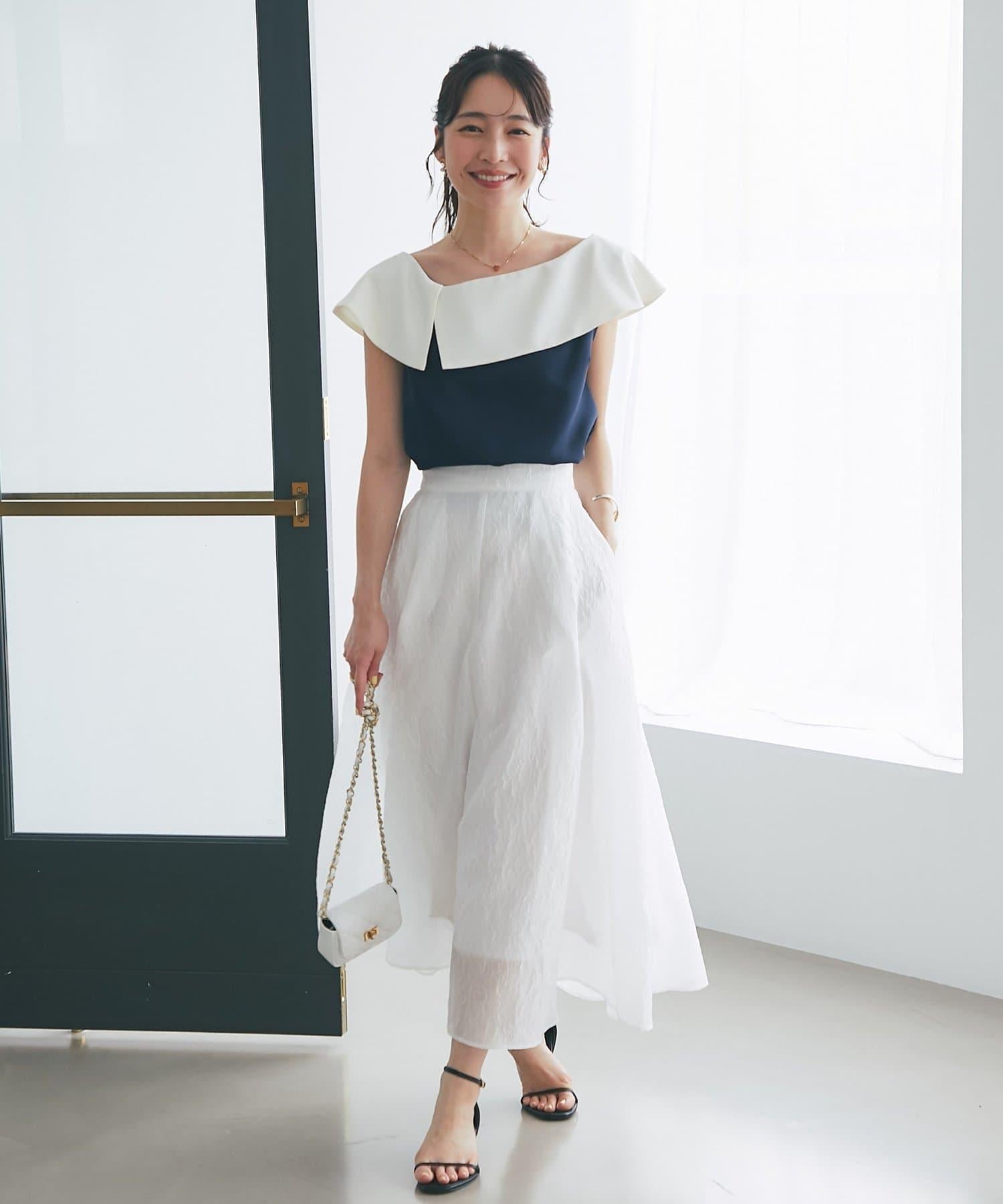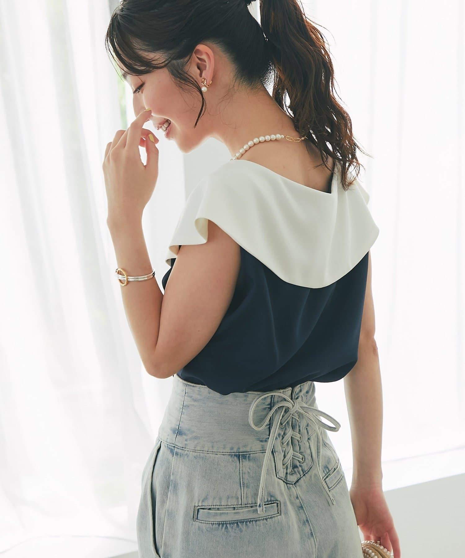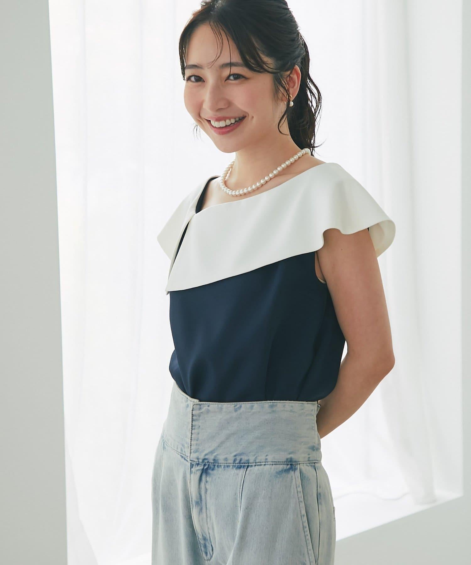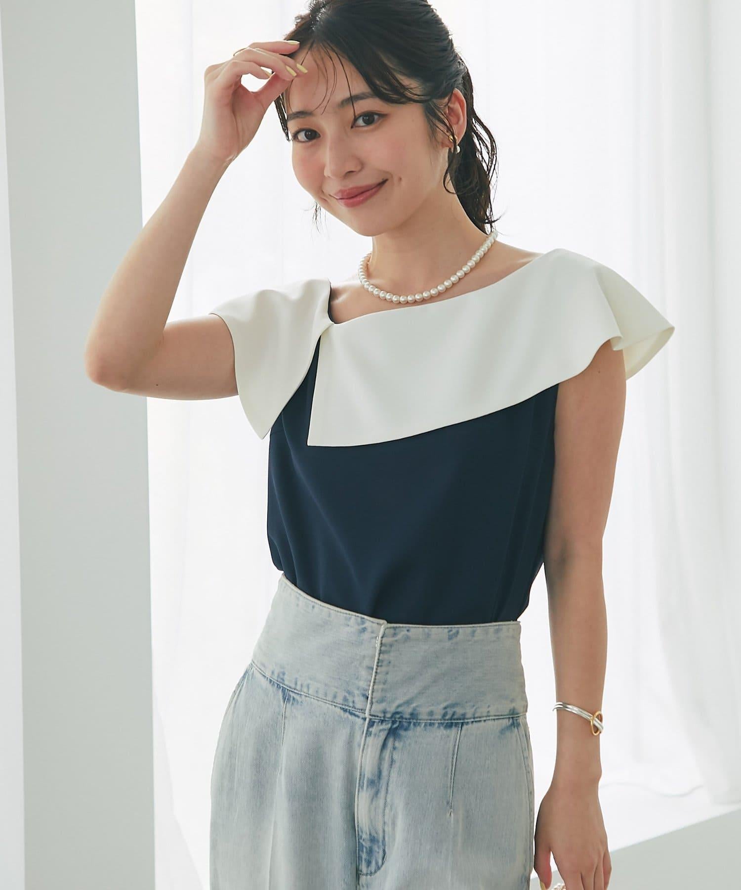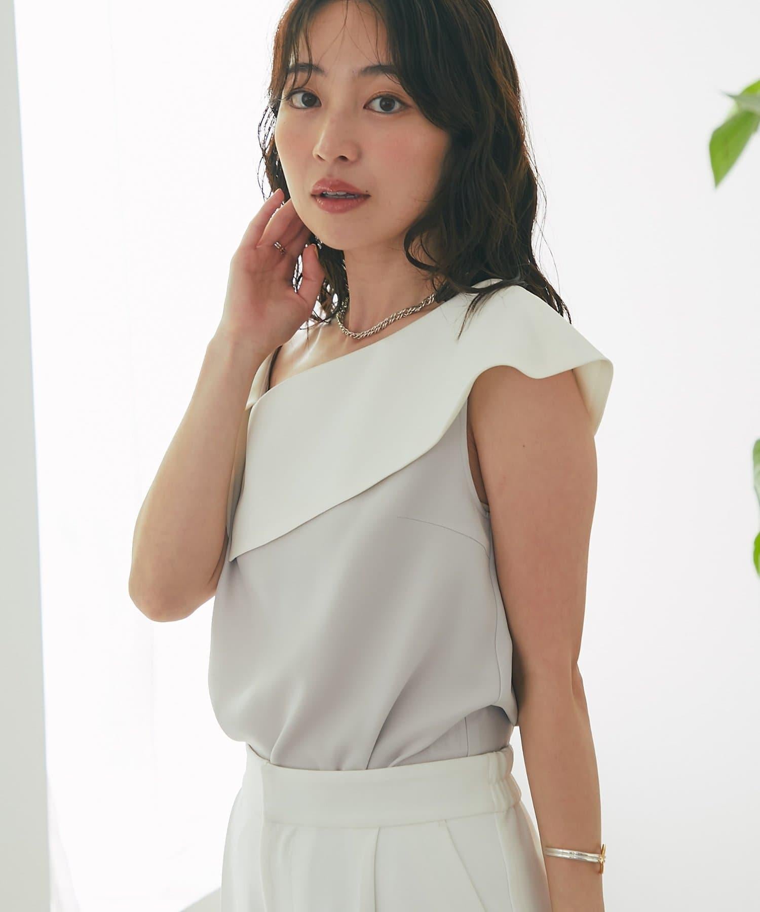 設計精良的無袖上衣,不對稱衣領十分搶眼。
