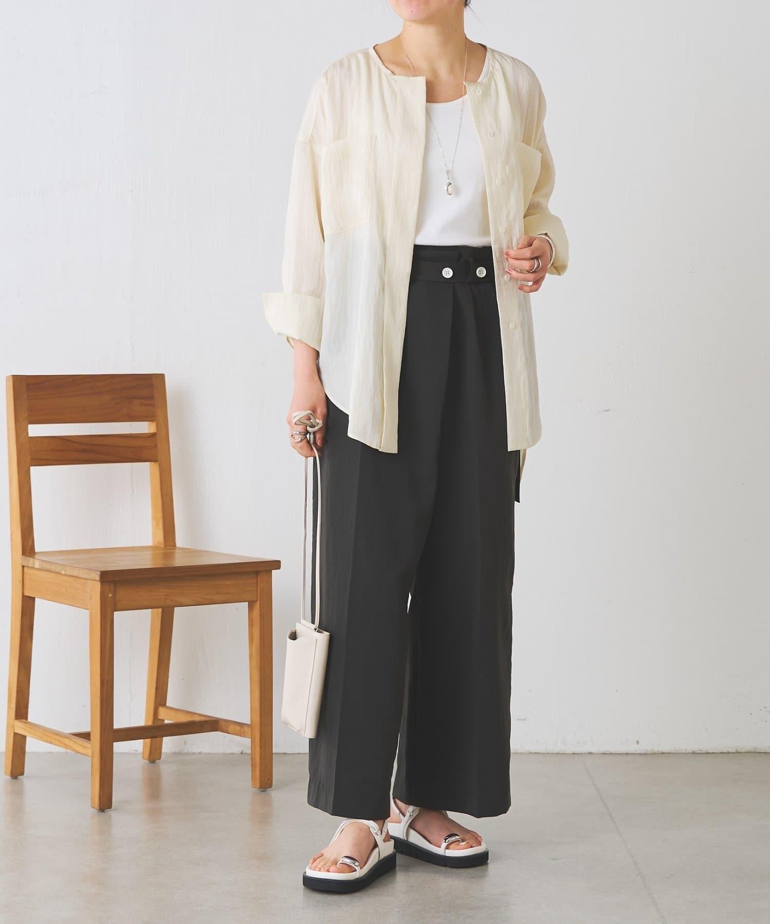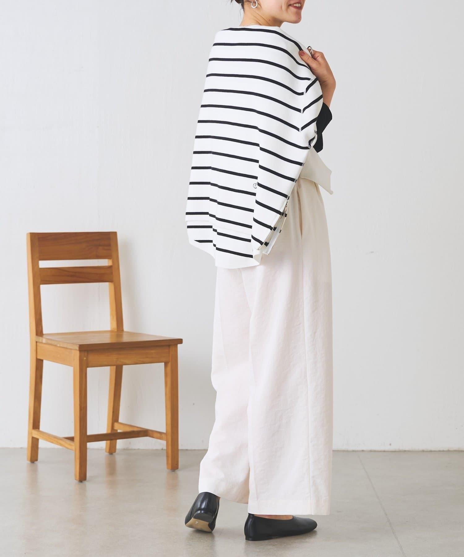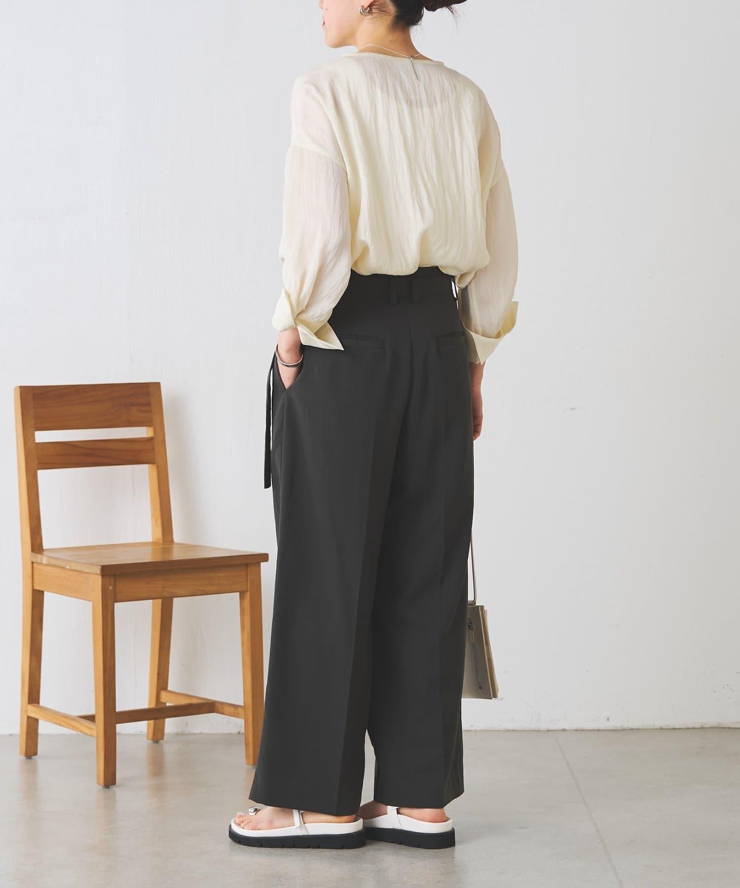 通過內收形成的垂感和中間壓線的整齊感,使這條褲子既有整潔的外觀,又有整潔的感覺。