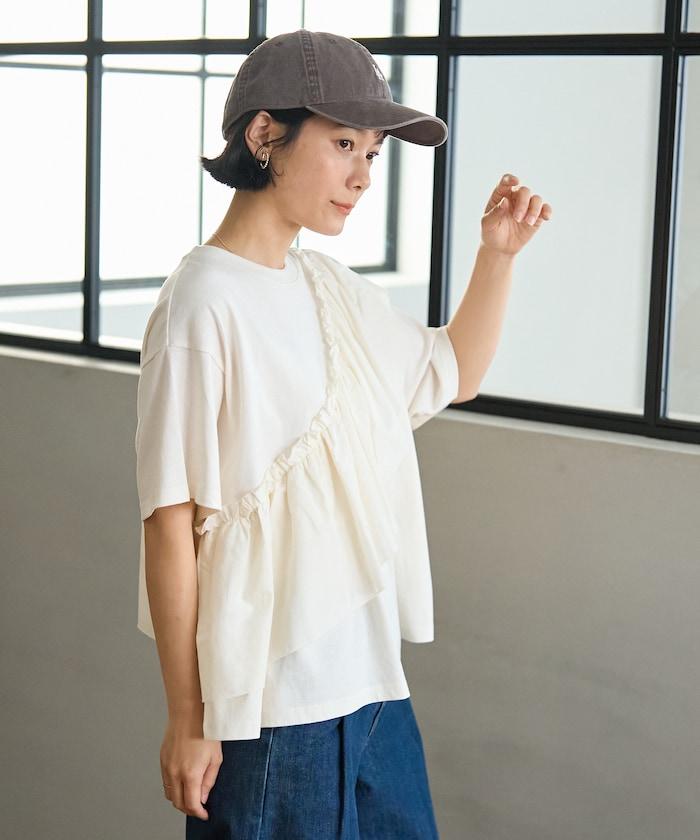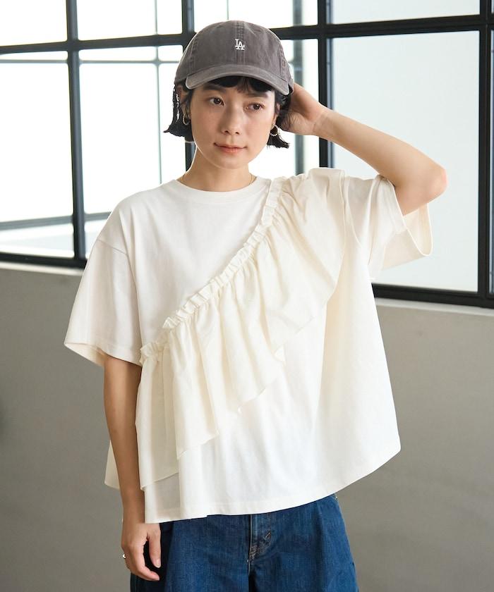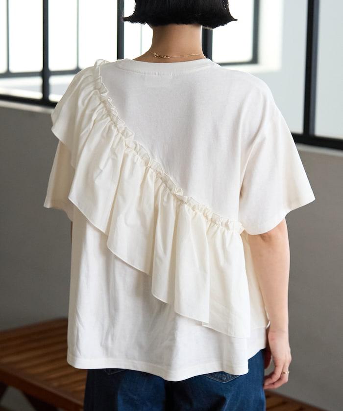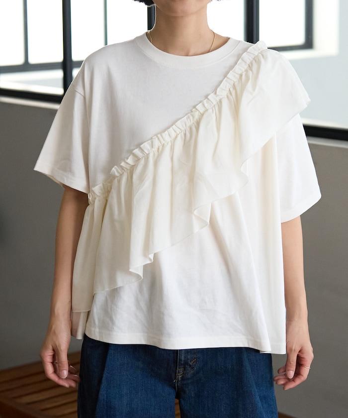 不對稱 蕾絲拼接T恤