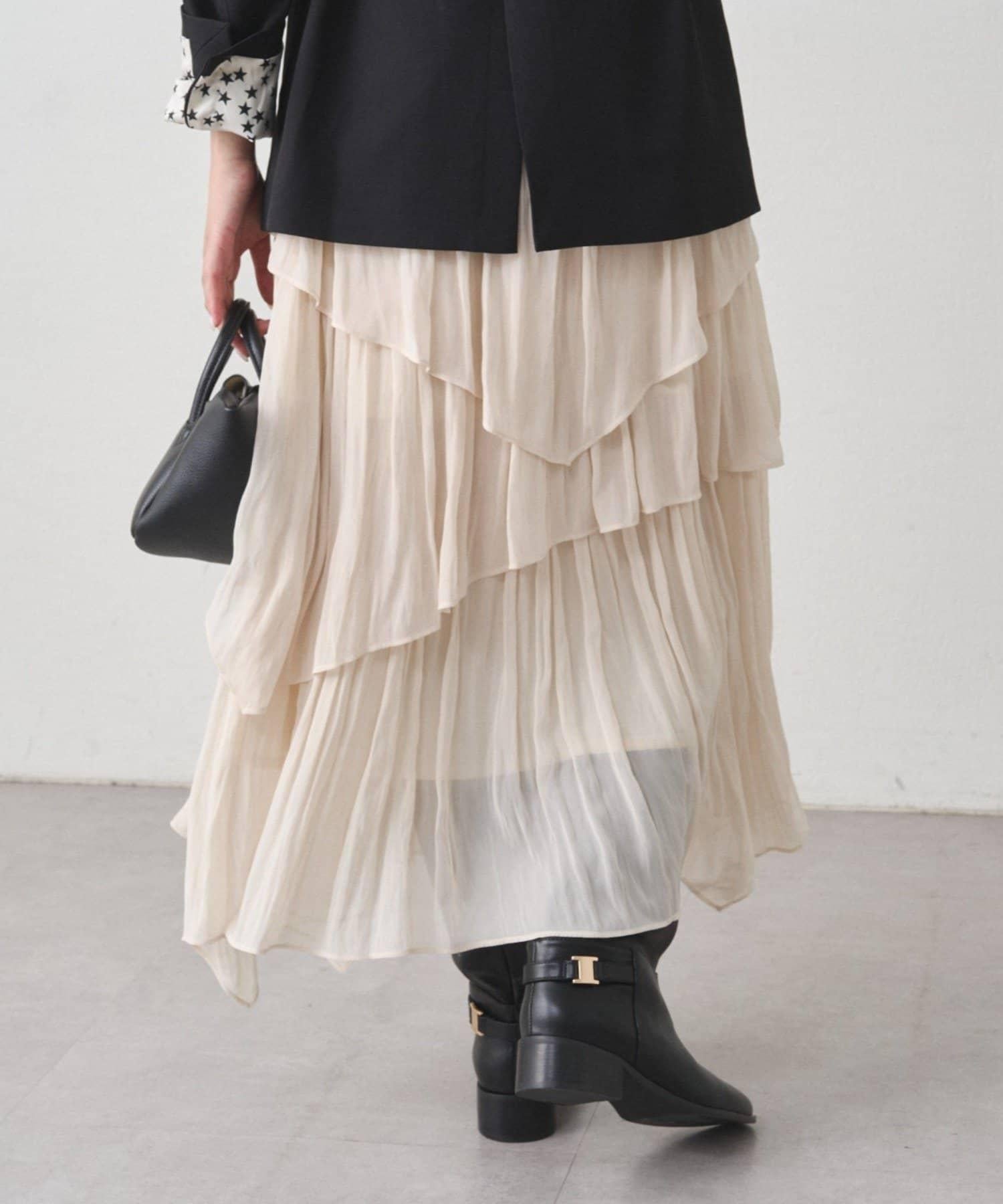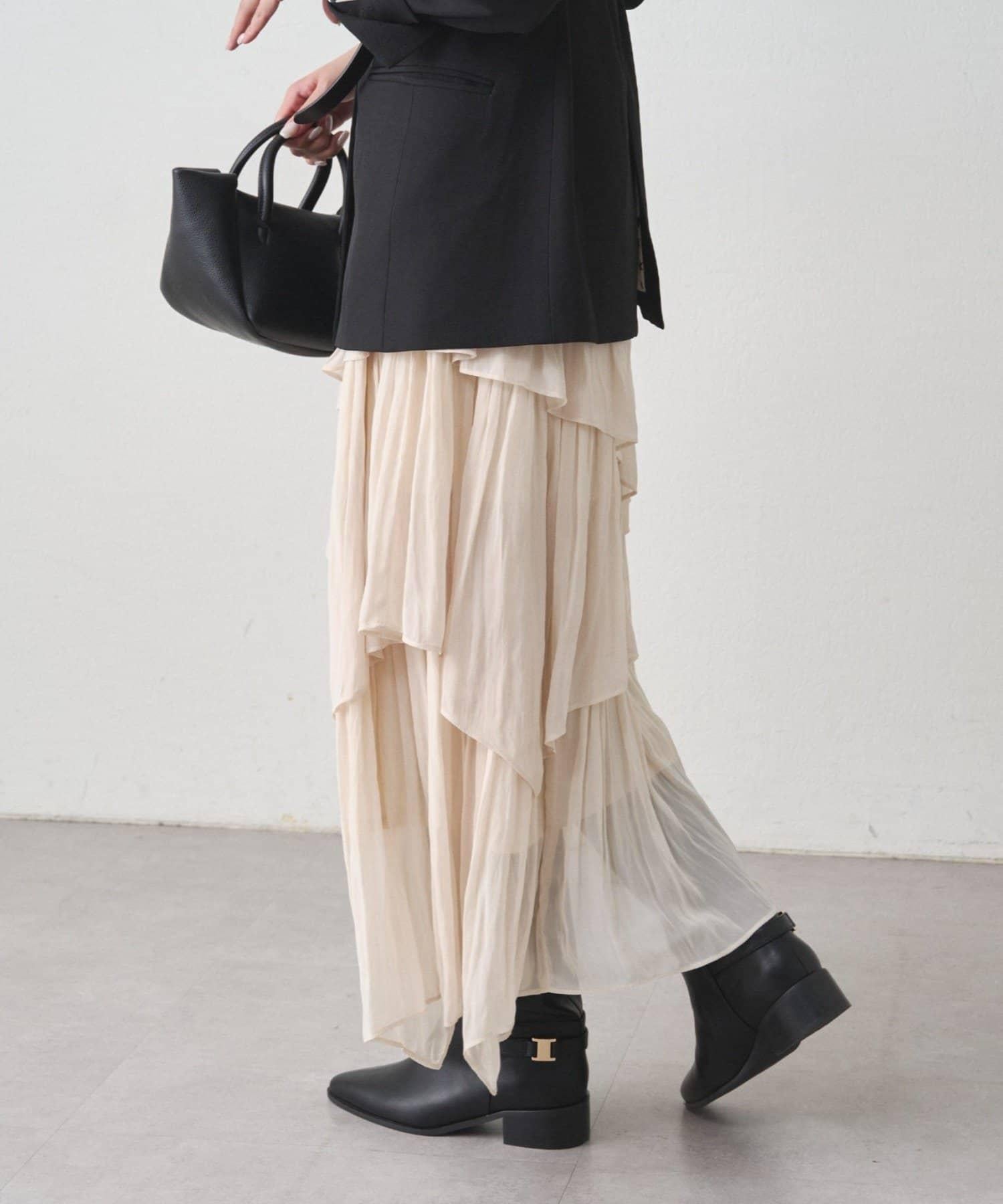 層疊設計的長裙,採用奢華柔軟的輕質材料製成