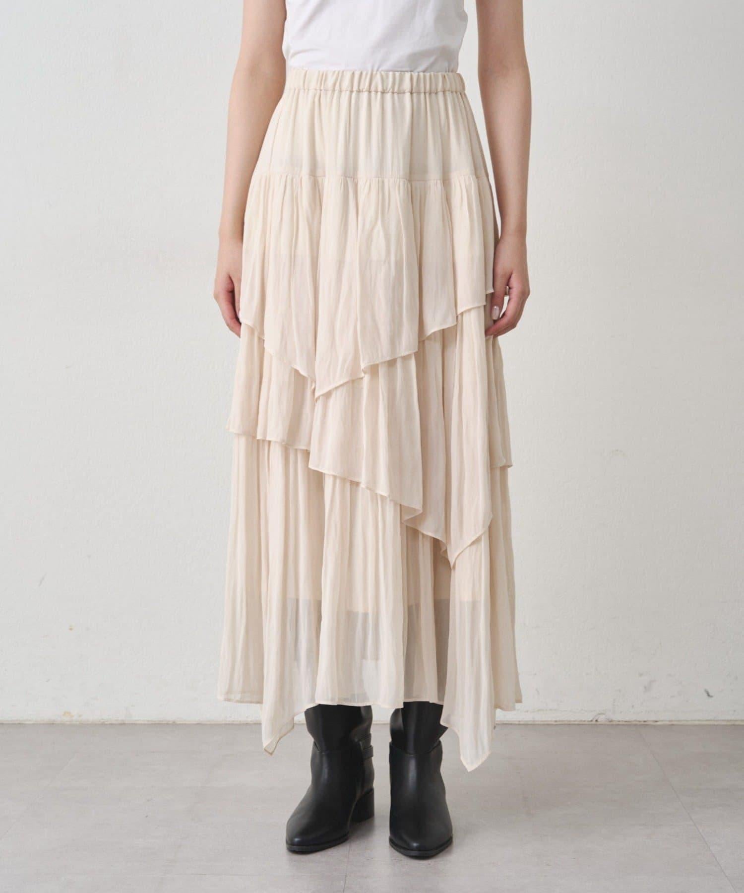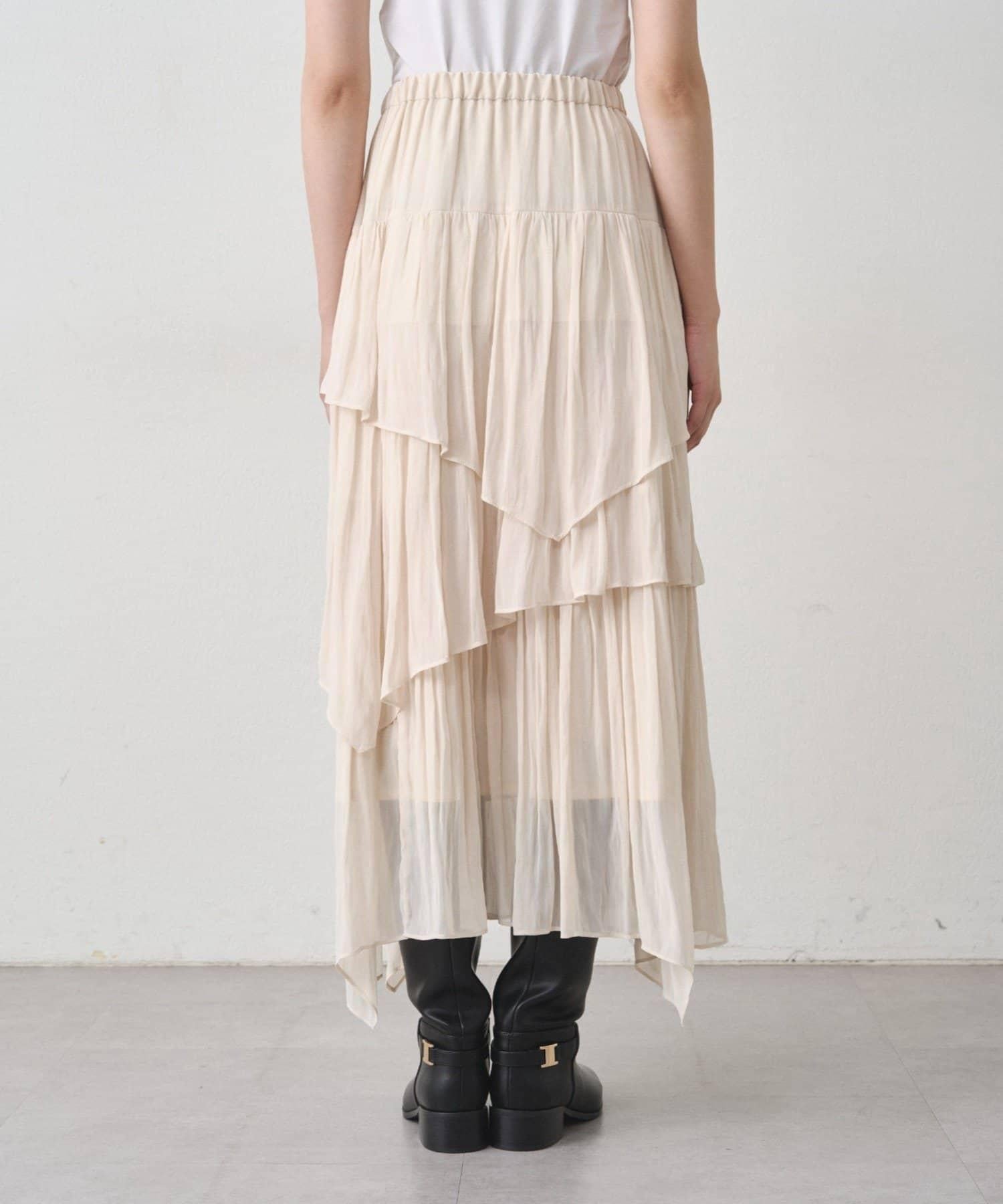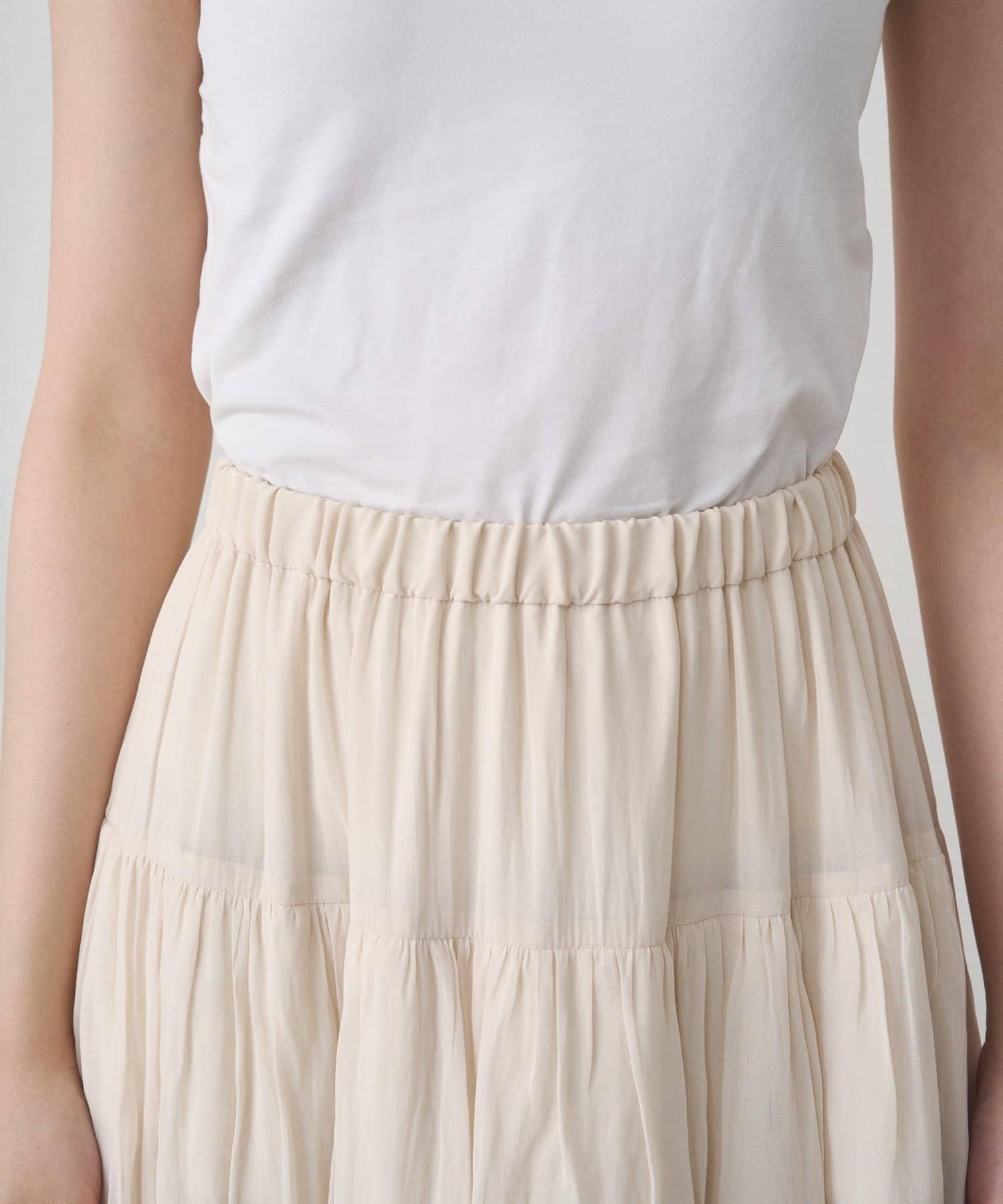 層疊裙襬的隨意長度賦予其動感,腰部的鬆緊設計讓穿著更加舒適。