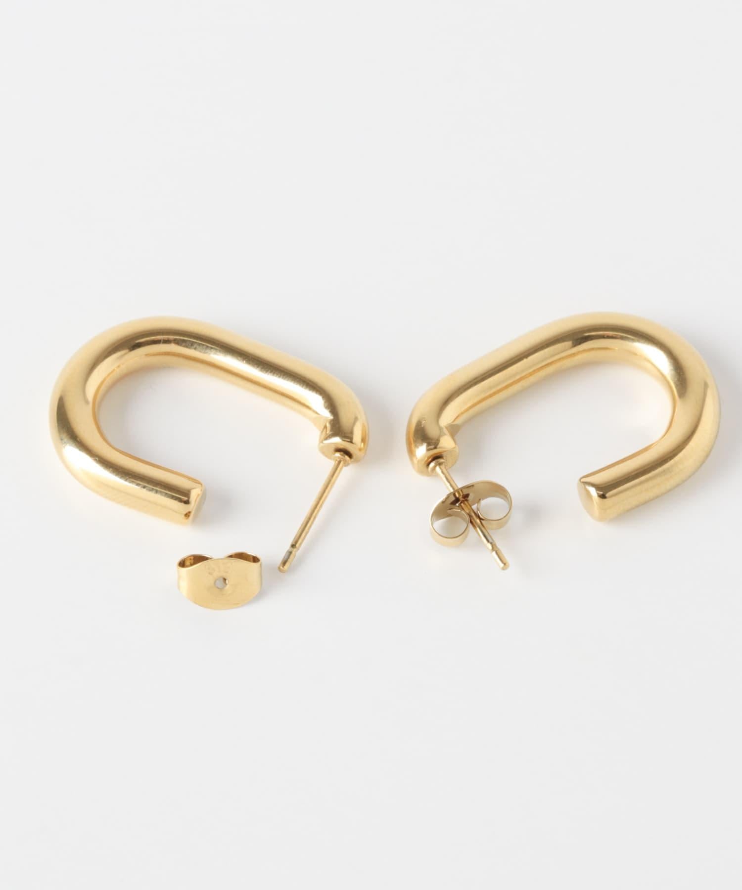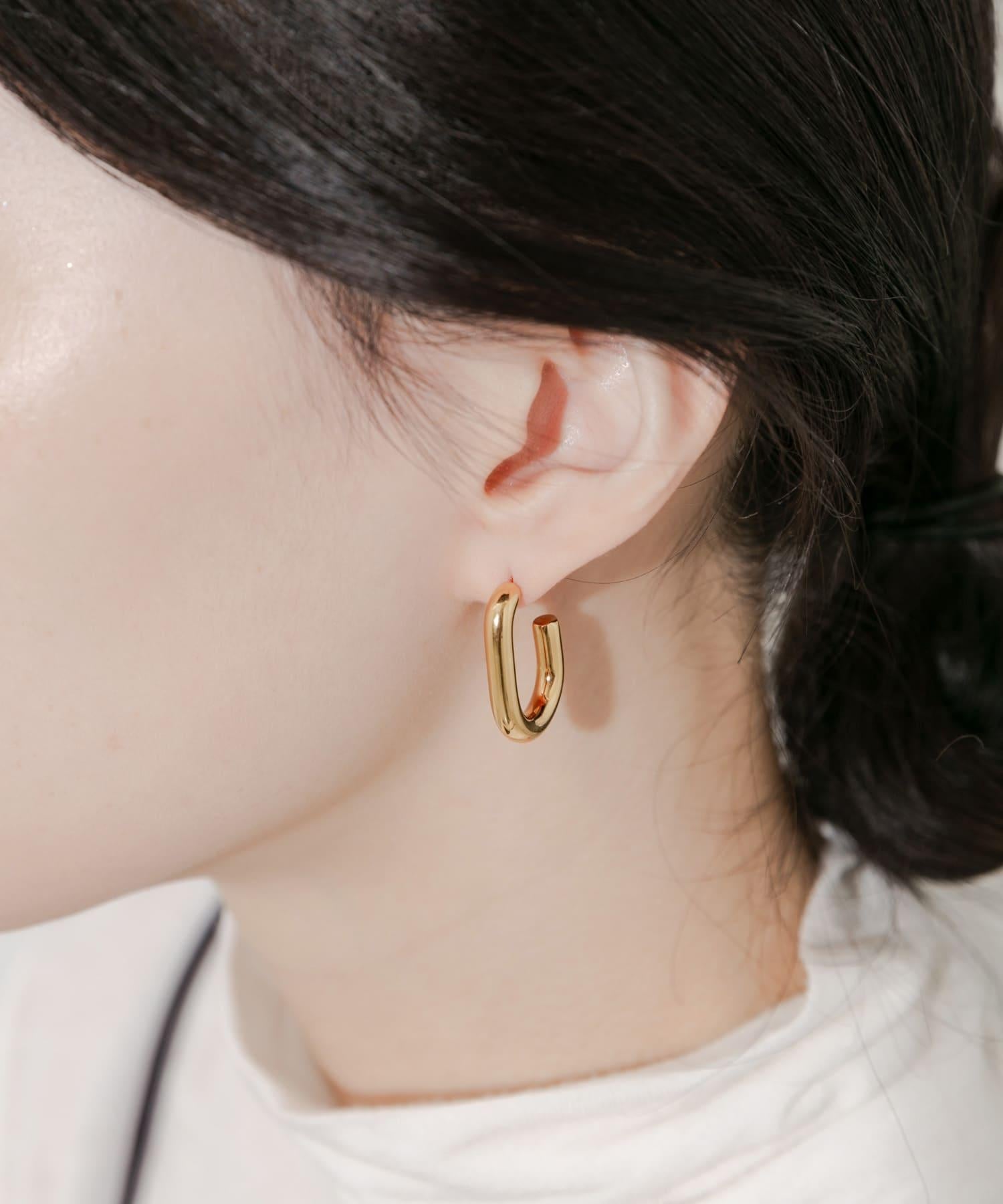 立體豐滿的 U 型環狀耳環佩戴在耳朵上,現代感十足。