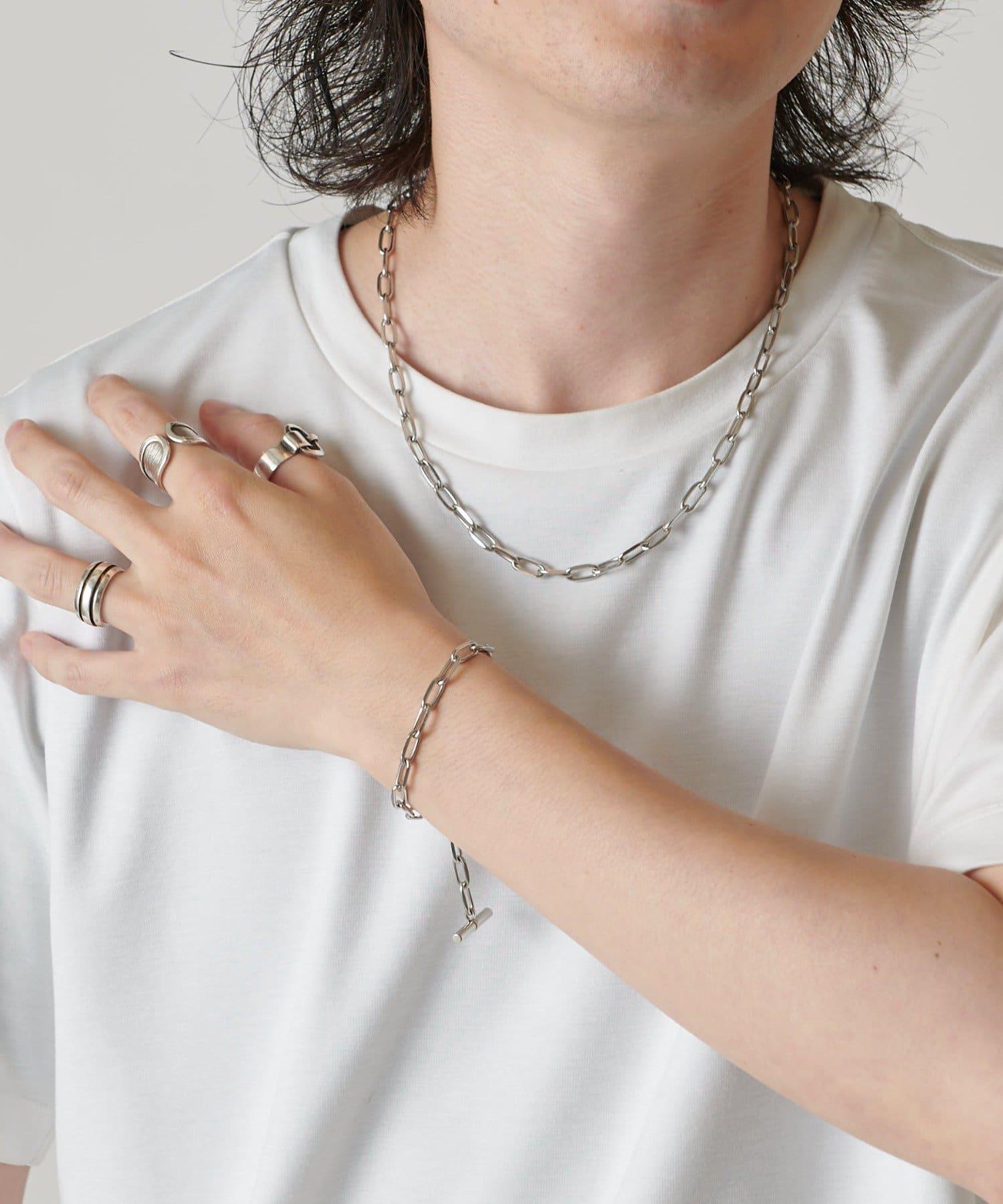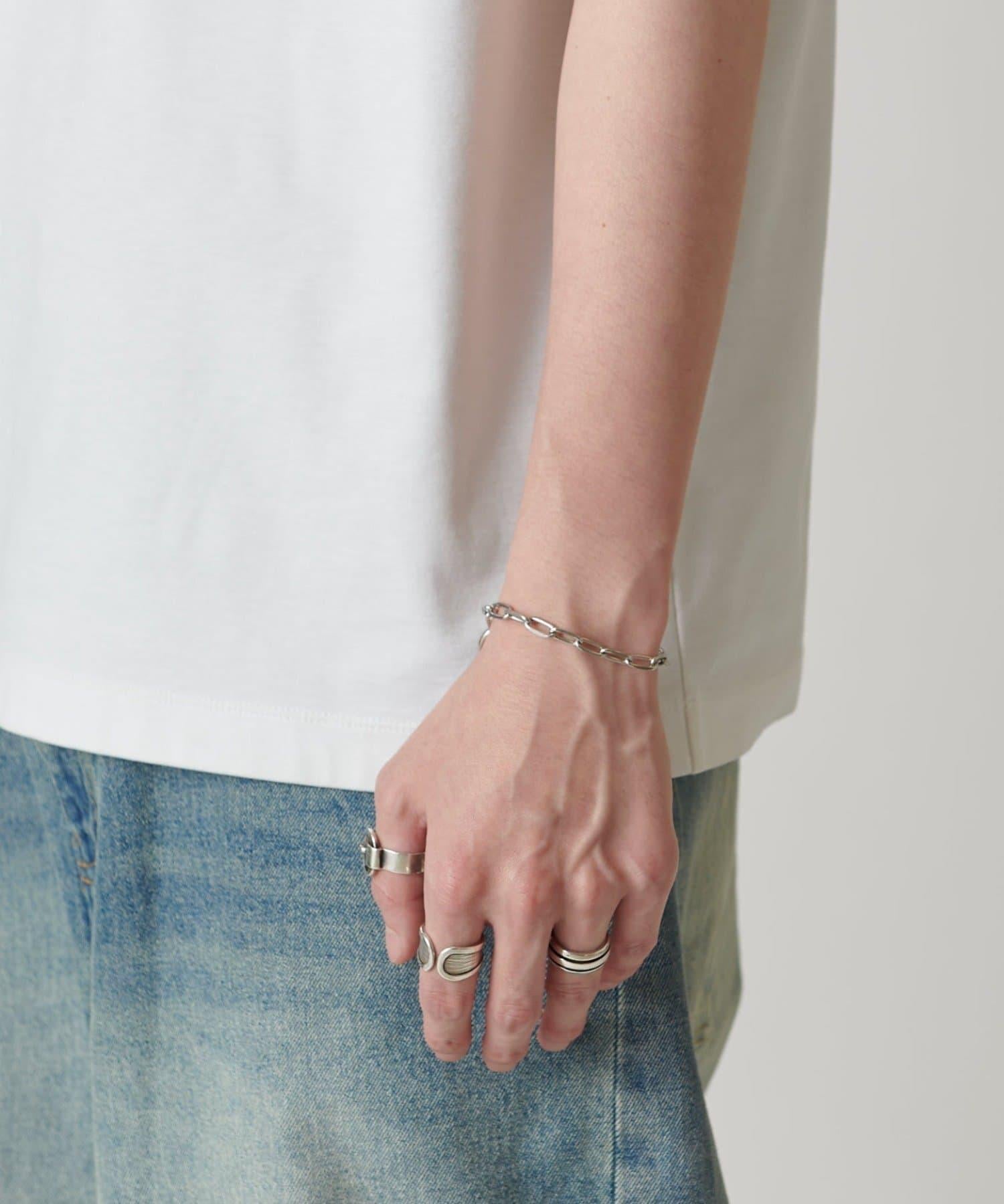 採用不鏽鋼作為材料。不鏽鋼具有極佳的耐腐蝕性,不易生鏽,可以長時間享受其光澤。它可以在洗澡、水中工作或運動時佩戴。這種材料的硬度使其不易劃傷,其出色的耐腐蝕性意味著不易溶解可能導致過敏的金屬離子。