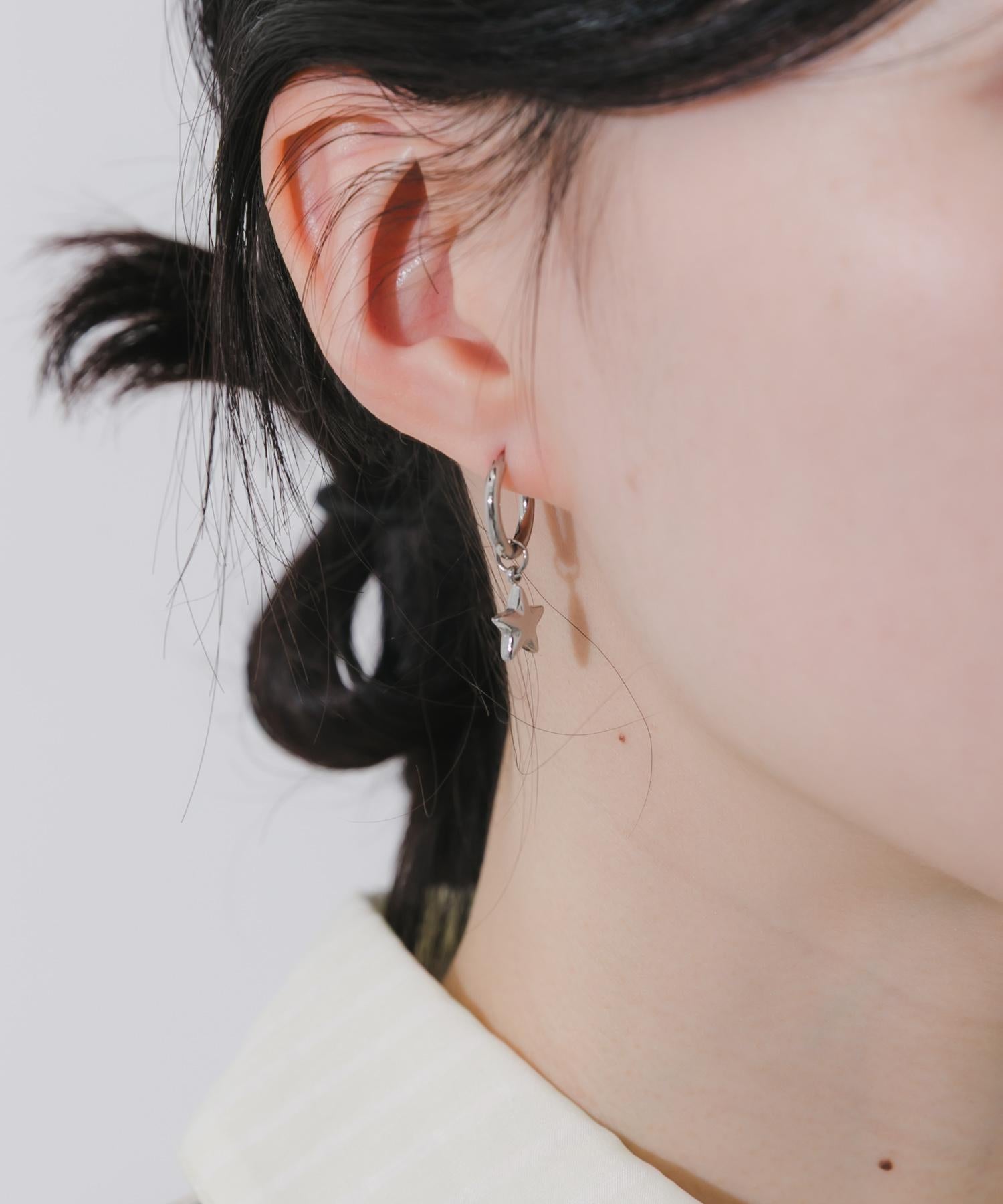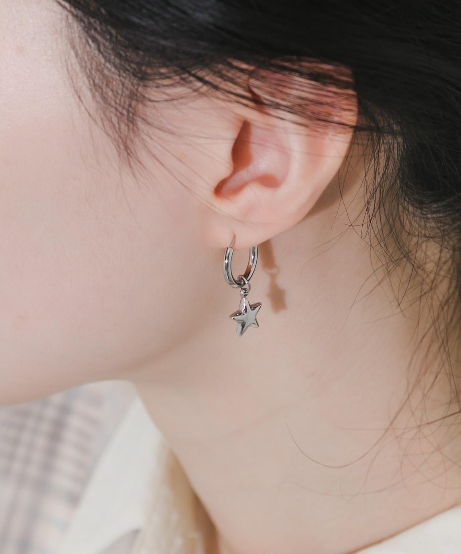 立體的星星吊飾鑲嵌在簡單的環形耳環上,非常吸引人。