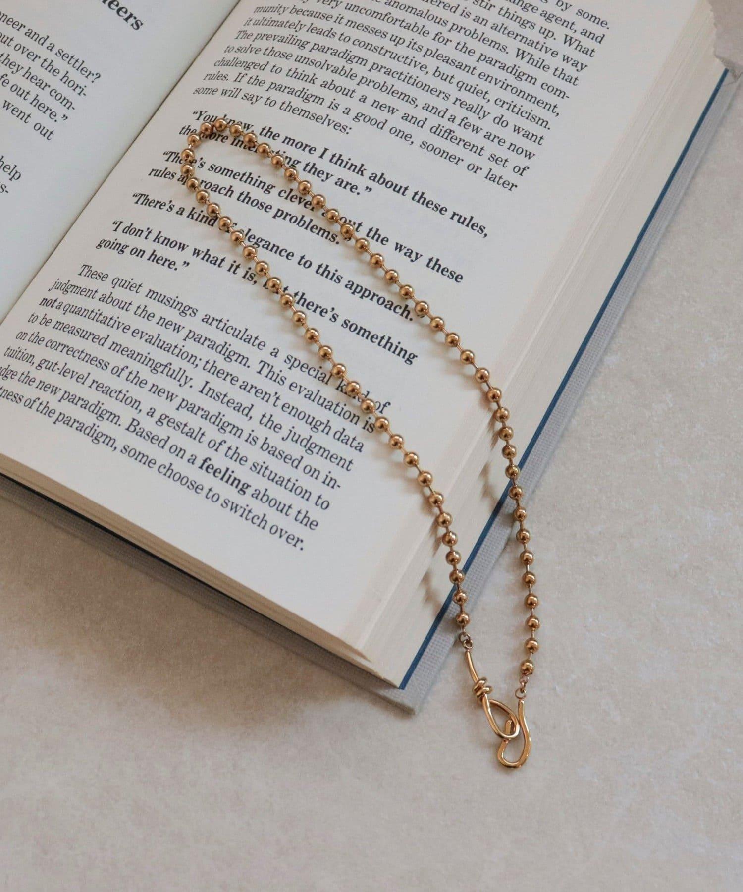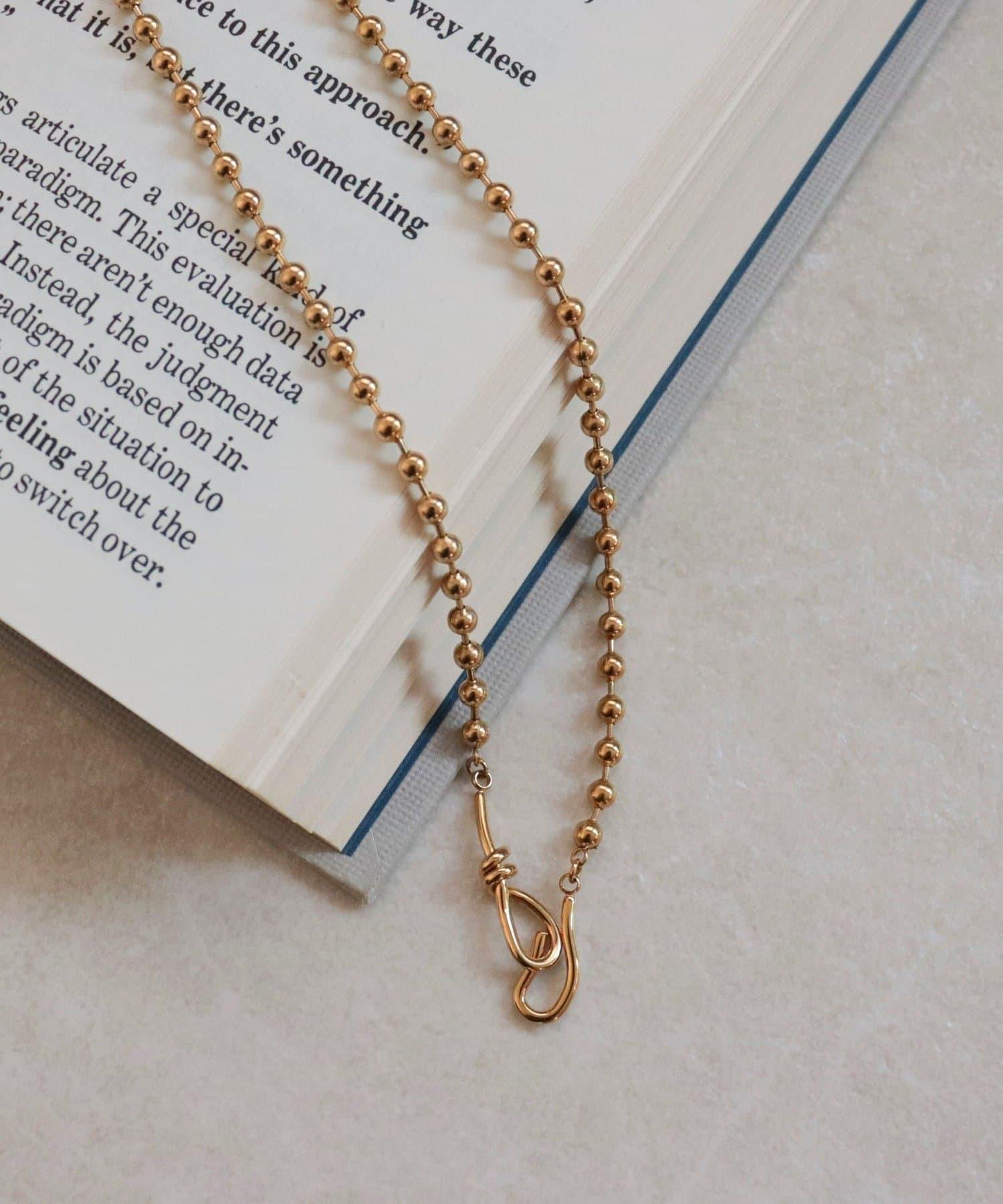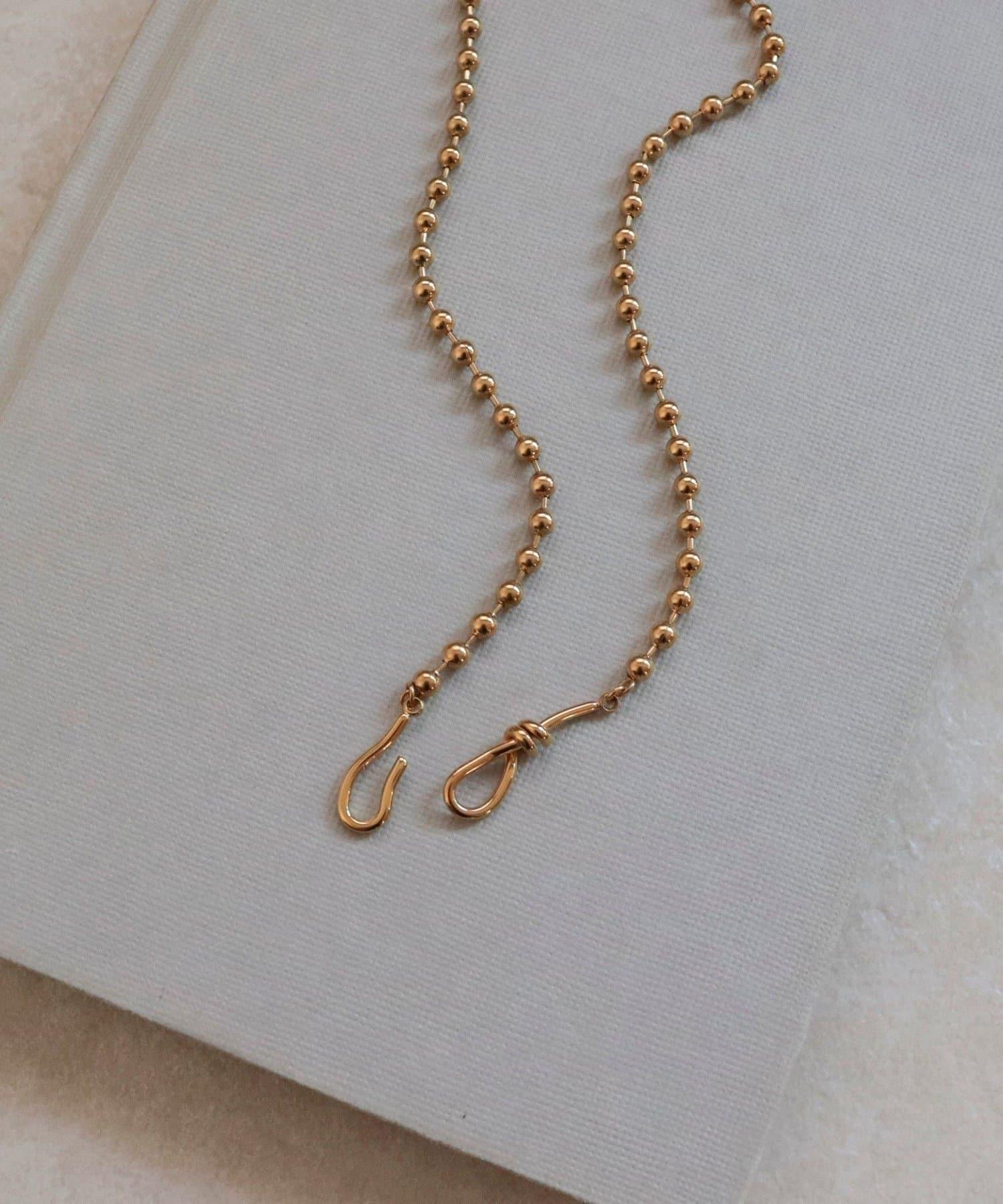 這款設計簡潔的球形鏈條項鍊採用鉤扣裝飾。