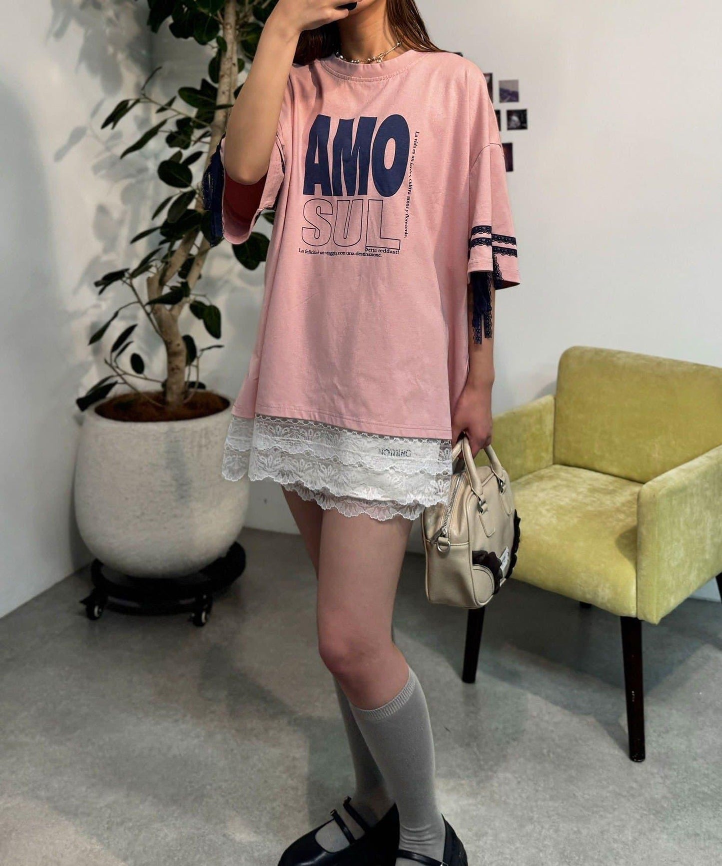 下襬探出的蕾絲營造出層次感,單穿也很好看。