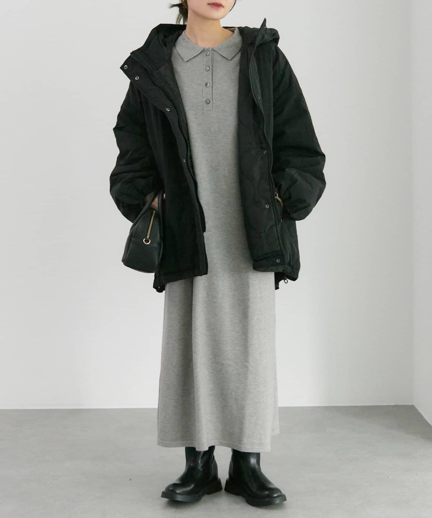 下襬從前面到後面略長,可以圍在腰部保暖。