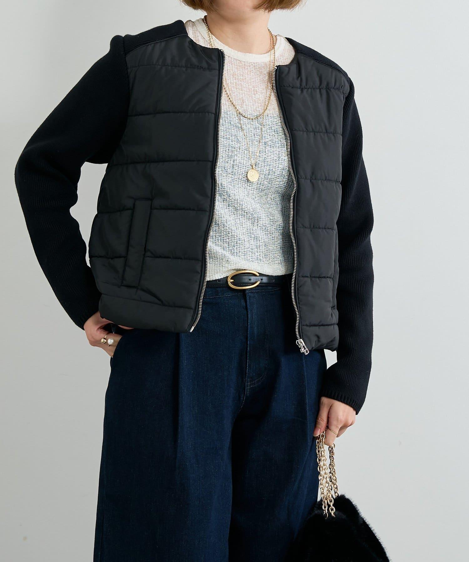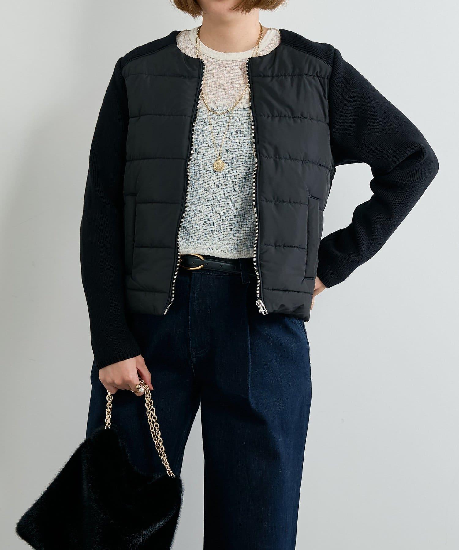 中棉針織拼接無領夾克