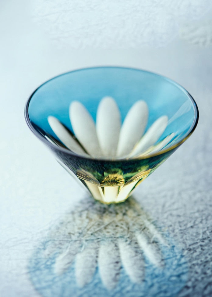 中金玻璃 酒杯 倒立富士綠色/金色