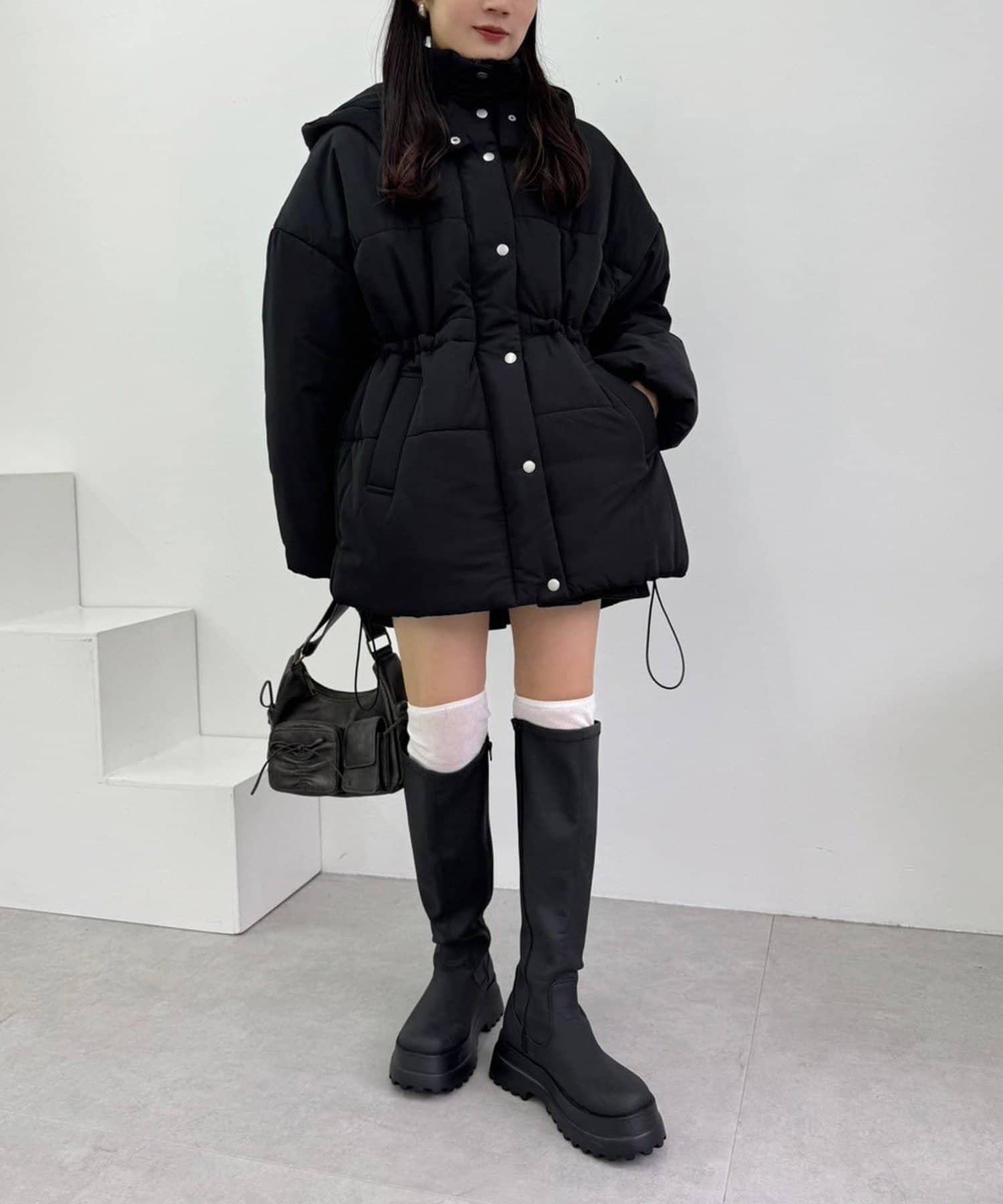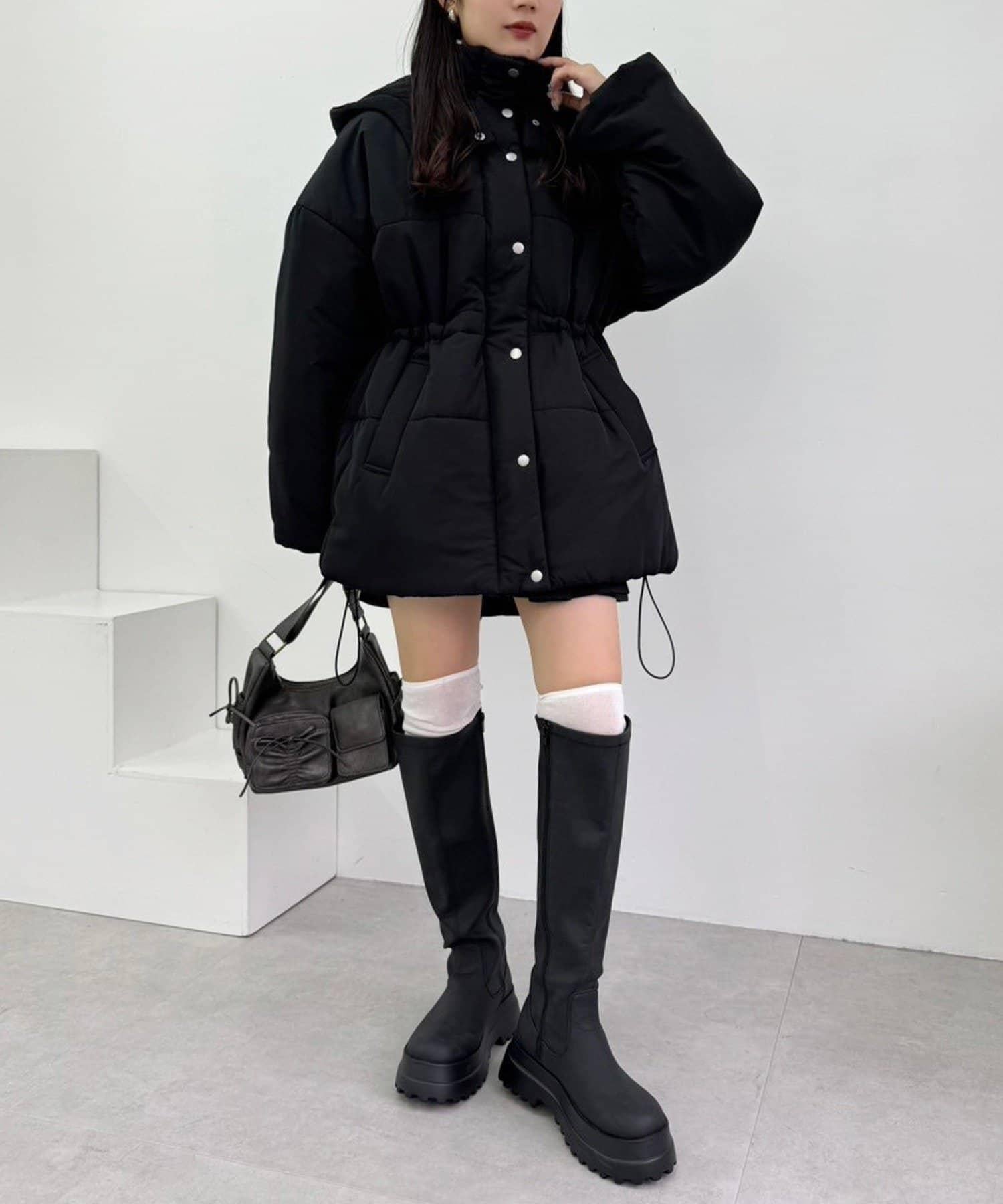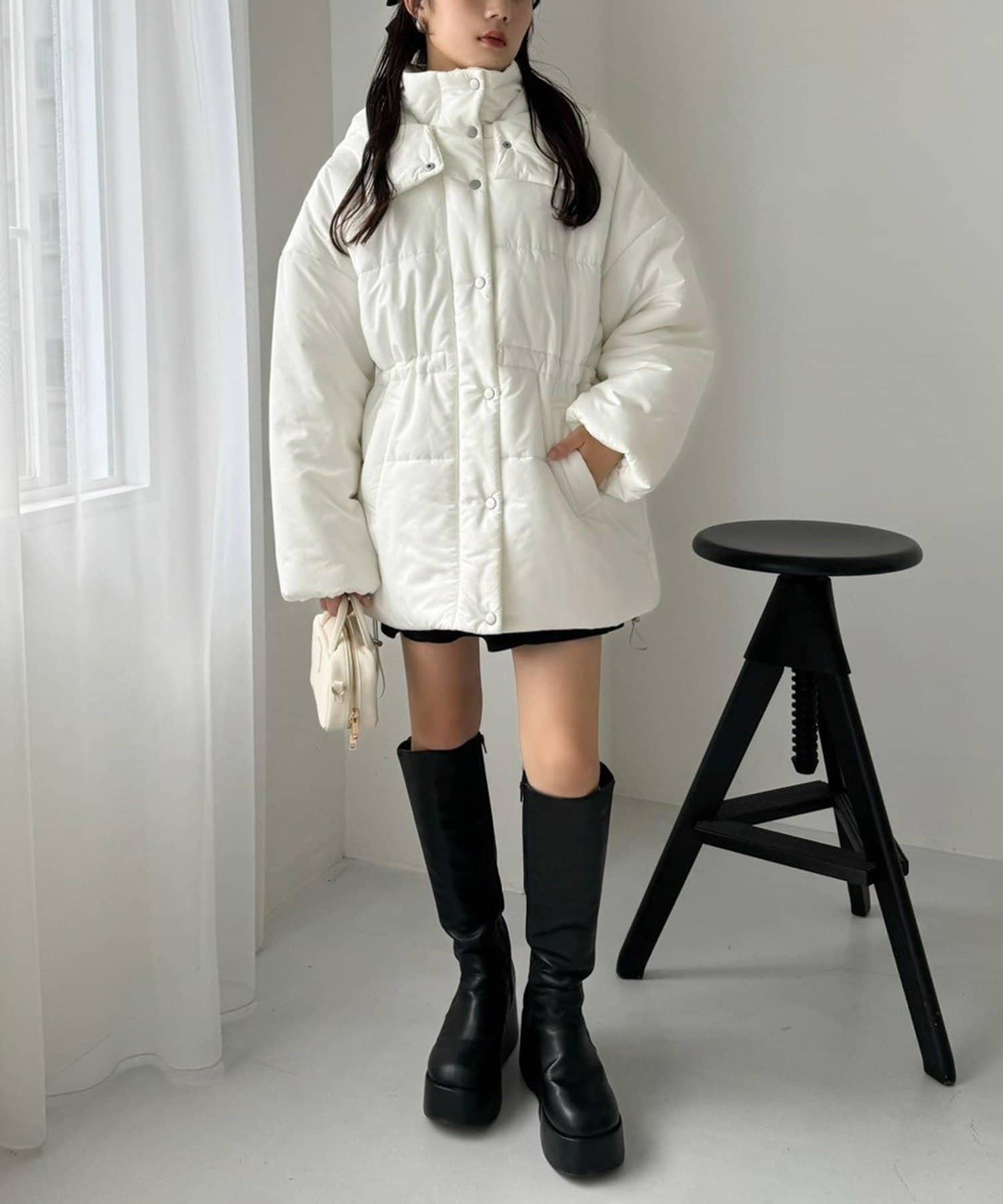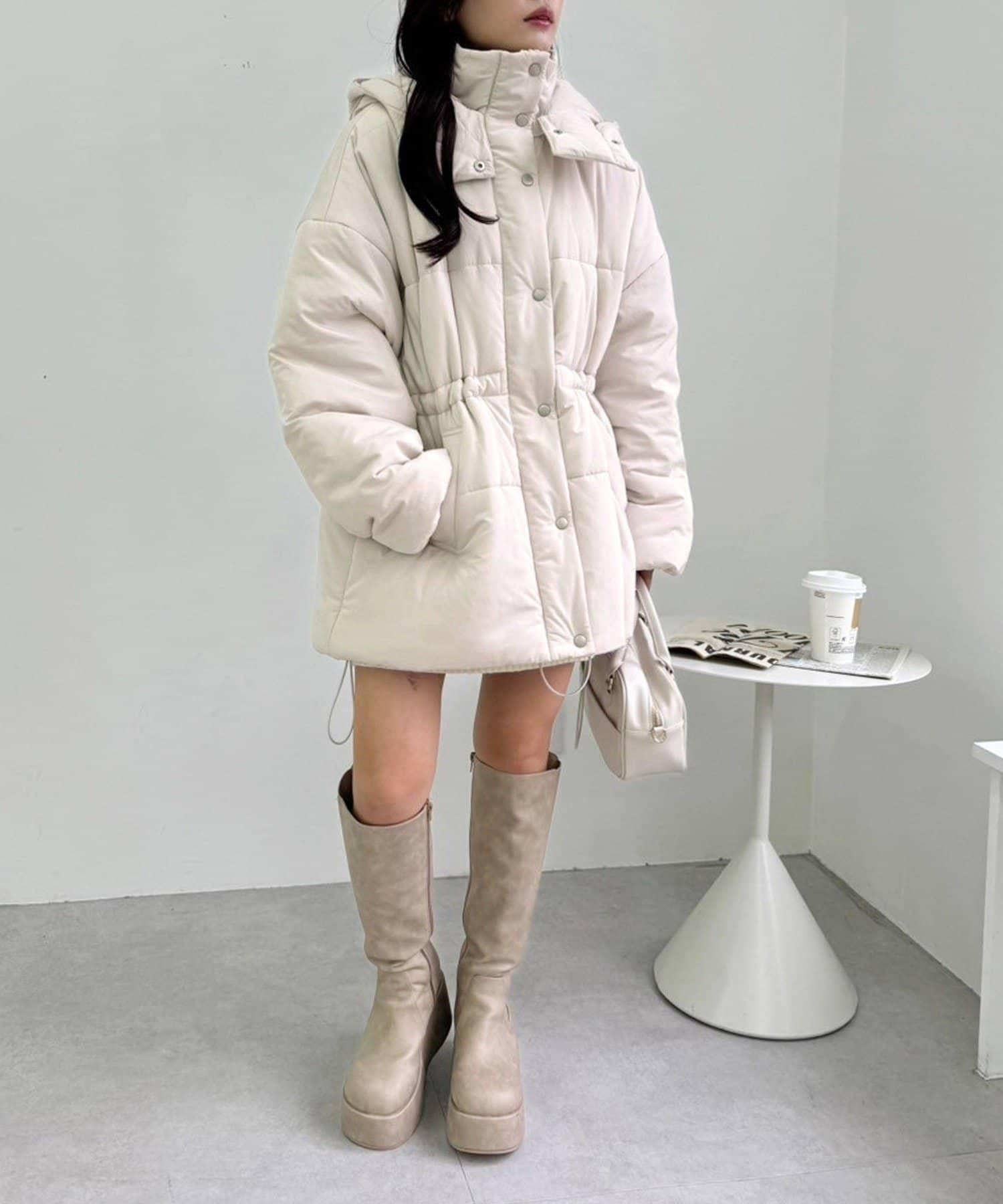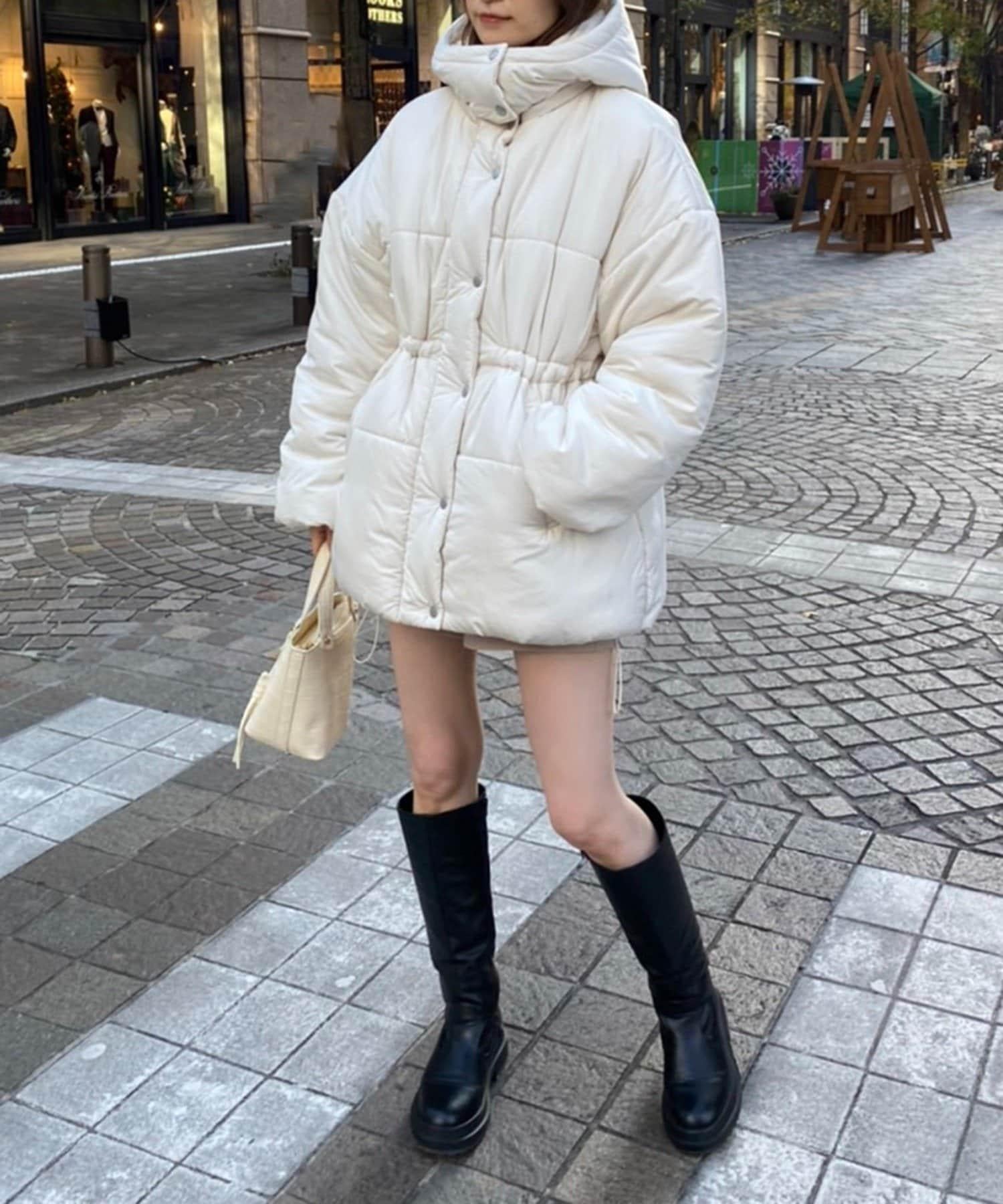 腰部可以收緊,所以雖然是羽絨服,也能穿出時尚感!