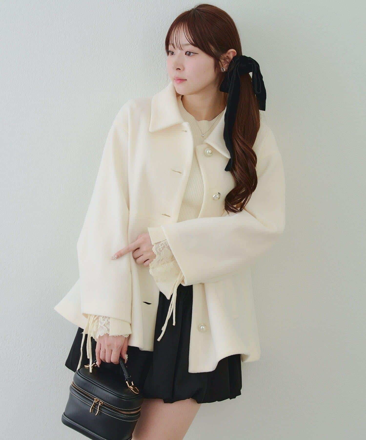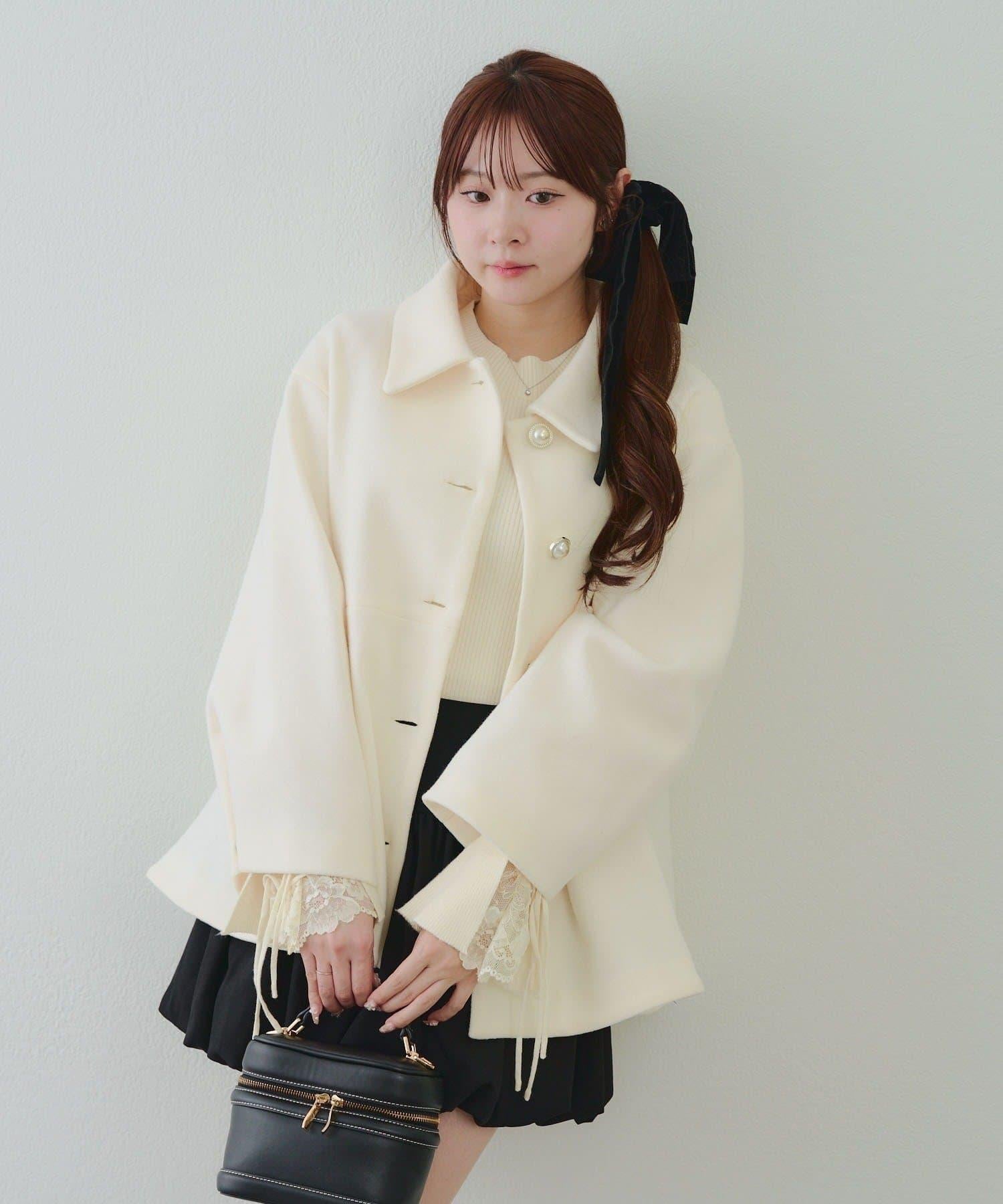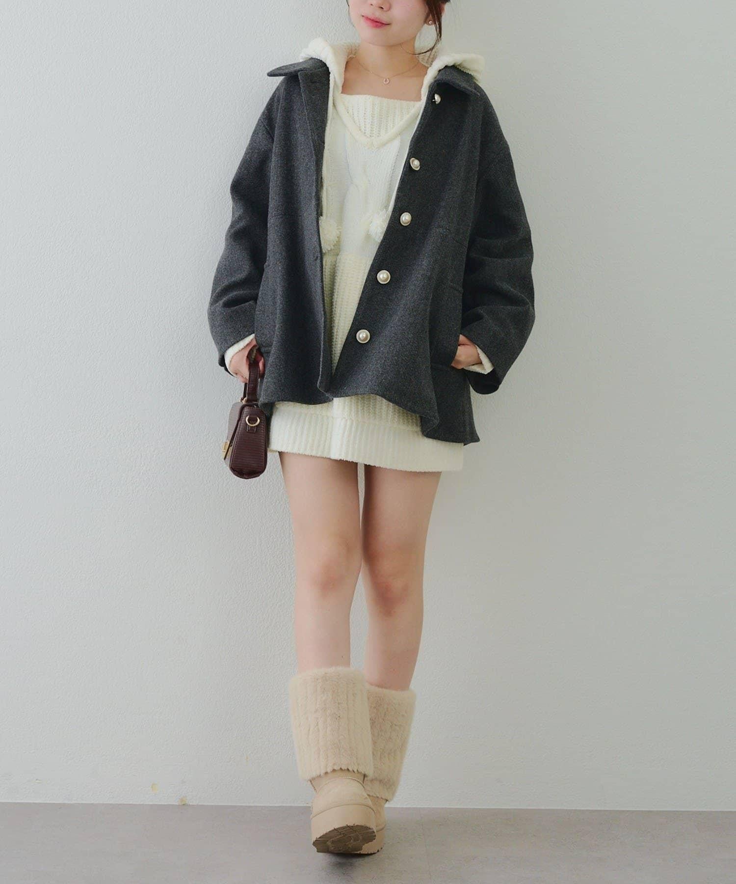 還可搭配喇叭牛仔褲,打造淑女休閒造型。